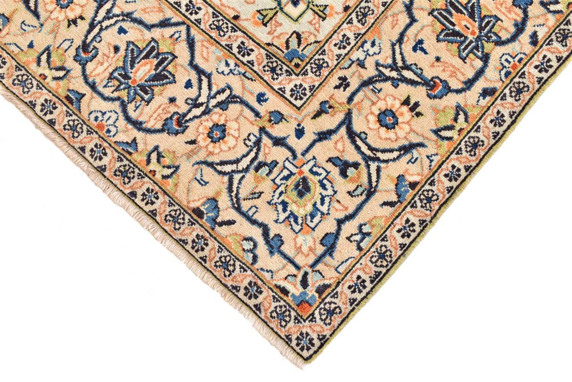 This carpet from Kashan (Keshan) is held in its very traditional and typical Persian design with beautiful ornaments. Kashan rugs are highly popular due to their exceptionally elegant design. These carpets originate from Kashan, a city on the ancient Silk Road. This carpet has been knotted by hand from high grade sheep wool and is going to be an one-of-a-kind highlight in your home.