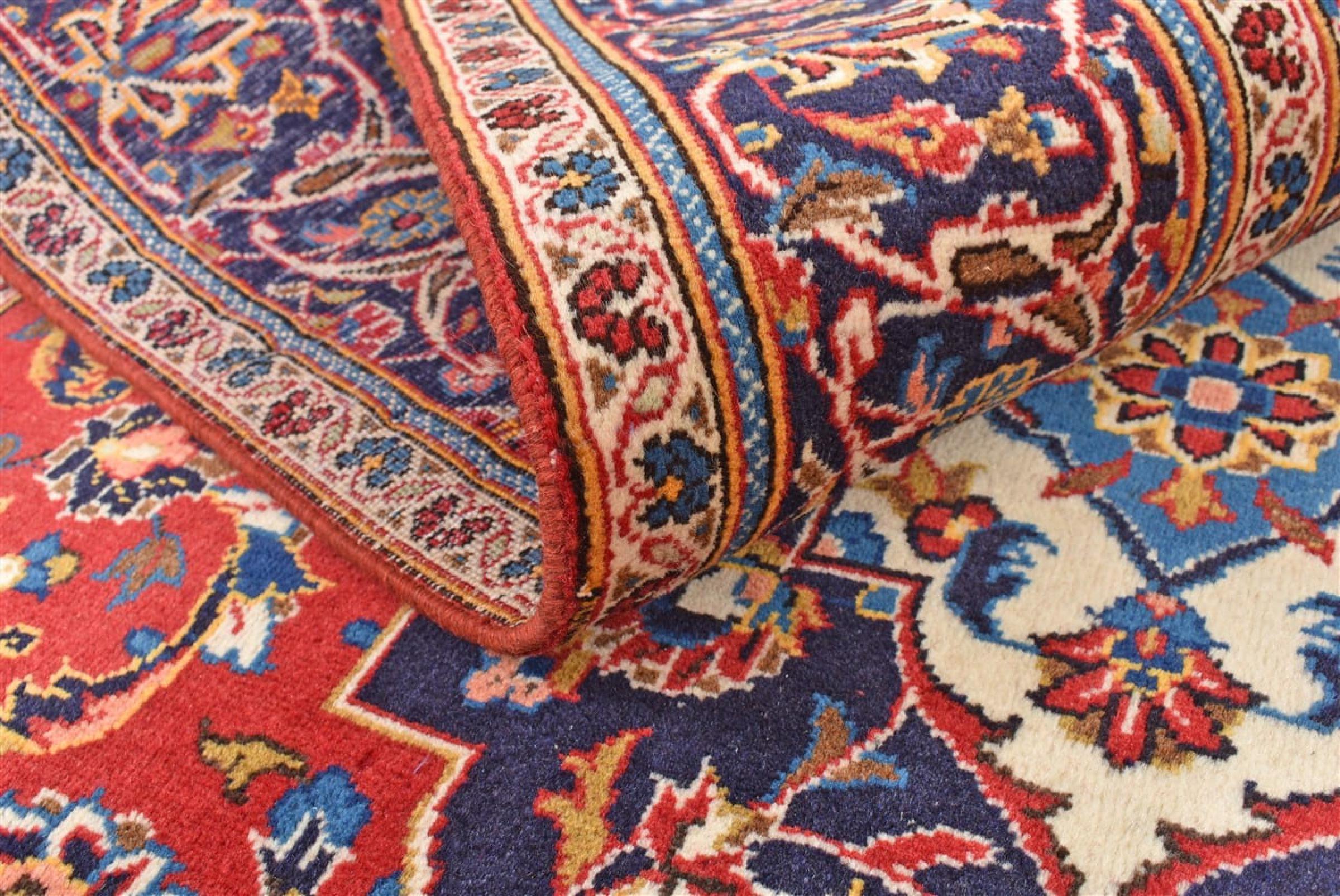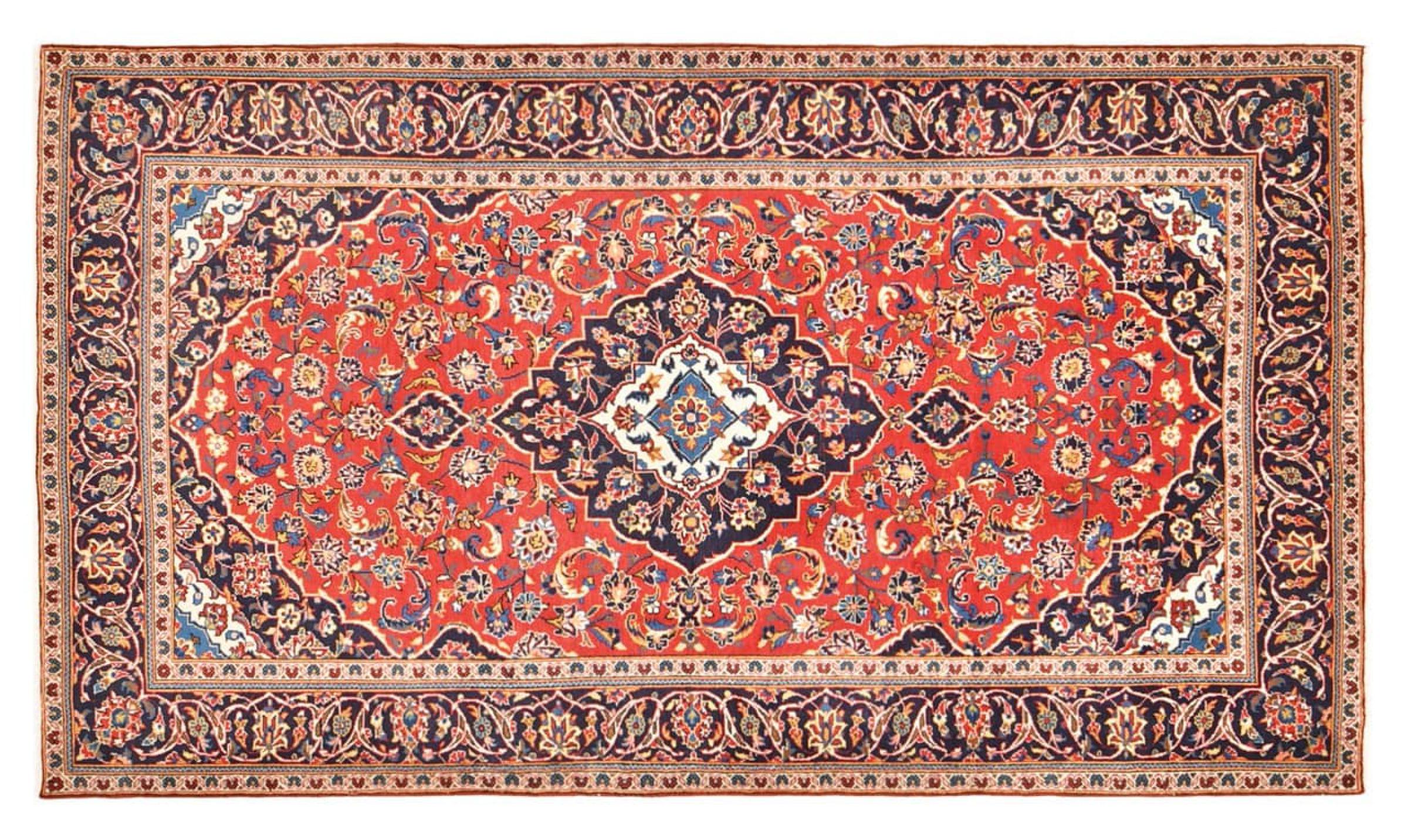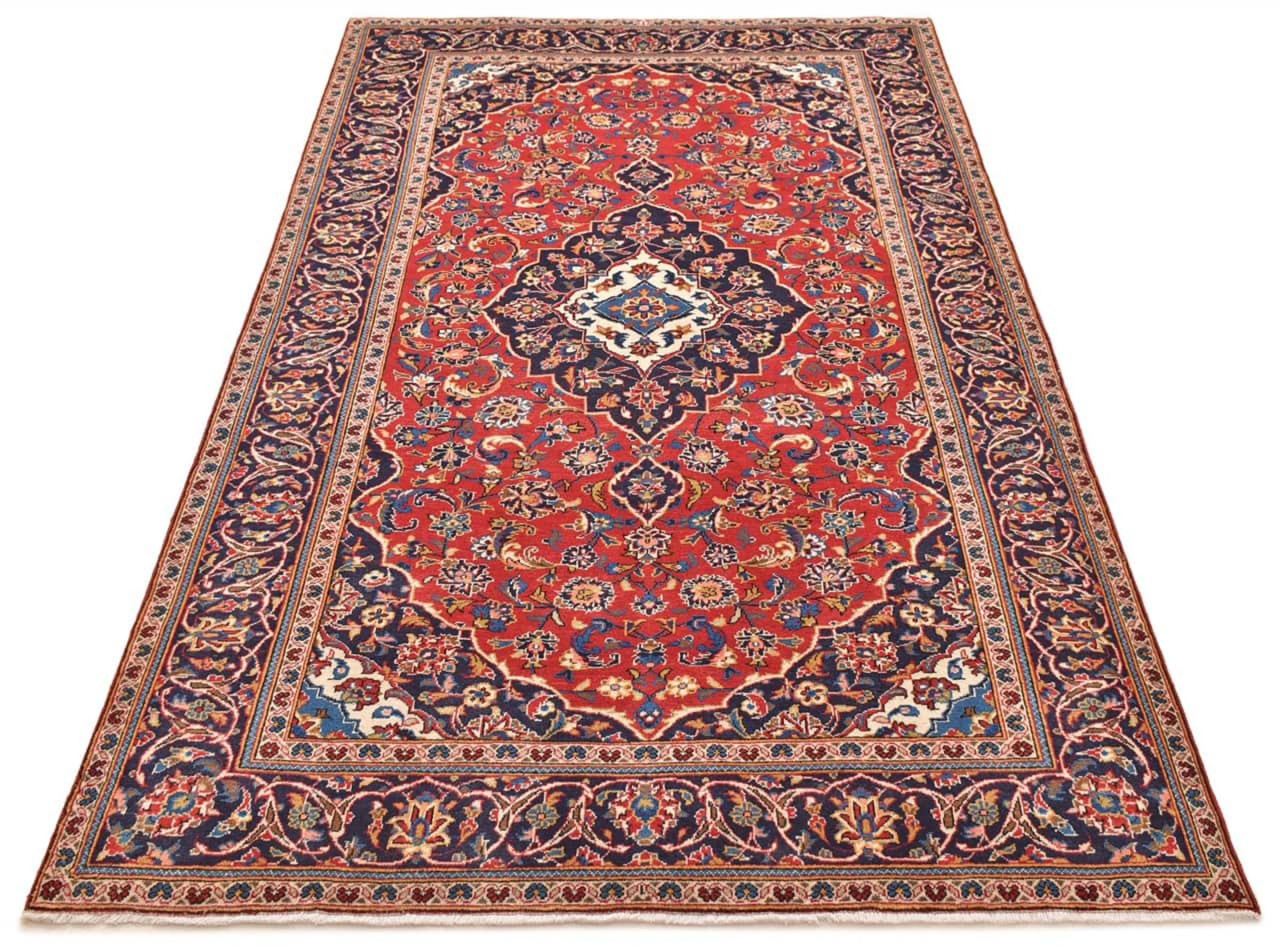 Hand knotted rugs from the city of Kashan (Keshan) are known worldwide. Not only do these Persian rugs have a very popular design, but their quality is undisputedly one of the best. In the Persian Empire the city was considered one of the most important trading places along the famous Silk Road. Kashan rugs usually have a central medallion, floral ornaments and a red background. They are made of high-quality sheep's wool and vegetable dyes.