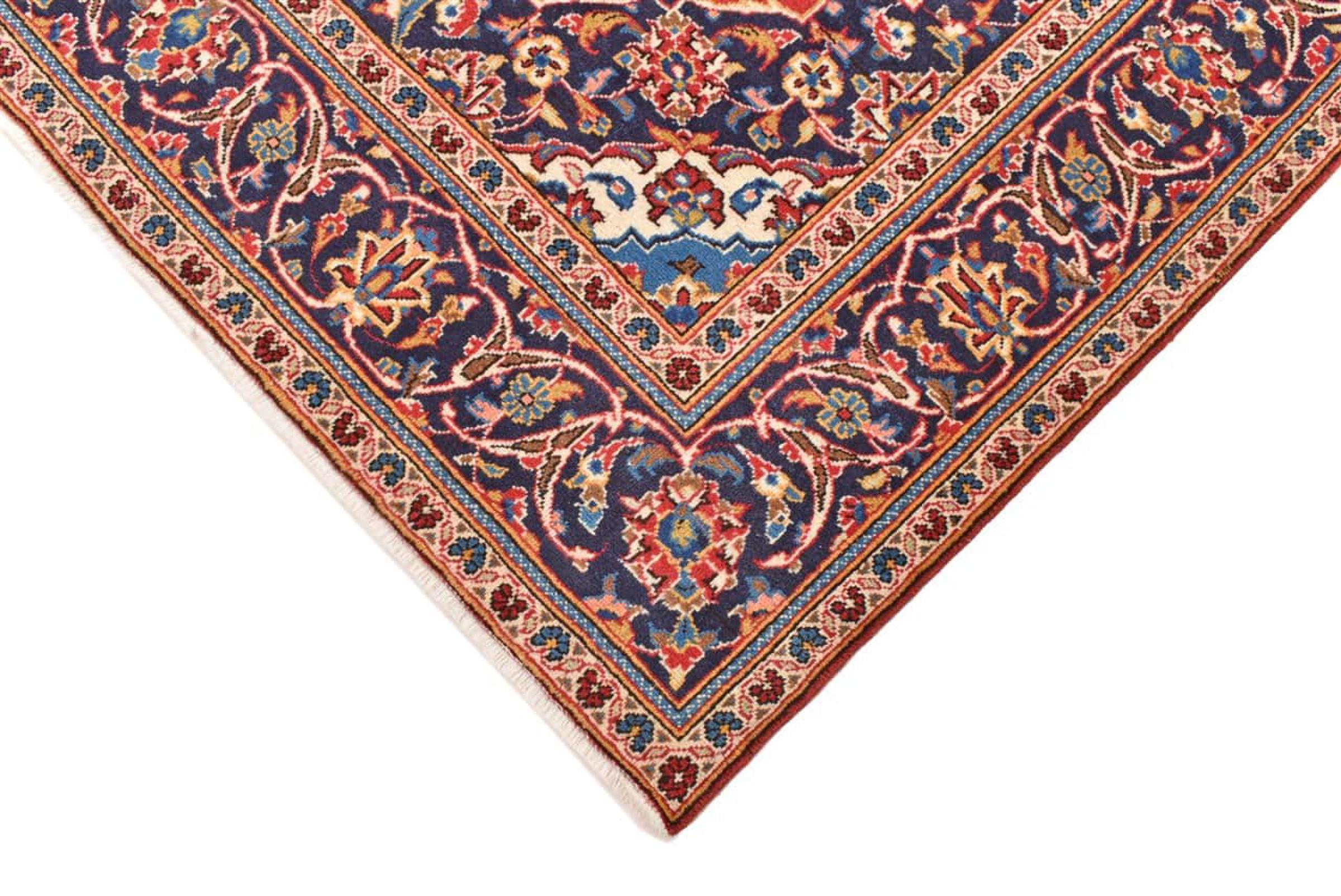 This carpet from Kashan (Keshan) is held in its very traditional and typical Persian design with beautiful ornaments. Kashan rugs are highly popular due to their exceptionally elegant design. These carpets originate from Kashan, a city on the ancient Silk Road. This carpet has been knotted by hand from high grade sheep wool and is going to be an one-of-a-kind highlight in your home.