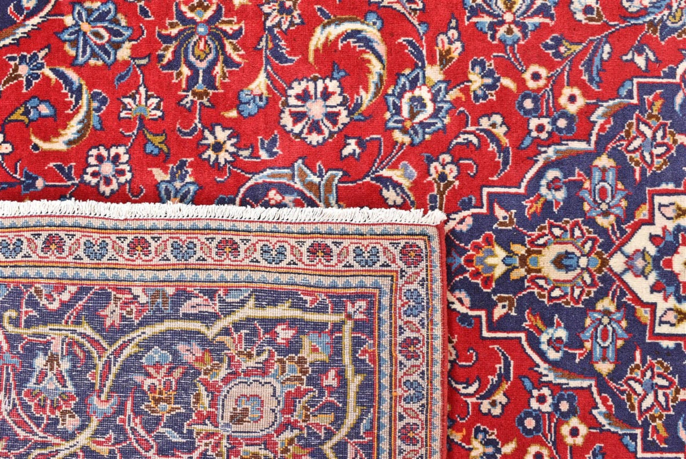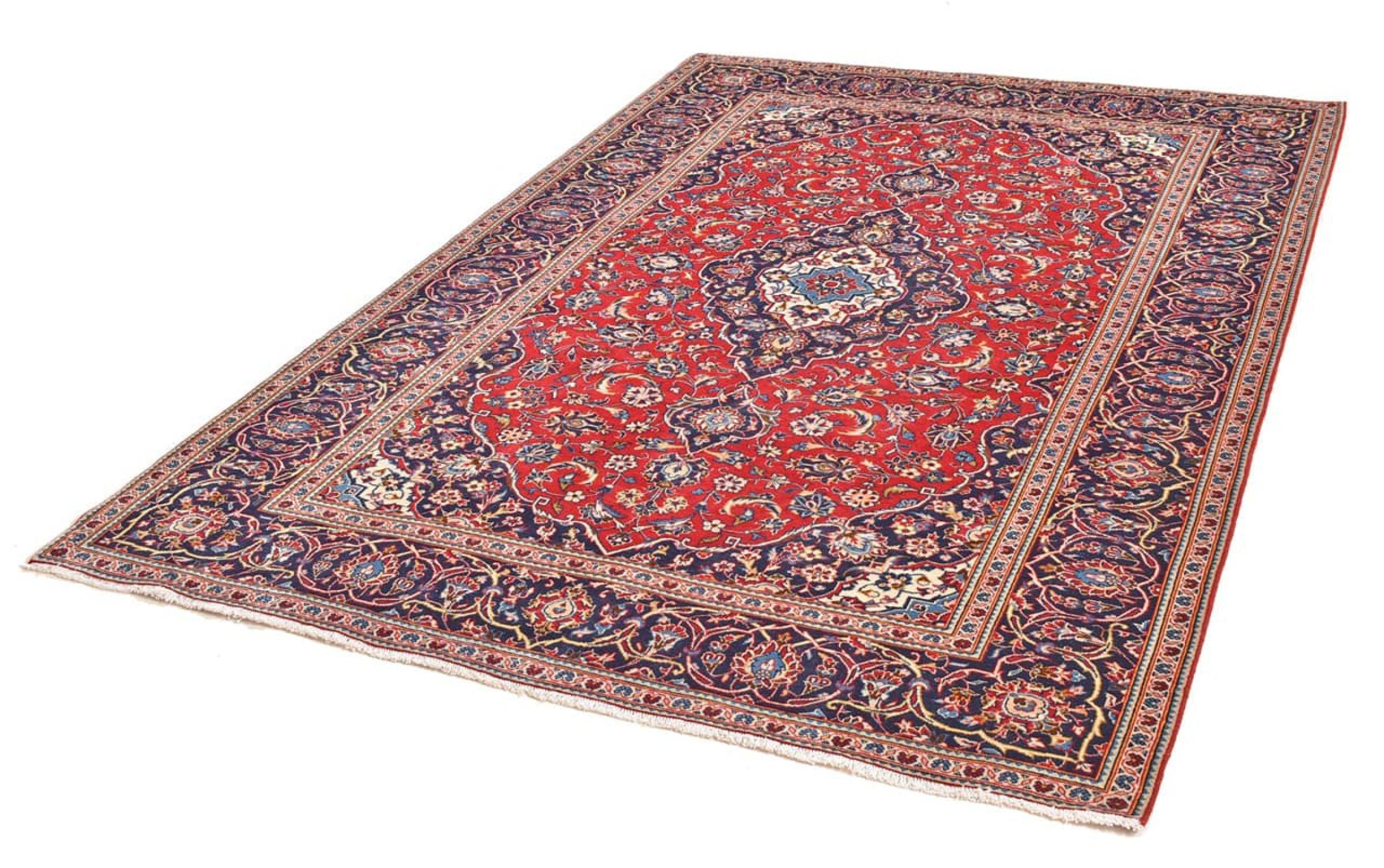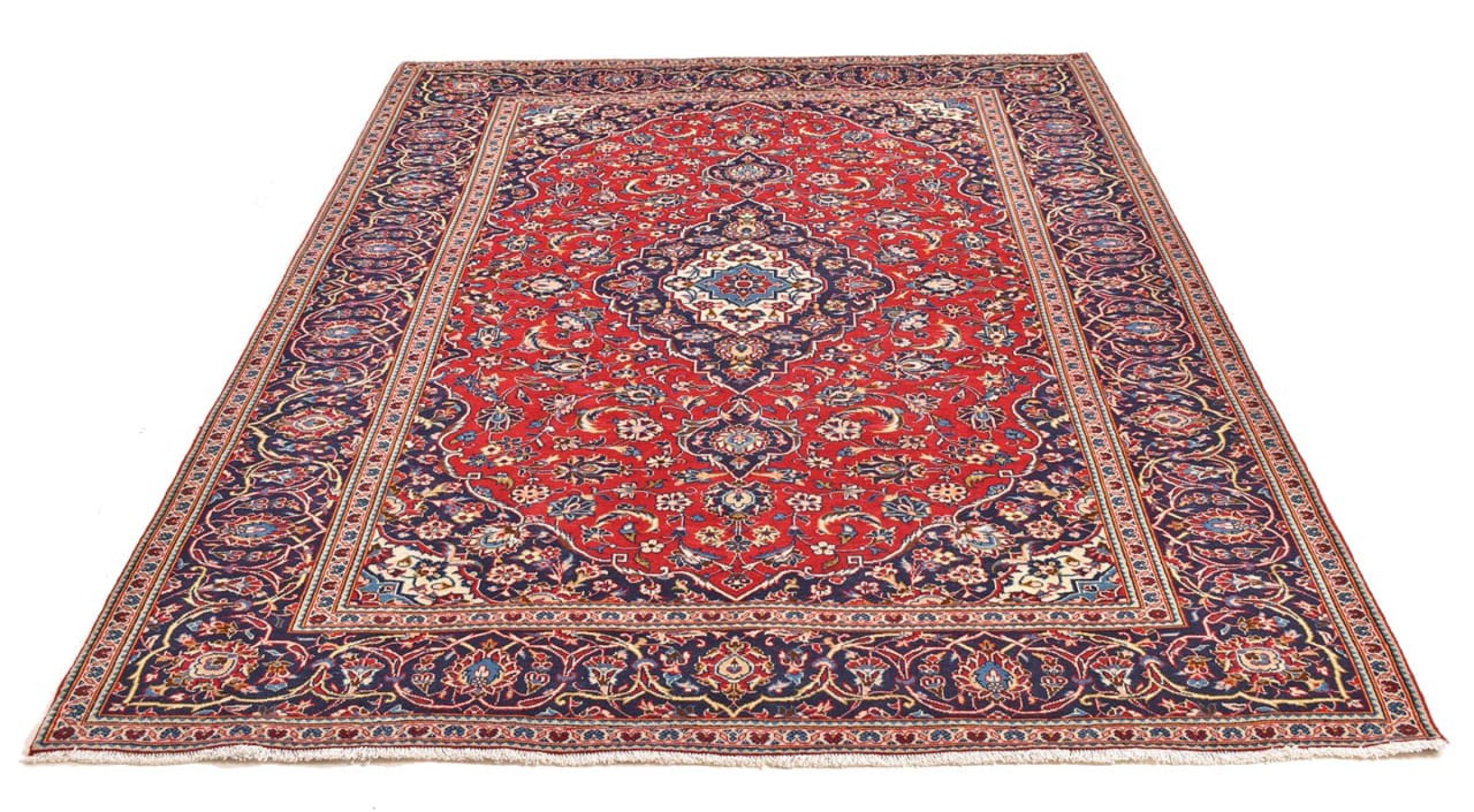 Hand knotted rugs from the city of Kashan (Keshan) are known worldwide. Not only do these Persian rugs have a very popular design, but their quality is undisputedly one of the best. In the Persian Empire the city was considered one of the most important trading places along the famous Silk Road. Kashan rugs usually have a central medallion, floral ornaments and a red background. They are made of high-quality sheep's wool and vegetable dyes.