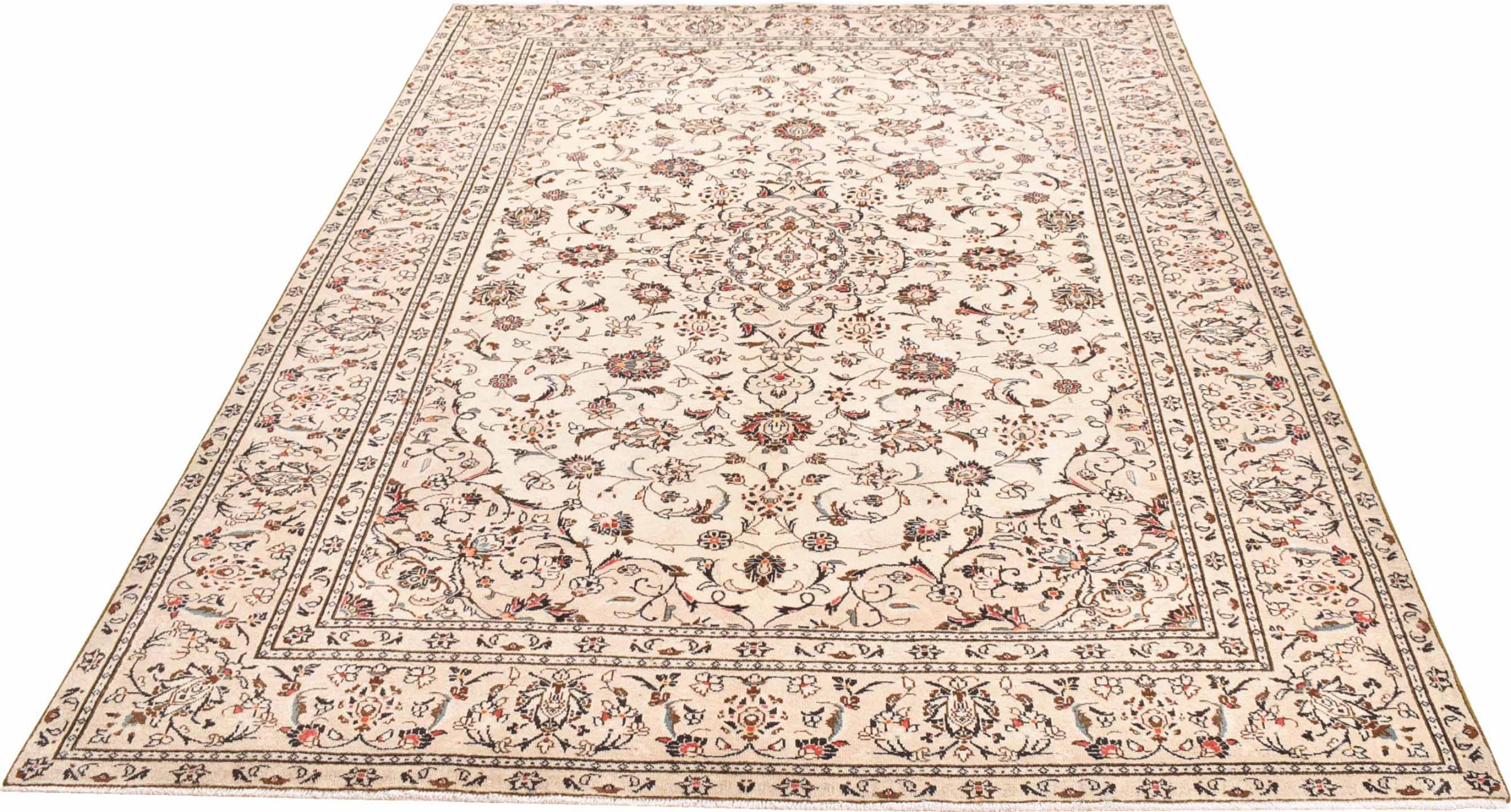 Hand knotted rugs from the city of Kashan (Keshan) are known worldwide. Not only do these Persian rugs have a very popular design, but their quality is undisputedly one of the best. In the Persian Empire the city was considered one of the most important trading places along the famous Silk Road. Kashan rugs usually have a central medallion, floral ornaments and a red background. They are made of high-quality sheep's wool and vegetable dyes.