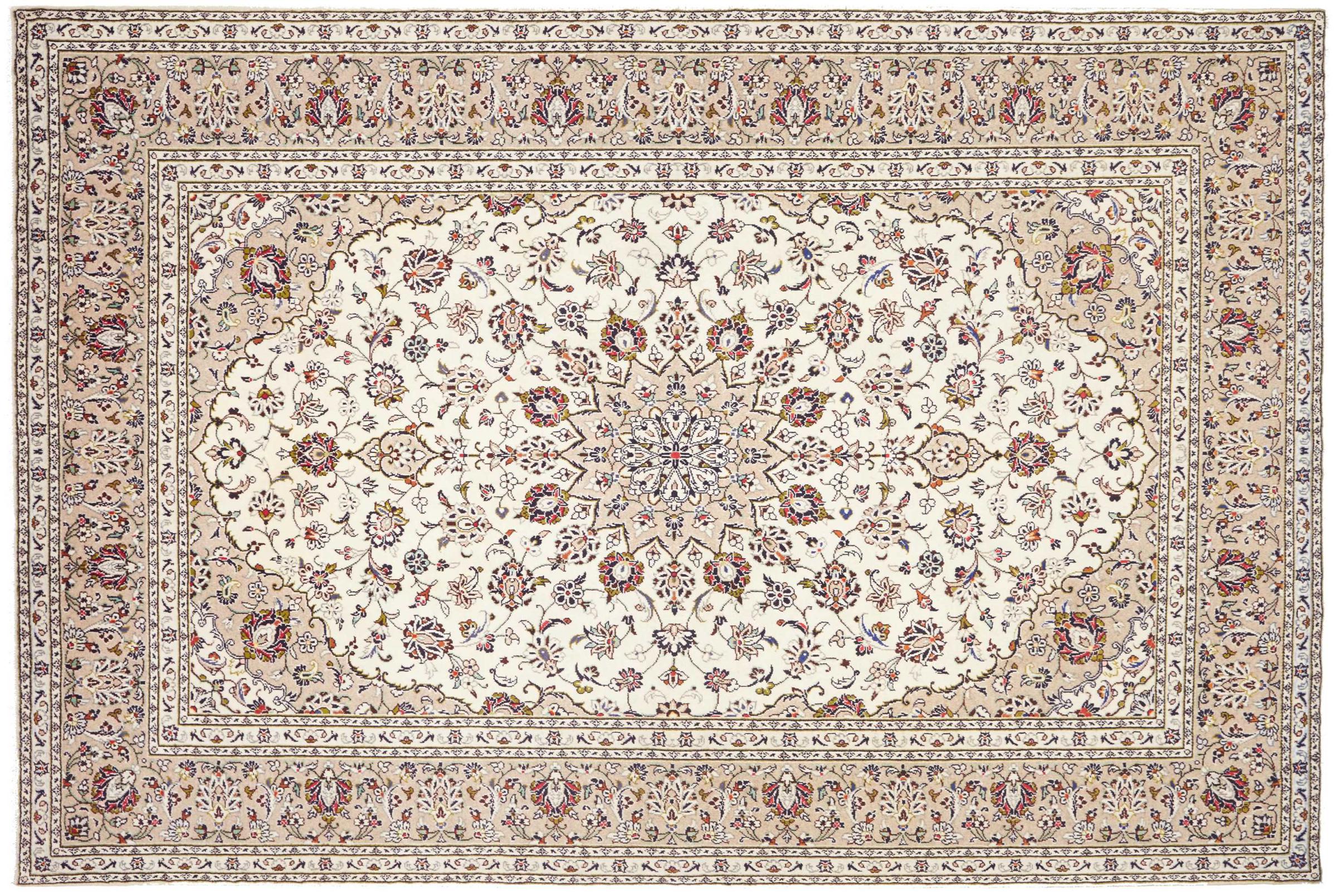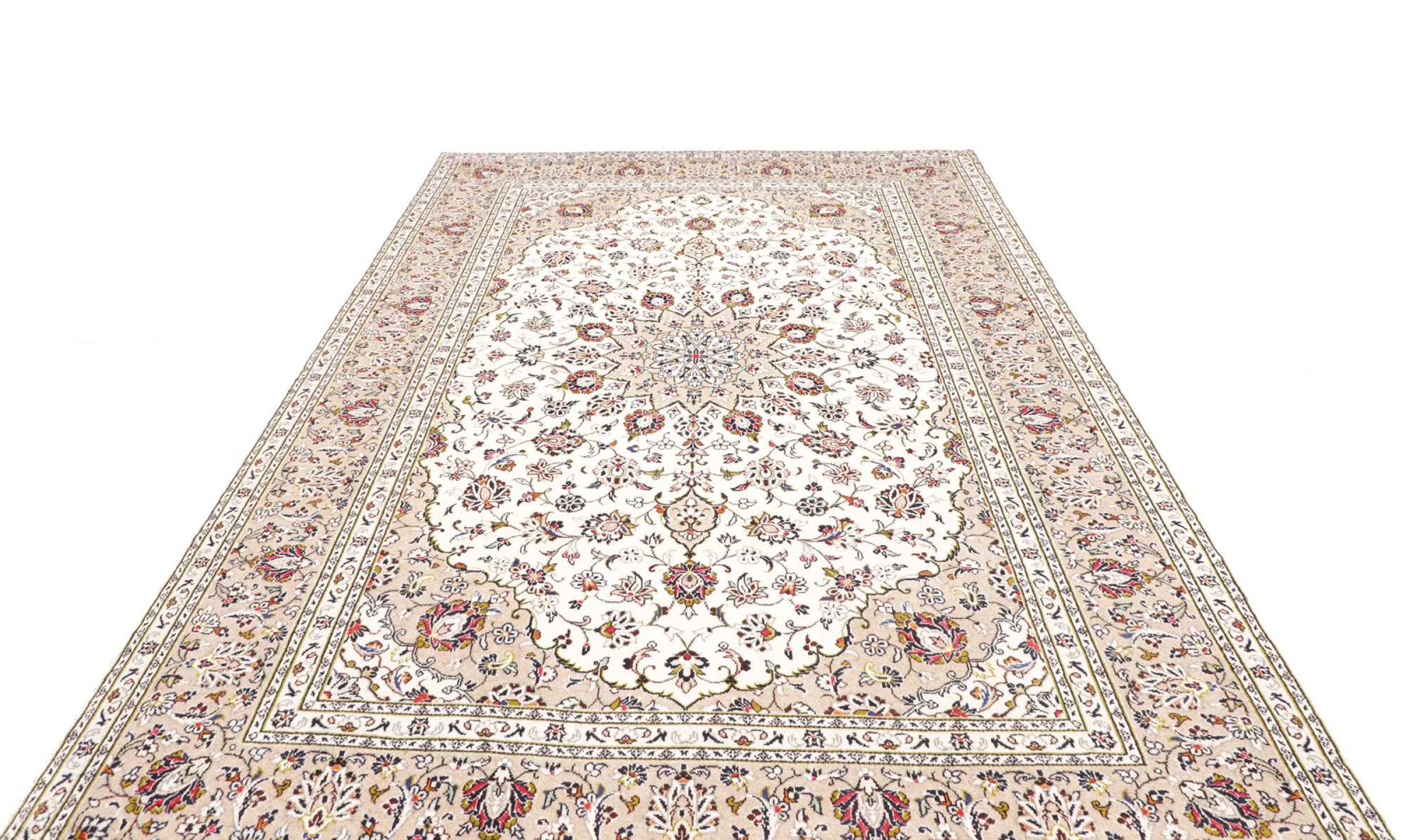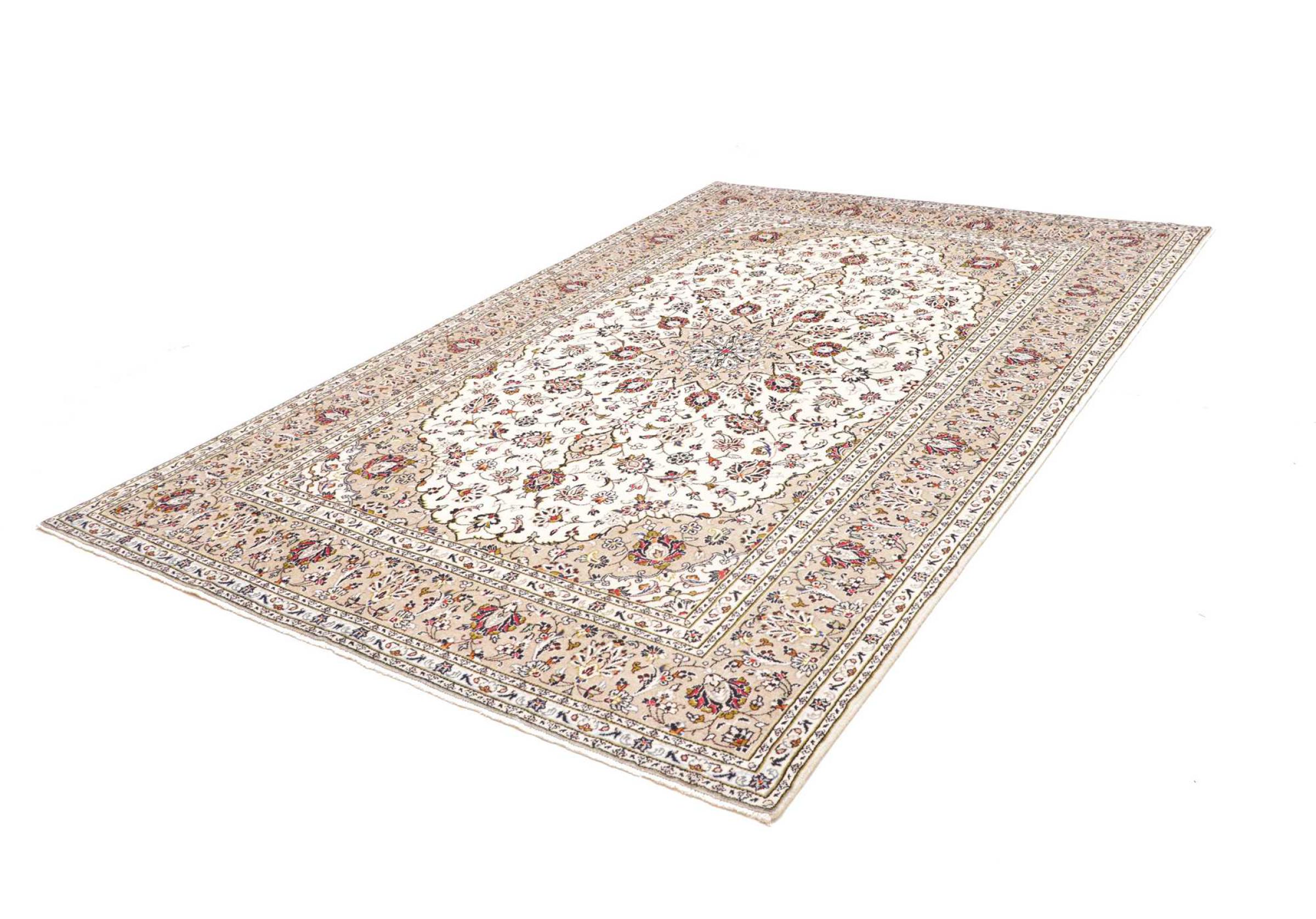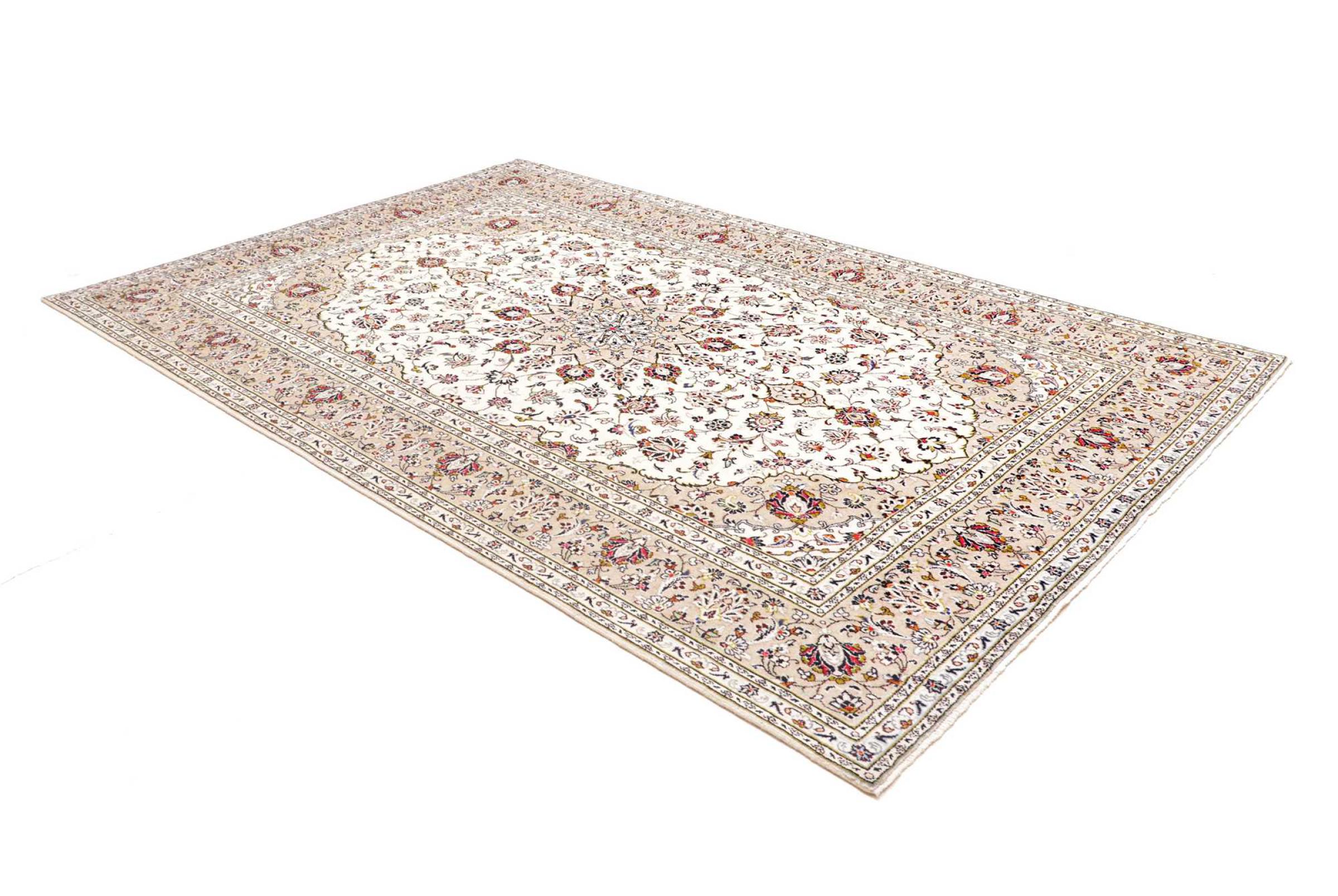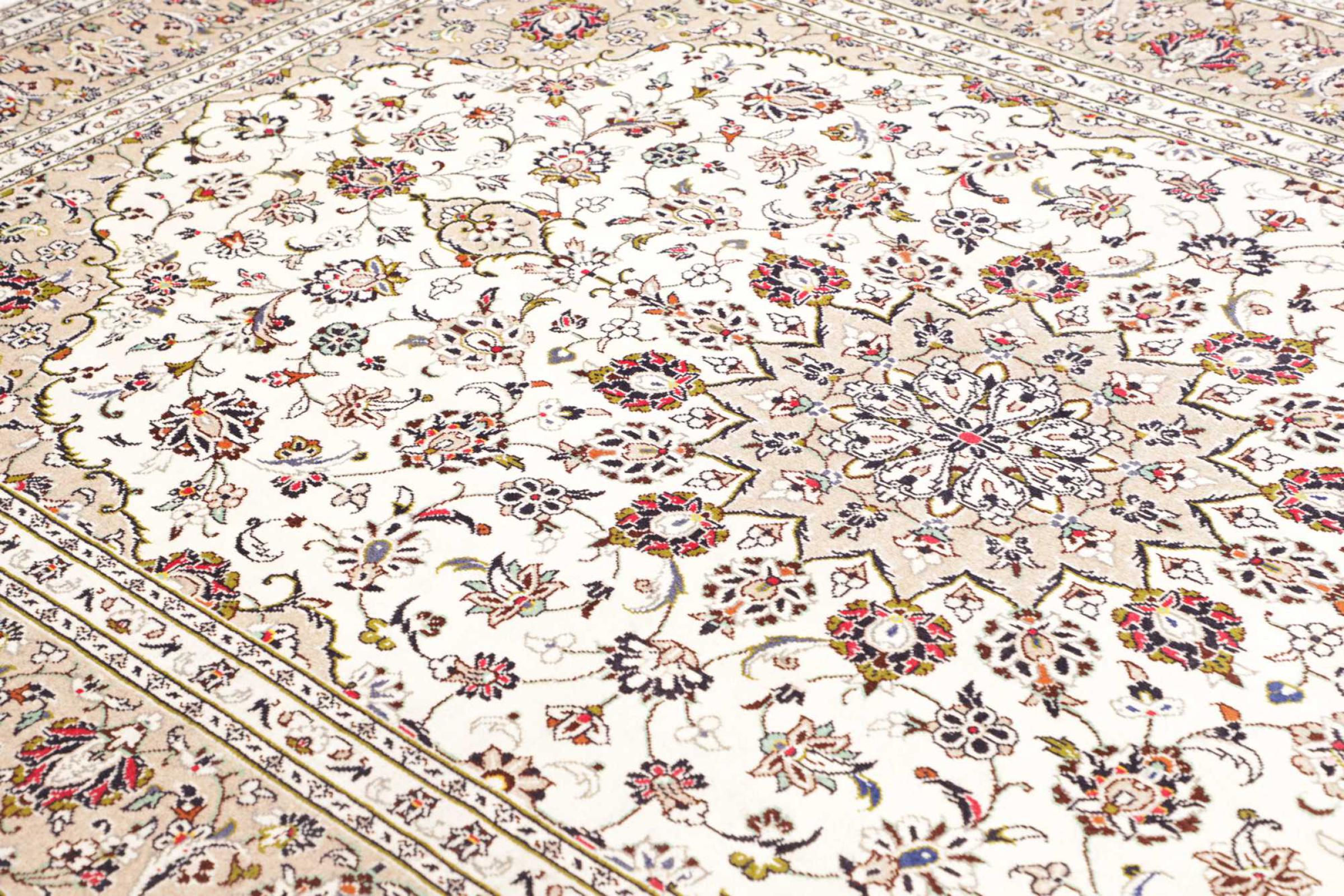 Hand knotted rugs from the city of Kashan (Keshan) are known worldwide. Not only do these Persian rugs have a very popular design, but their quality is undisputedly one of the best. In the Persian Empire the city was considered one of the most important trading places along the famous Silk Road. Kashan rugs usually have a central medallion, floral ornaments and a red background. They are made of high-quality sheep's wool and vegetable dyes.