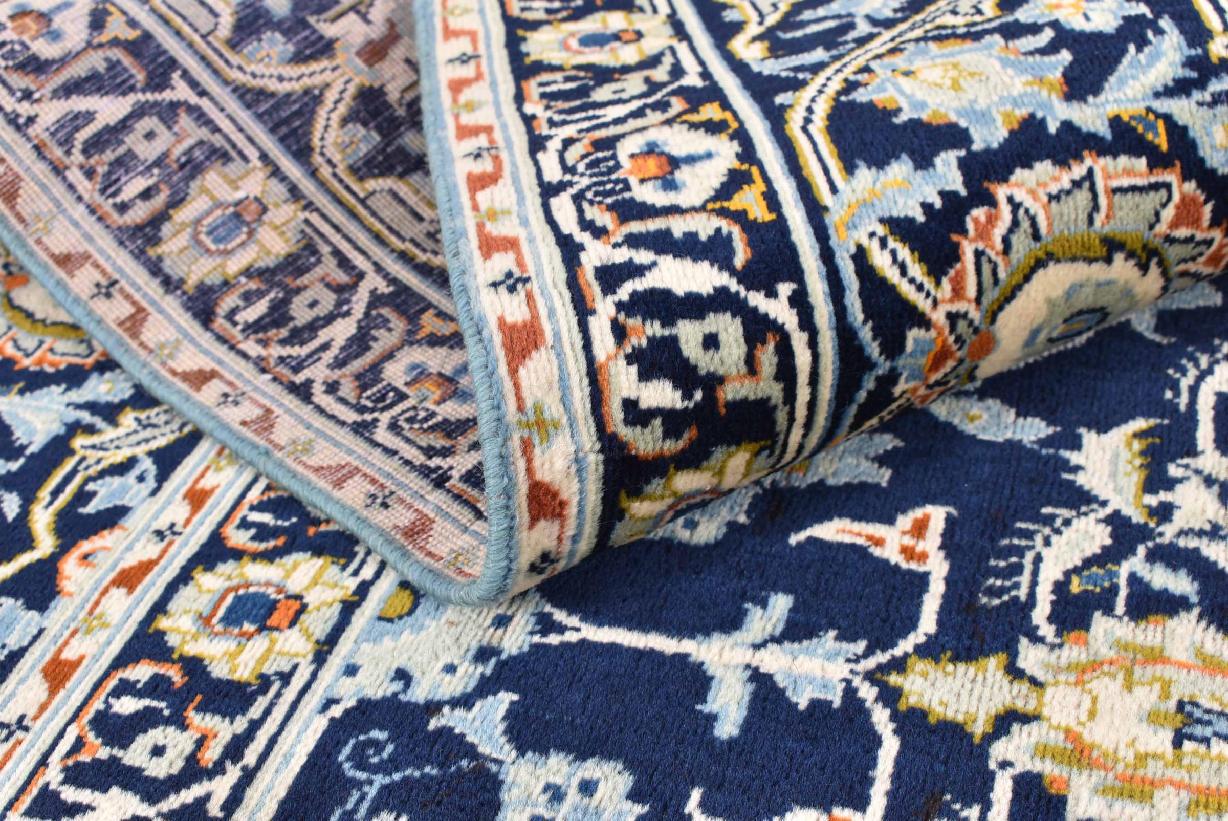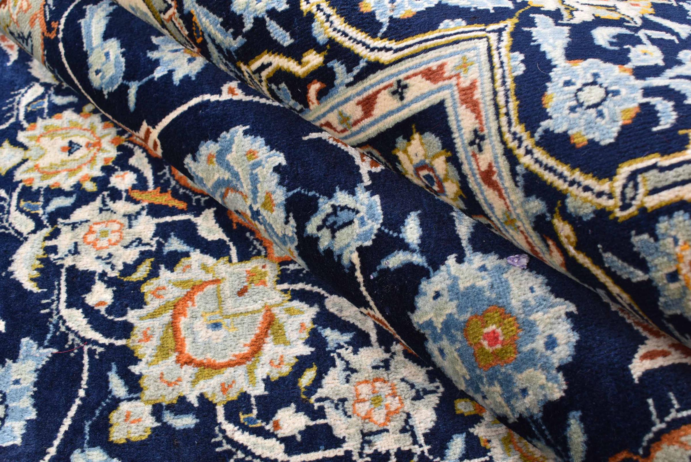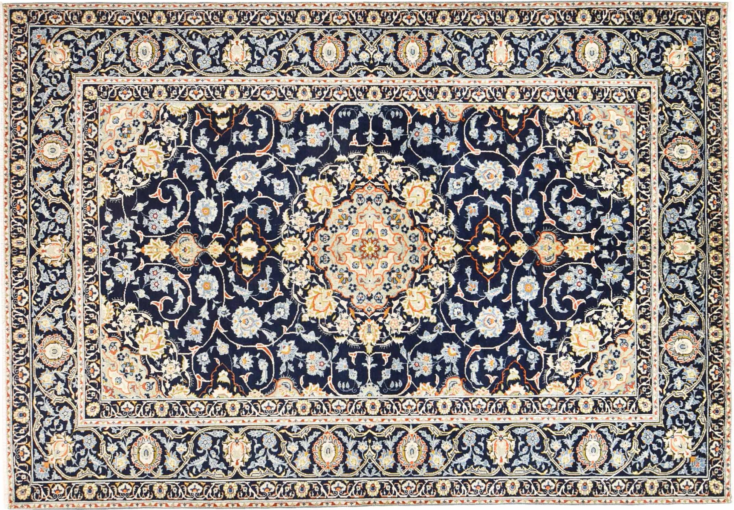 Hand knotted rugs from the city of Kashan (Keshan) are known worldwide. Not only do these Persian rugs have a very popular design, but their quality is undisputedly one of the best. In the Persian Empire the city was considered one of the most important trading places along the famous Silk Road. Kashan rugs usually have a central medallion, floral ornaments and a red background. They are made of high-quality sheep's wool and vegetable dyes.