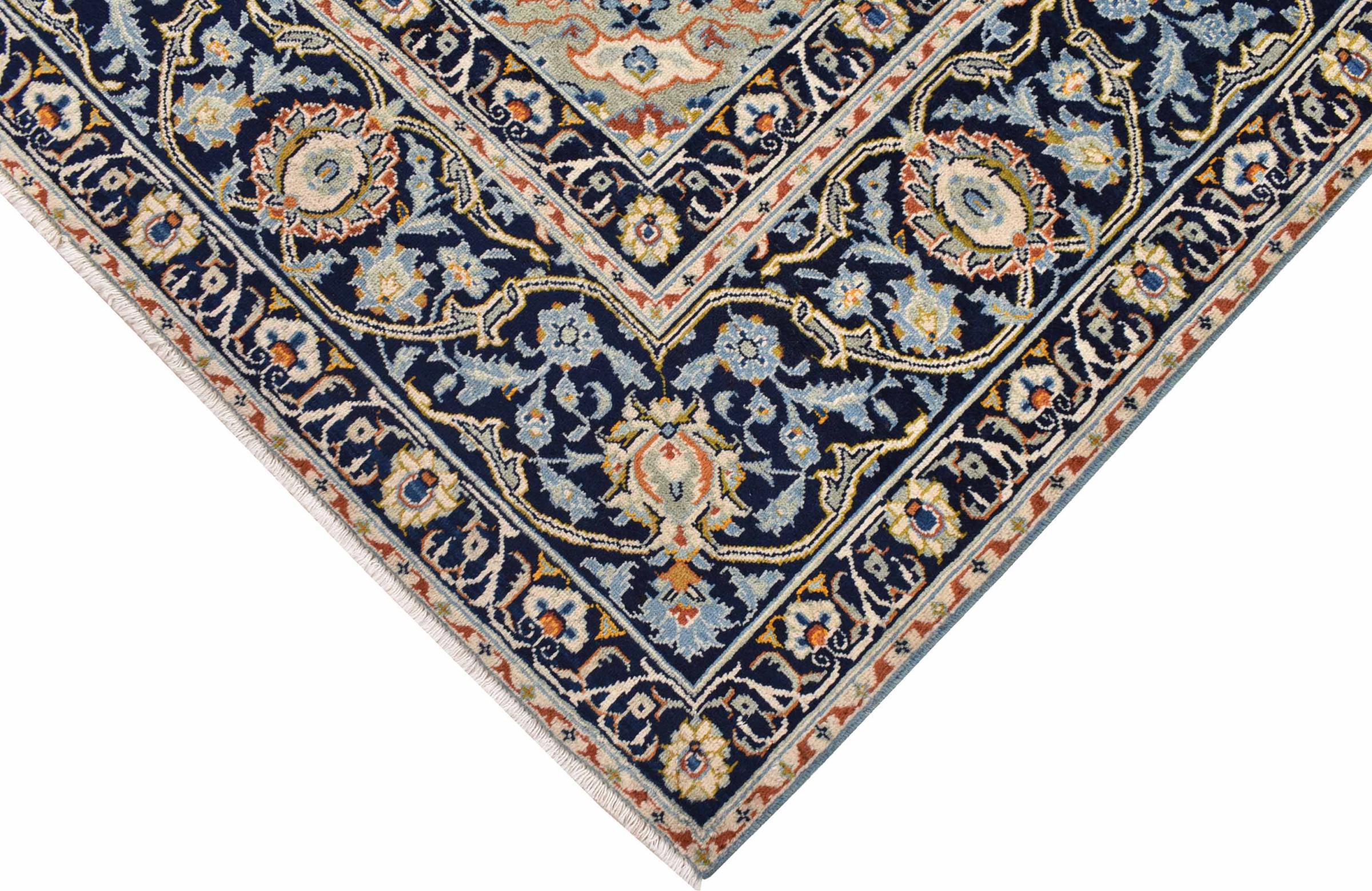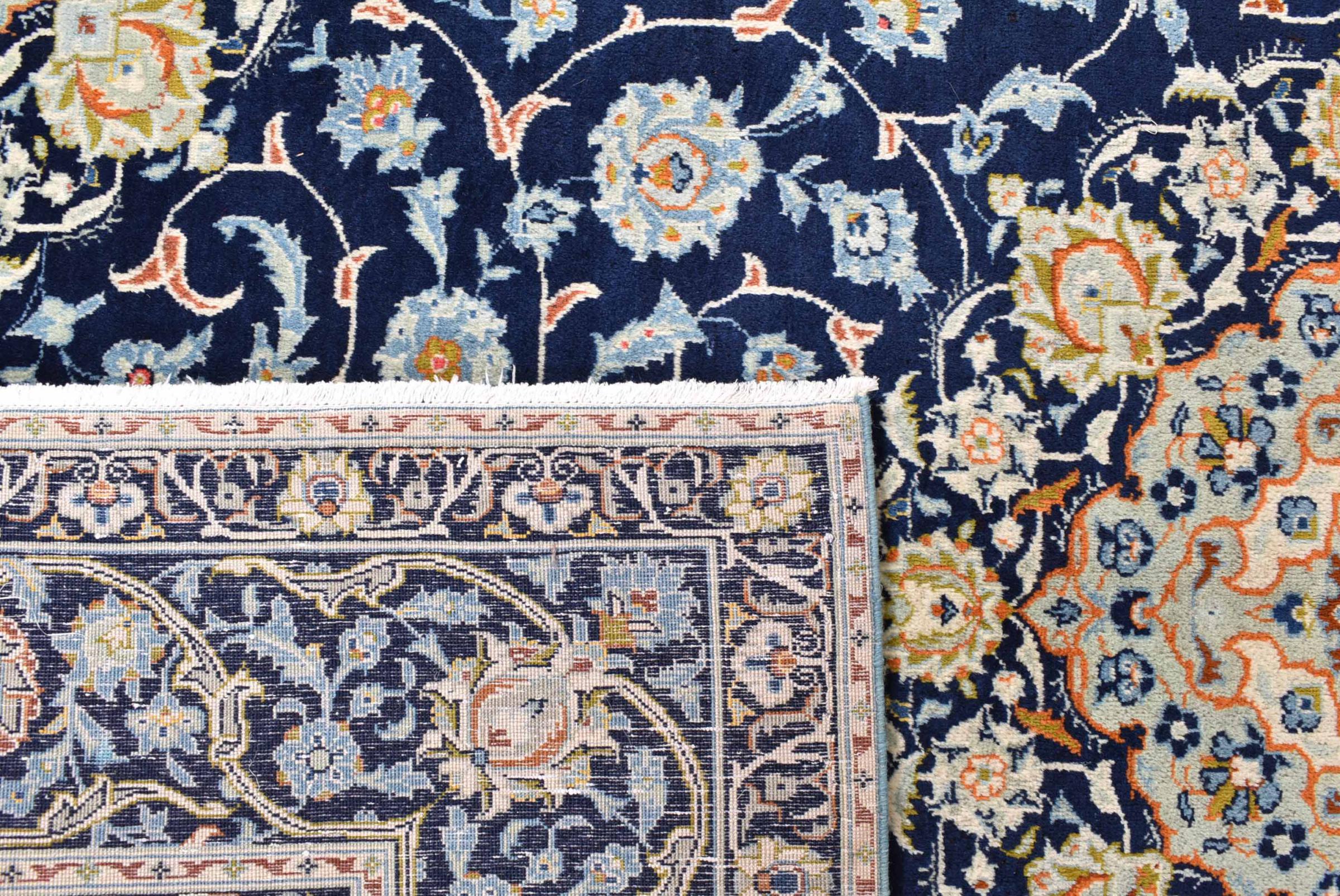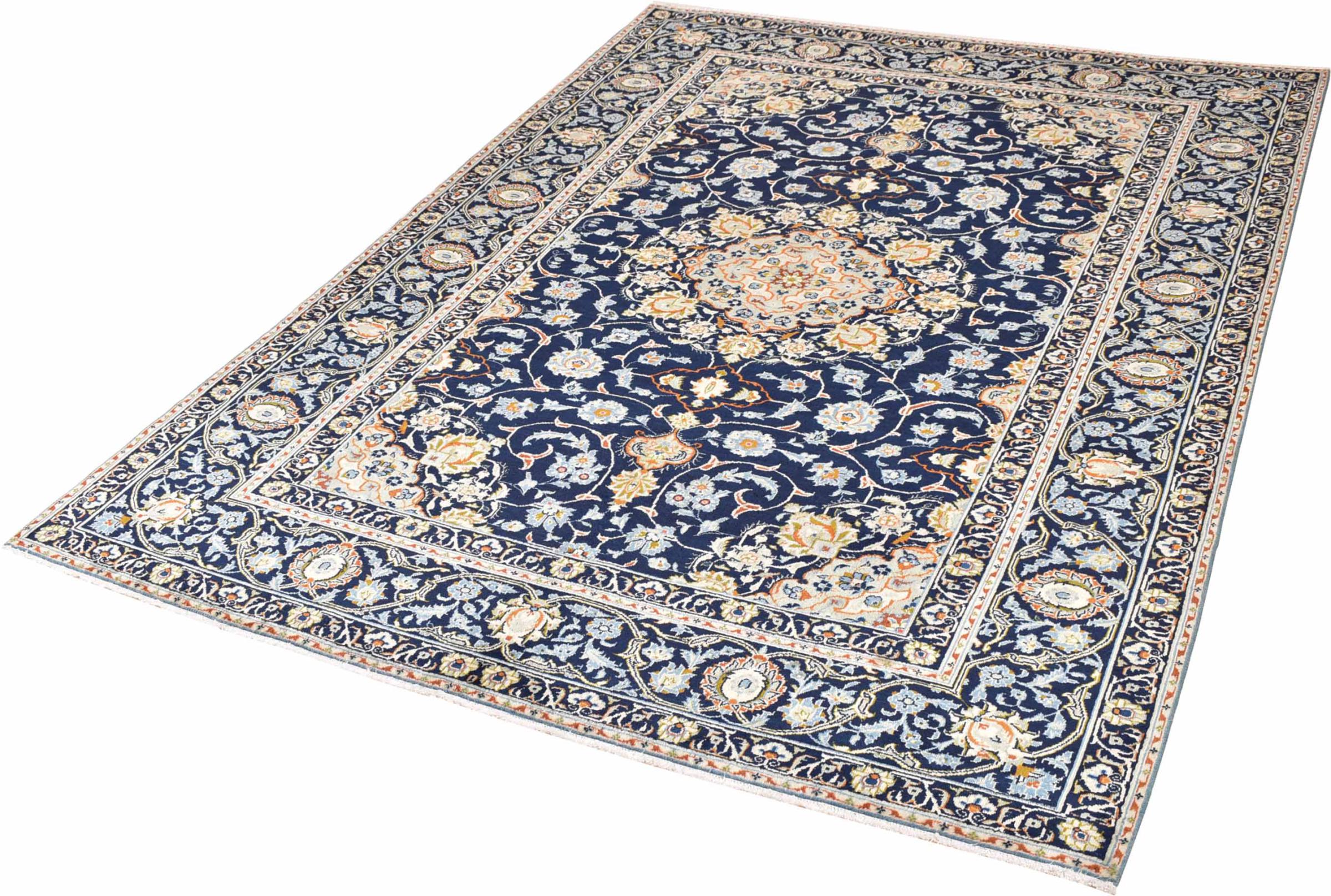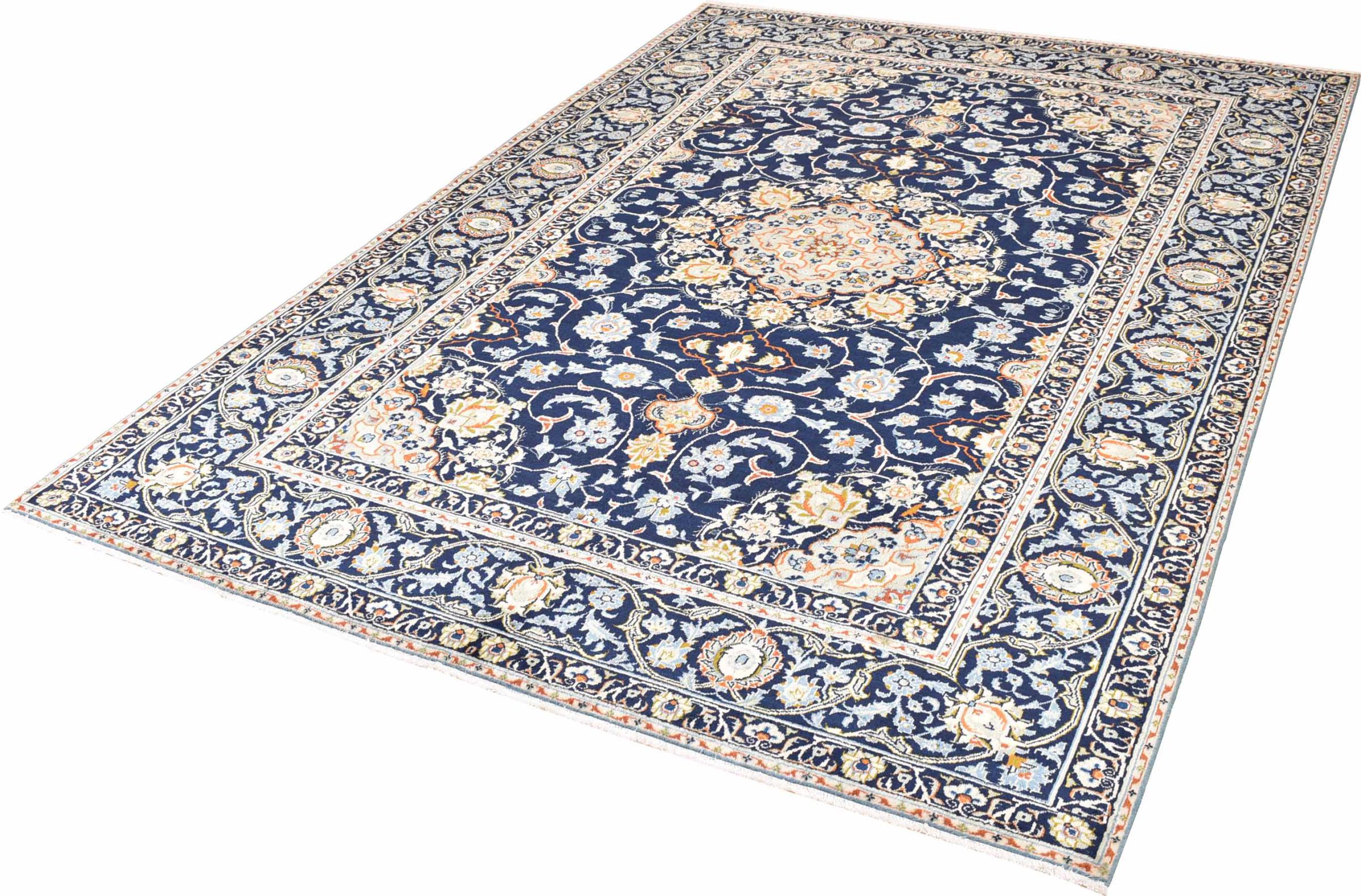 Hand knotted rugs from the city of Kashan (Keshan) are known worldwide. Not only do these Persian rugs have a very popular design, but their quality is undisputedly one of the best. In the Persian Empire the city was considered one of the most important trading places along the famous Silk Road. Kashan rugs usually have a central medallion, floral ornaments and a red background. They are made of high-quality sheep's wool and vegetable dyes.