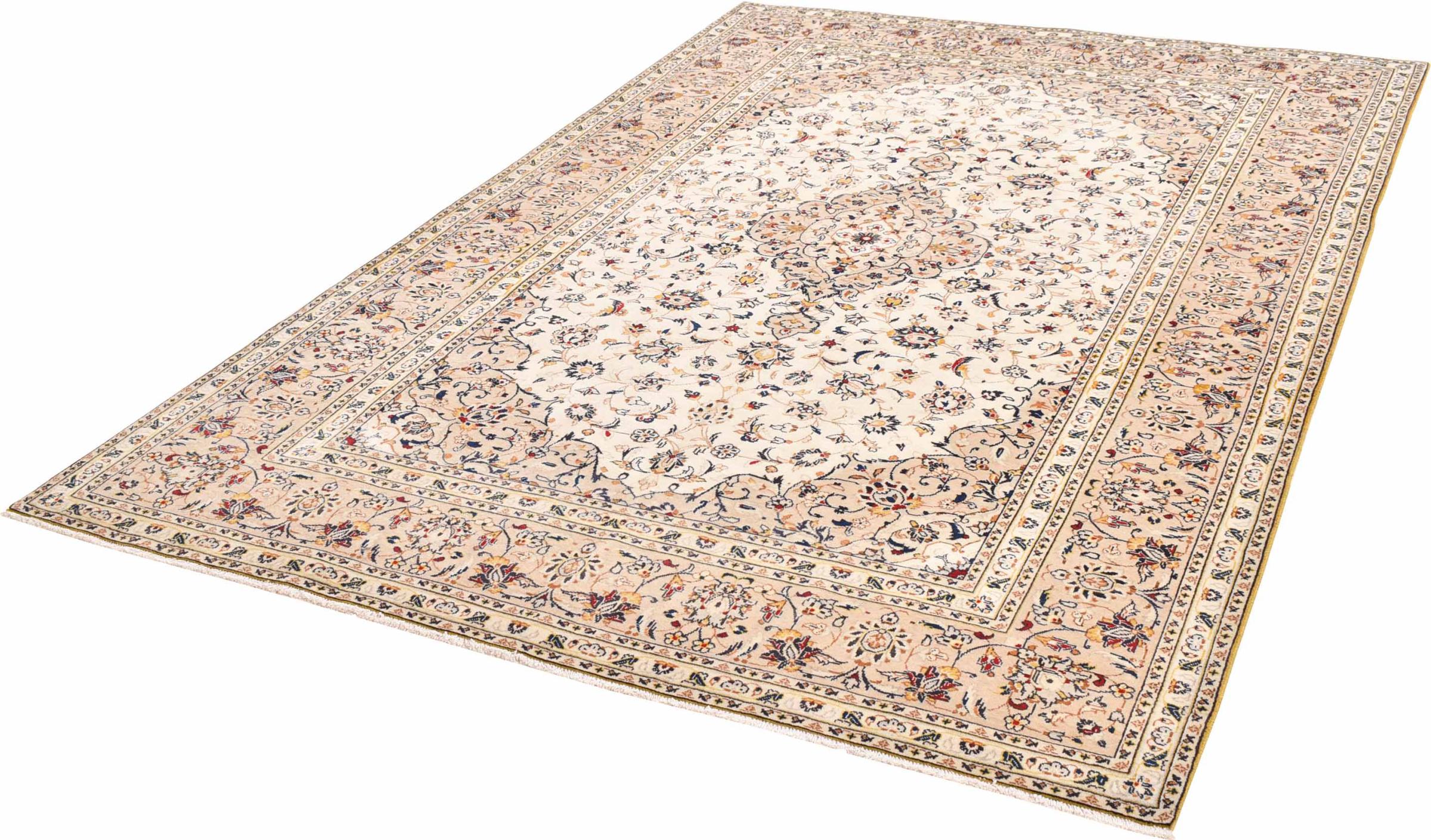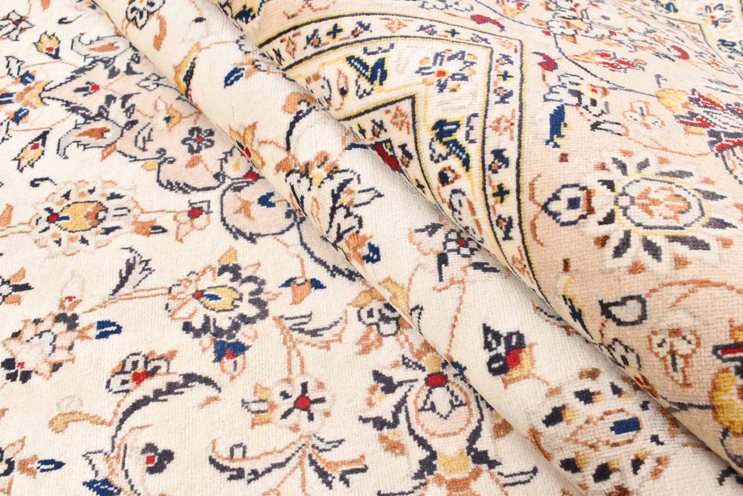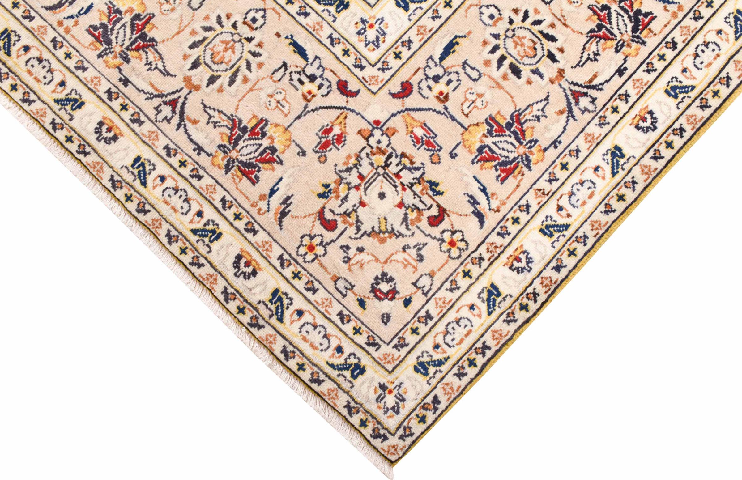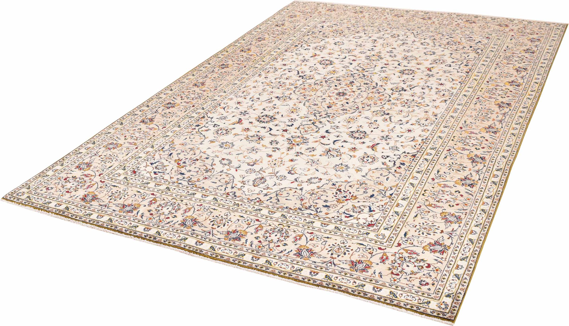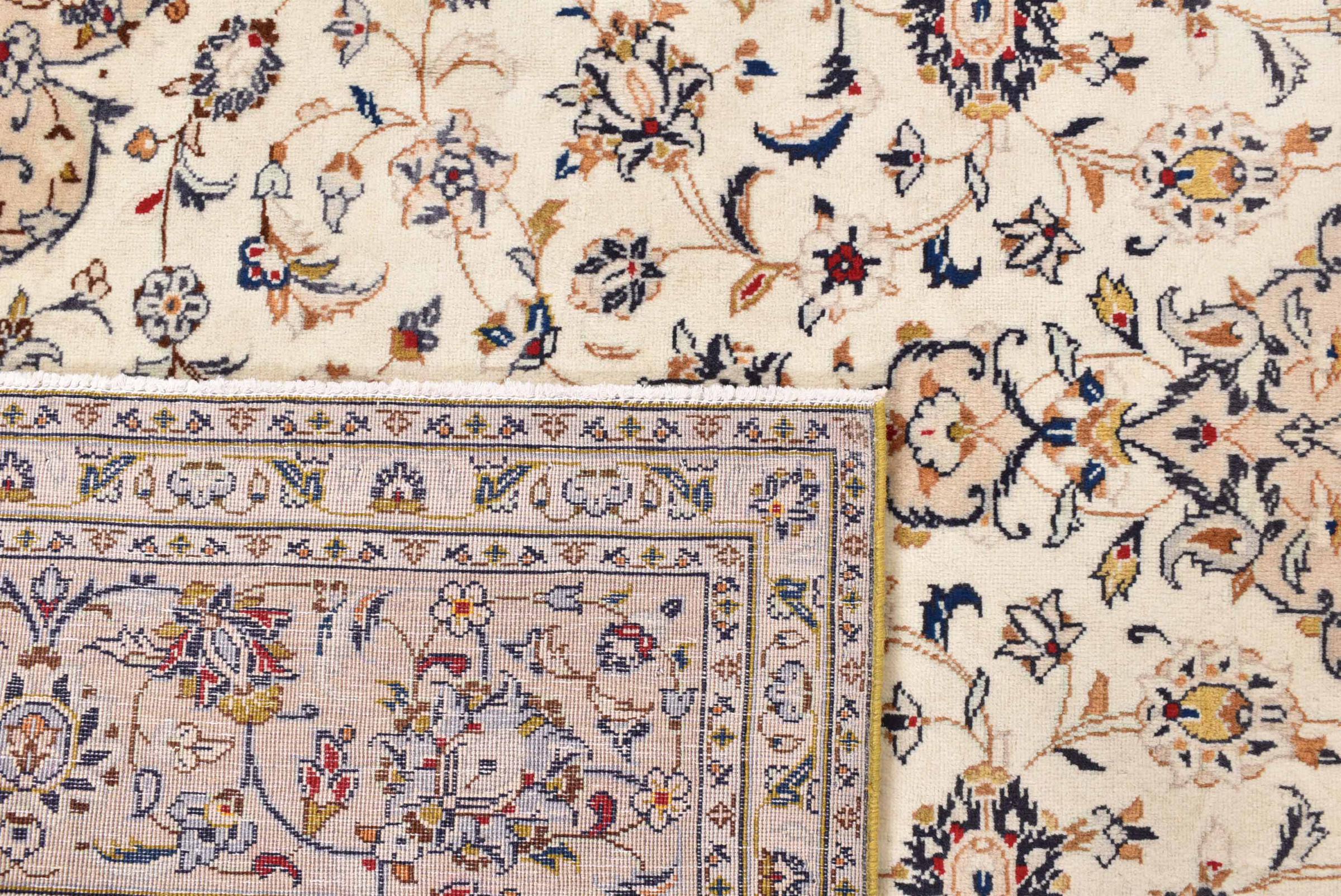 This carpet from Kashan (Keshan) is held in its very traditional and typical Persian design with beautiful ornaments. Kashan rugs are highly popular due to their exceptionally elegant design. These carpets originate from Kashan, a city on the ancient Silk Road. This carpet has been knotted by hand from high grade sheep wool and is going to be an one-of-a-kind highlight in your home.