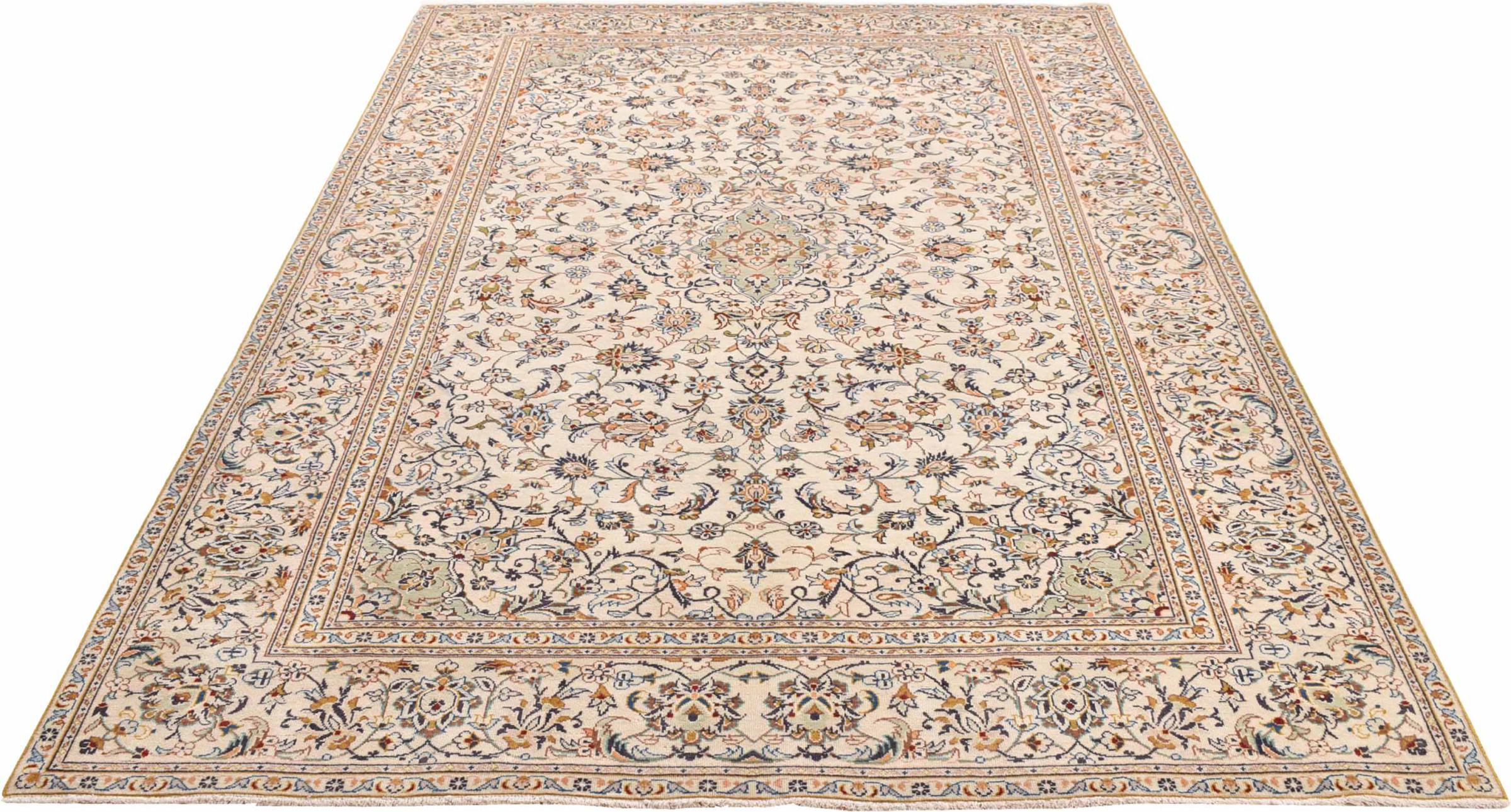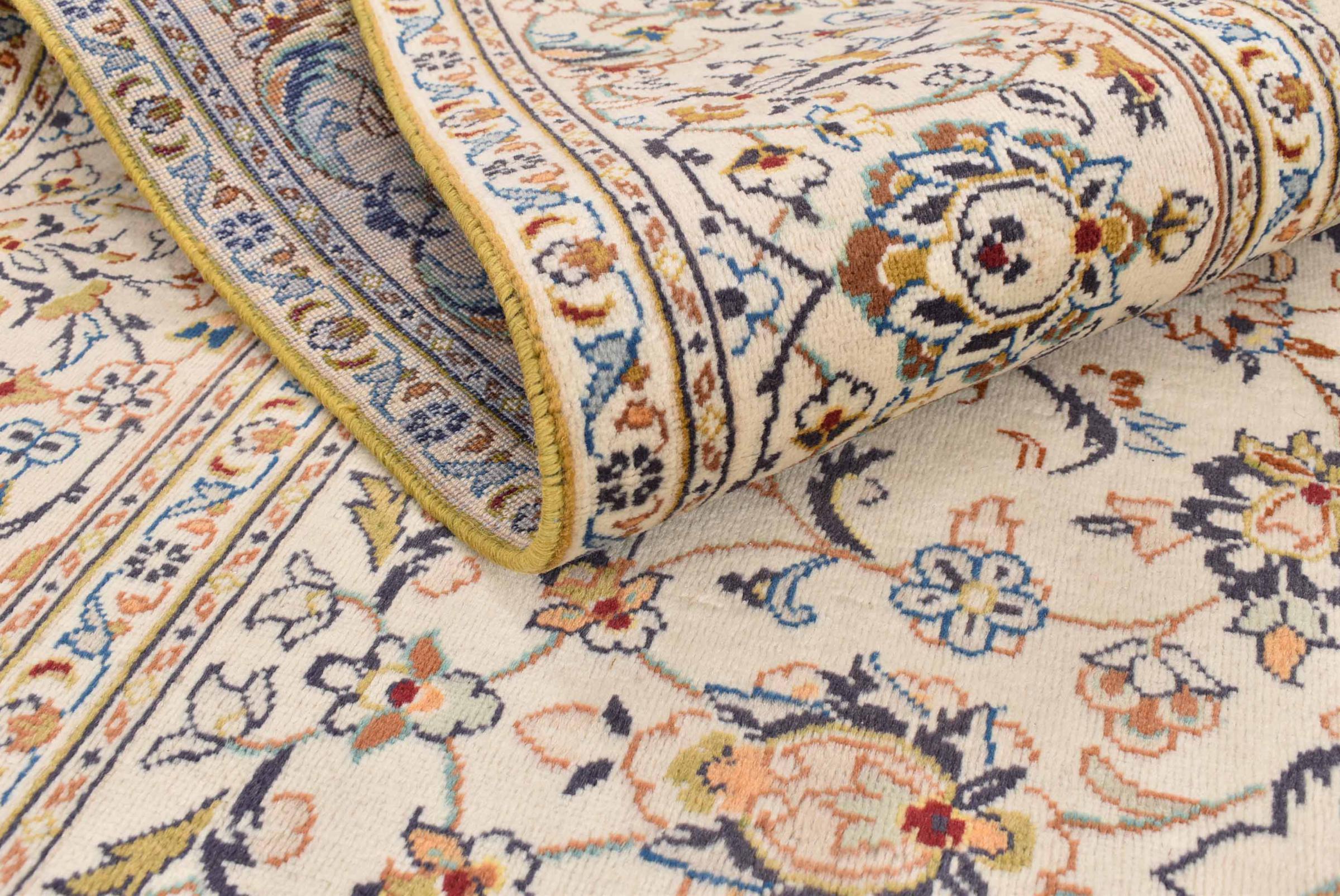 Hand knotted rugs from the city of Kashan (Keshan) are known worldwide. Not only do these Persian rugs have a very popular design, but their quality is undisputedly one of the best. In the Persian Empire the city was considered one of the most important trading places along the famous Silk Road. Kashan rugs usually have a central medallion, floral ornaments and a red background. They are made of high-quality sheep's wool and vegetable dyes.