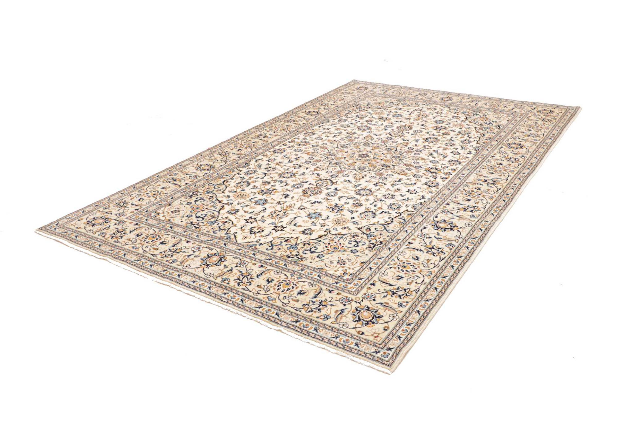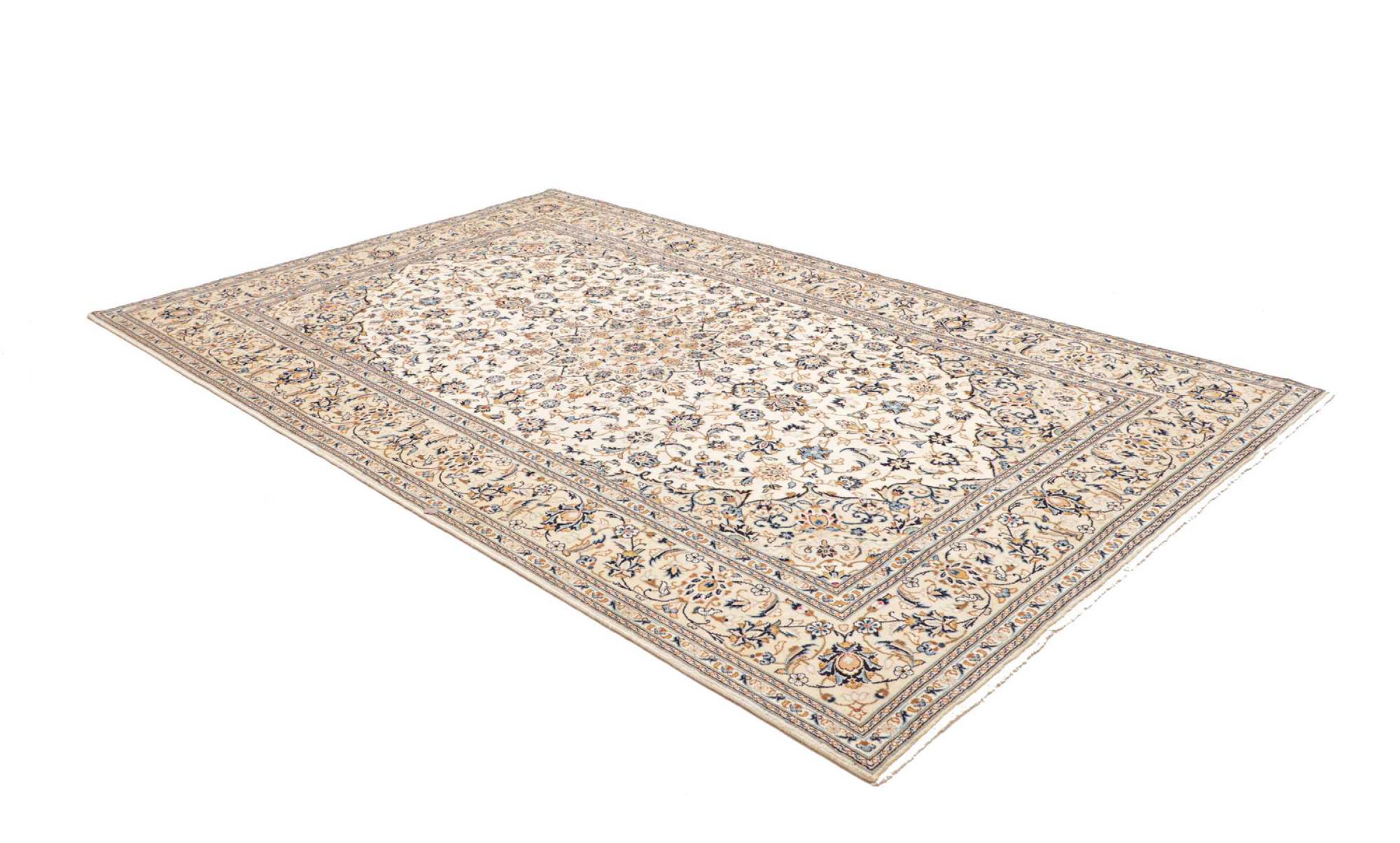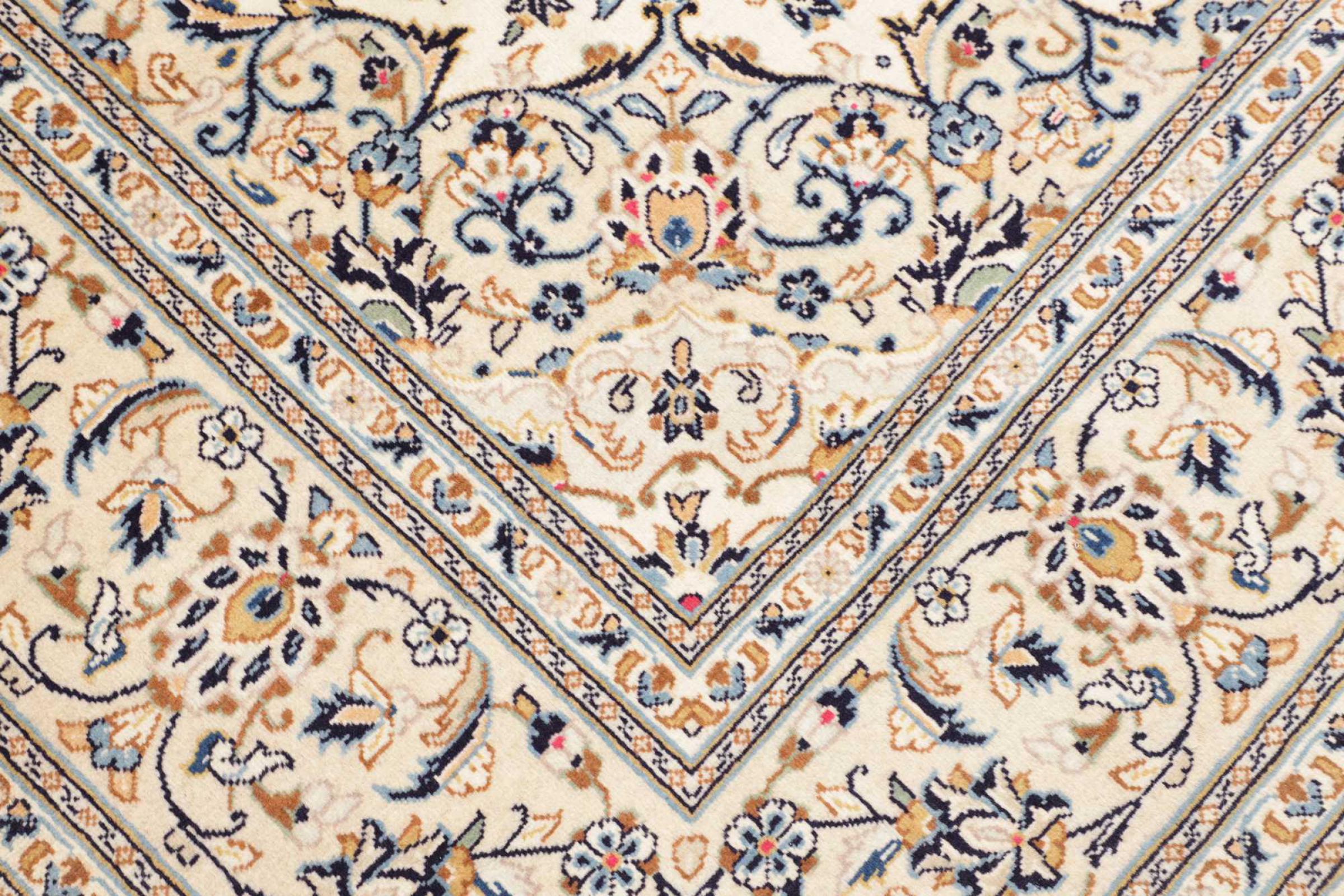 This carpet from Kashan (Keshan) is held in its very traditional and typical Persian design with beautiful ornaments. Kashan rugs are highly popular due to their exceptionally elegant design. These carpets originate from Kashan, a city on the ancient Silk Road. This carpet has been knotted by hand from high grade sheep wool and is going to be an one-of-a-kind highlight in your home.