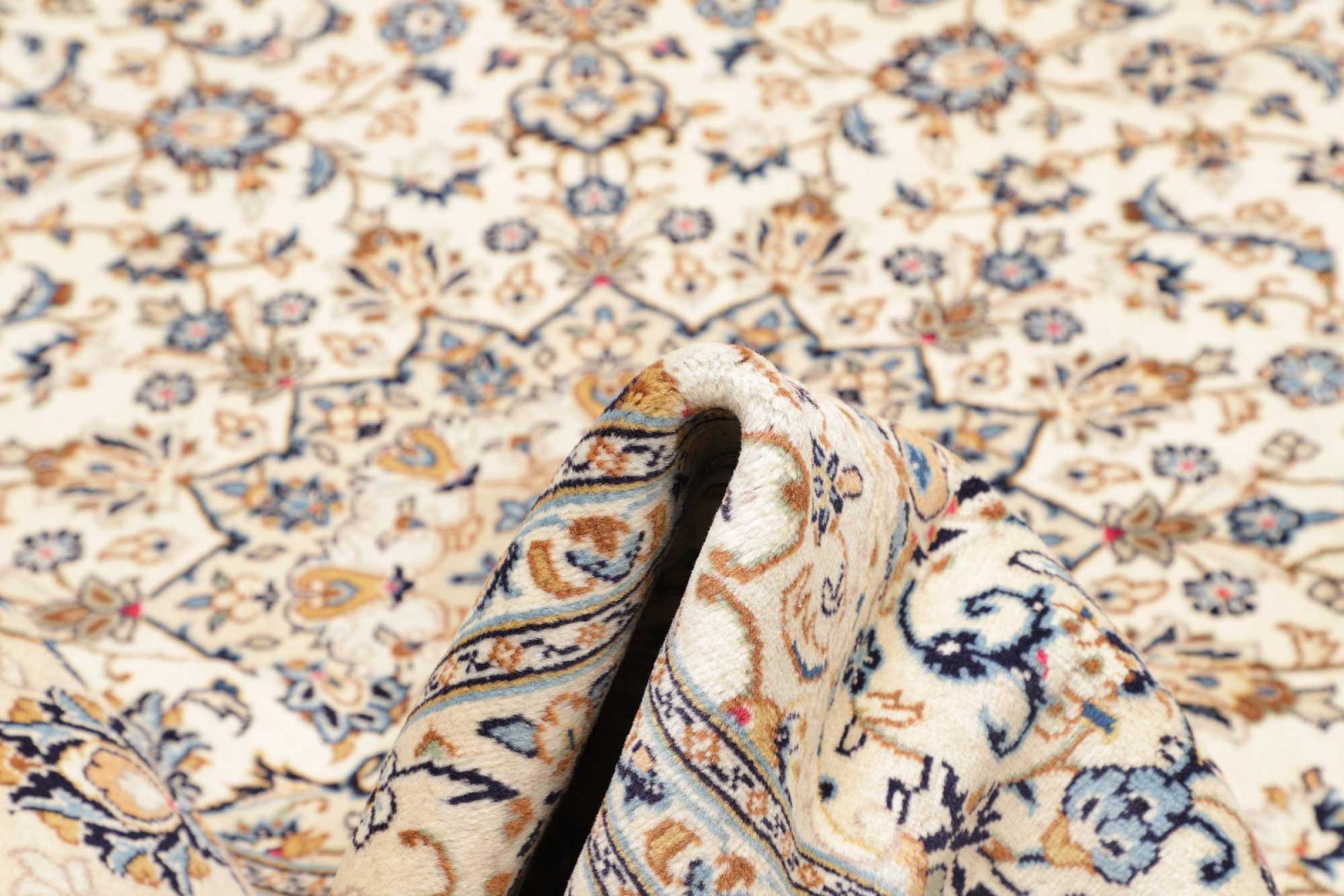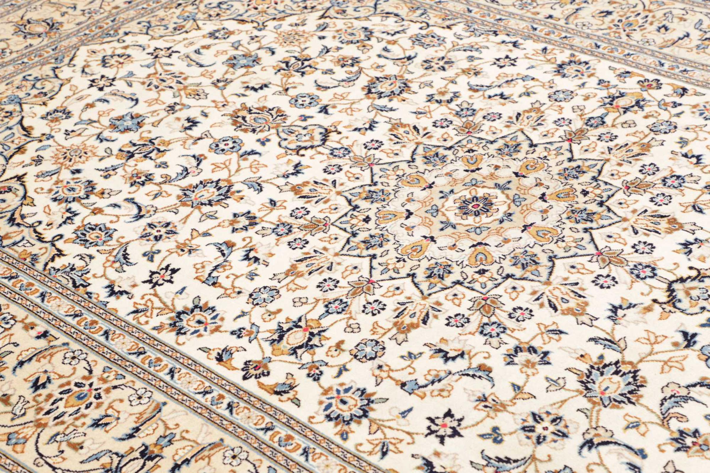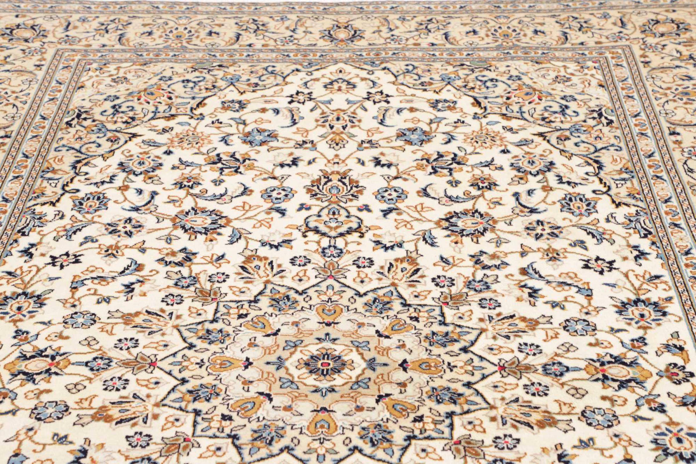 This carpet from Kashan (Keshan) is held in its very traditional and typical Persian design with beautiful ornaments. Kashan rugs are highly popular due to their exceptionally elegant design. These carpets originate from Kashan, a city on the ancient Silk Road. This carpet has been knotted by hand from high grade sheep wool and is going to be an one-of-a-kind highlight in your home.