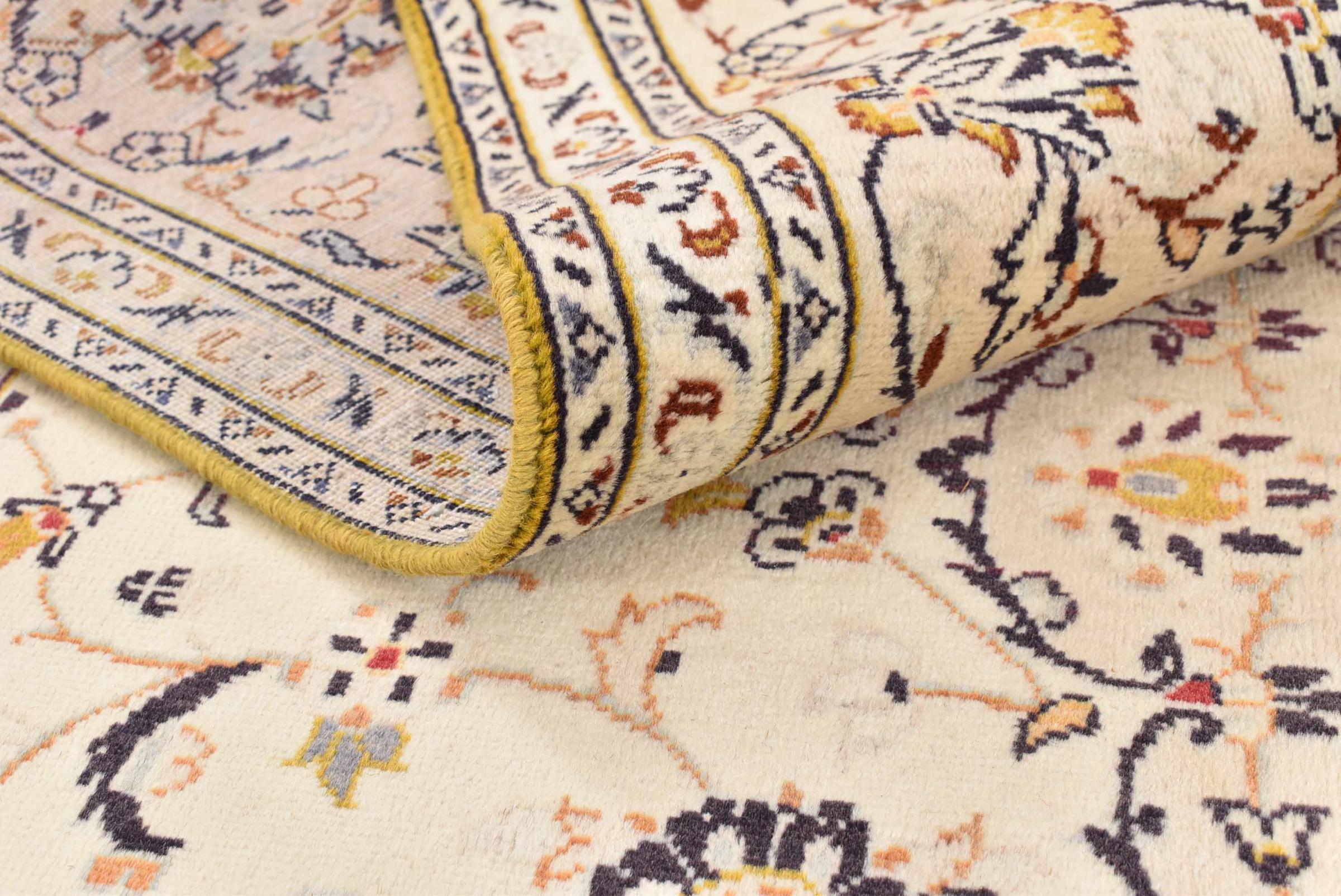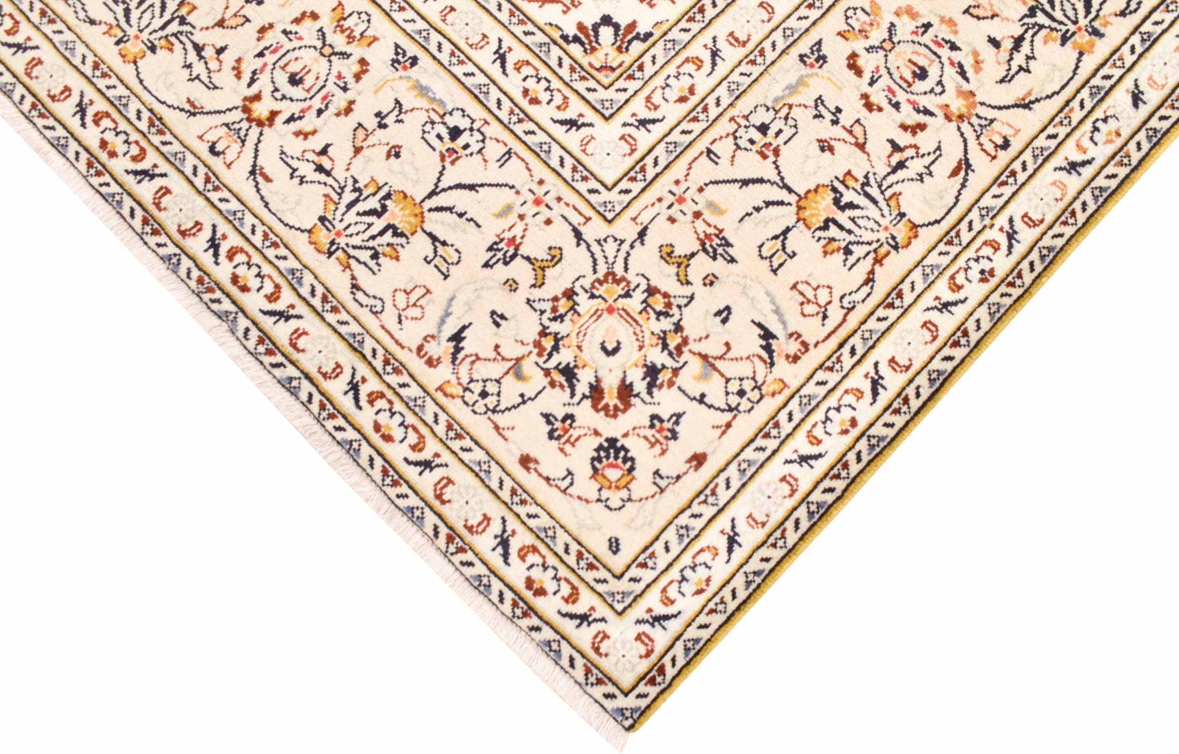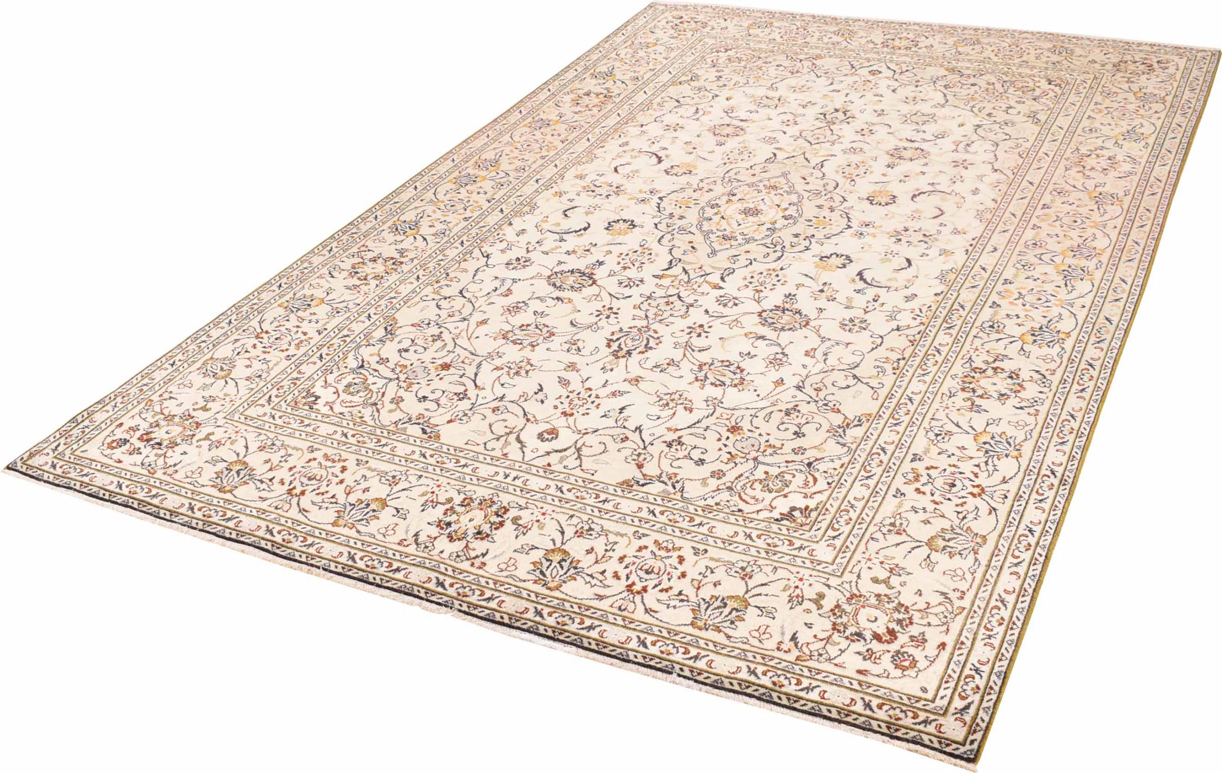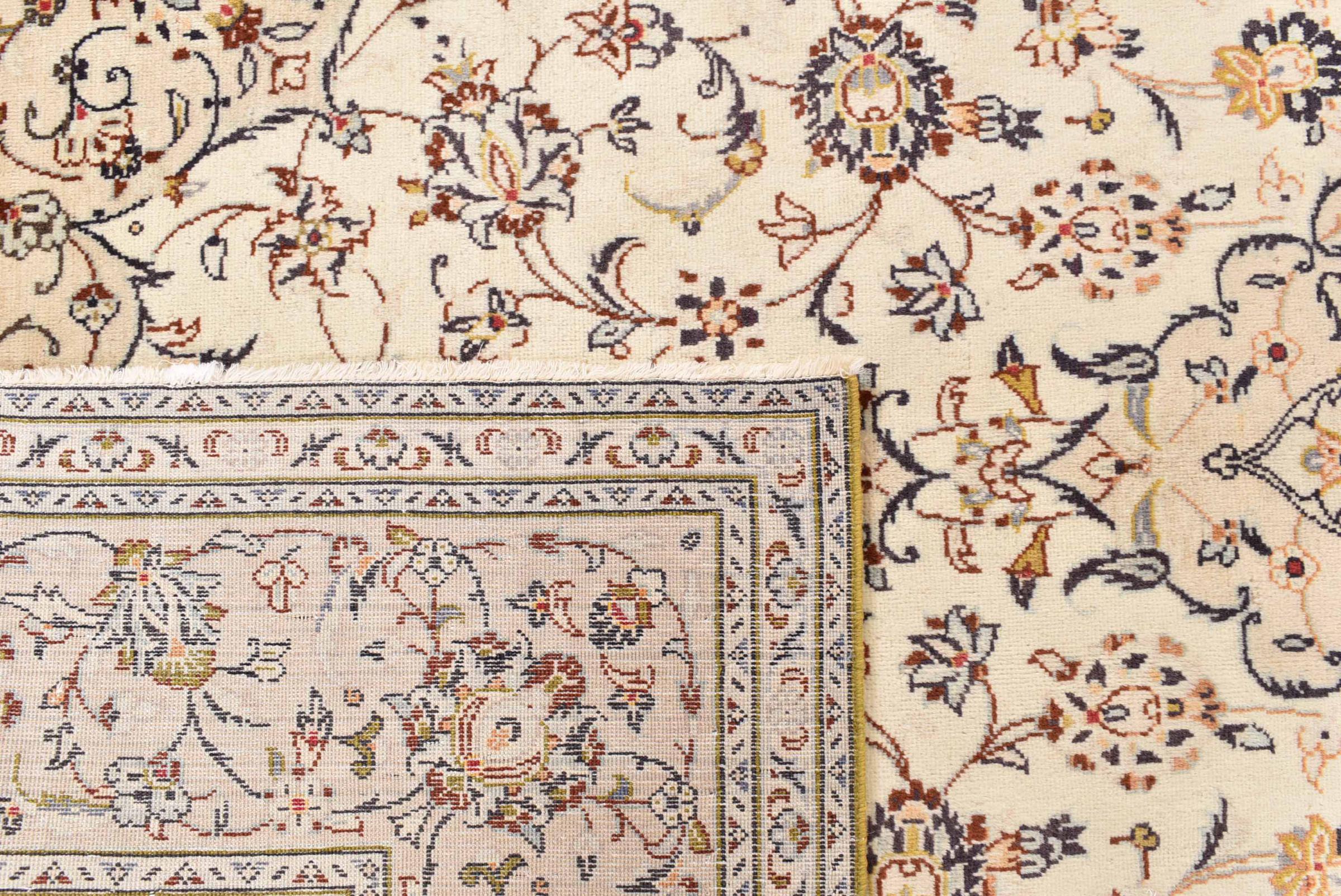 This carpet from Kashan (Keshan) is held in its very traditional and typical Persian design with beautiful ornaments. Kashan rugs are highly popular due to their exceptionally elegant design. These carpets originate from Kashan, a city on the ancient Silk Road. This carpet has been knotted by hand from high grade sheep wool and is going to be an one-of-a-kind highlight in your home.