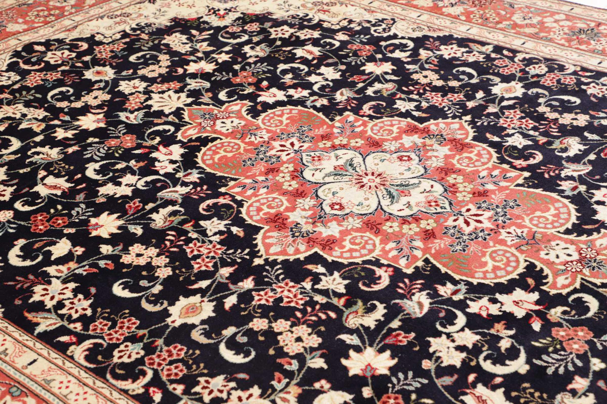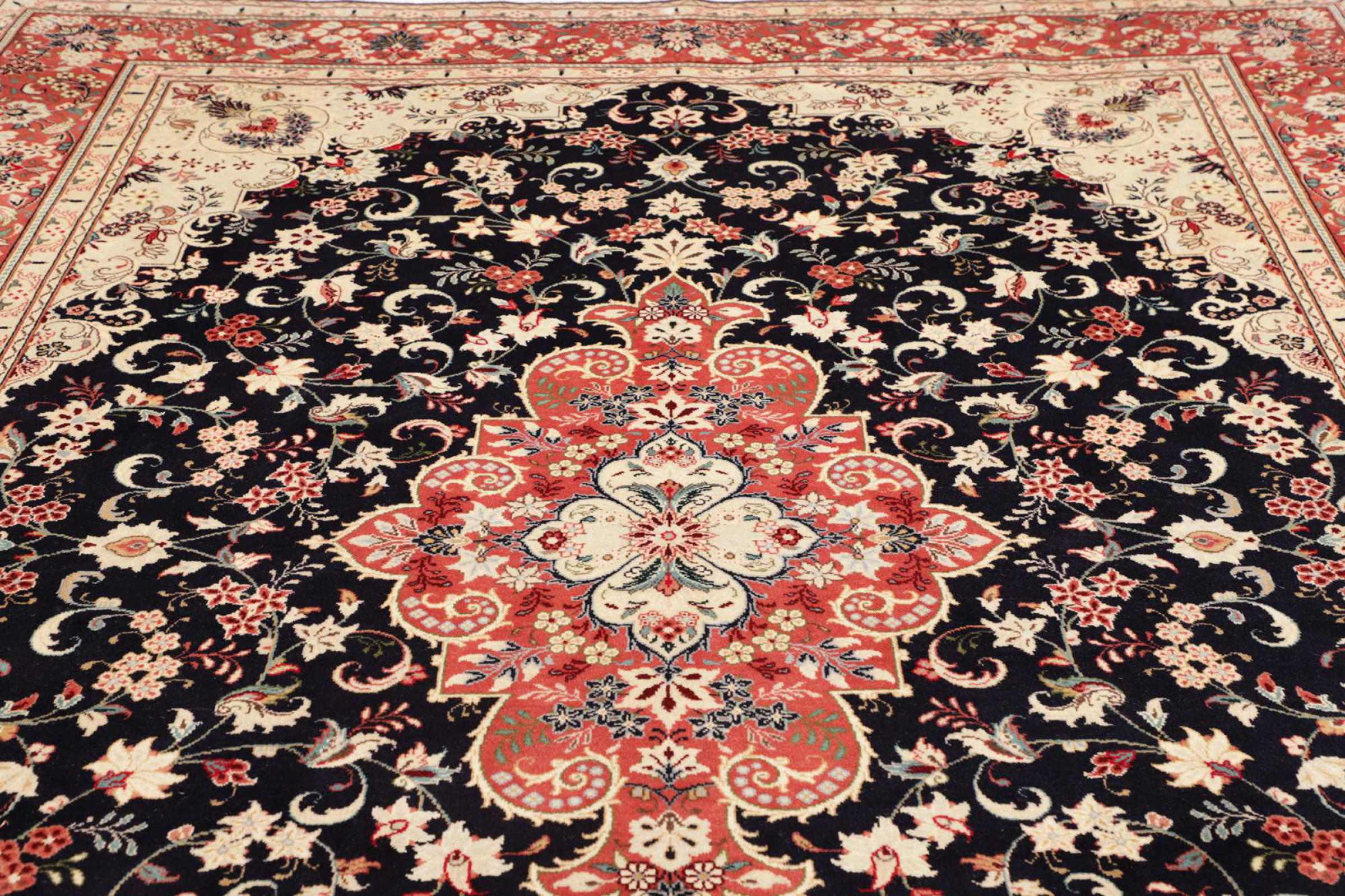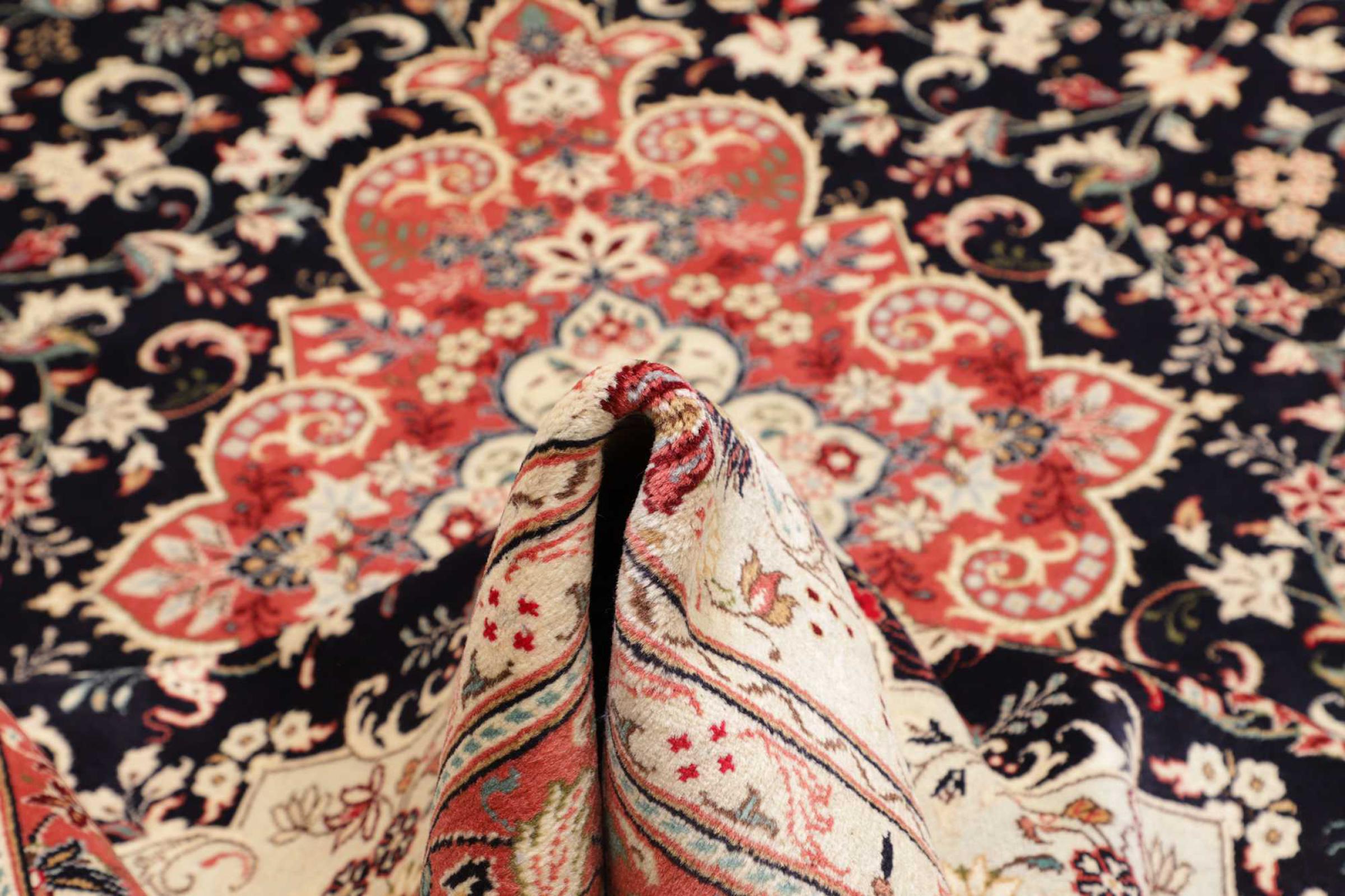 Hand knotted rugs from the city of Kashan (Keshan) are known worldwide. Not only do these Persian rugs have a very popular design, but their quality is undisputedly one of the best. In the Persian Empire the city was considered one of the most important trading places along the famous Silk Road. Kashan rugs usually have a central medallion, floral ornaments and a red background. They are made of high-quality sheep's wool and vegetable dyes.