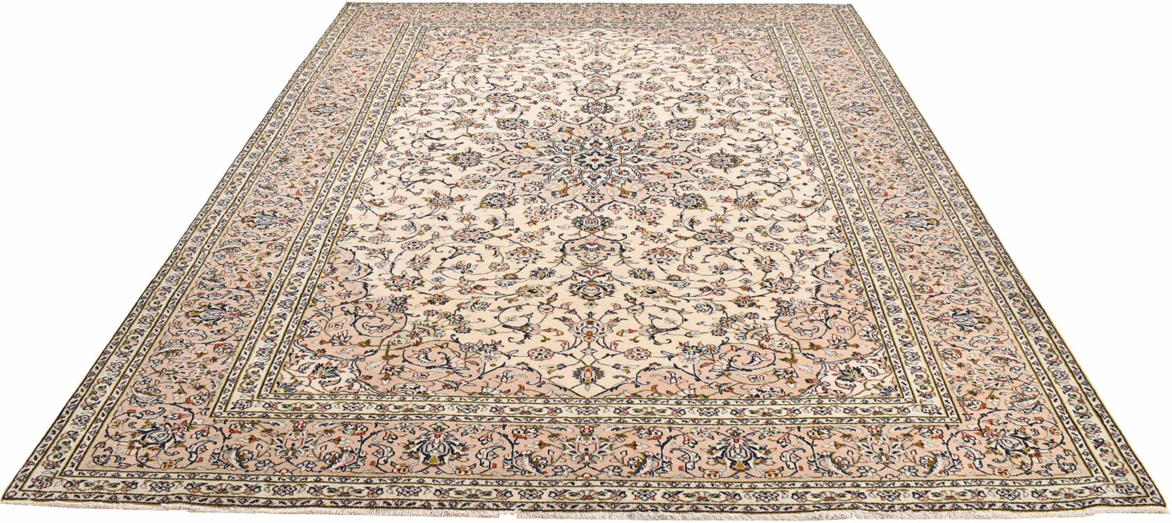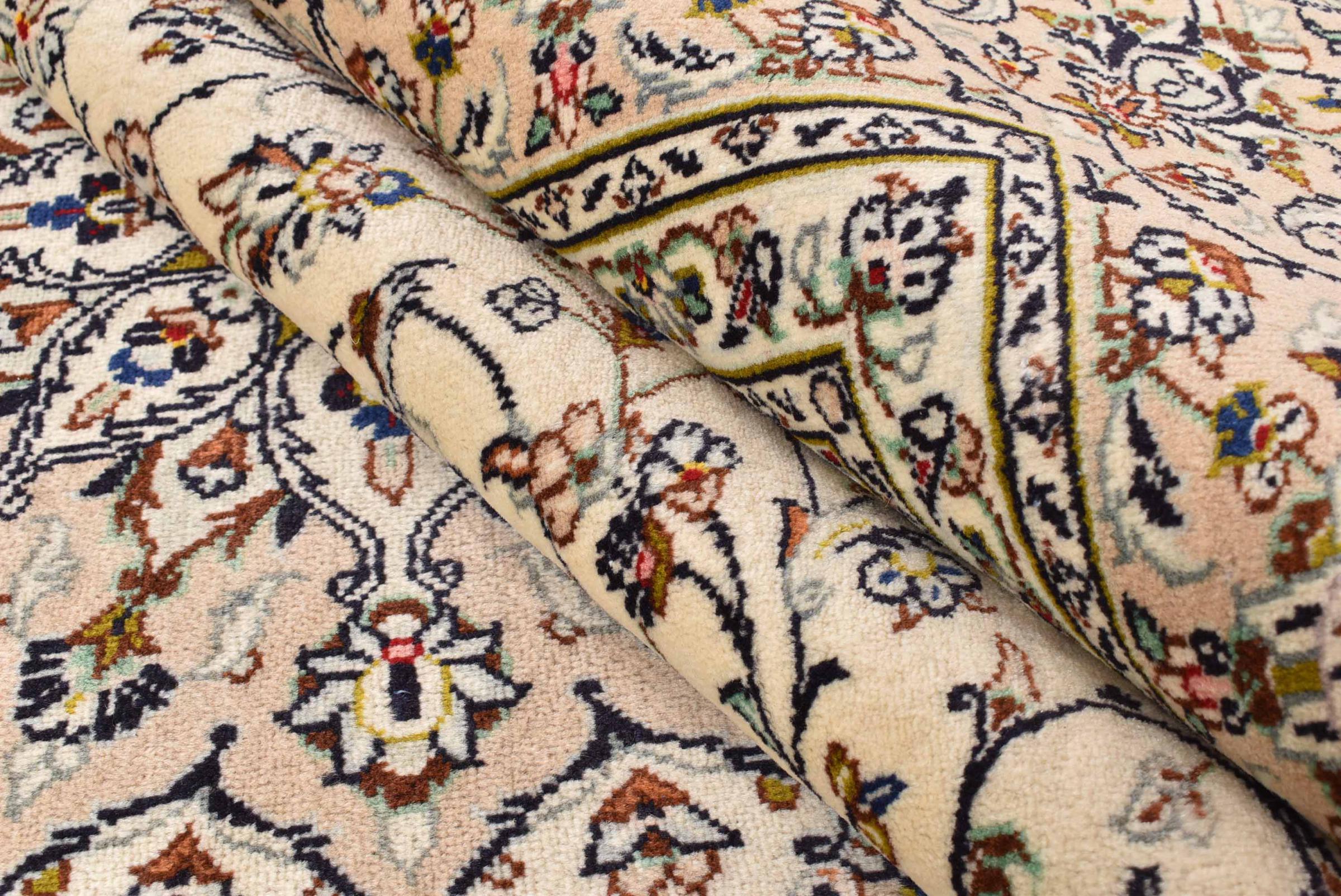 Hand knotted rugs from the city of Kashan (Keshan) are known worldwide. Not only do these Persian rugs have a very popular design, but their quality is undisputedly one of the best. In the Persian Empire the city was considered one of the most important trading places along the famous Silk Road. Kashan rugs usually have a central medallion, floral ornaments and a red background. They are made of high-quality sheep's wool and vegetable dyes.