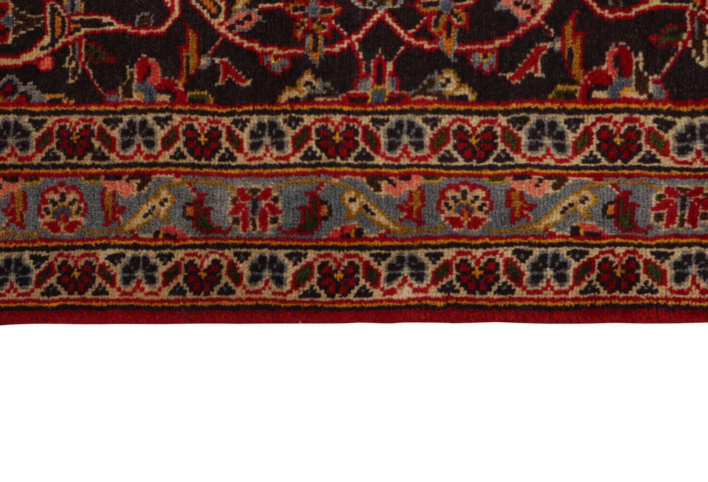 This carpet from Kashan (Keshan) is held in its very traditional and typical Persian design with beautiful ornaments. Kashan rugs are highly popular due to their exceptionally elegant design. These carpets originate from Kashan, a city on the ancient Silk Road. This carpet has been knotted by hand from high grade sheep wool and is going to be an one-of-a-kind highlight in your home.