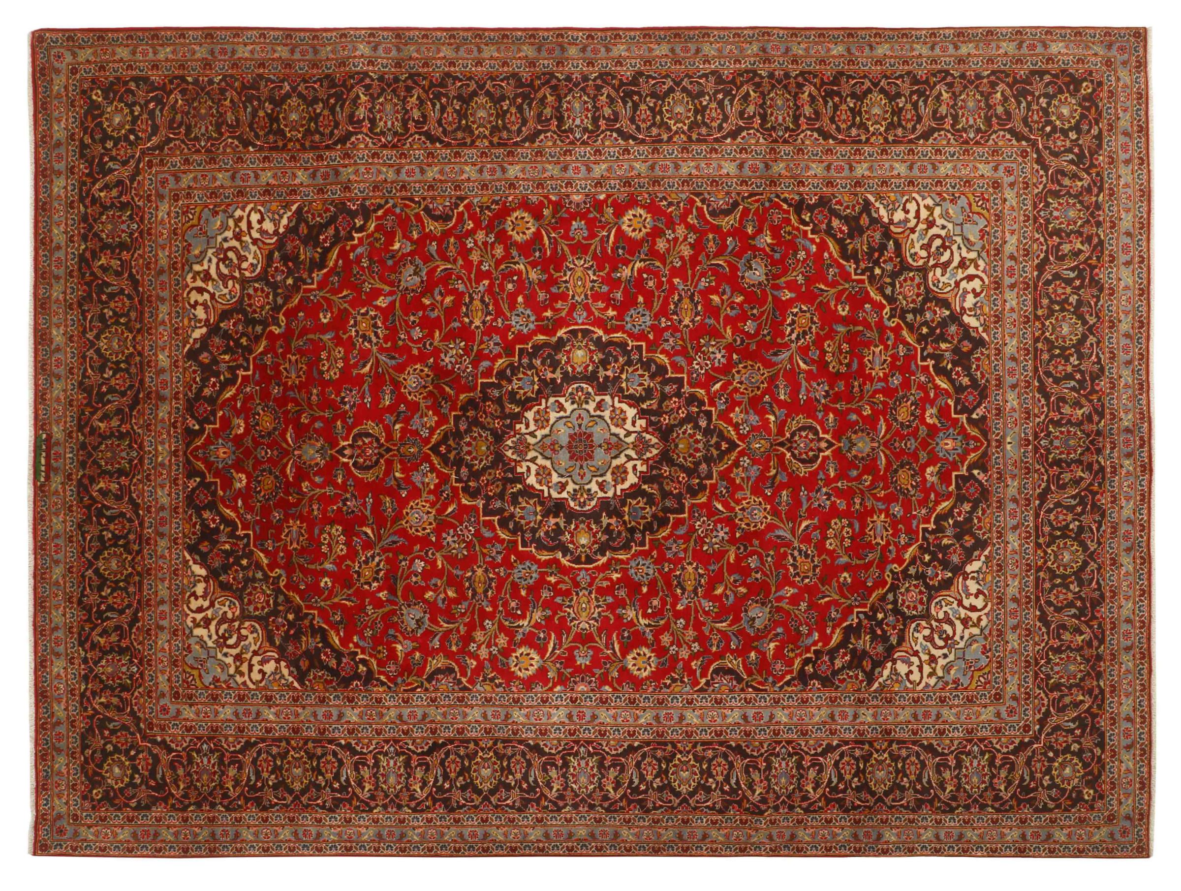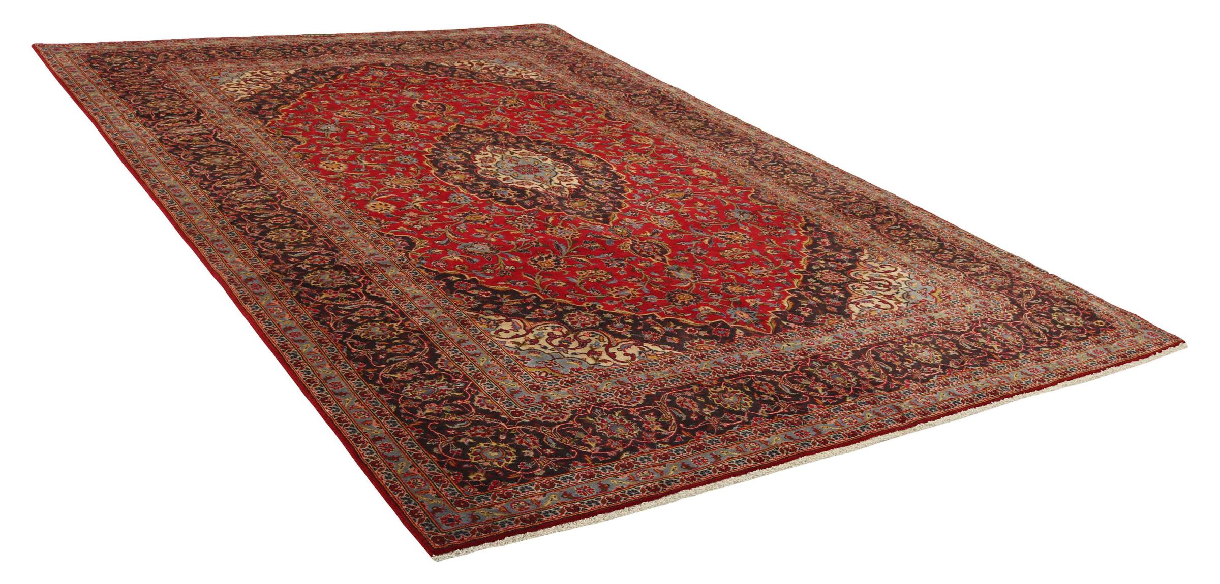 Hand knotted rugs from the city of Kashan (Keshan) are known worldwide. Not only do these Persian rugs have a very popular design, but their quality is undisputedly one of the best. In the Persian Empire the city was considered one of the most important trading places along the famous Silk Road. Kashan rugs usually have a central medallion, floral ornaments and a red background. They are made of high-quality sheep's wool and vegetable dyes.