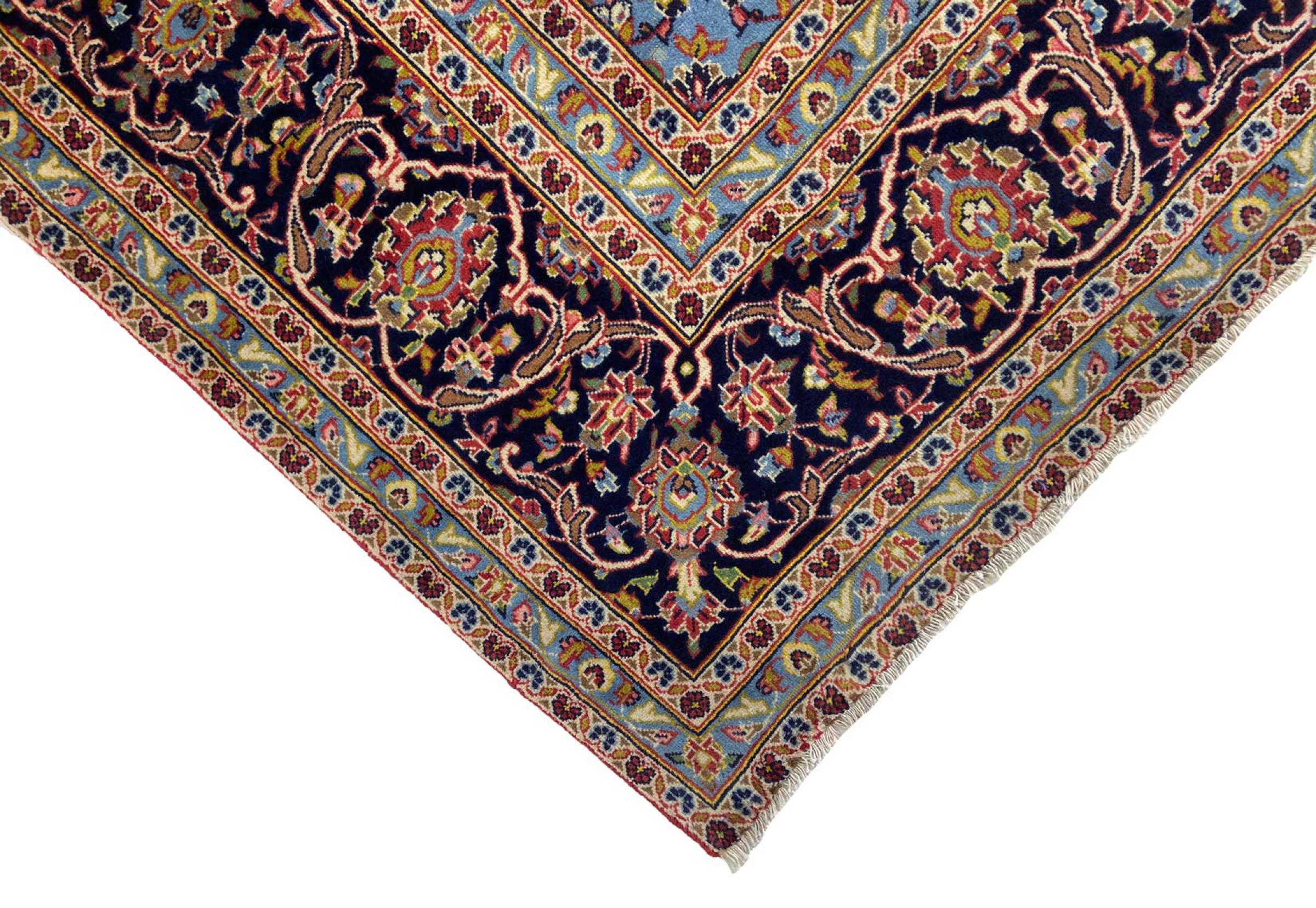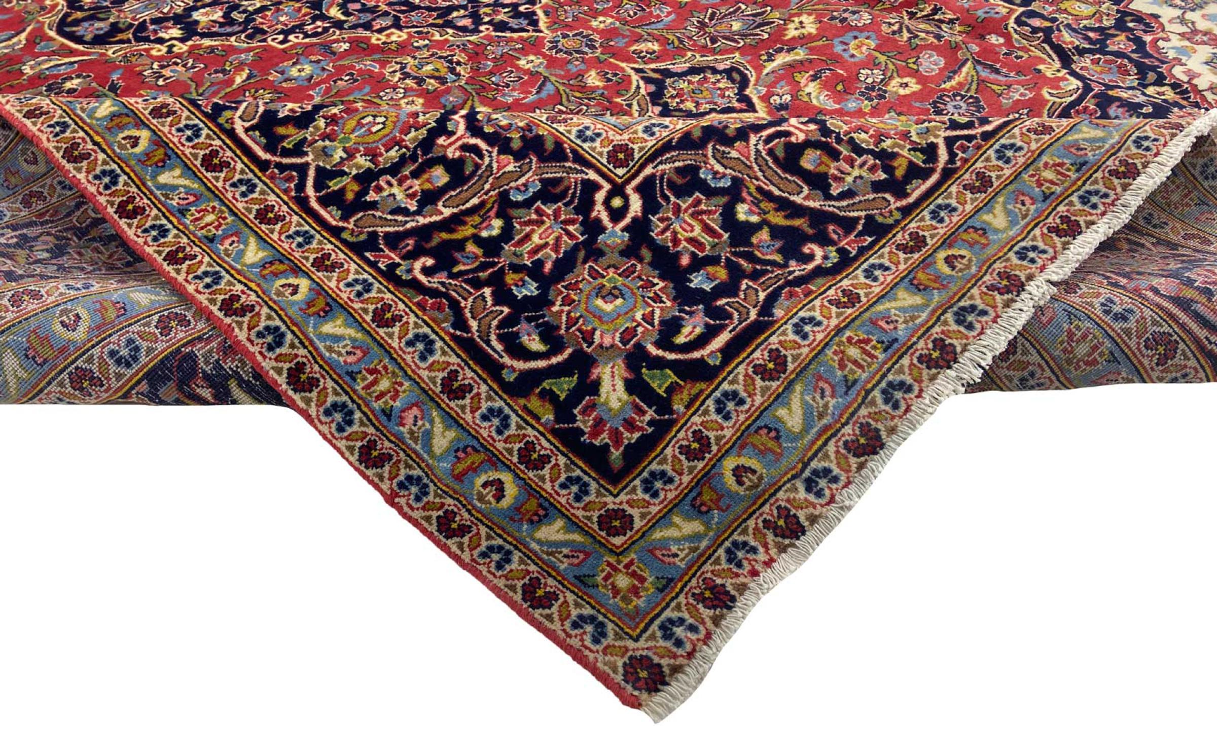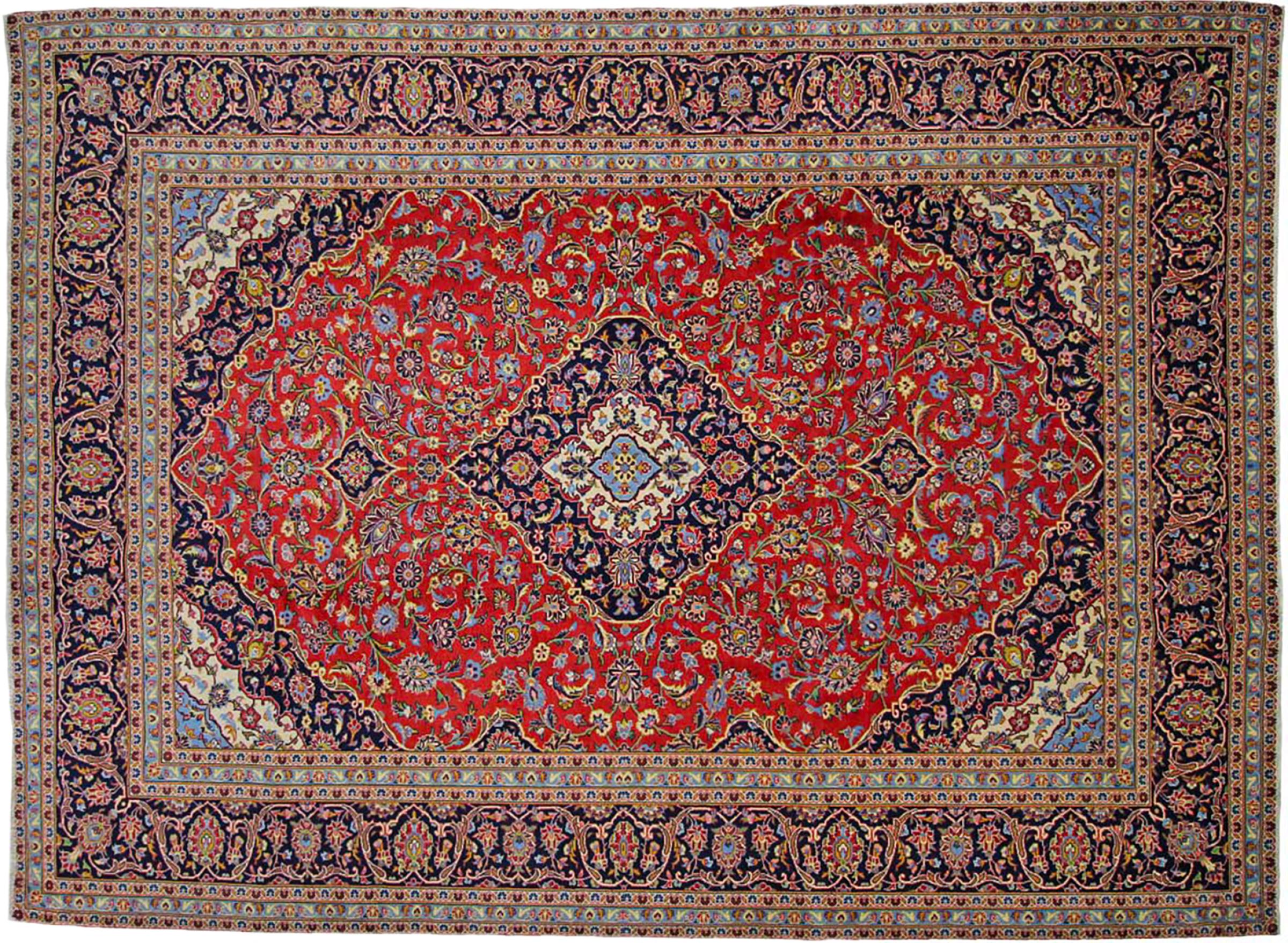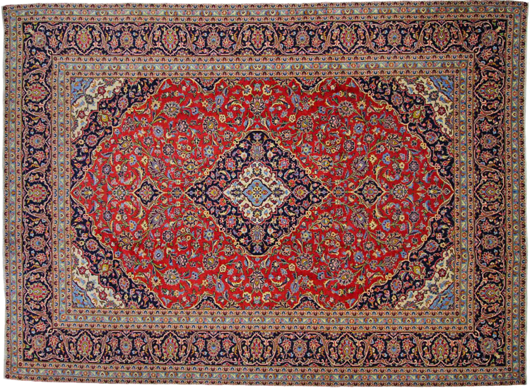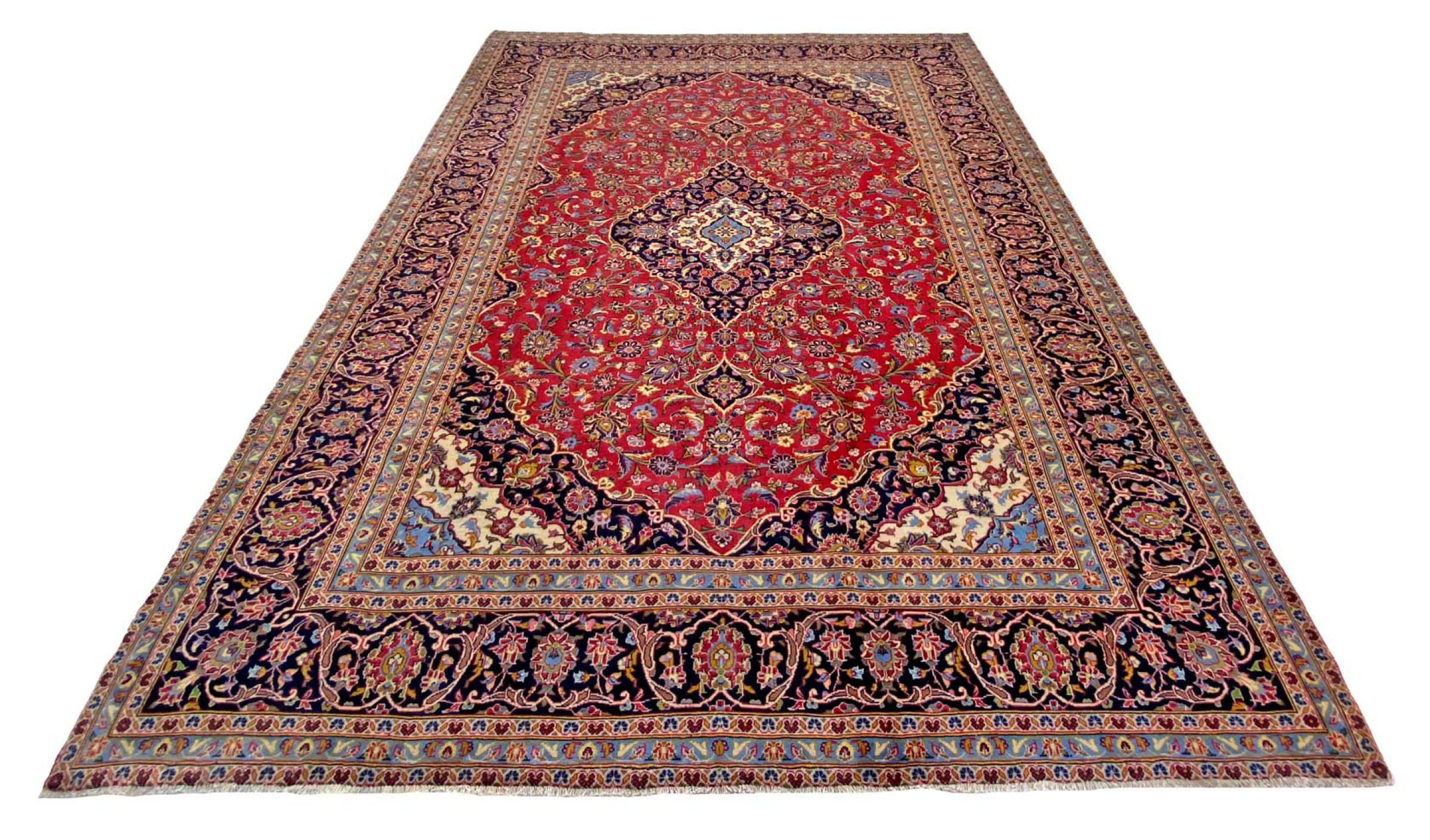 Hand knotted rugs from the city of Kashan (Keshan) are known worldwide. Not only do these Persian rugs have a very popular design, but their quality is undisputedly one of the best. In the Persian Empire the city was considered one of the most important trading places along the famous Silk Road. Kashan rugs usually have a central medallion, floral ornaments and a red background. They are made of high-quality sheep's wool and vegetable dyes.