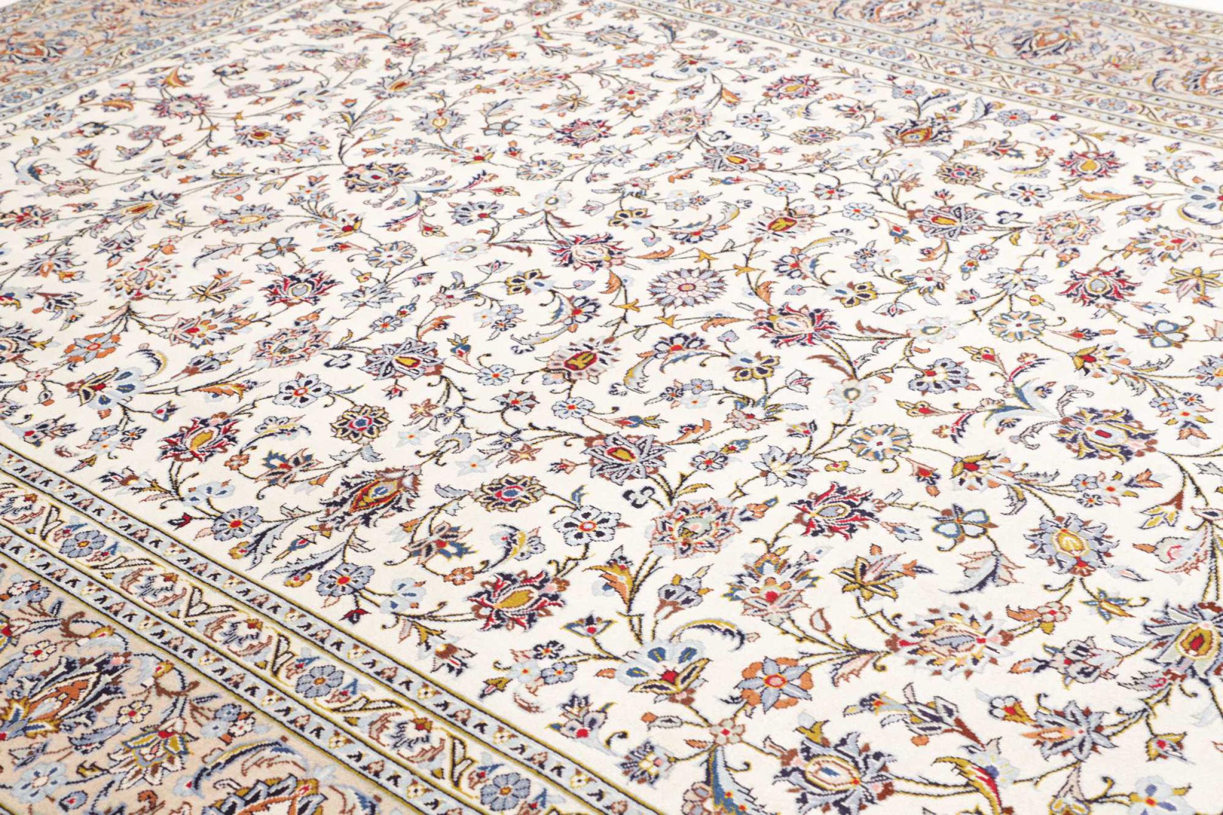 Hand knotted rugs from the city of Kashan (Keshan) are known worldwide. Not only do these Persian rugs have a very popular design, but their quality is undisputedly one of the best. In the Persian Empire the city was considered one of the most important trading places along the famous Silk Road. Kashan rugs usually have a central medallion, floral ornaments and a red background. They are made of high-quality sheep's wool and vegetable dyes.