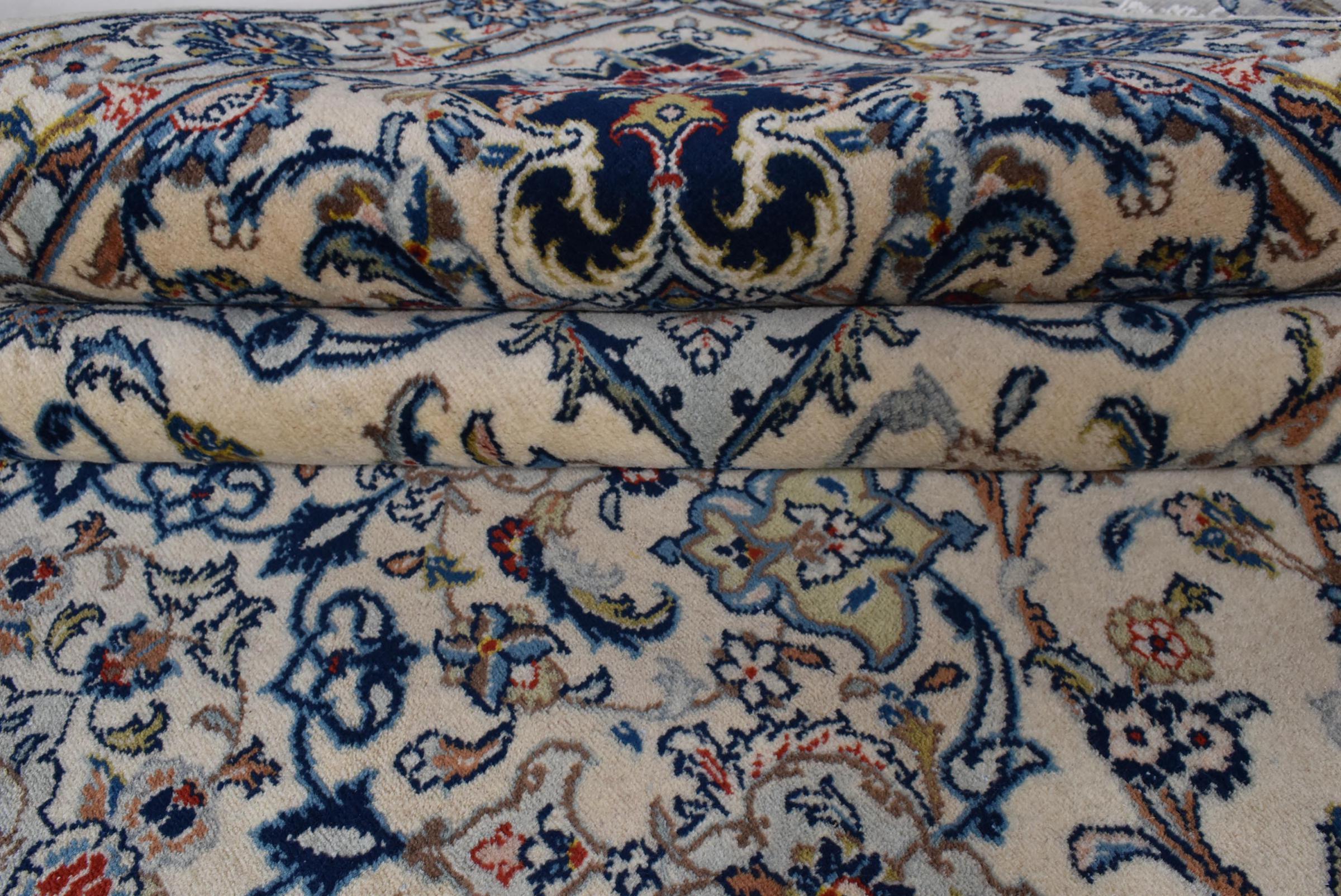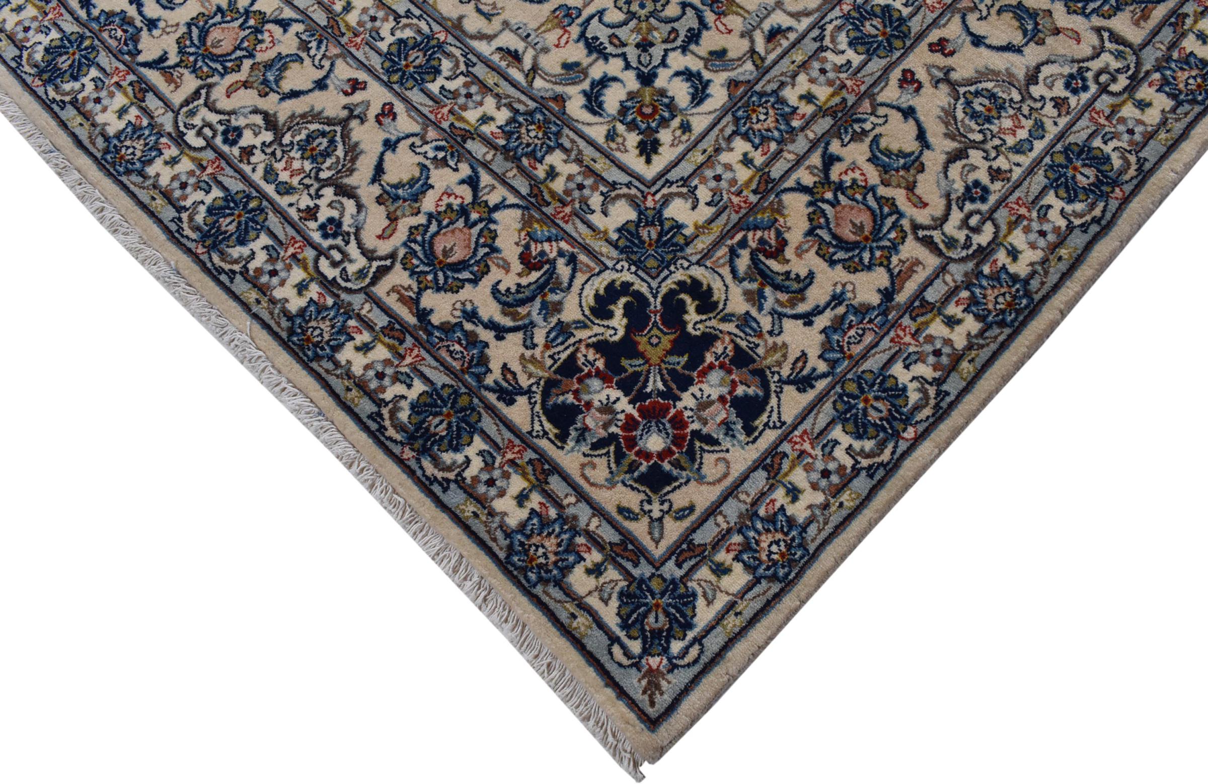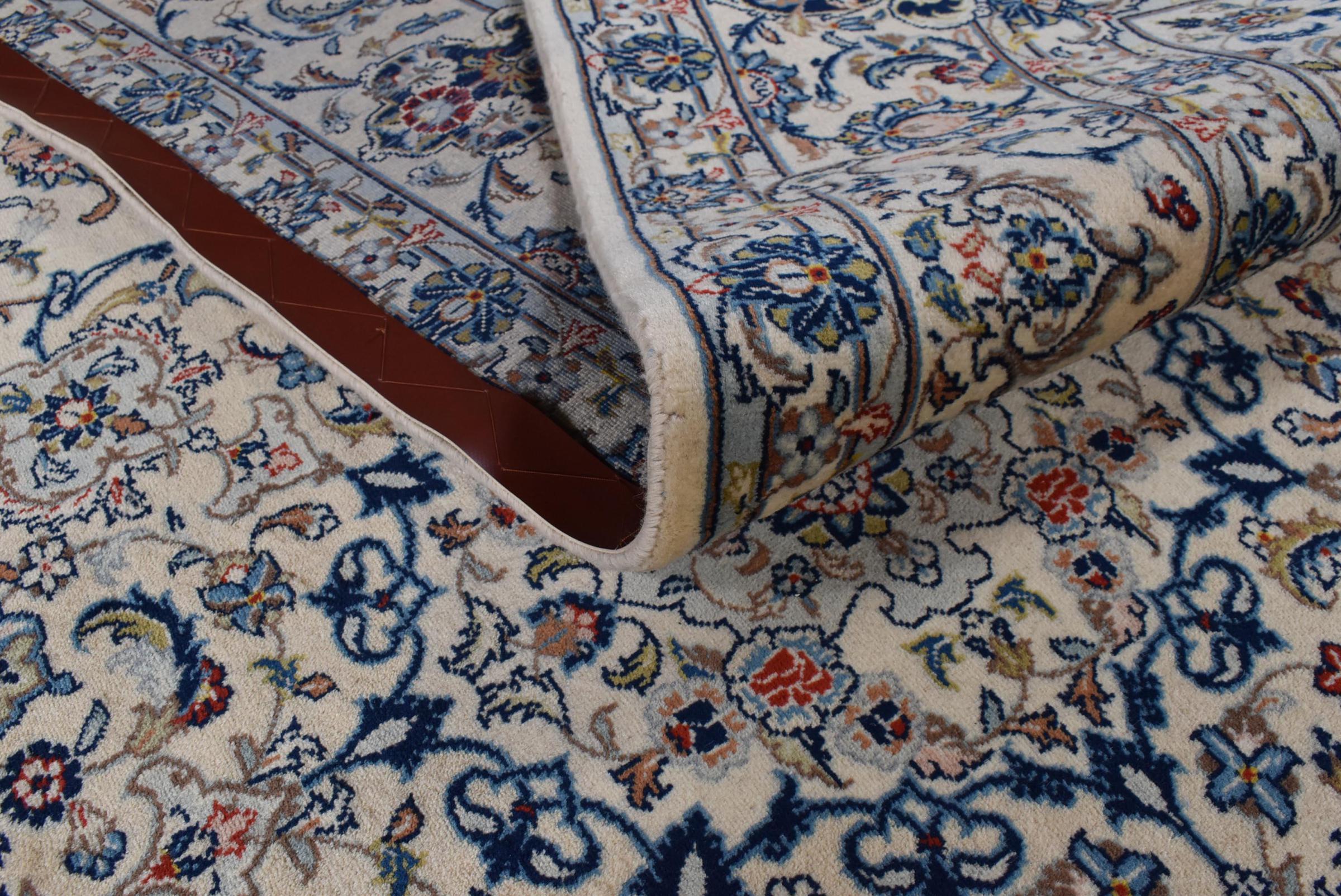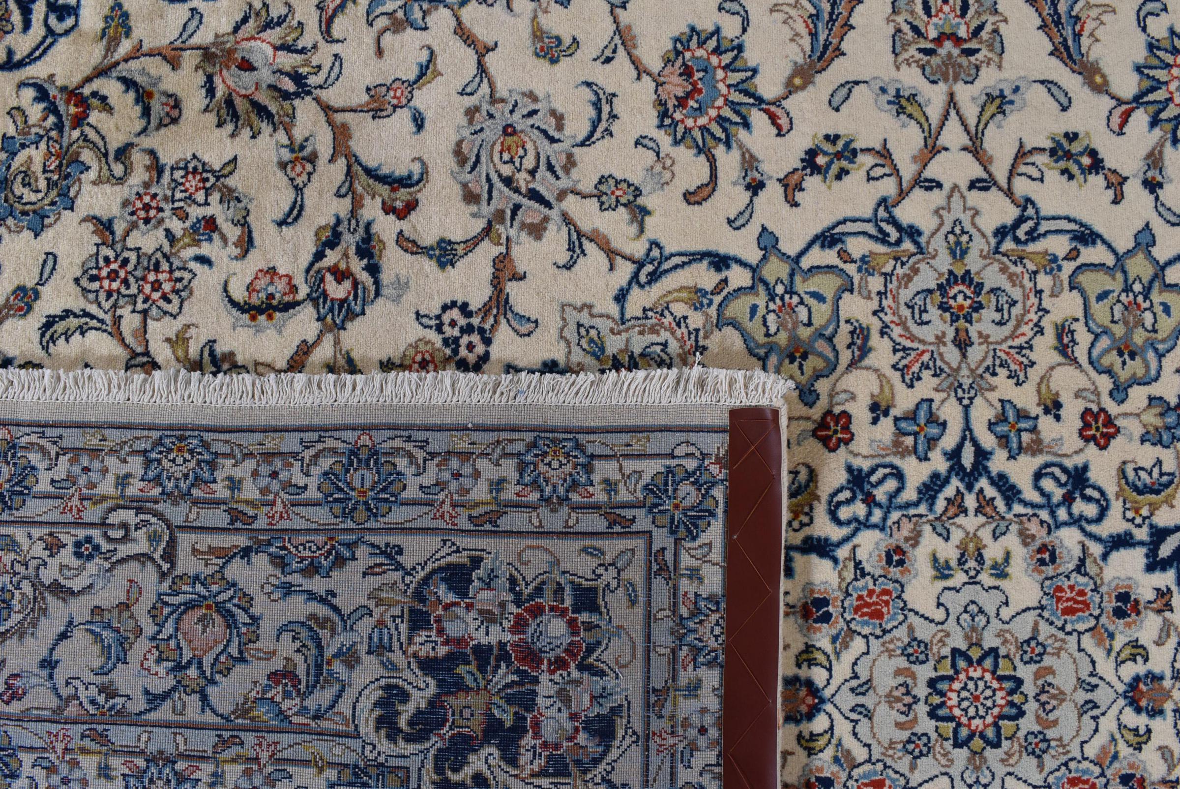 This carpet from Kashan (Keshan) is held in its very traditional and typical Persian design with beautiful ornaments. Kashan rugs are highly popular due to their exceptionally elegant design. These carpets originate from Kashan, a city on the ancient Silk Road. This carpet has been knotted by hand from high grade sheep wool and is going to be an one-of-a-kind highlight in your home.