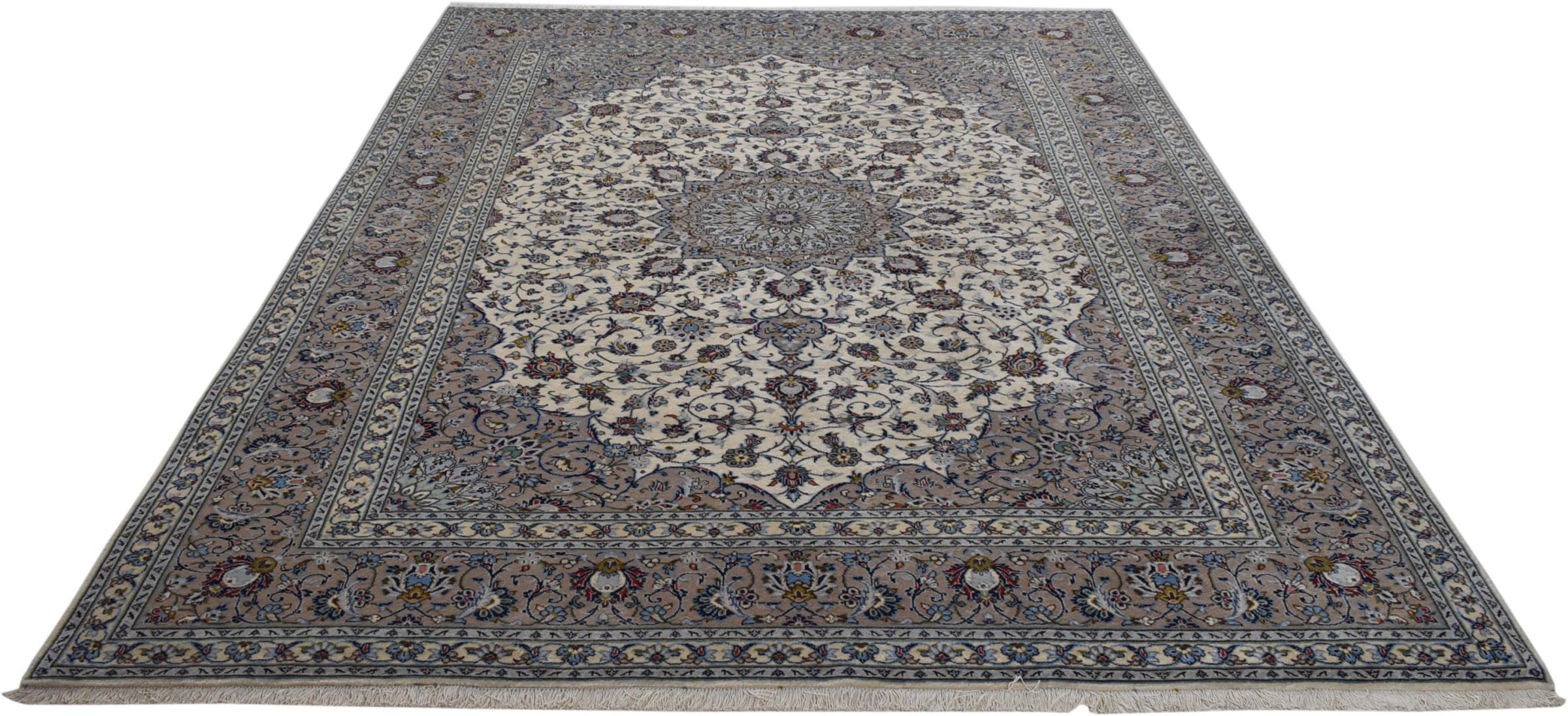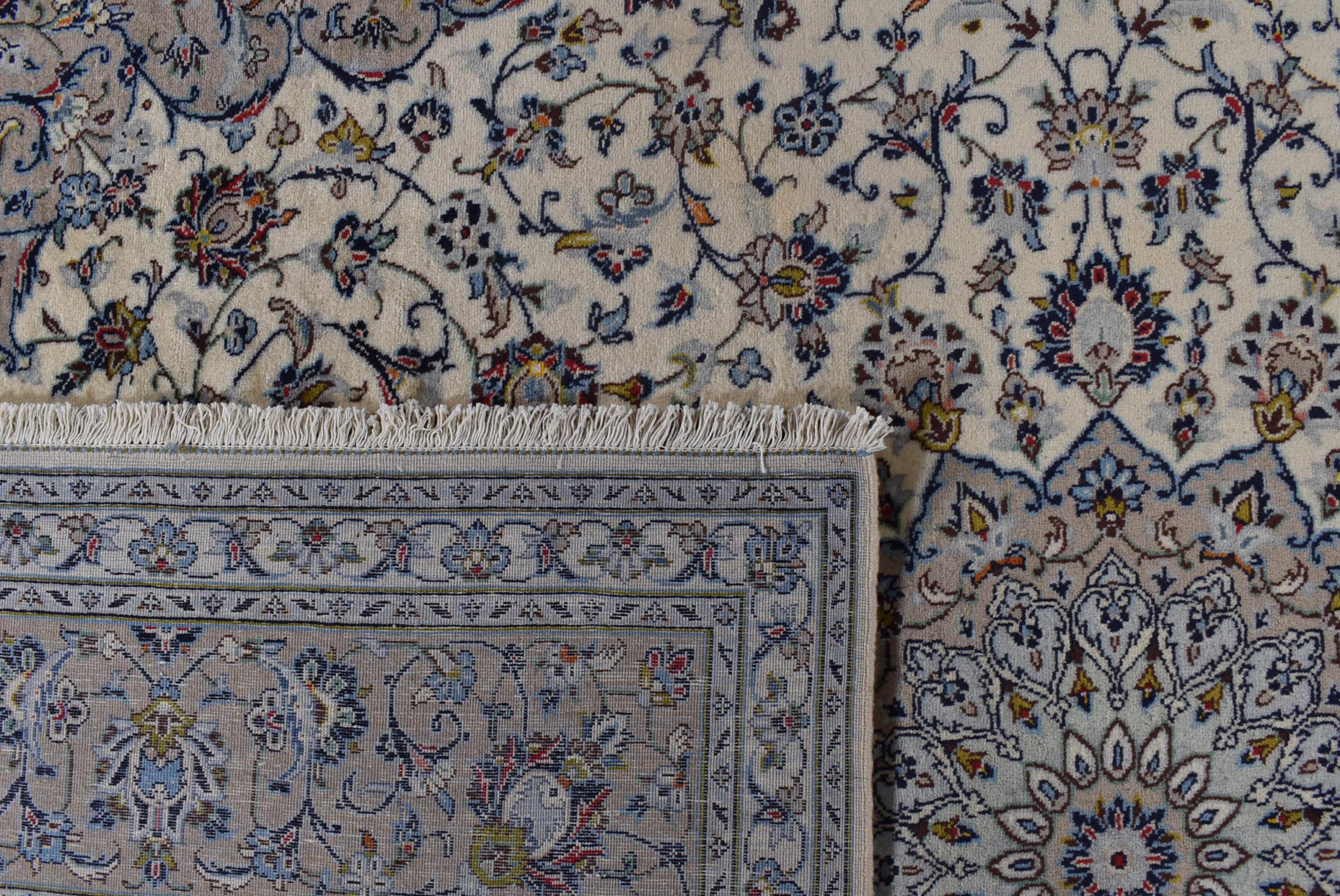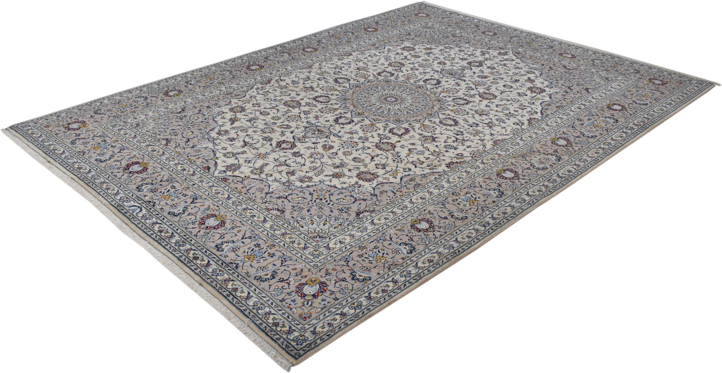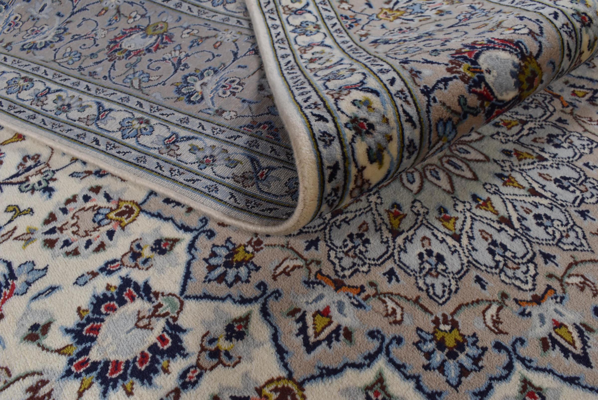 Hand knotted rugs from the city of Kashan (Keshan) are known worldwide. Not only do these Persian rugs have a very popular design, but their quality is undisputedly one of the best. In the Persian Empire the city was considered one of the most important trading places along the famous Silk Road. Kashan rugs usually have a central medallion, floral ornaments and a red background. They are made of high-quality sheep's wool and vegetable dyes.