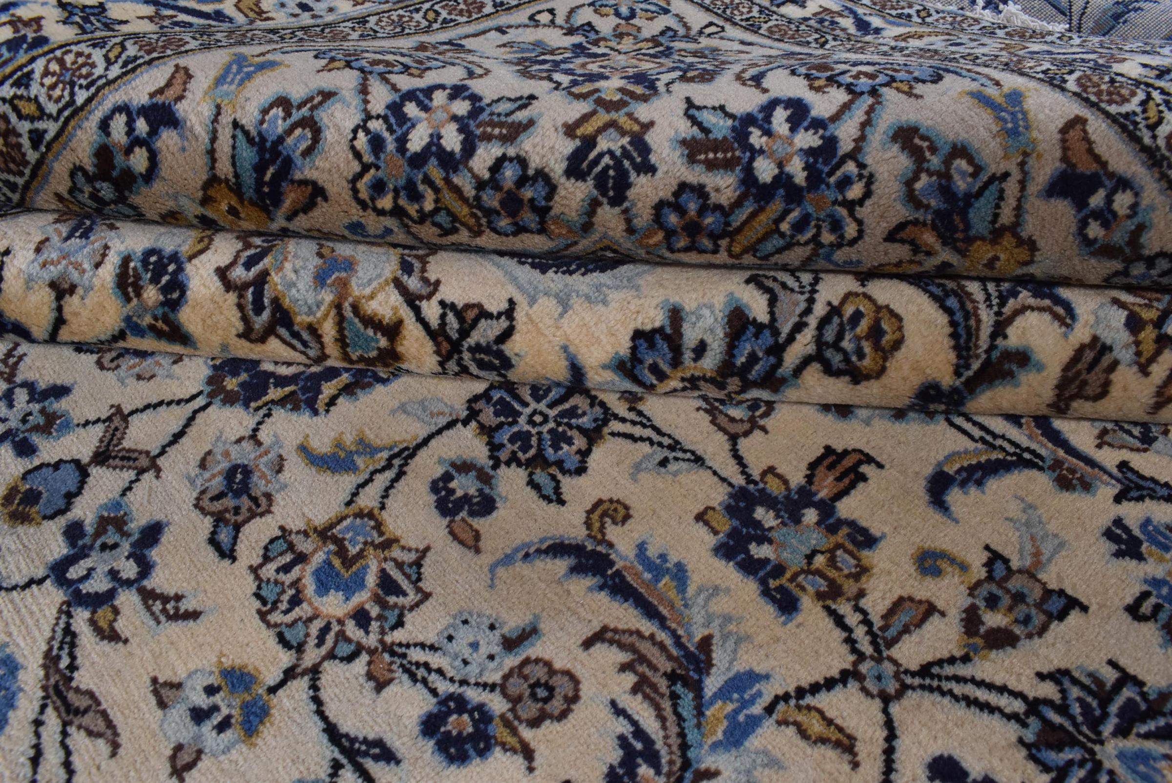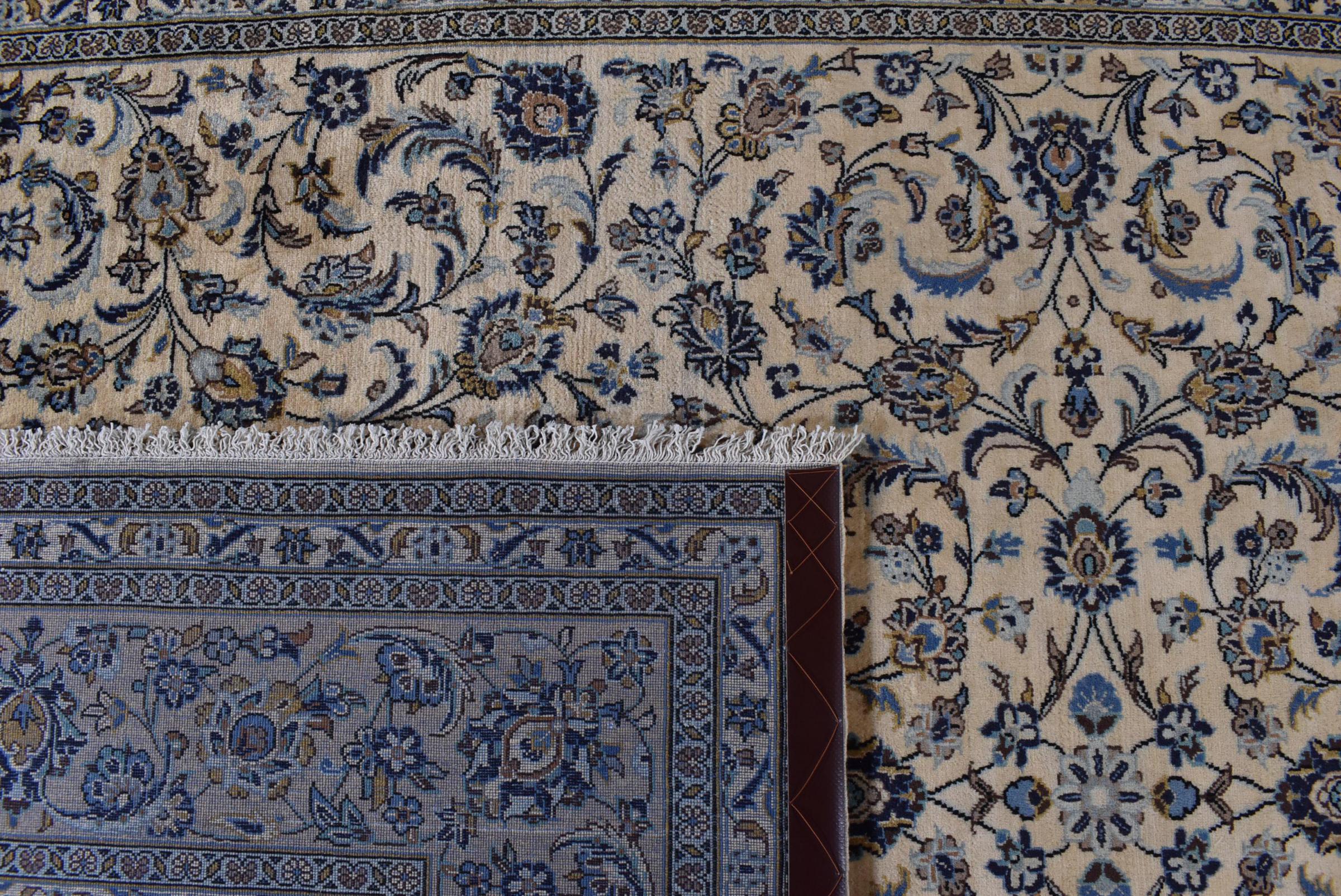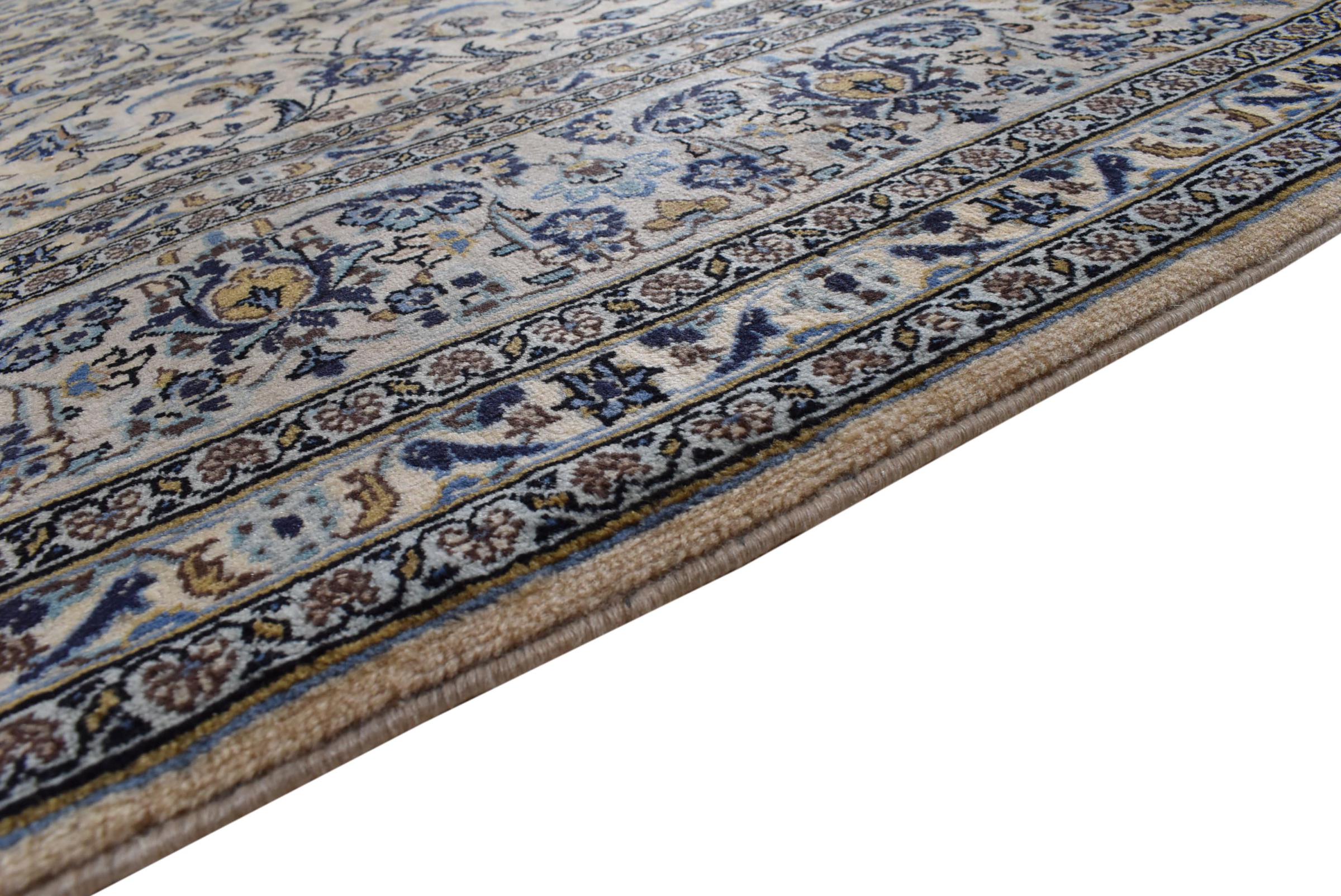 This carpet from Kashan (Keshan) is held in its very traditional and typical Persian design with beautiful ornaments. Kashan rugs are highly popular due to their exceptionally elegant design. These carpets originate from Kashan, a city on the ancient Silk Road. This carpet has been knotted by hand from high grade sheep wool and is going to be an one-of-a-kind highlight in your home.