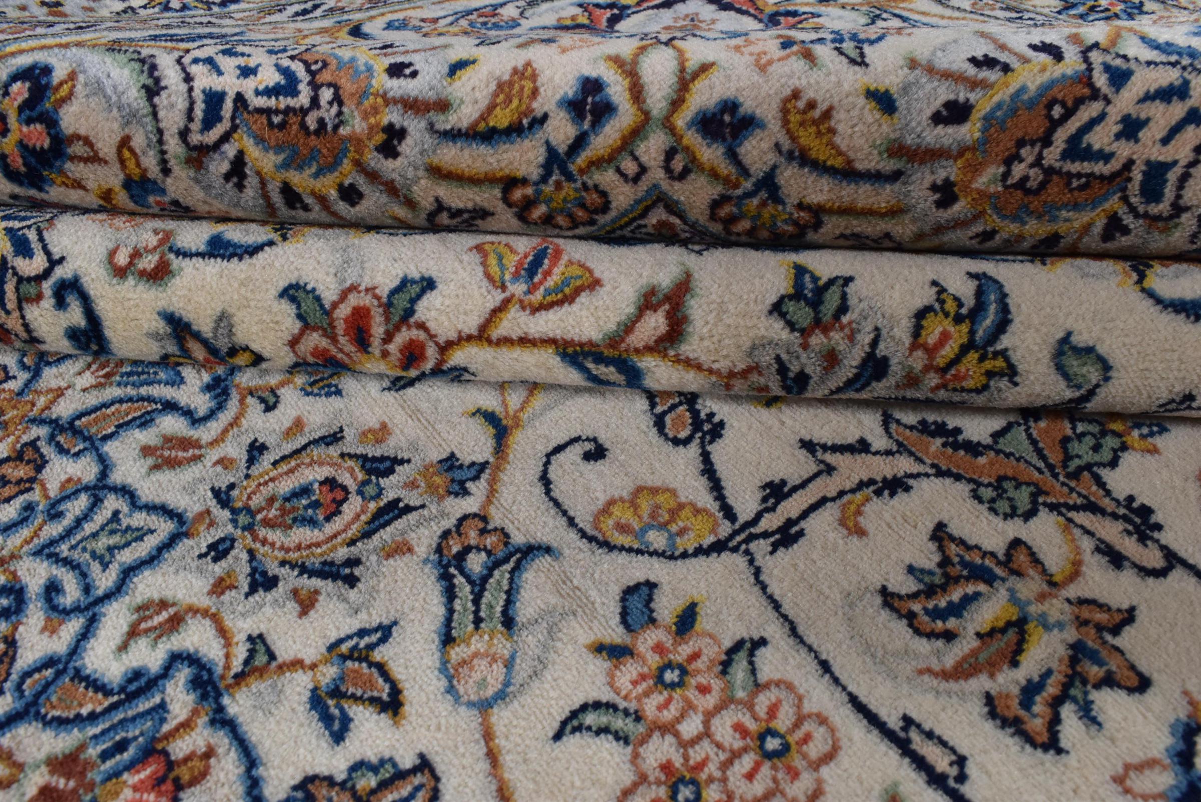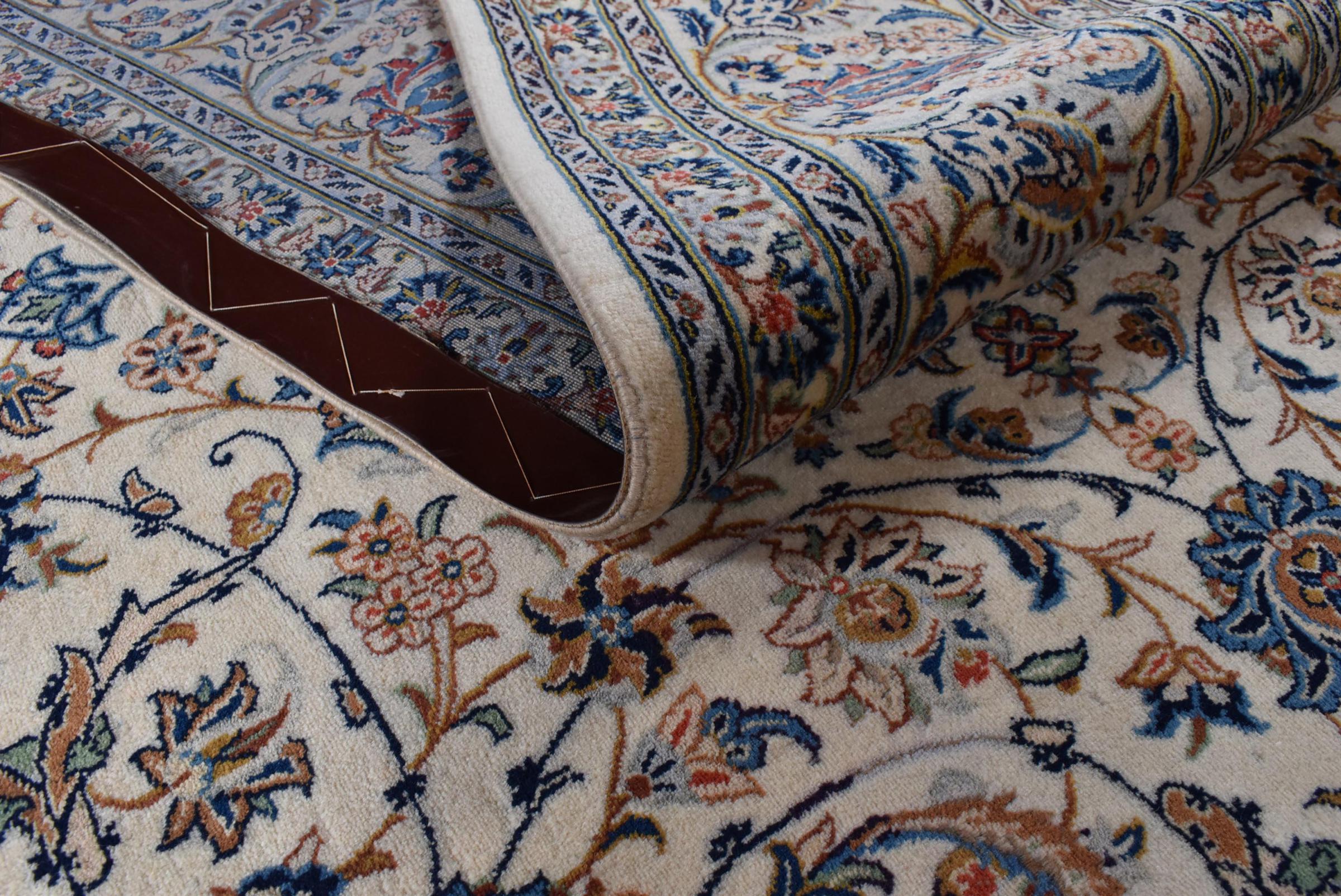 Hand knotted rugs from the city of Kashan (Keshan) are known worldwide. Not only do these Persian rugs have a very popular design, but their quality is undisputedly one of the best. In the Persian Empire the city was considered one of the most important trading places along the famous Silk Road. Kashan rugs usually have a central medallion, floral ornaments and a red background. They are made of high-quality sheep's wool and vegetable dyes.