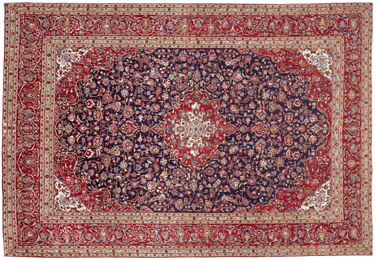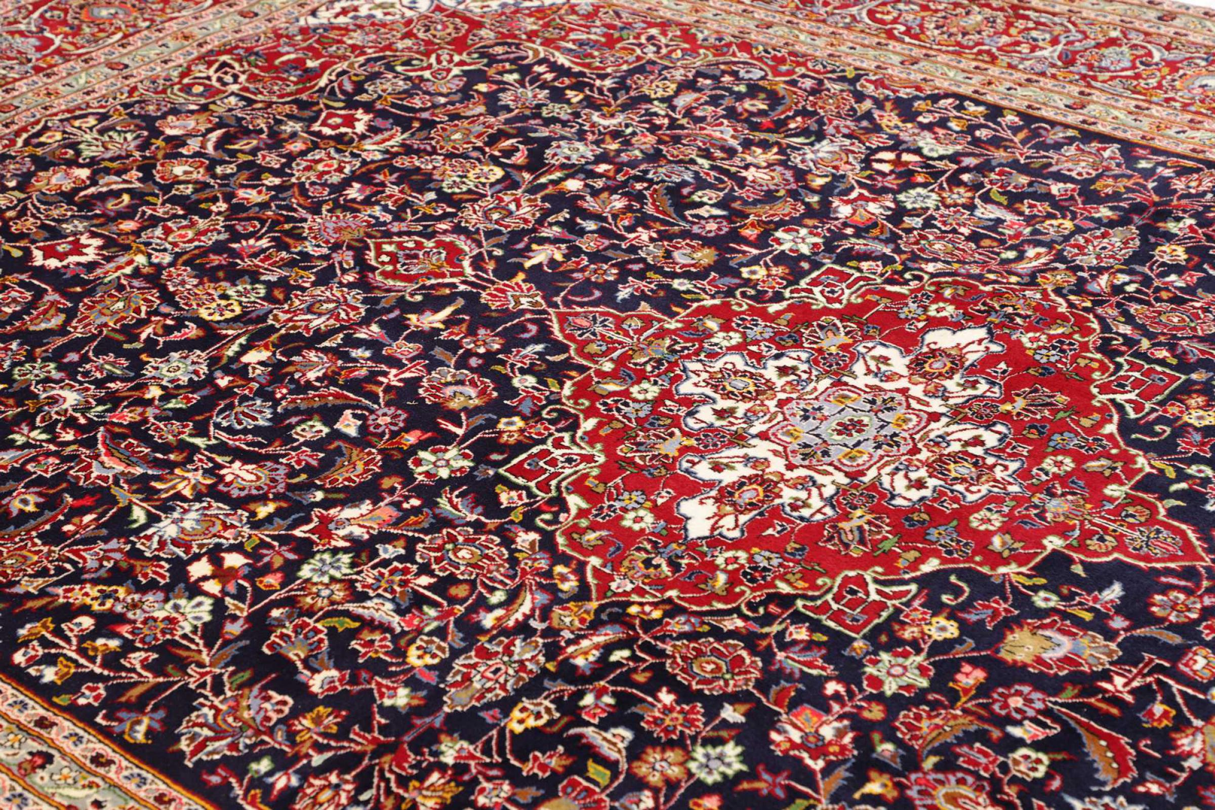 Hand knotted rugs from the city of Kashan (Keshan) are known worldwide. Not only do these Persian rugs have a very popular design, but their quality is undisputedly one of the best. In the Persian Empire the city was considered one of the most important trading places along the famous Silk Road. Kashan rugs usually have a central medallion, floral ornaments and a red background. They are made of high-quality sheep's wool and vegetable dyes.