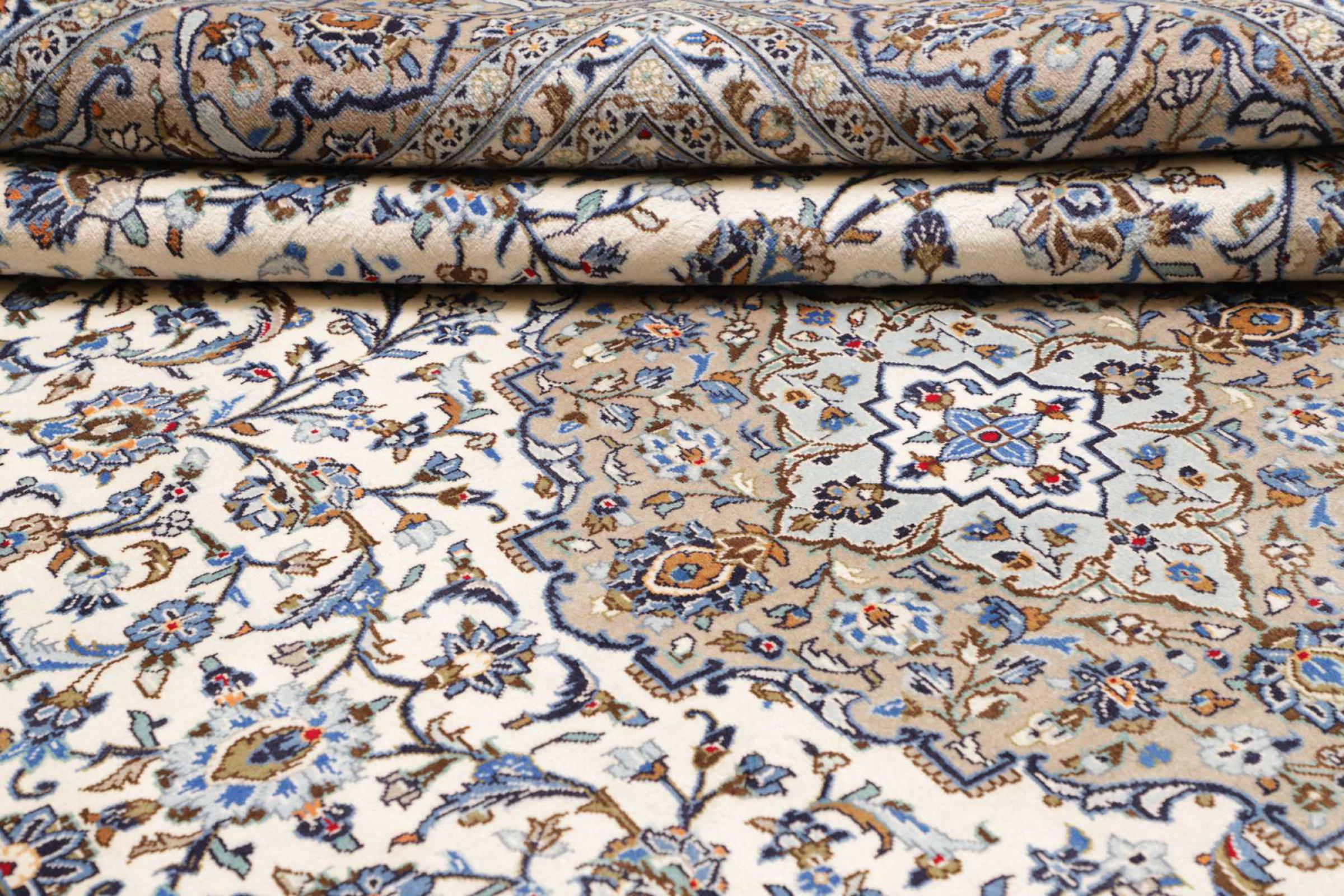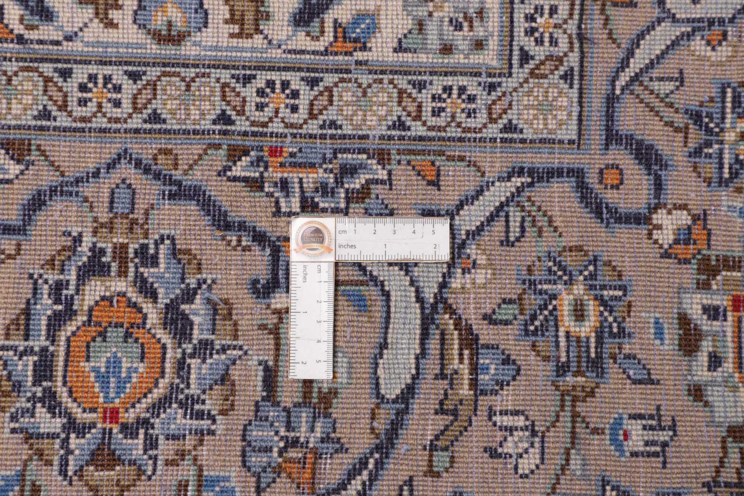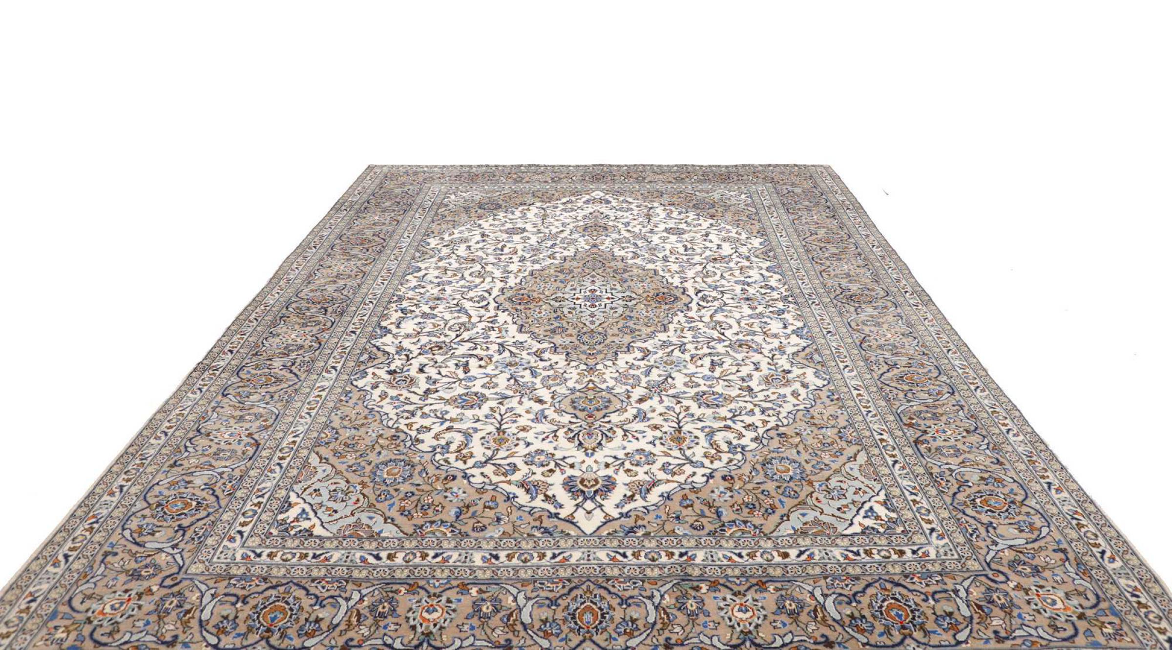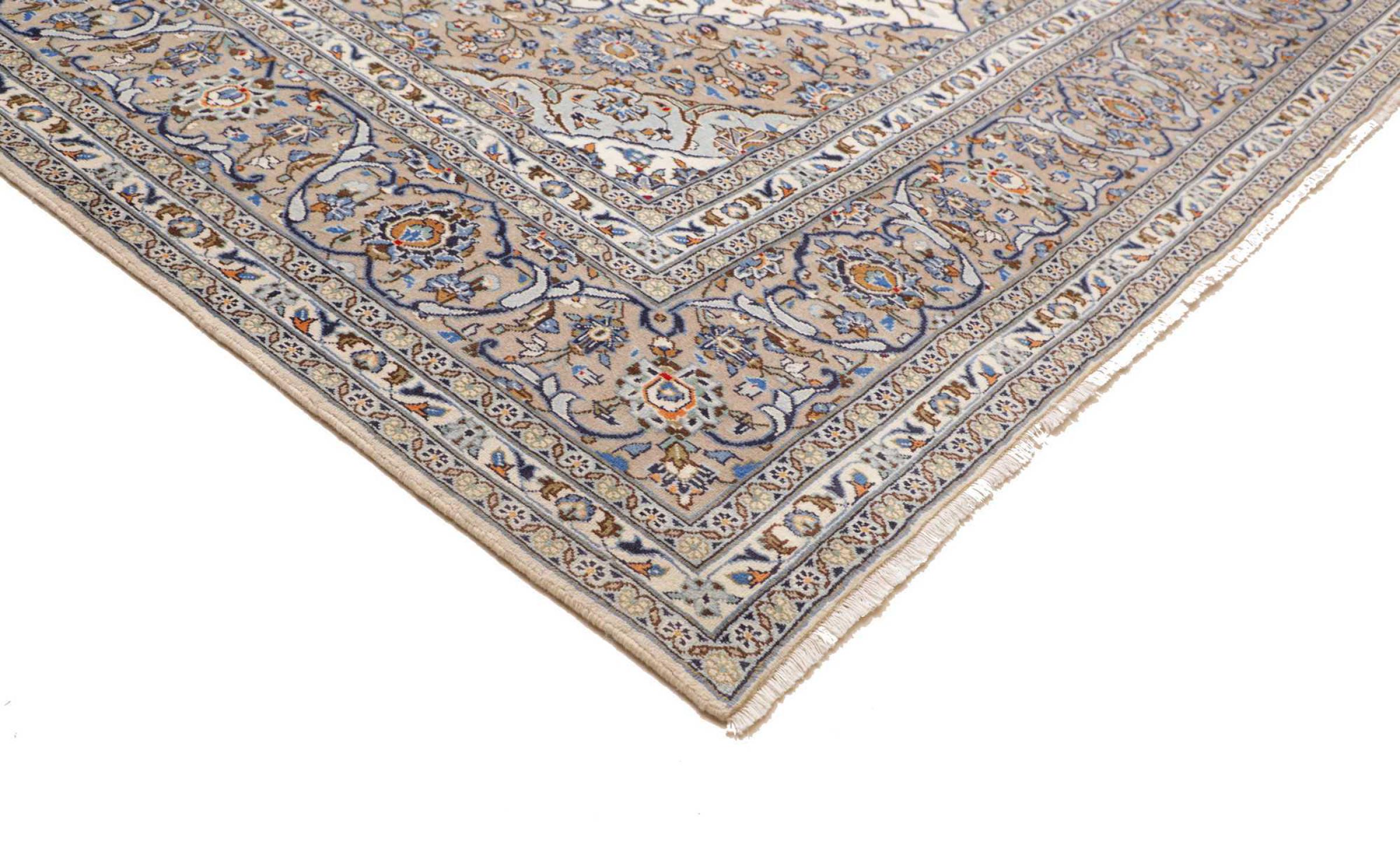 This carpet from Kashan (Keshan) is held in its very traditional and typical Persian design with beautiful ornaments. Kashan rugs are highly popular due to their exceptionally elegant design. These carpets originate from Kashan, a city on the ancient Silk Road. This carpet has been knotted by hand from high grade sheep wool and is going to be an one-of-a-kind highlight in your home.