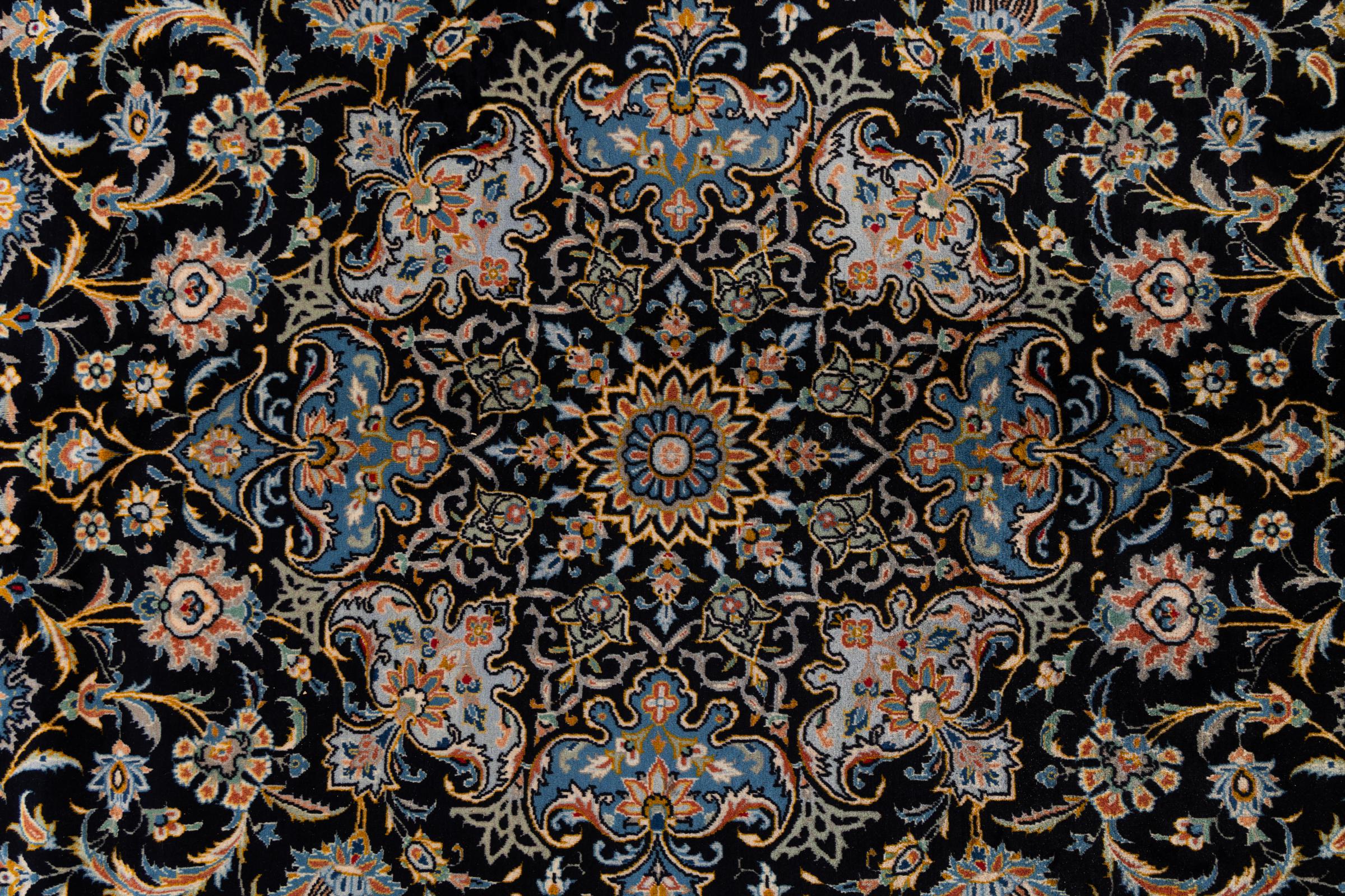 Hand knotted rugs from the city of Kashan (Keshan) are known worldwide. Not only do these Persian rugs have a very popular design, but their quality is undisputedly one of the best. In the Persian Empire the city was considered one of the most important trading places along the famous Silk Road. Kashan rugs usually have a central medallion, floral ornaments and a red background. They are made of high-quality sheep's wool and vegetable dyes.
