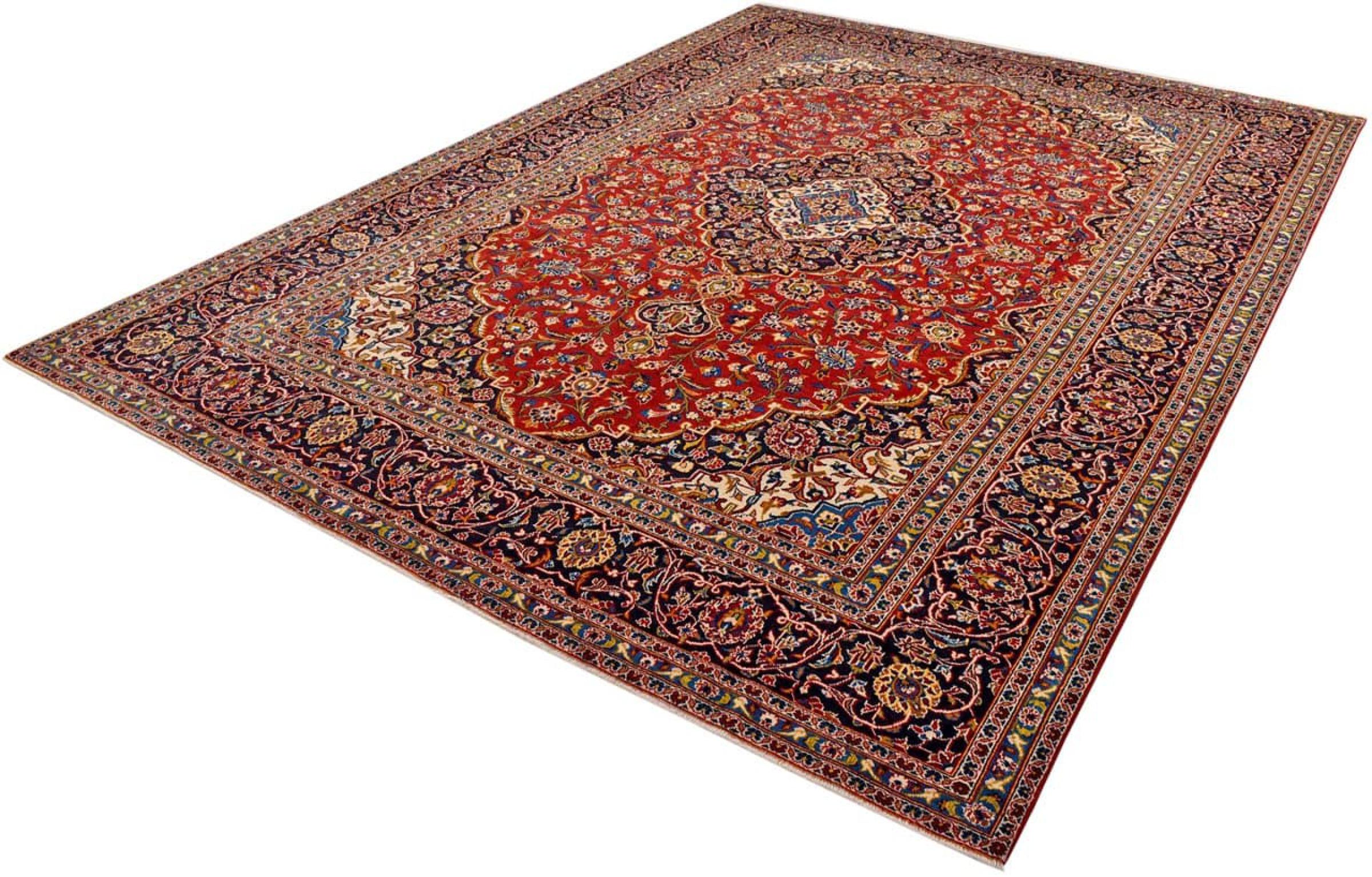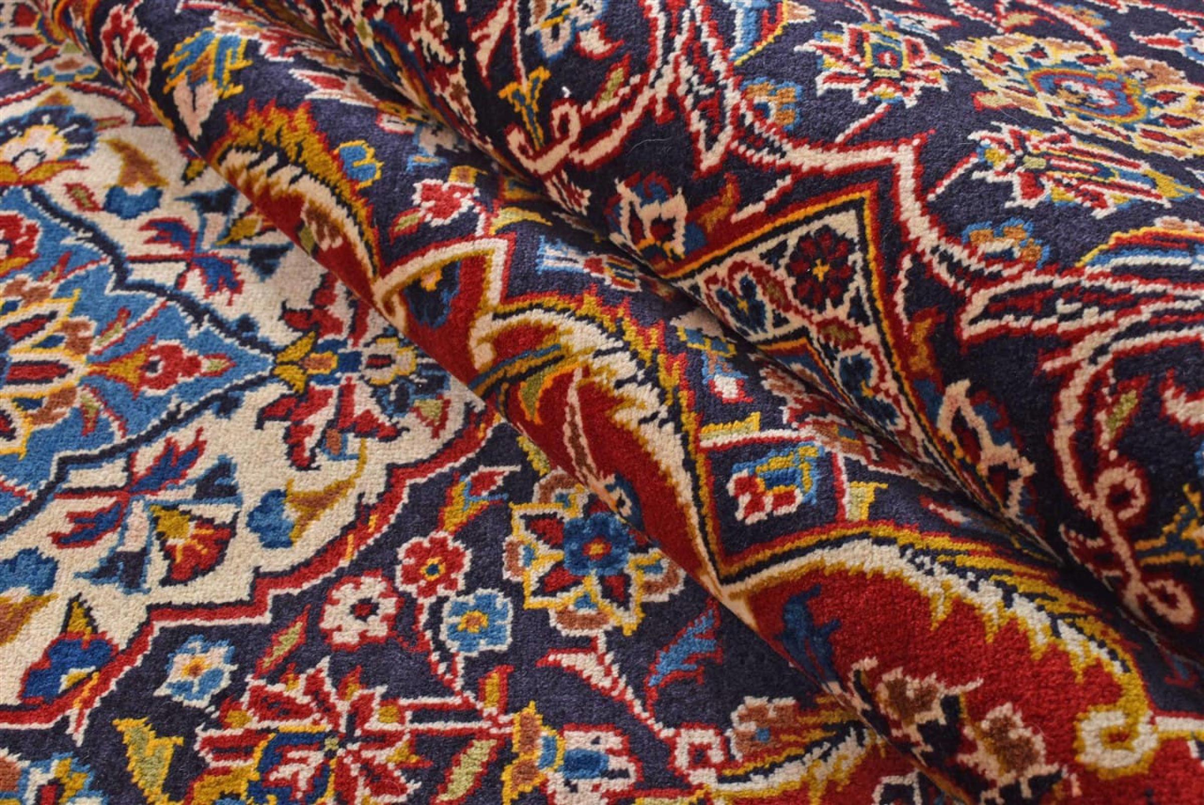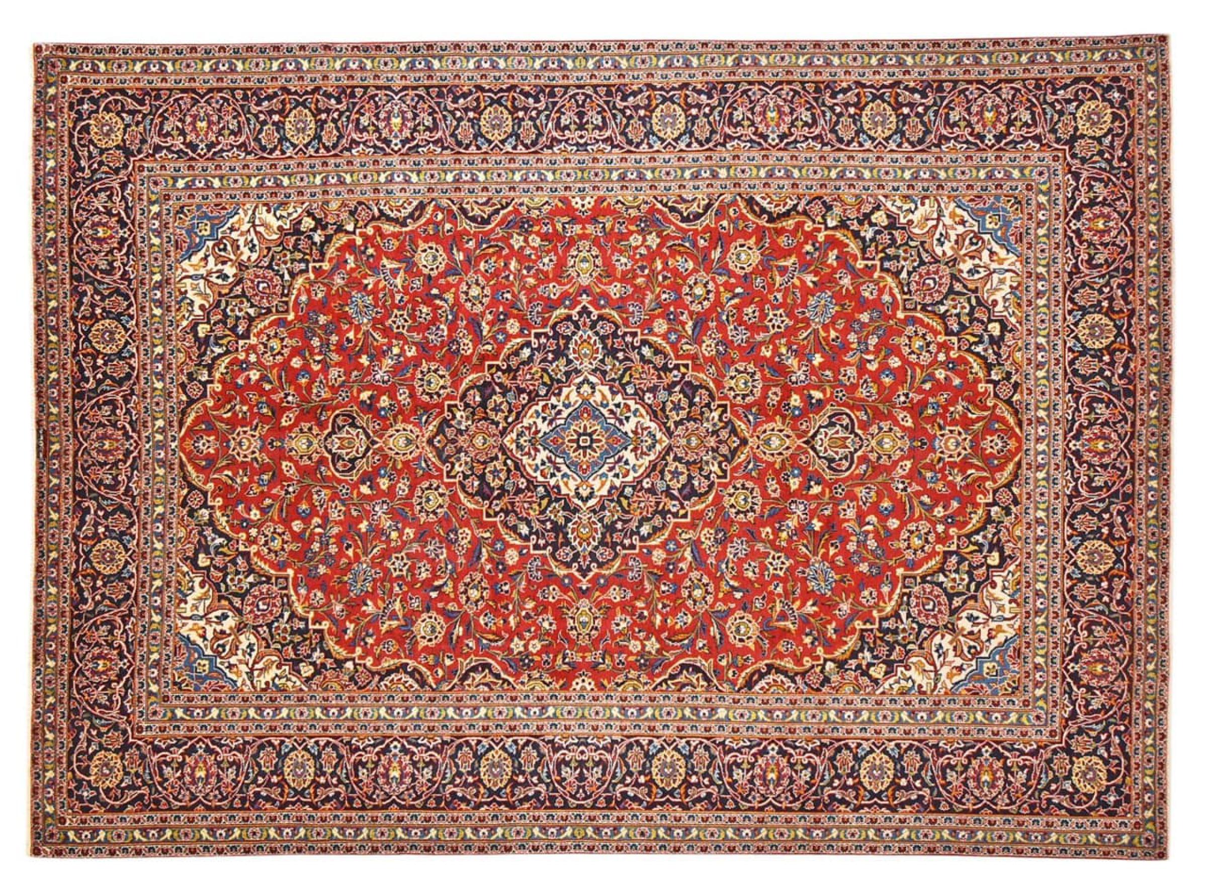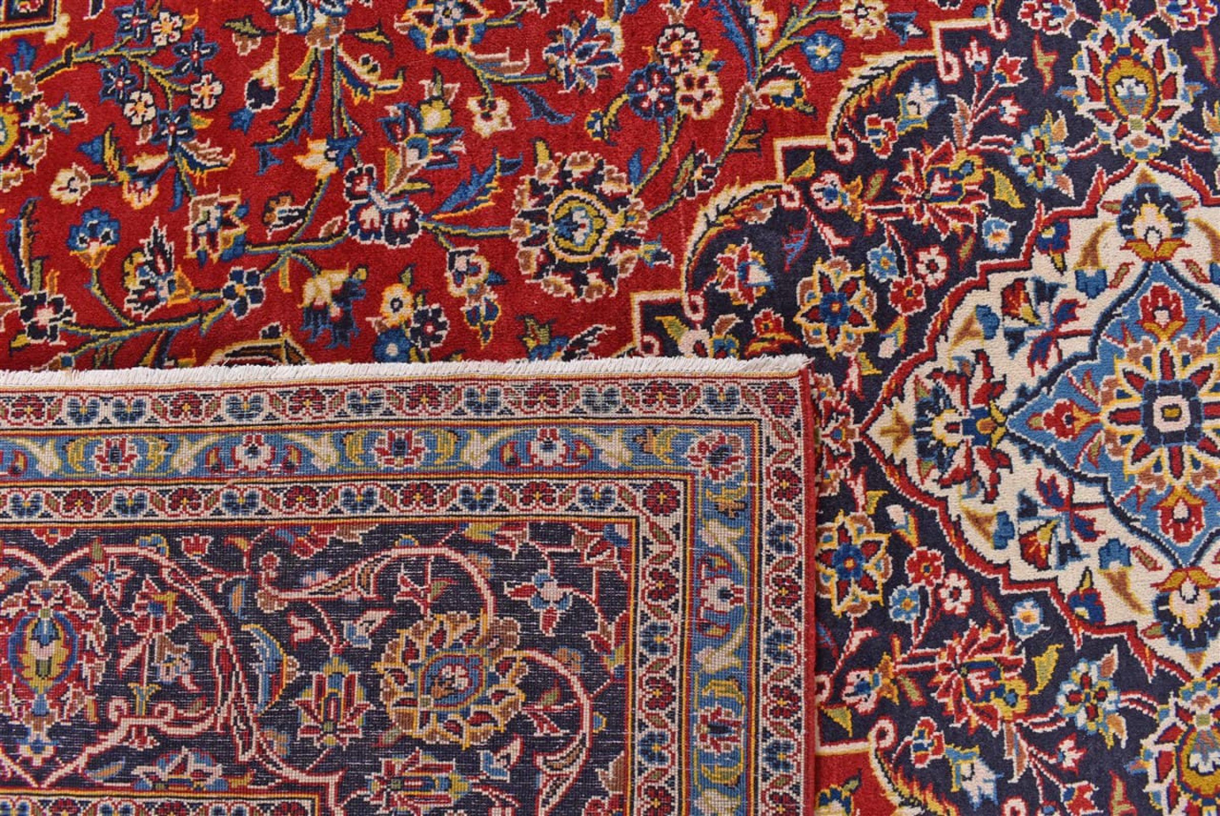 Hand knotted rugs from the city of Kashan (Keshan) are known worldwide. Not only do these Persian rugs have a very popular design, but their quality is undisputedly one of the best. In the Persian Empire the city was considered one of the most important trading places along the famous Silk Road. Kashan rugs usually have a central medallion, floral ornaments and a red background. They are made of high-quality sheep's wool and vegetable dyes.