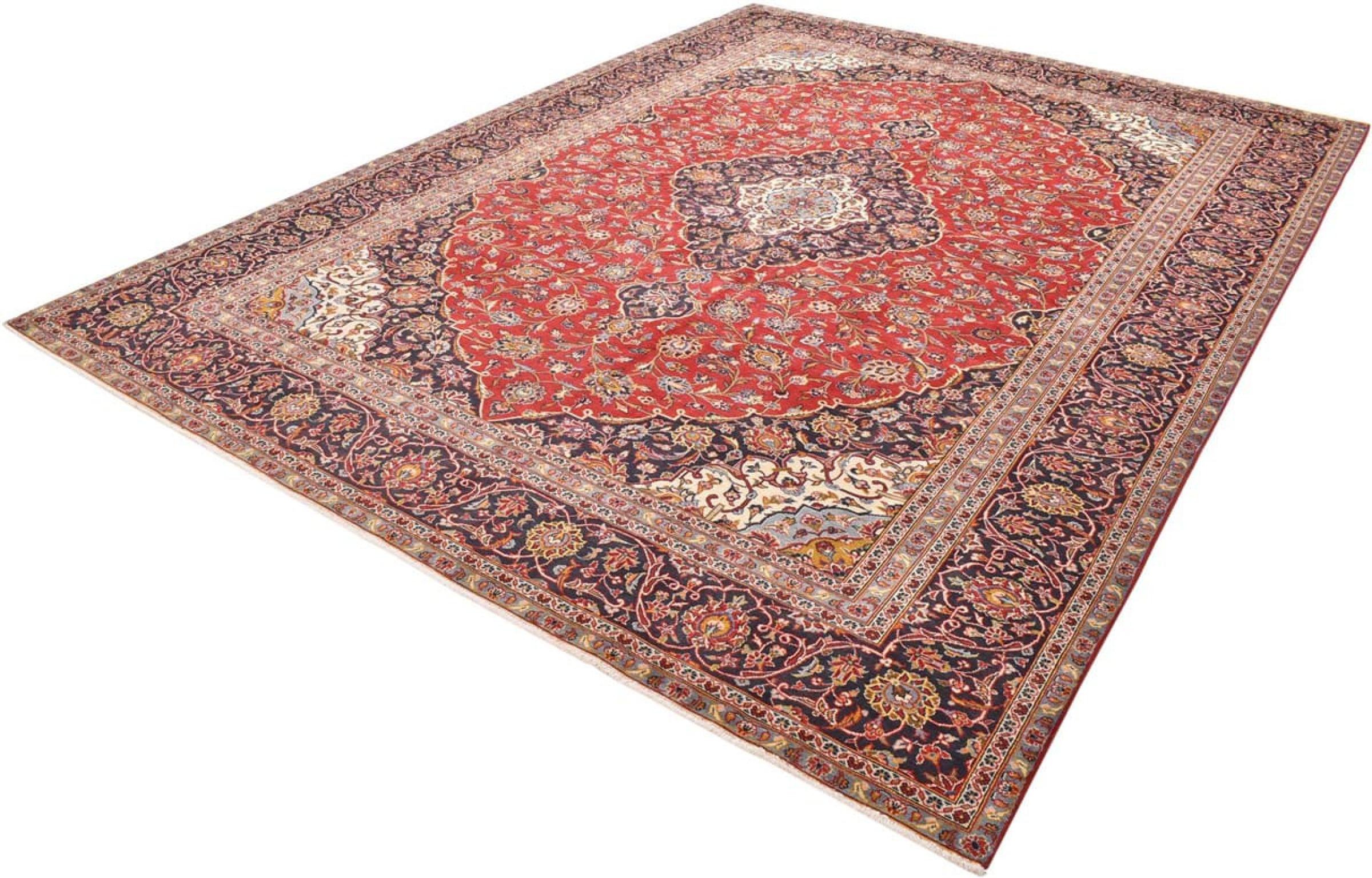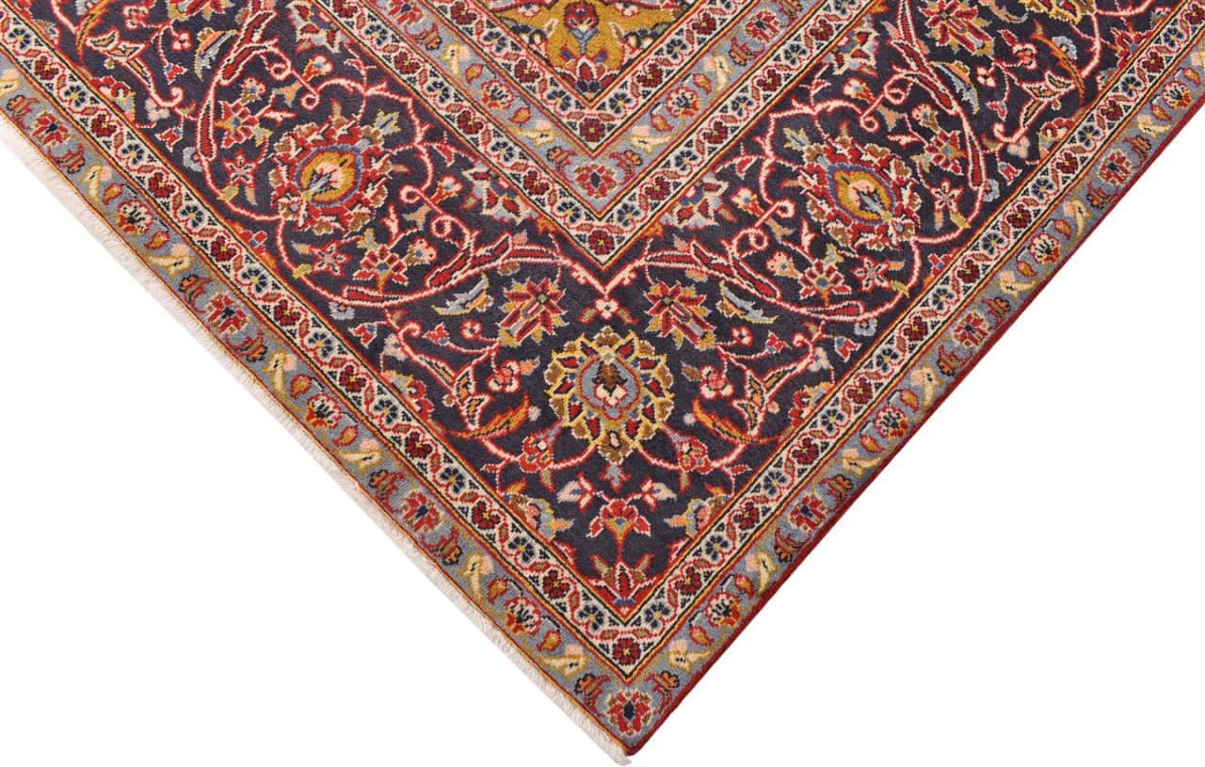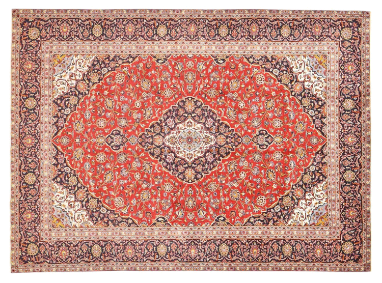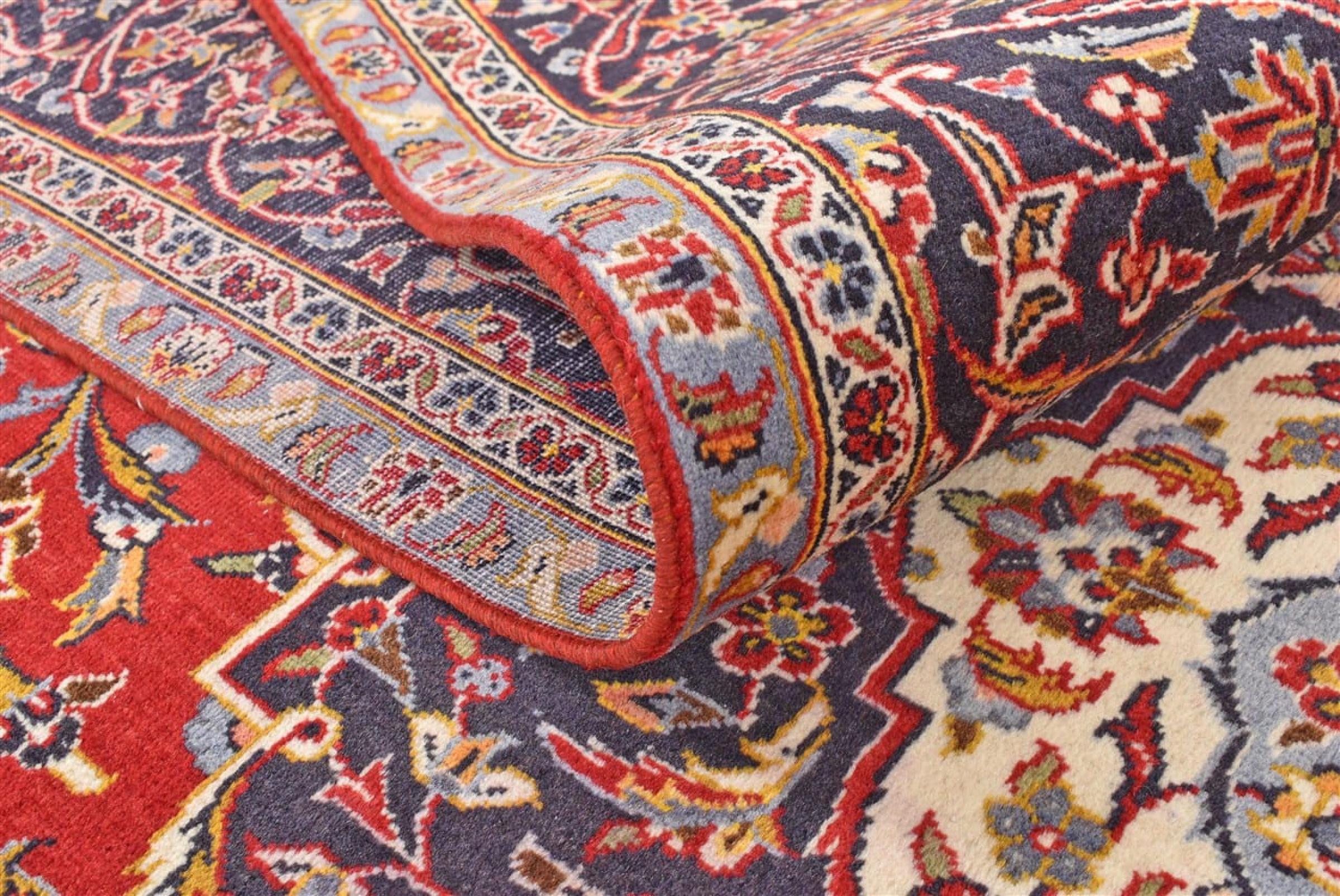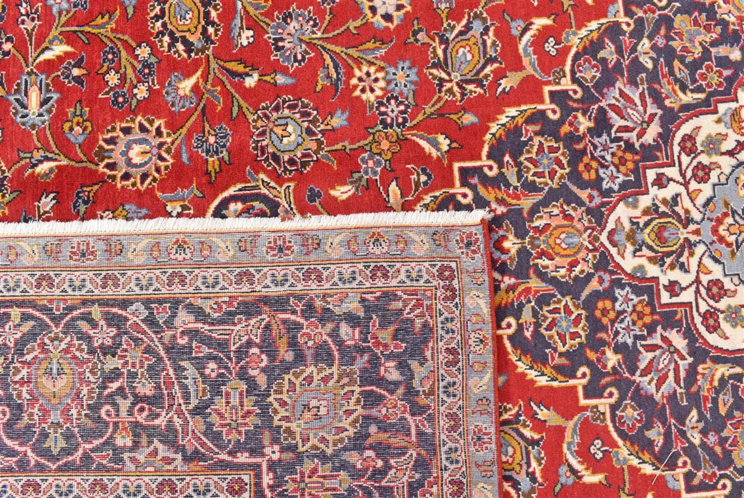 Hand knotted rugs from the city of Kashan (Keshan) are known worldwide. Not only do these Persian rugs have a very popular design, but their quality is undisputedly one of the best. In the Persian Empire the city was considered one of the most important trading places along the famous Silk Road. Kashan rugs usually have a central medallion, floral ornaments and a red background. They are made of high-quality sheep's wool and vegetable dyes.