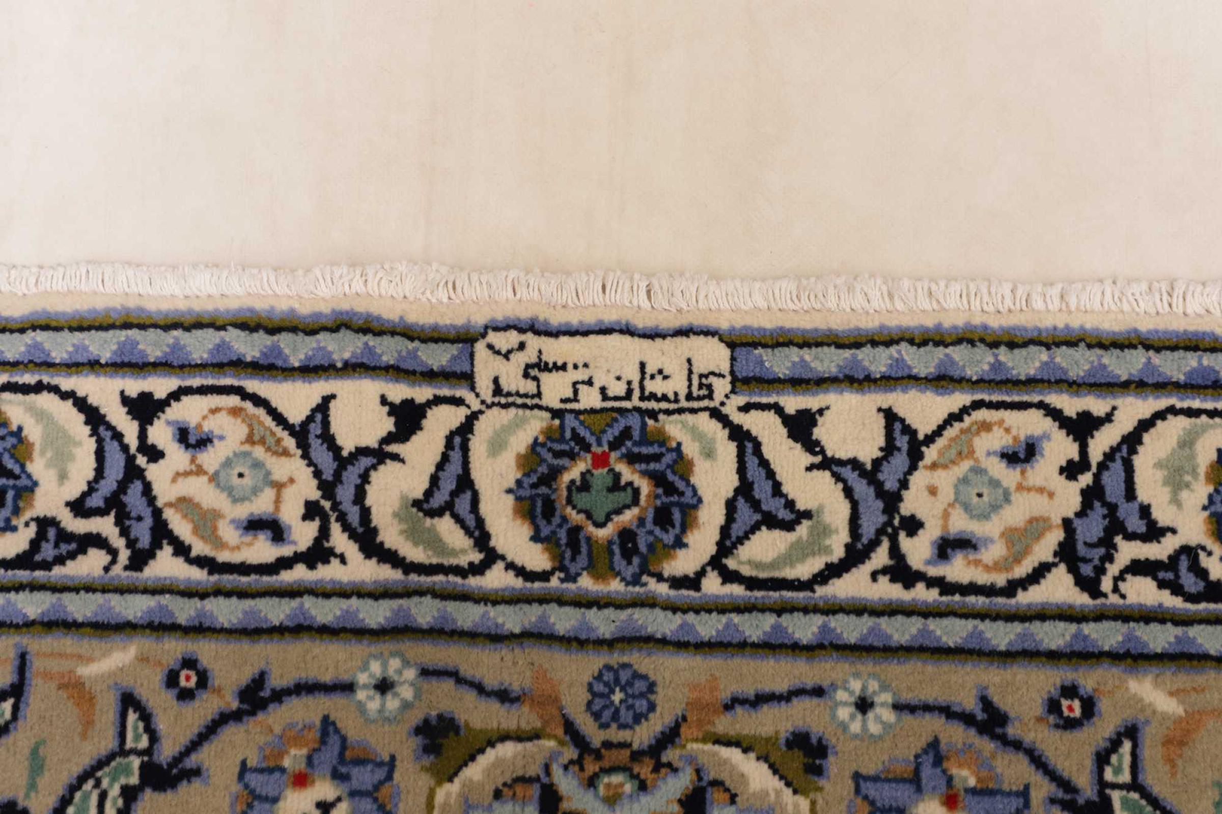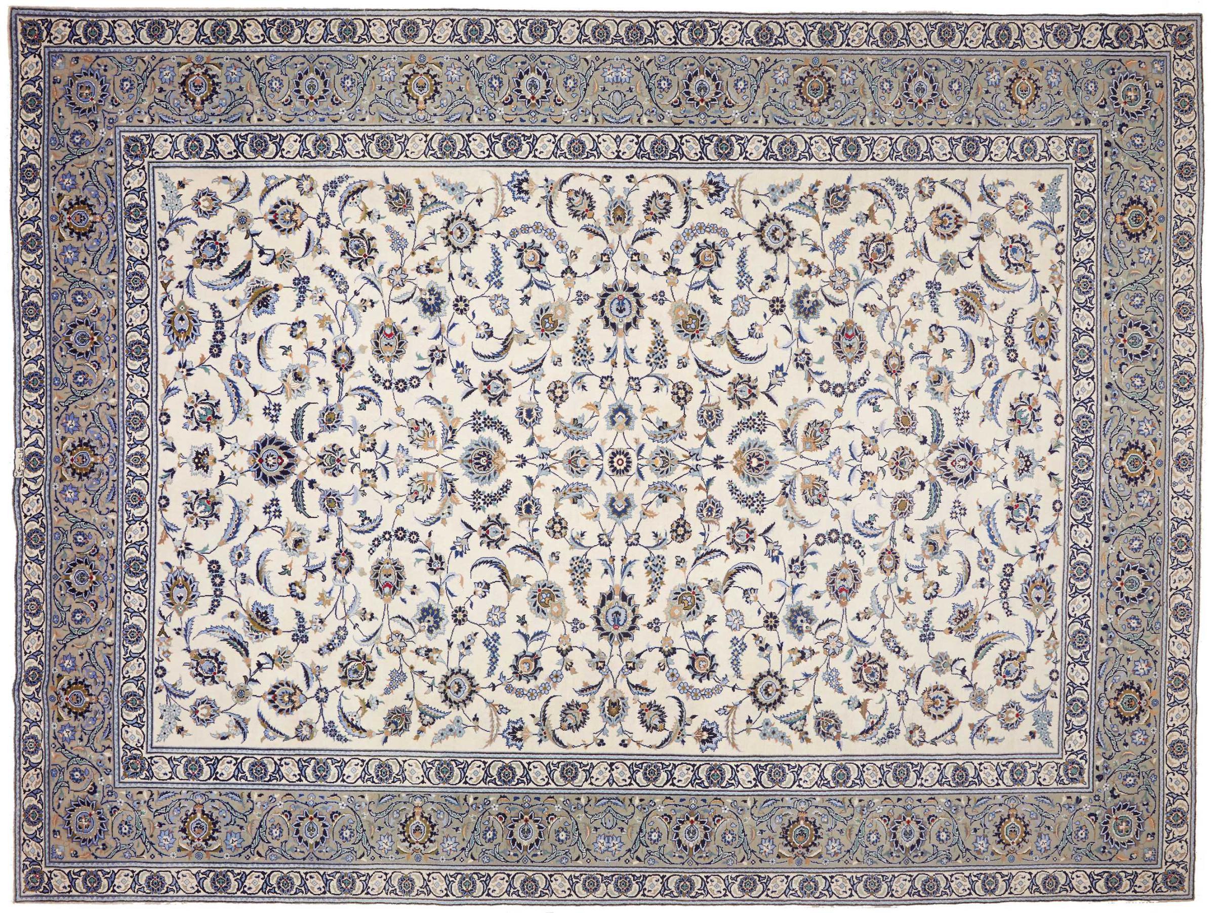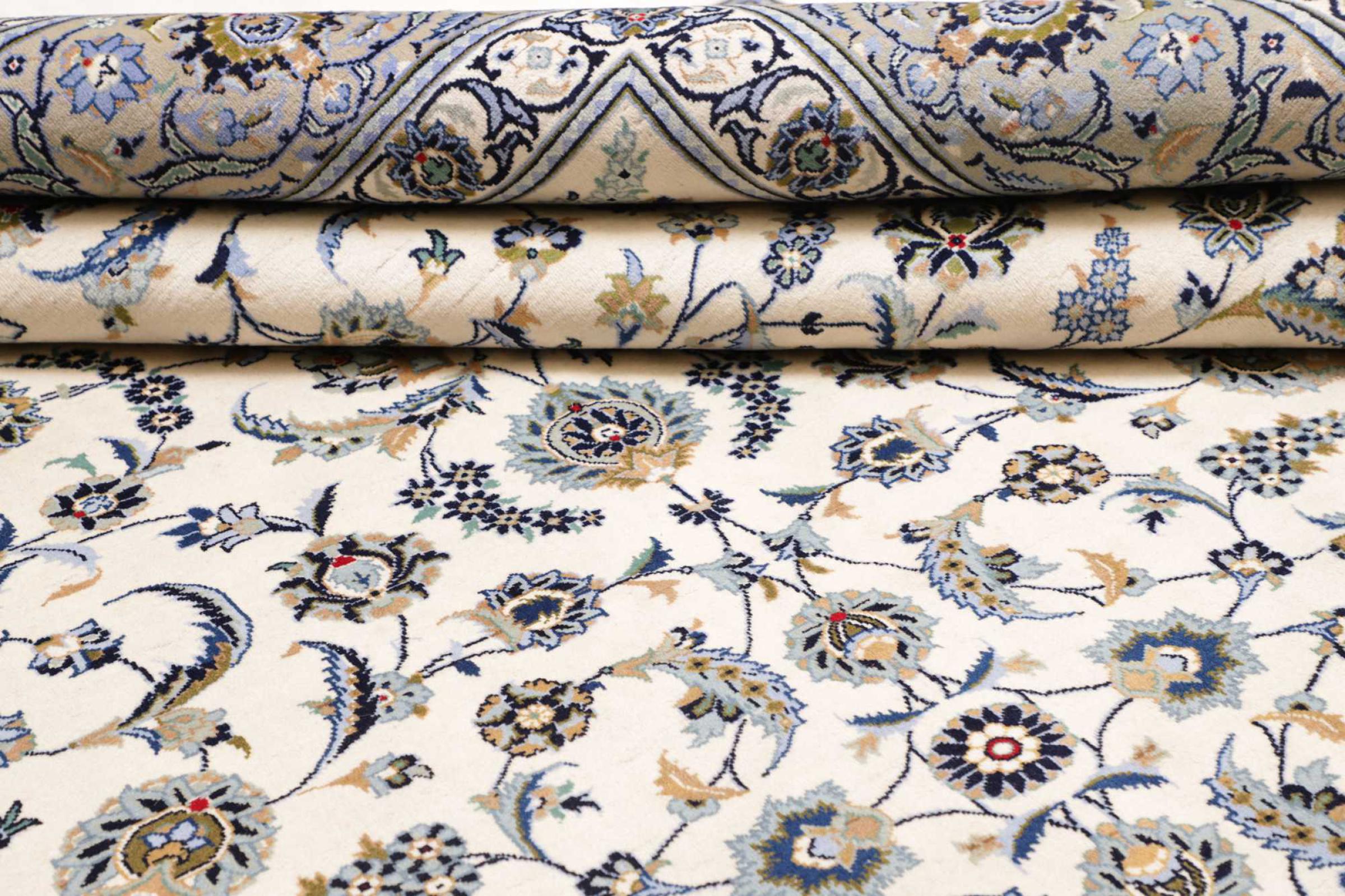 This carpet from Kashan (Keshan) is held in its very traditional and typical Persian design with beautiful ornaments. Kashan rugs are highly popular due to their exceptionally elegant design. These carpets originate from Kashan, a city on the ancient Silk Road. This carpet has been knotted by hand from high grade sheep wool and is going to be an one-of-a-kind highlight in your home.