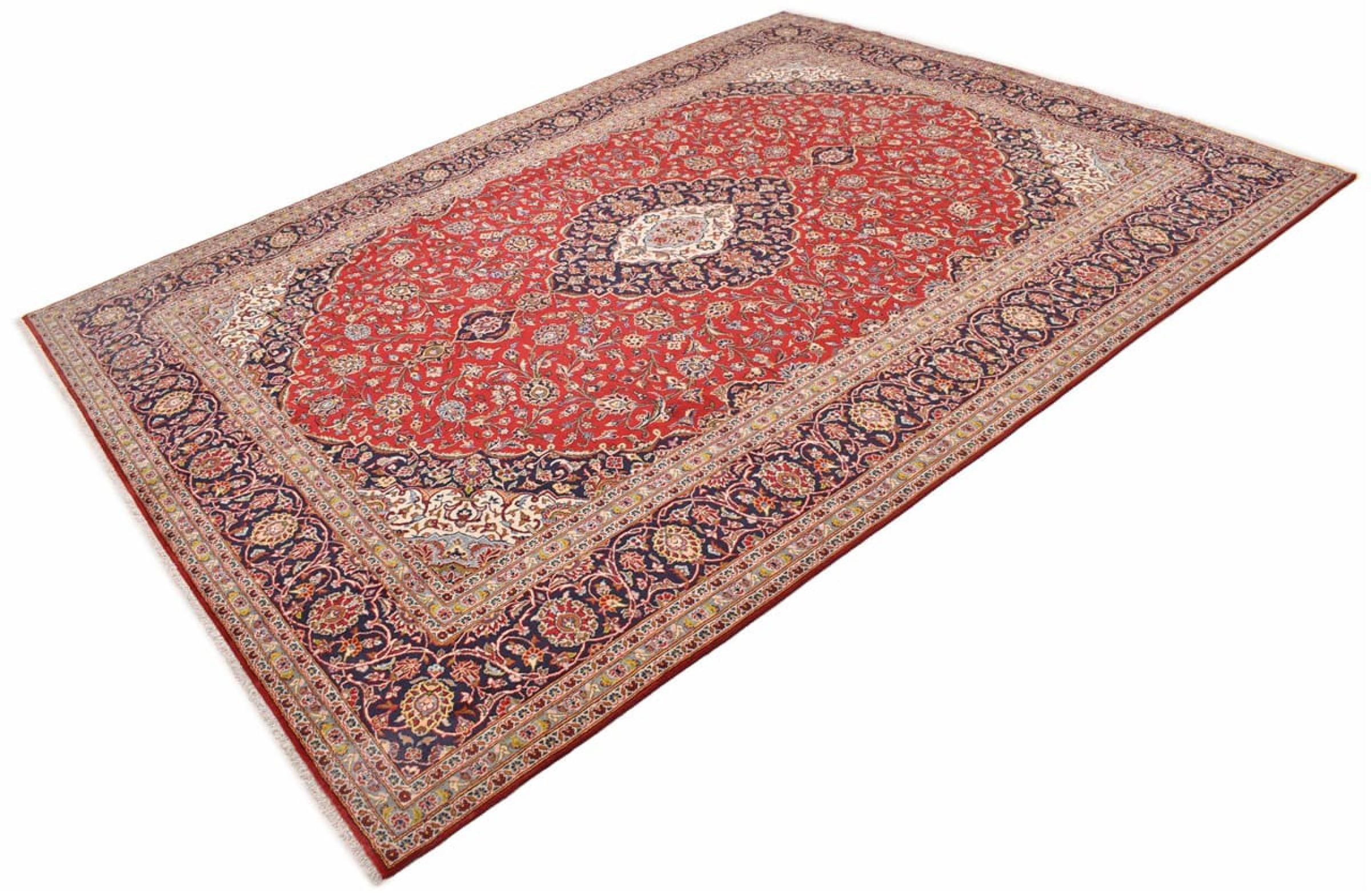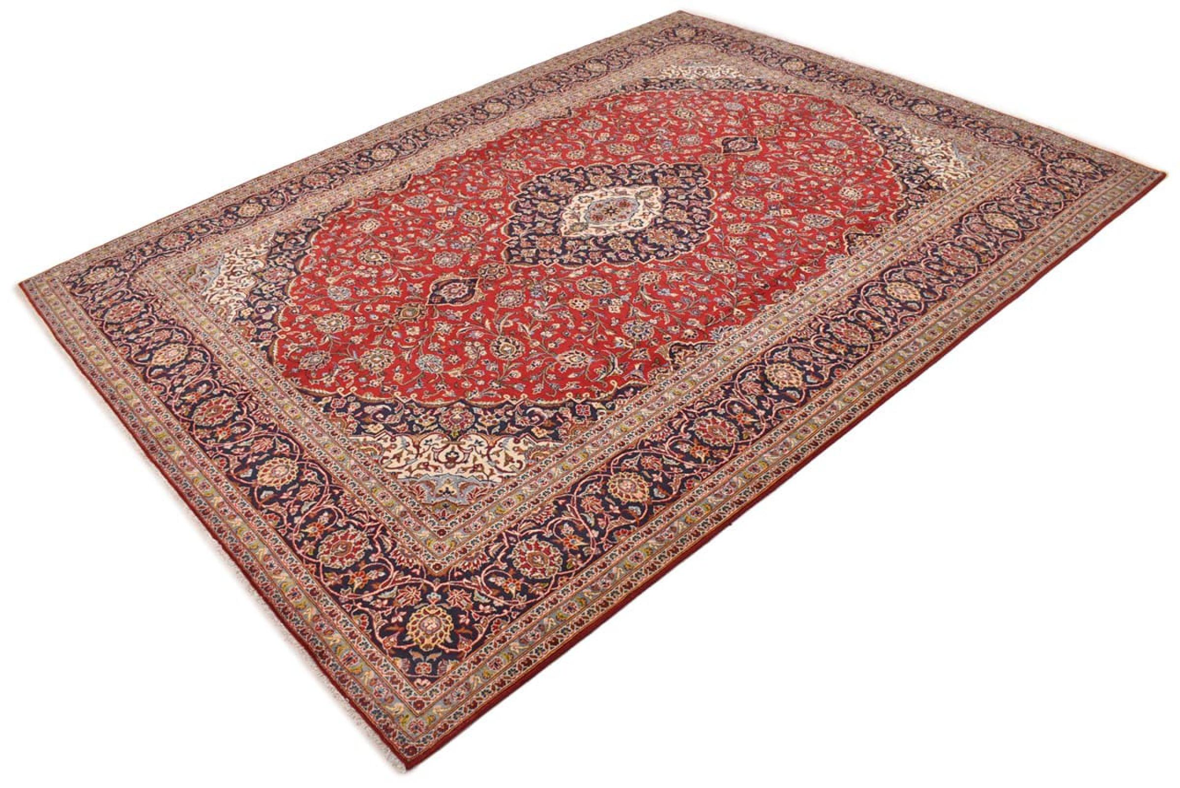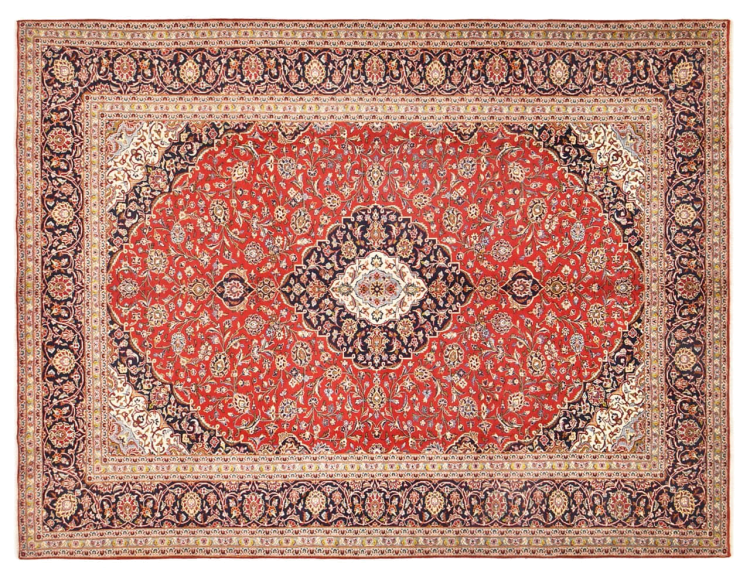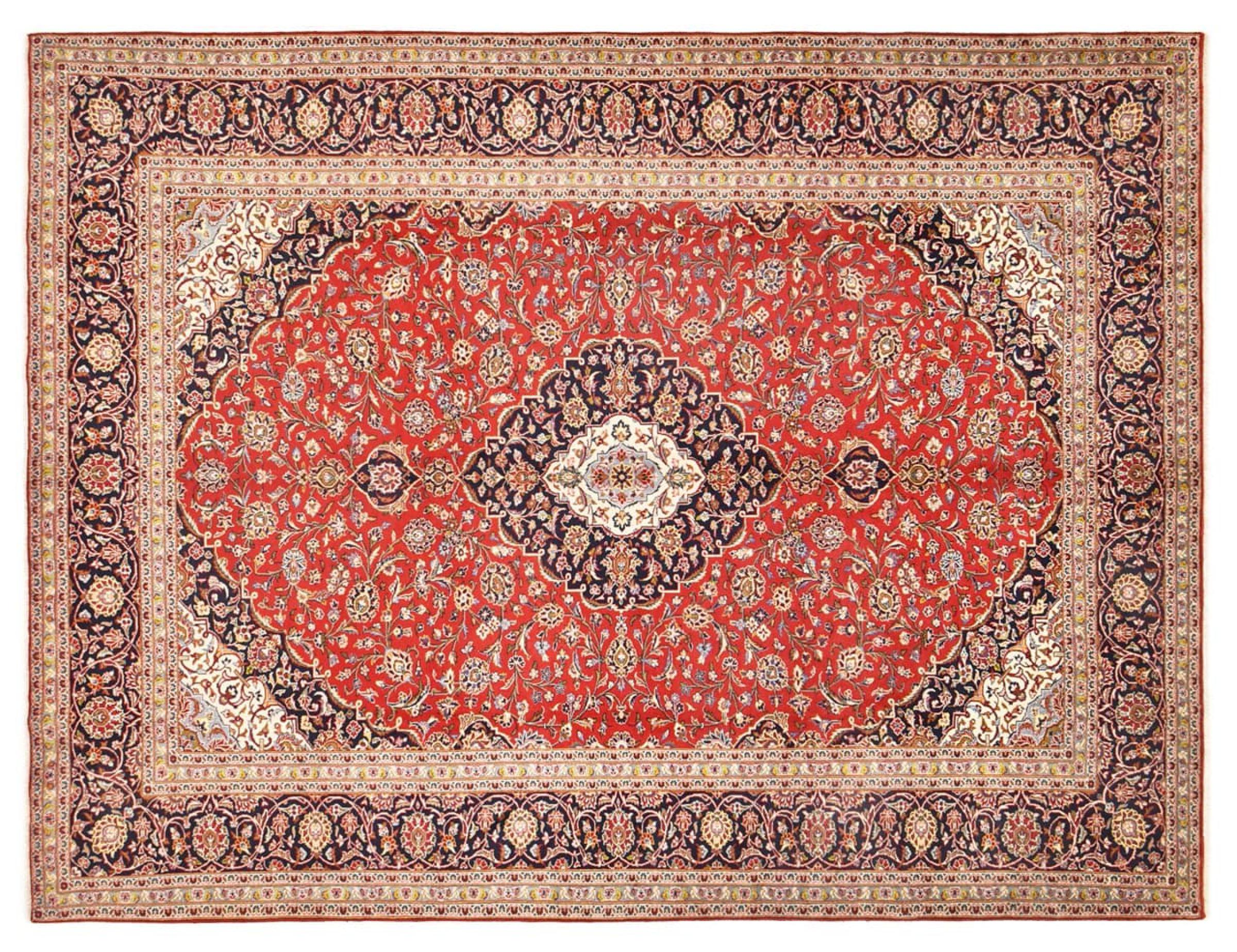 Hand knotted rugs from the city of Kashan (Keshan) are known worldwide. Not only do these Persian rugs have a very popular design, but their quality is undisputedly one of the best. In the Persian Empire the city was considered one of the most important trading places along the famous Silk Road. Kashan rugs usually have a central medallion, floral ornaments and a red background. They are made of high-quality sheep's wool and vegetable dyes.