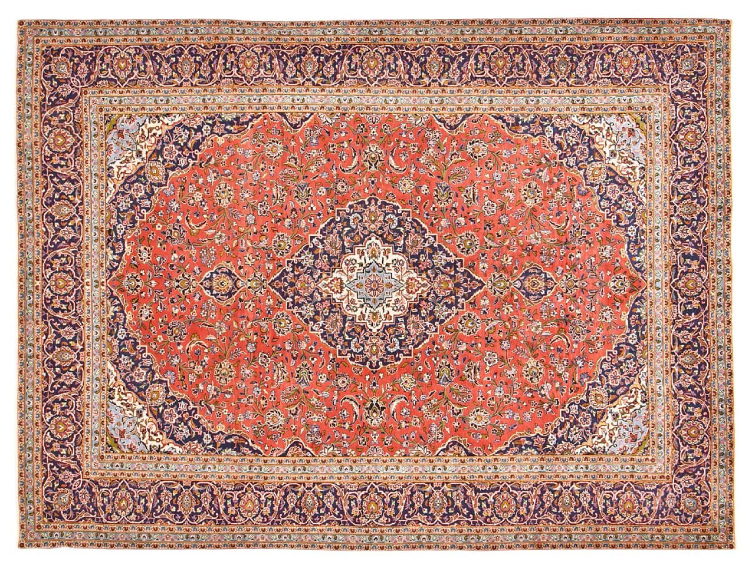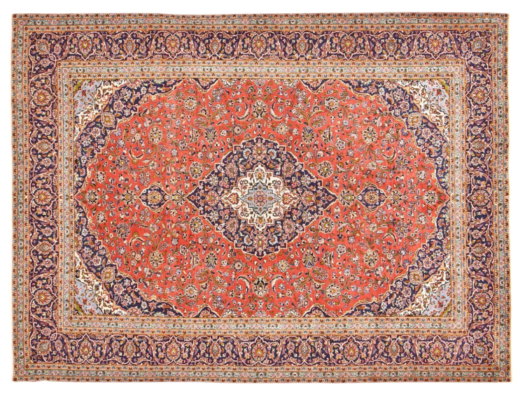 Hand knotted rugs from the city of Kashan (Keshan) are known worldwide. Not only do these Persian rugs have a very popular design, but their quality is undisputedly one of the best. In the Persian Empire the city was considered one of the most important trading places along the famous Silk Road. Kashan rugs usually have a central medallion, floral ornaments and a red background. They are made of high-quality sheep's wool and vegetable dyes.