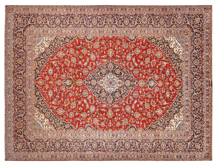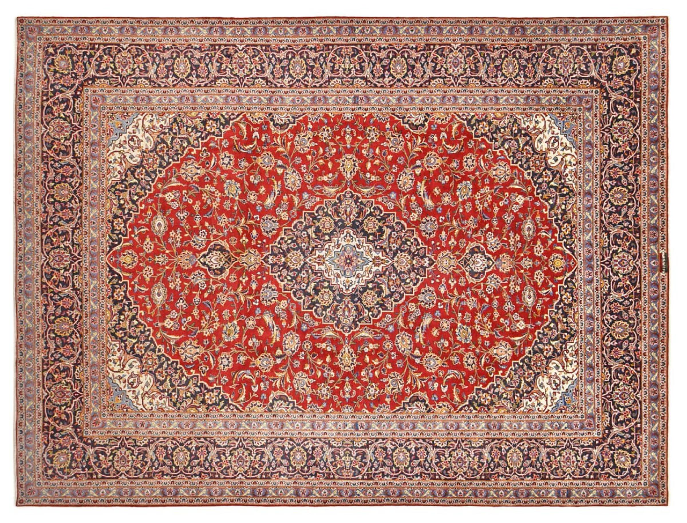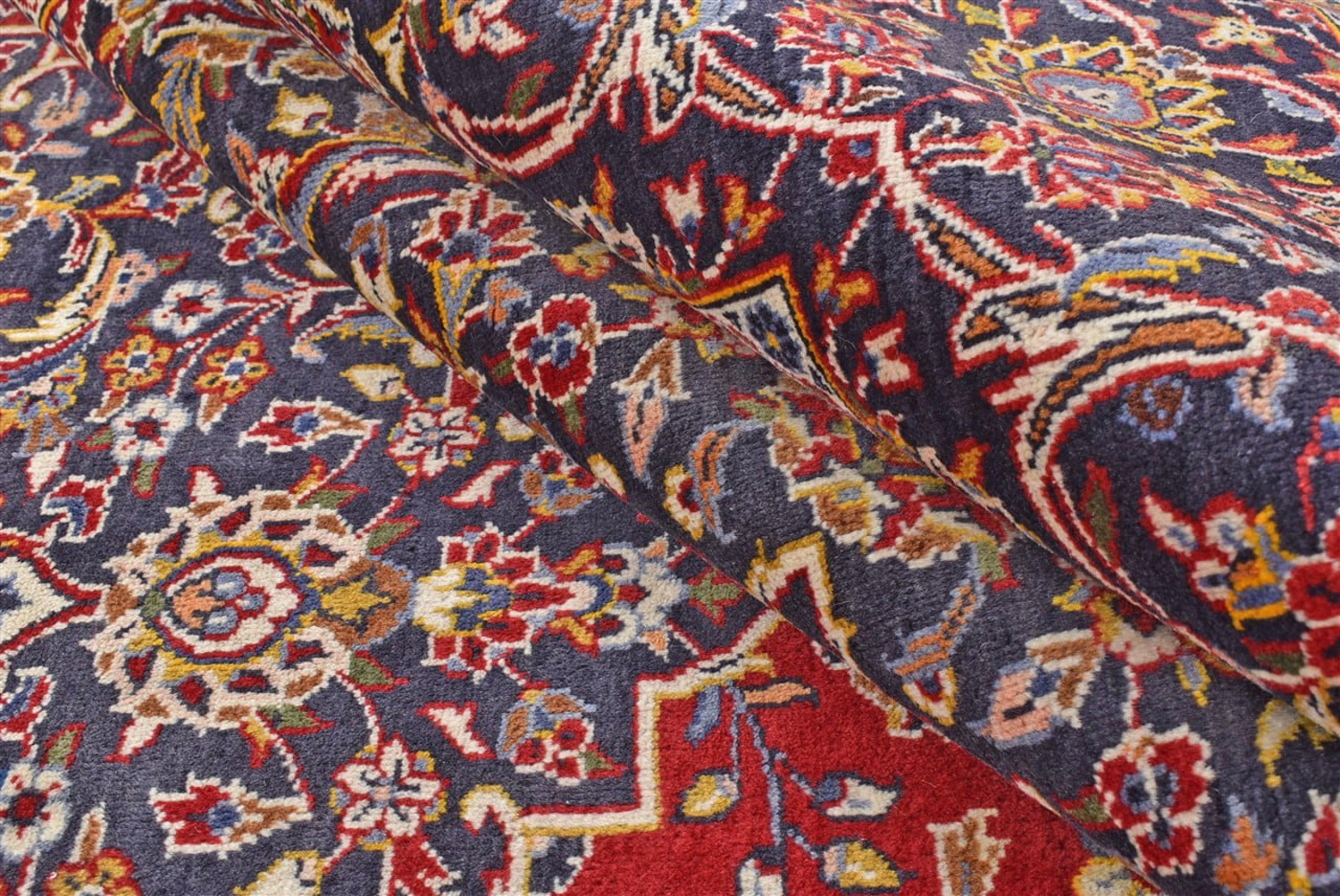 Hand knotted rugs from the city of Kashan (Keshan) are known worldwide. Not only do these Persian rugs have a very popular design, but their quality is undisputedly one of the best. In the Persian Empire the city was considered one of the most important trading places along the famous Silk Road. Kashan rugs usually have a central medallion, floral ornaments and a red background. They are made of high-quality sheep's wool and vegetable dyes.