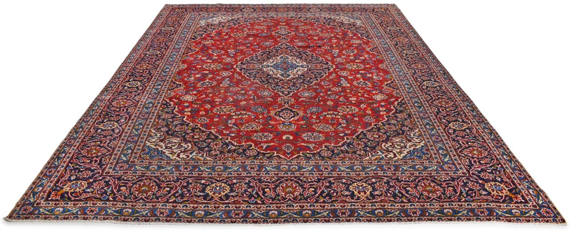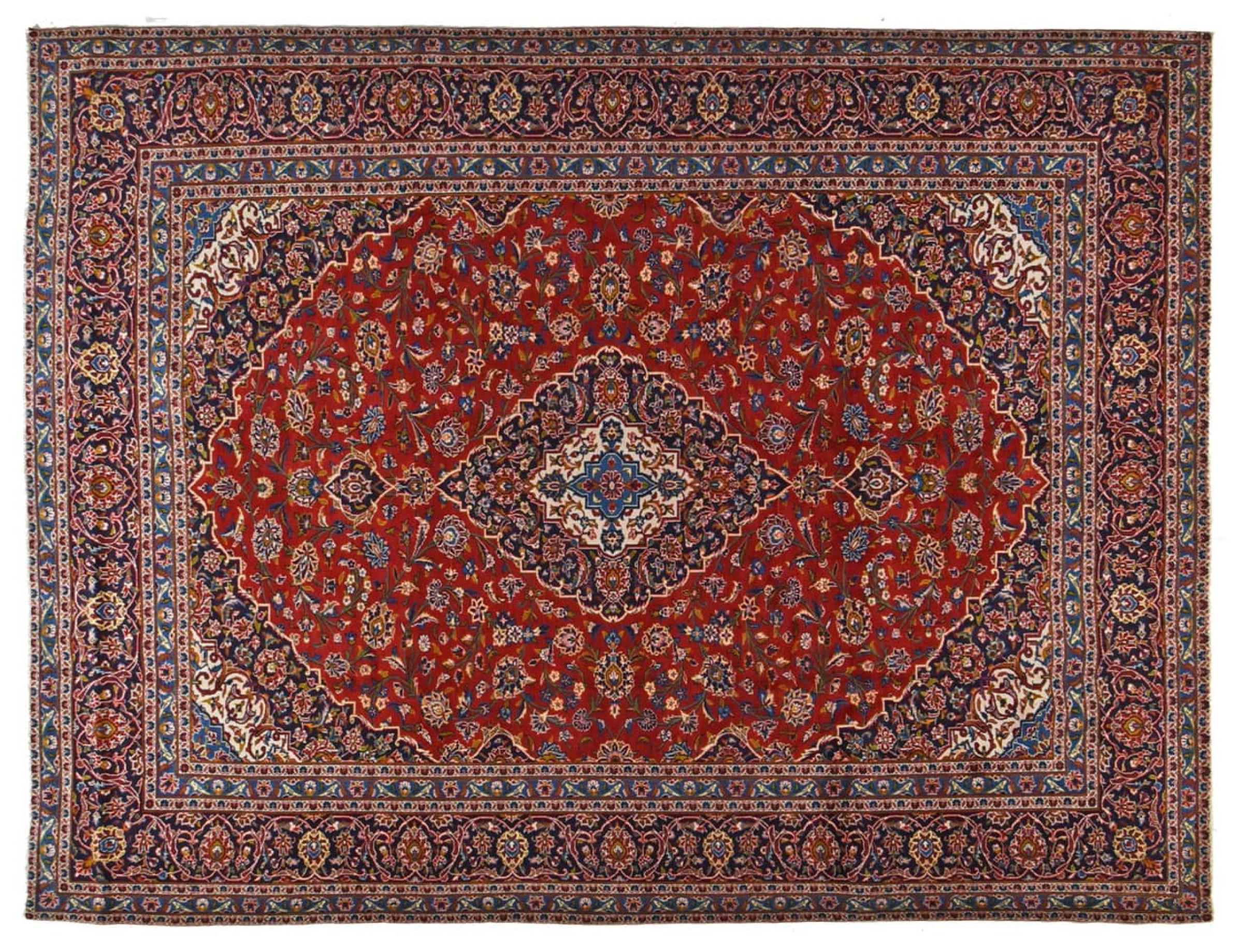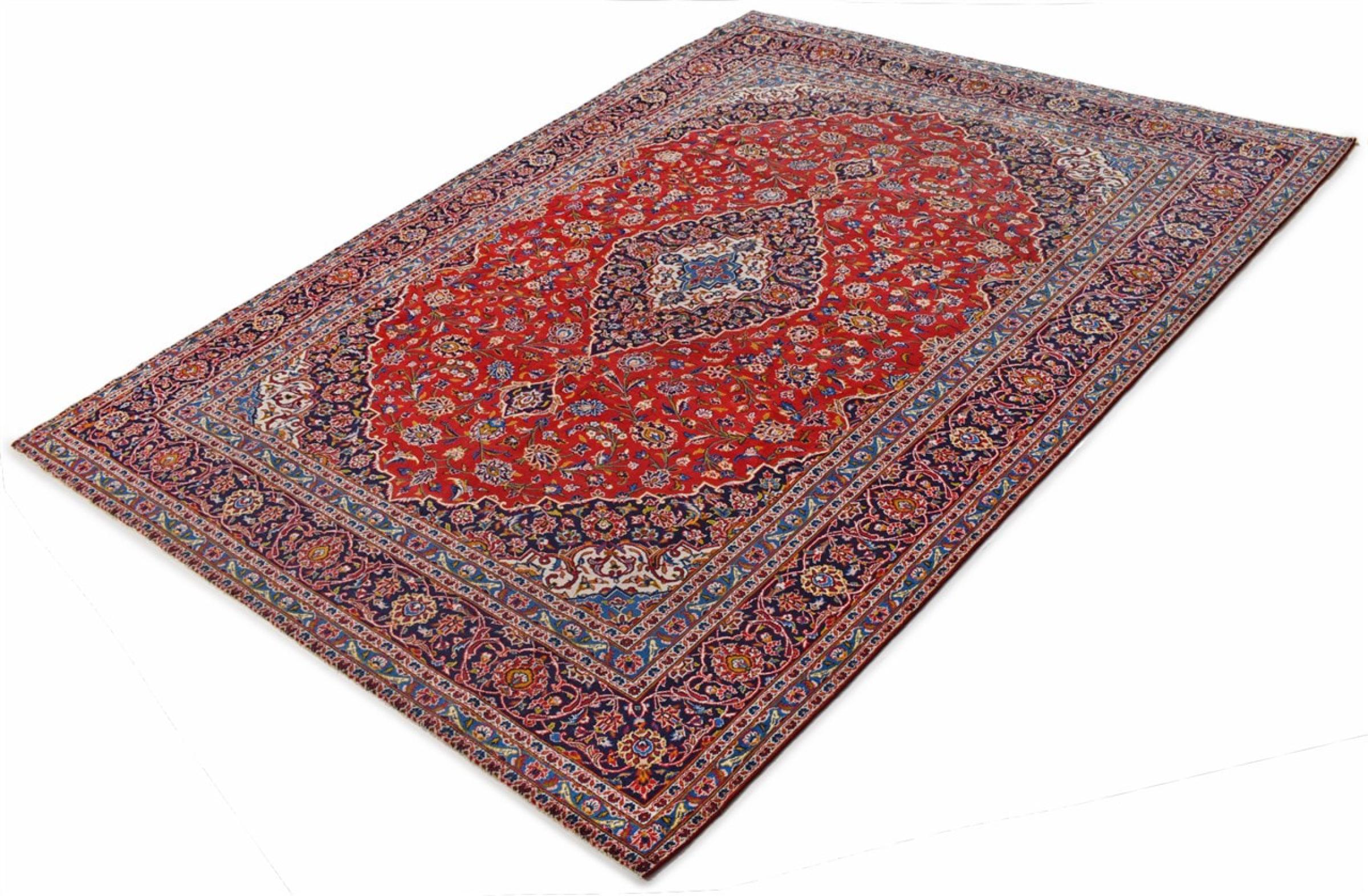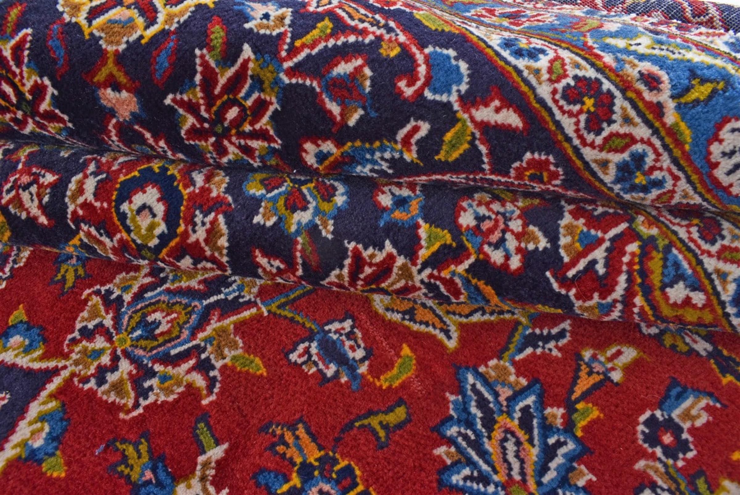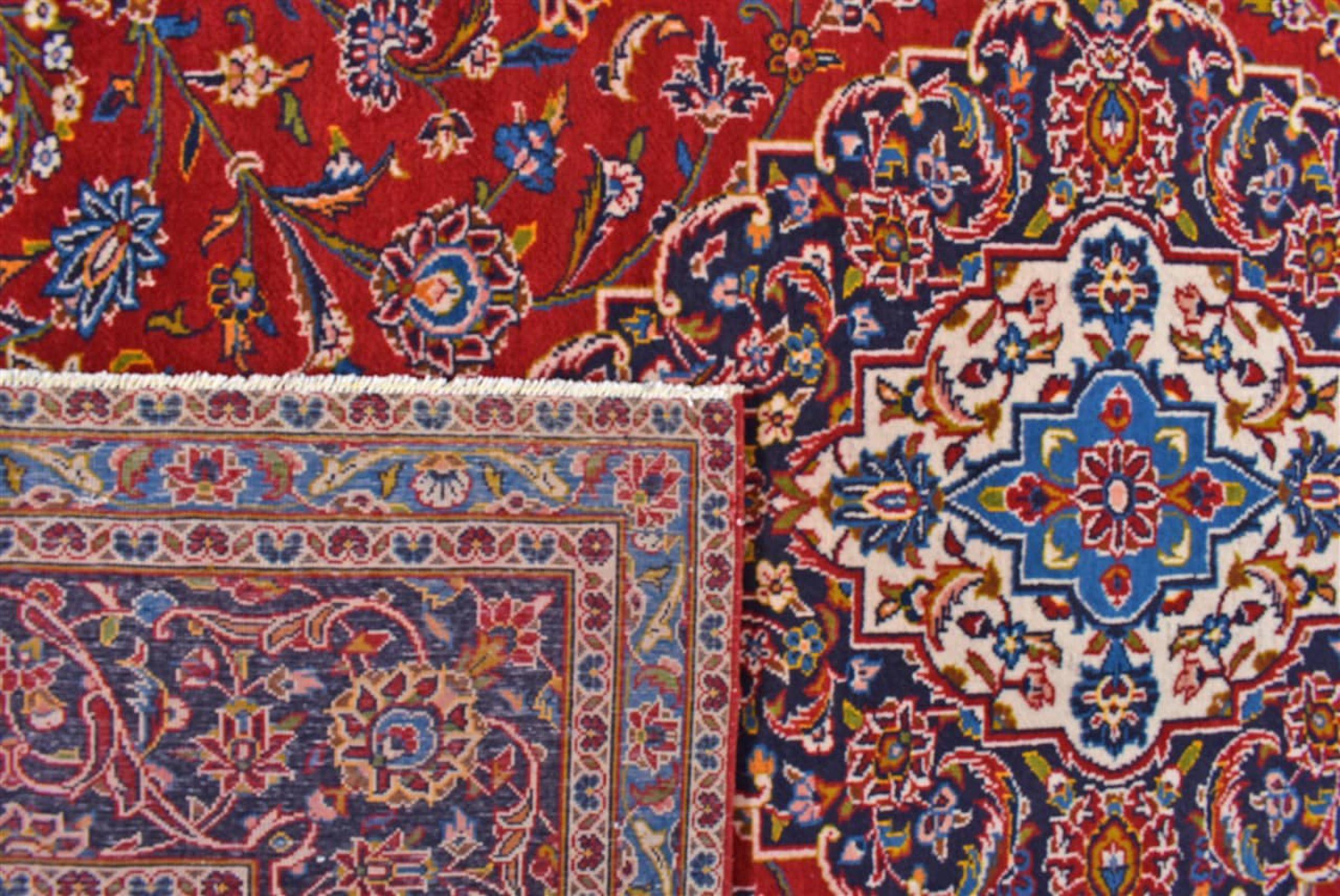 Hand knotted rugs from the city of Kashan (Keshan) are known worldwide. Not only do these Persian rugs have a very popular design, but their quality is undisputedly one of the best. In the Persian Empire the city was considered one of the most important trading places along the famous Silk Road. Kashan rugs usually have a central medallion, floral ornaments and a red background. They are made of high-quality sheep's wool and vegetable dyes.