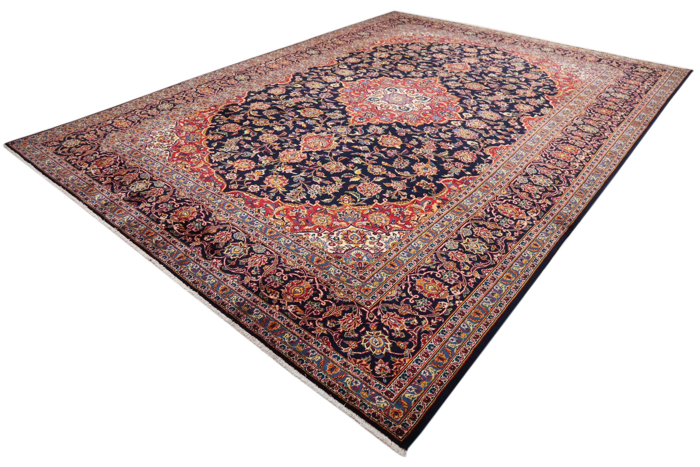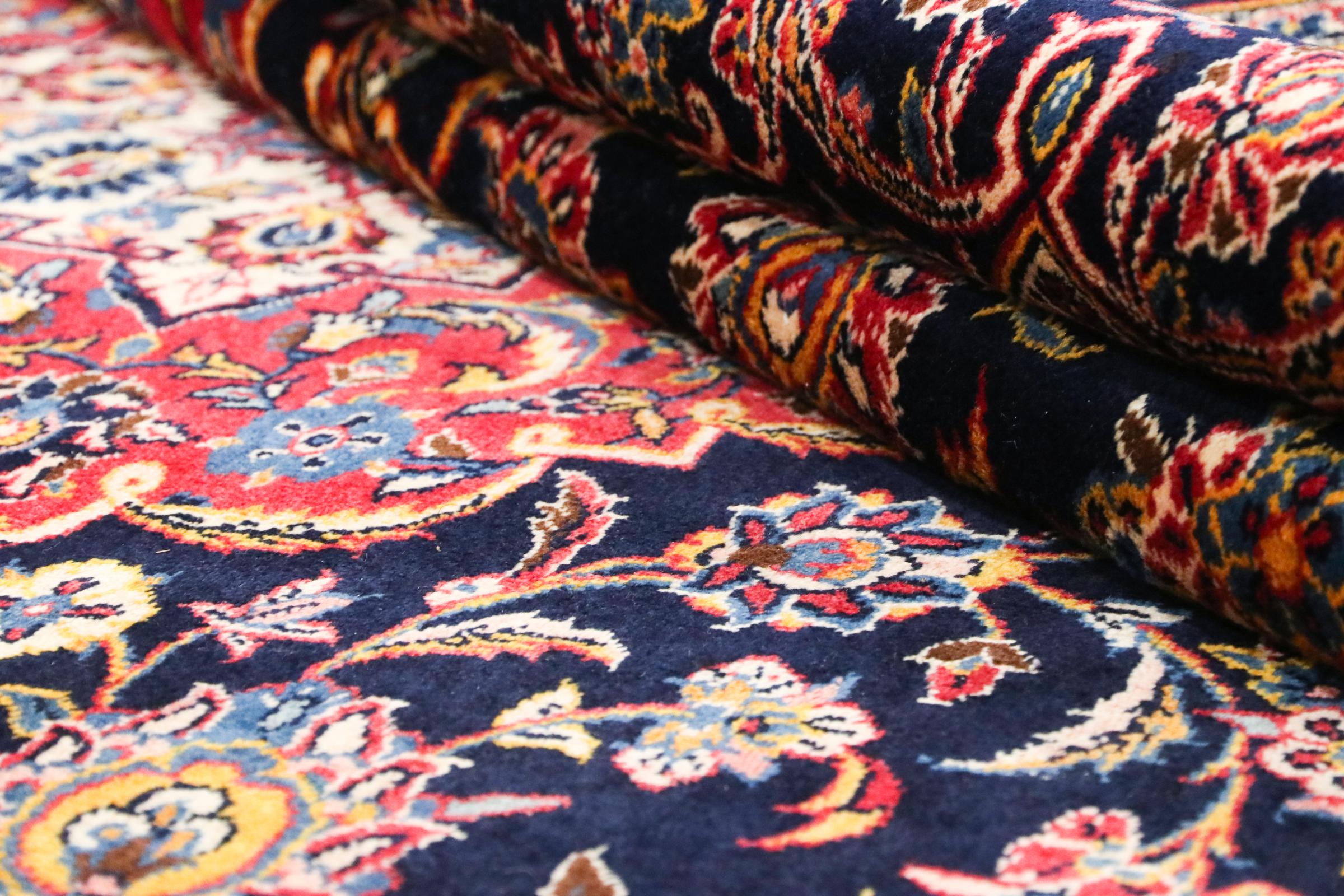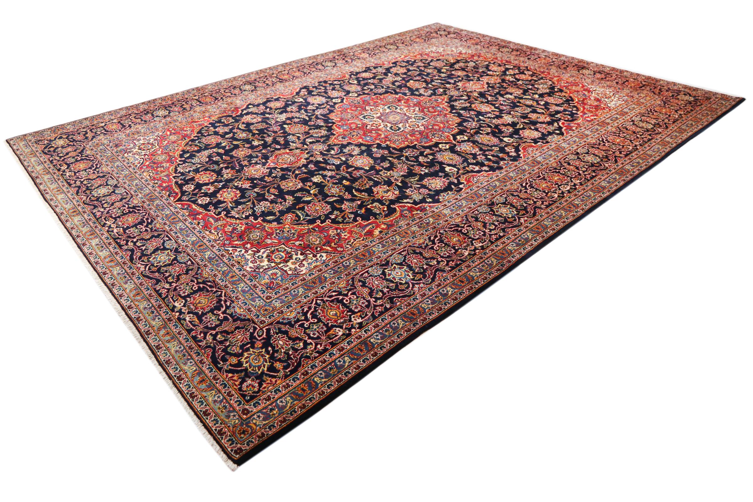 Hand knotted rugs from the city of Kashan (Keshan) are known worldwide. Not only do these Persian rugs have a very popular design, but their quality is undisputedly one of the best. In the Persian Empire the city was considered one of the most important trading places along the famous Silk Road. Kashan rugs usually have a central medallion, floral ornaments and a red background. They are made of high-quality sheep's wool and vegetable dyes.