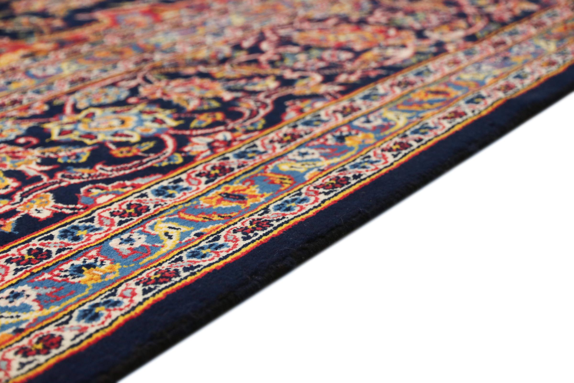 This carpet from Kashan (Keshan) is held in its very traditional and typical Persian design with beautiful ornaments. Kashan rugs are highly popular due to their exceptionally elegant design. These carpets originate from Kashan, a city on the ancient Silk Road. This carpet has been knotted by hand from high grade sheep wool and is going to be an one-of-a-kind highlight in your home.