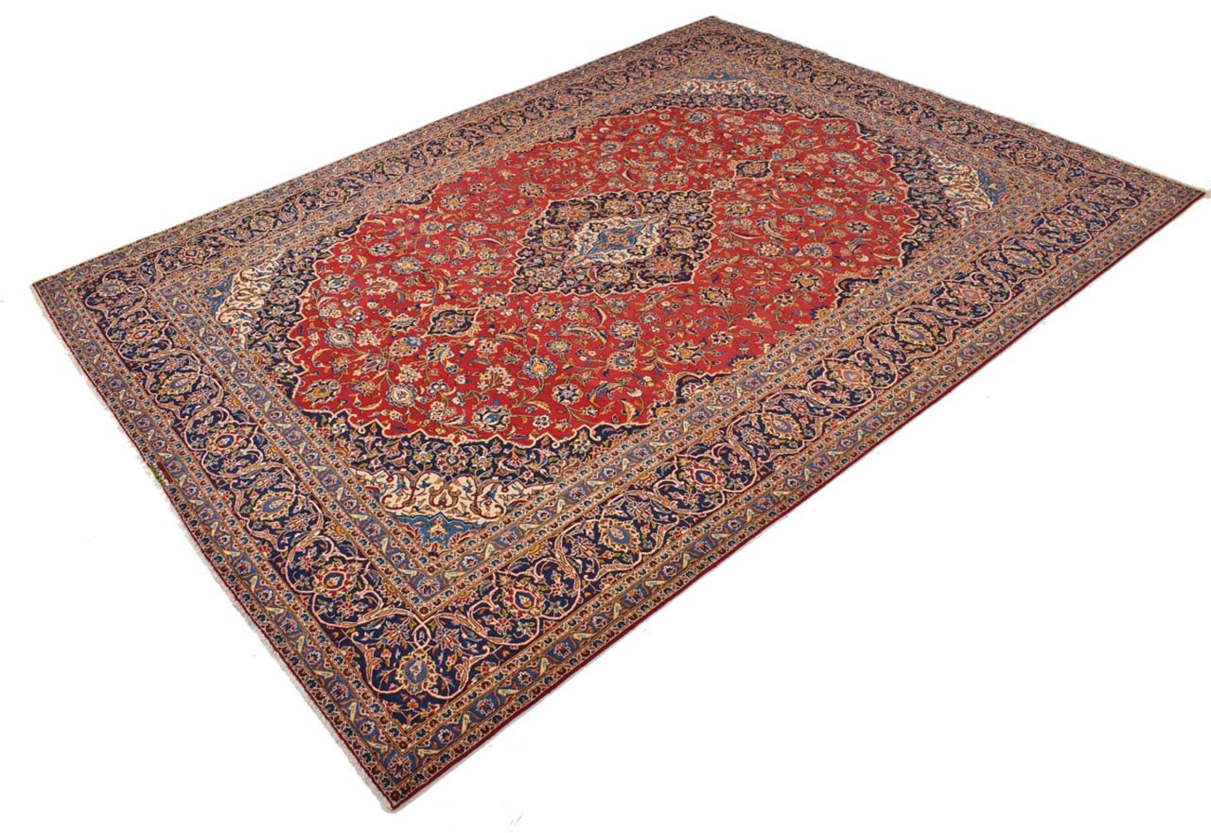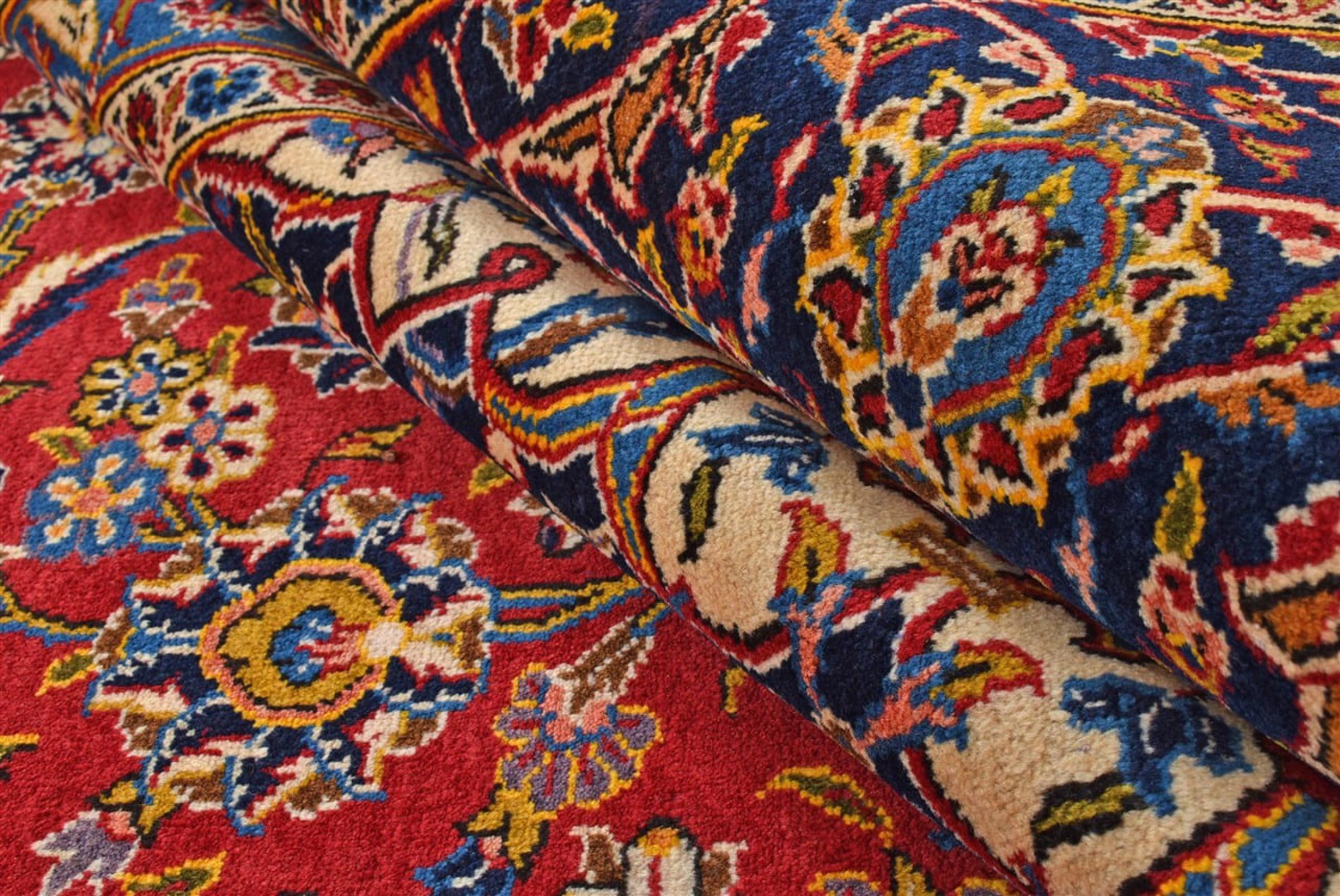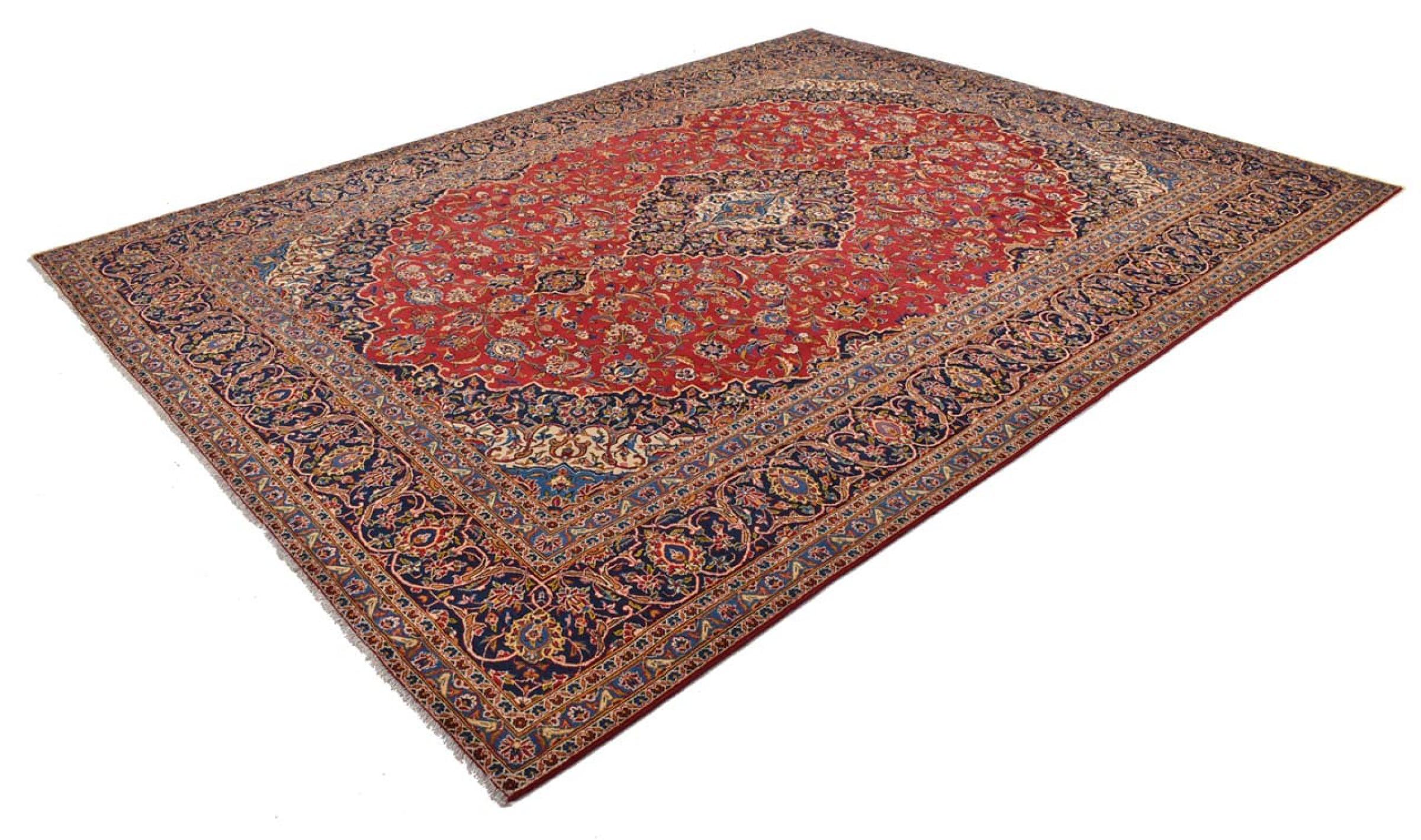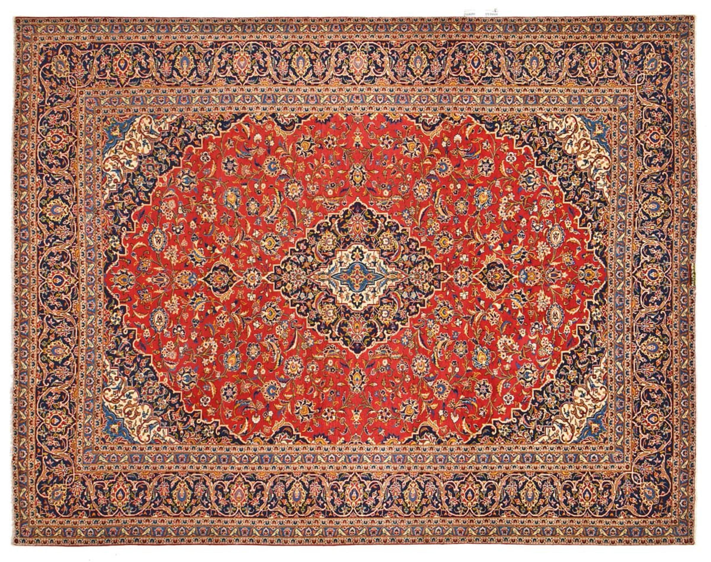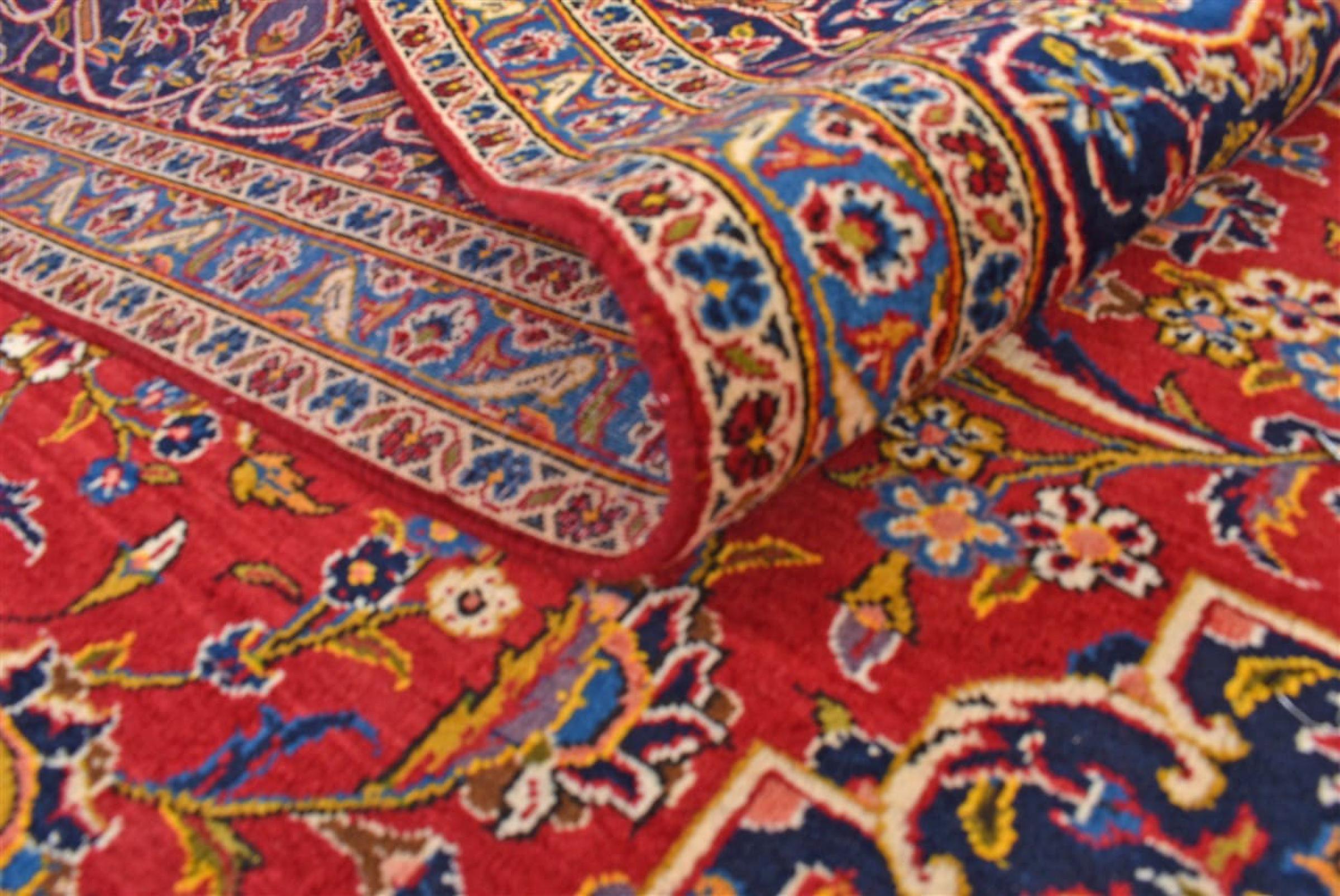 Hand knotted rugs from the city of Kashan (Keshan) are known worldwide. Not only do these Persian rugs have a very popular design, but their quality is undisputedly one of the best. In the Persian Empire the city was considered one of the most important trading places along the famous Silk Road. Kashan rugs usually have a central medallion, floral ornaments and a red background. They are made of high-quality sheep's wool and vegetable dyes.
