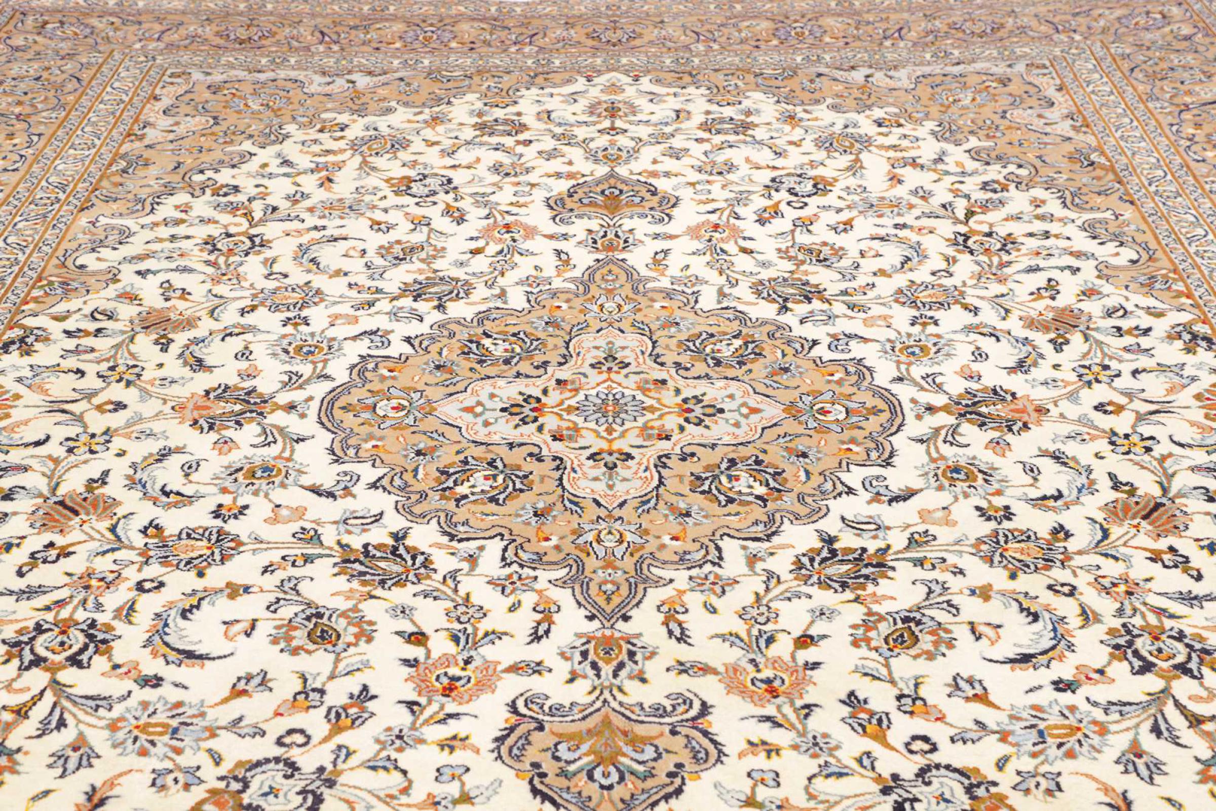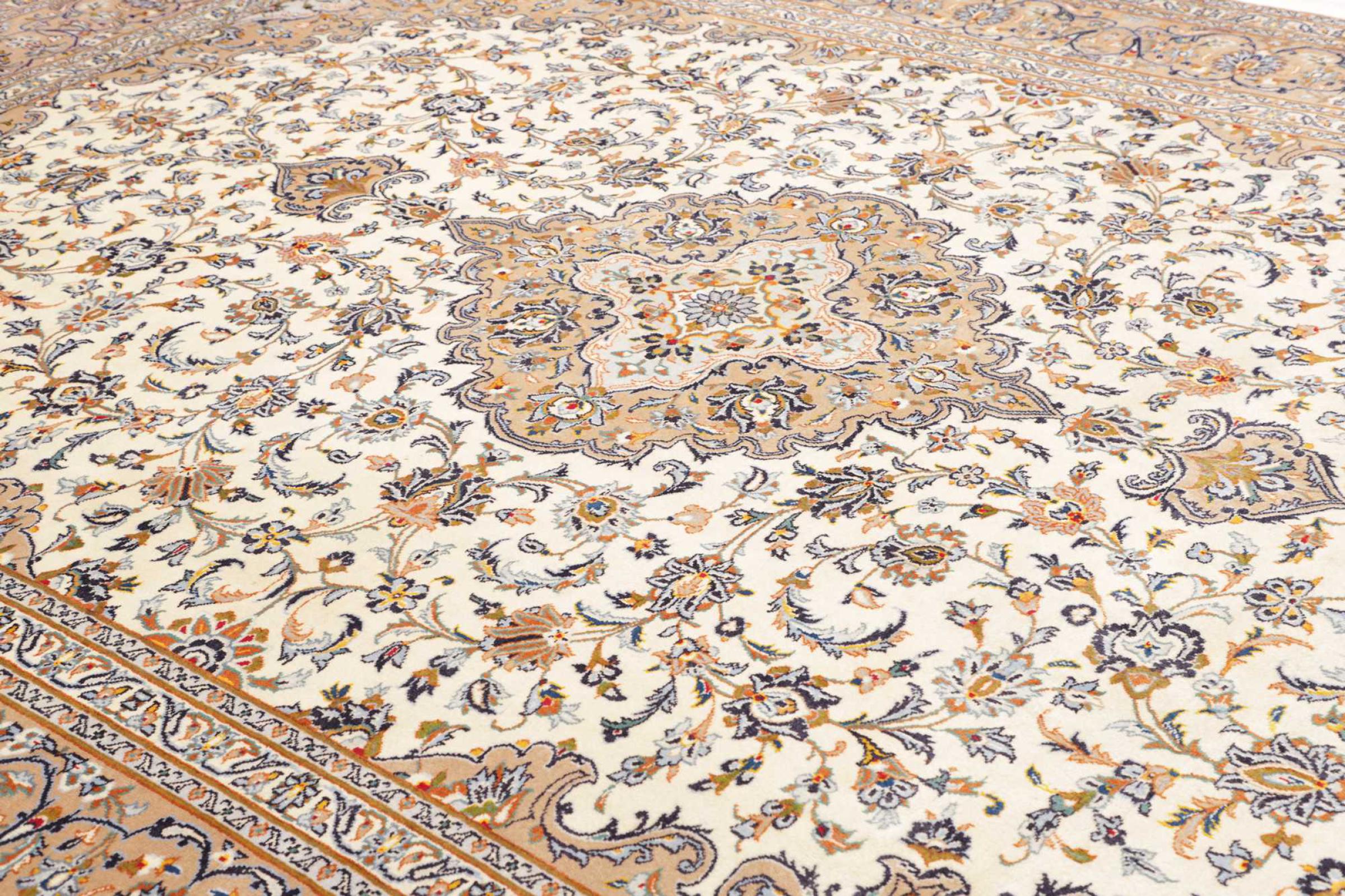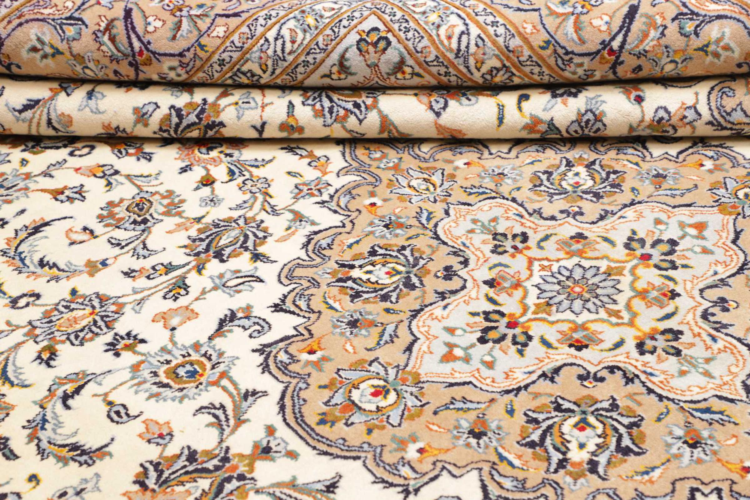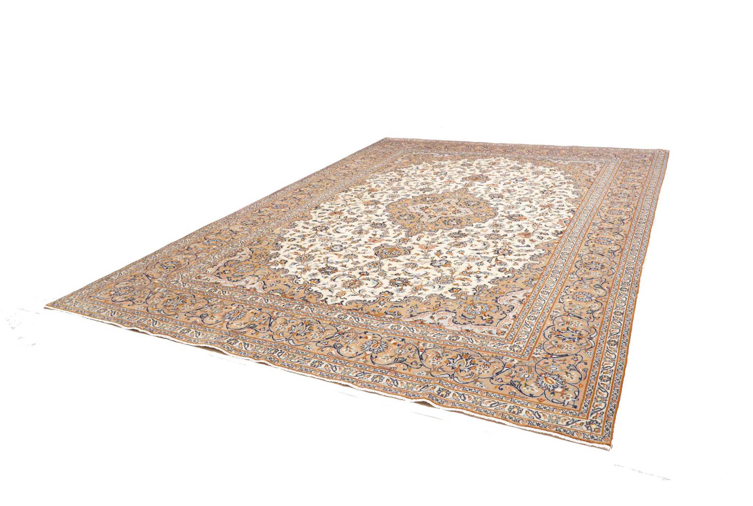 Hand knotted rugs from the city of Kashan (Keshan) are known worldwide. Not only do these Persian rugs have a very popular design, but their quality is undisputedly one of the best. In the Persian Empire the city was considered one of the most important trading places along the famous Silk Road. Kashan rugs usually have a central medallion, floral ornaments and a red background. They are made of high-quality sheep's wool and vegetable dyes.