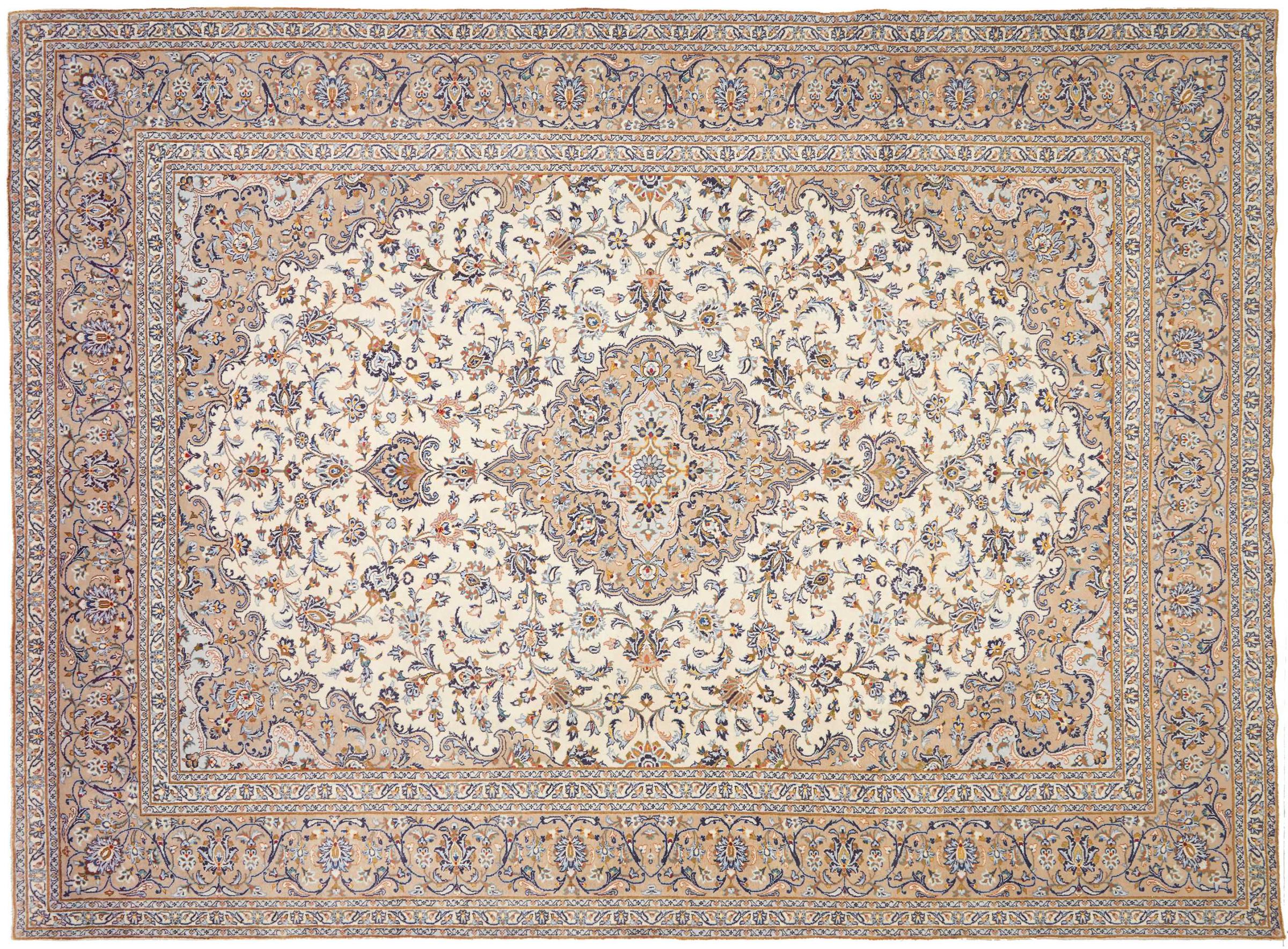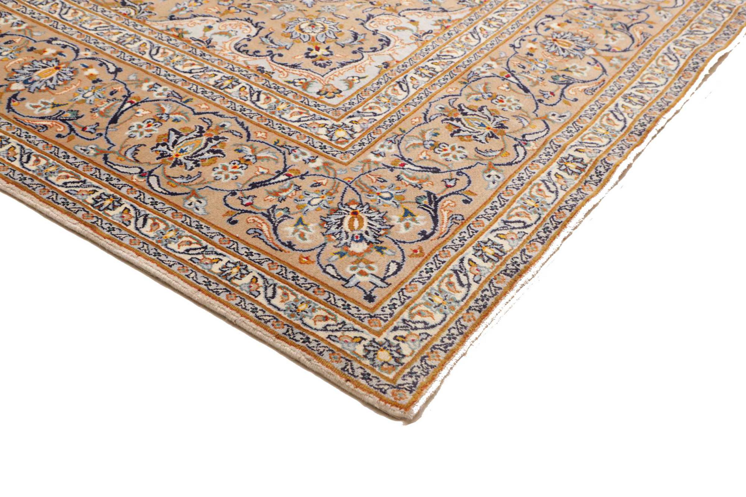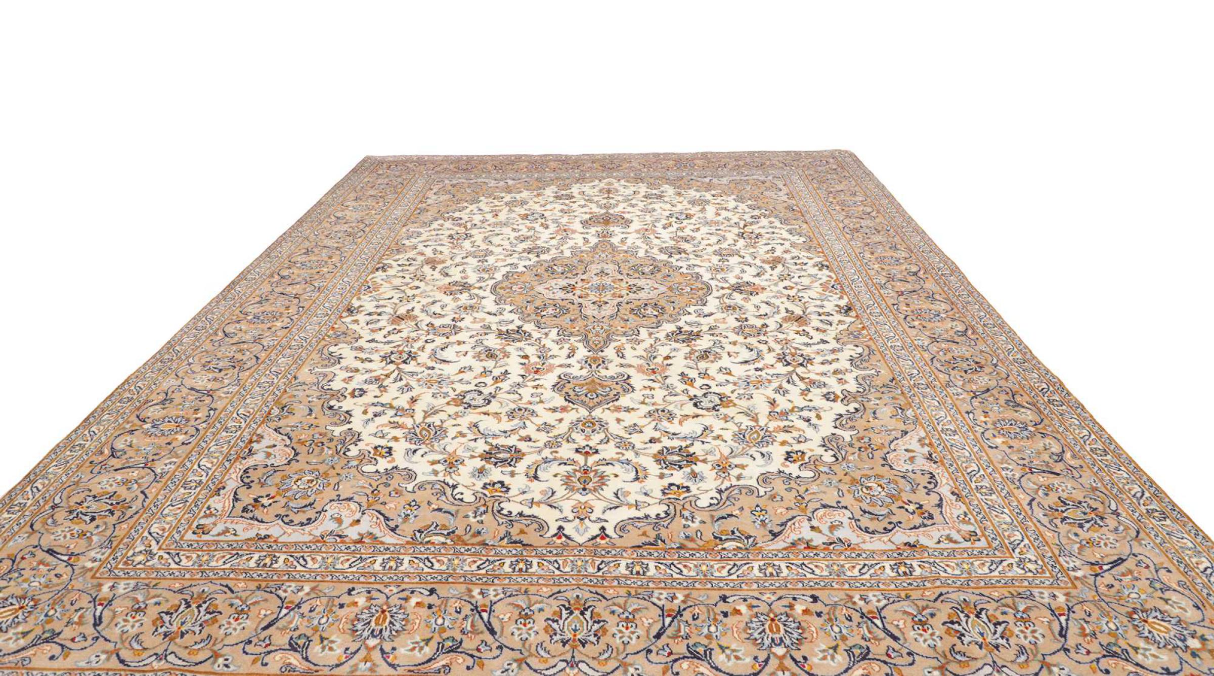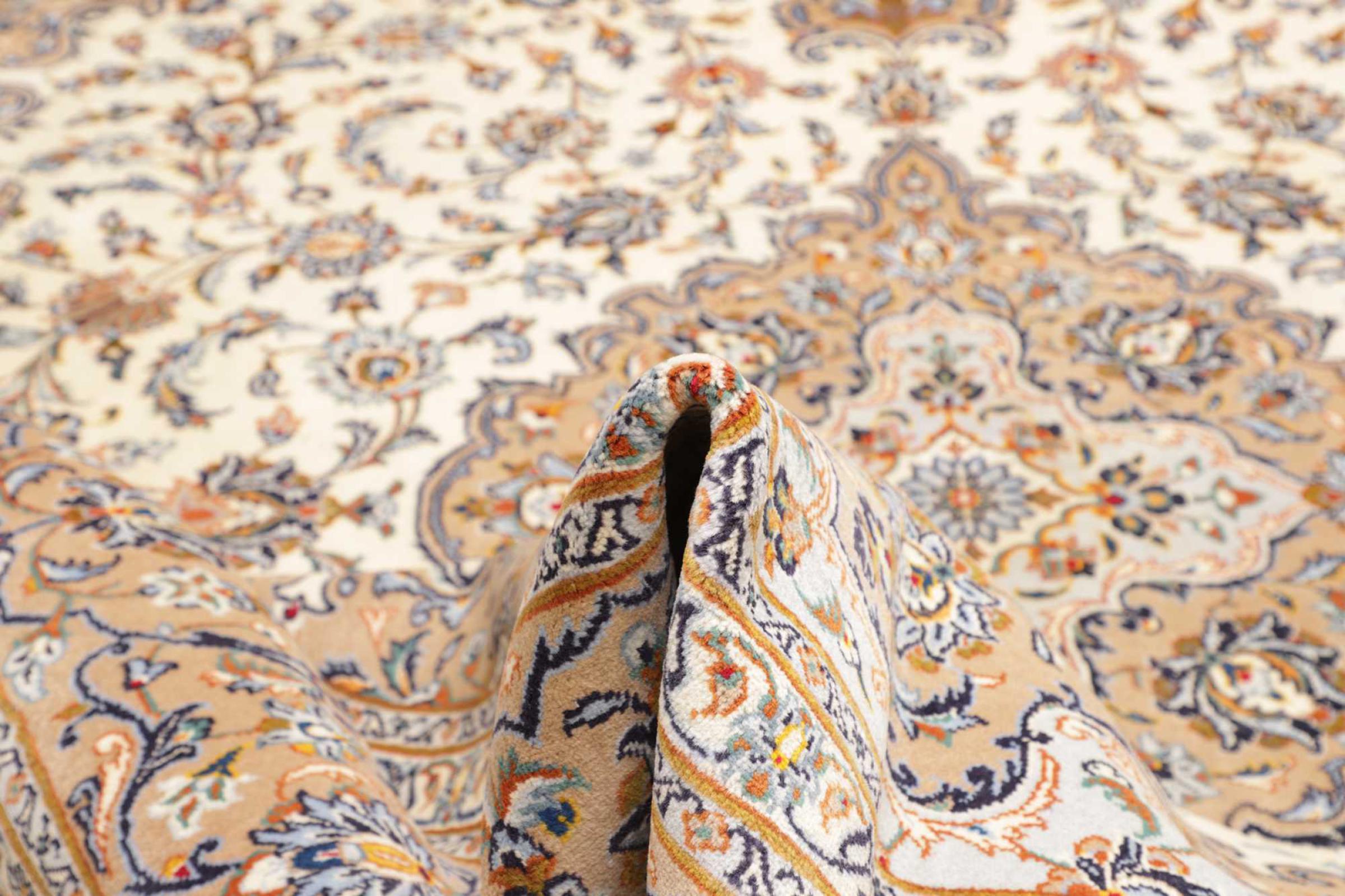Hand knotted rugs from the city of Kashan (Keshan) are known worldwide. Not only do these Persian rugs have a very popular design, but their quality is undisputedly one of the best. In the Persian Empire the city was considered one of the most important trading places along the famous Silk Road. Kashan rugs usually have a central medallion, floral ornaments and a red background. They are made of high-quality sheep's wool and vegetable dyes.