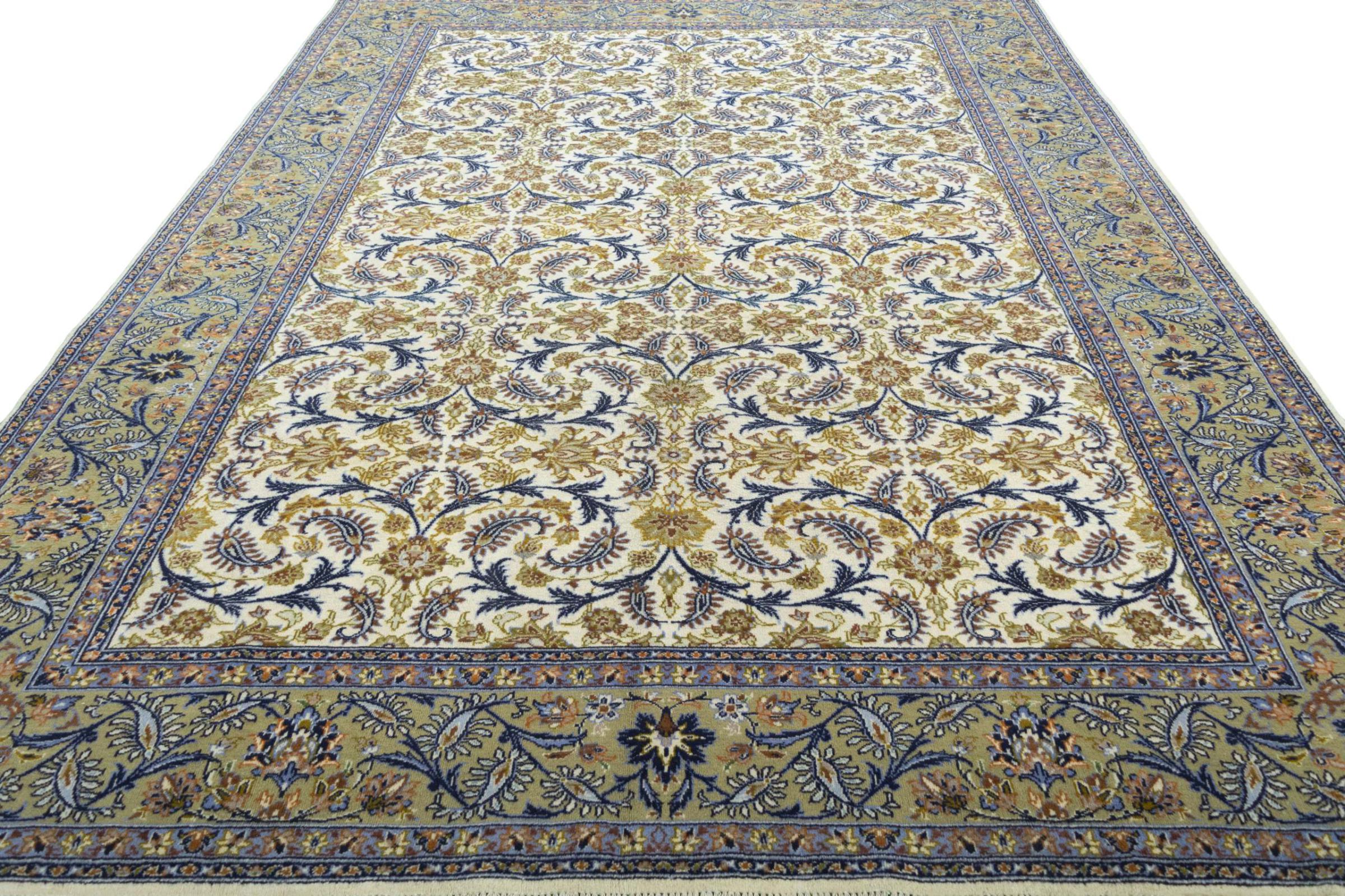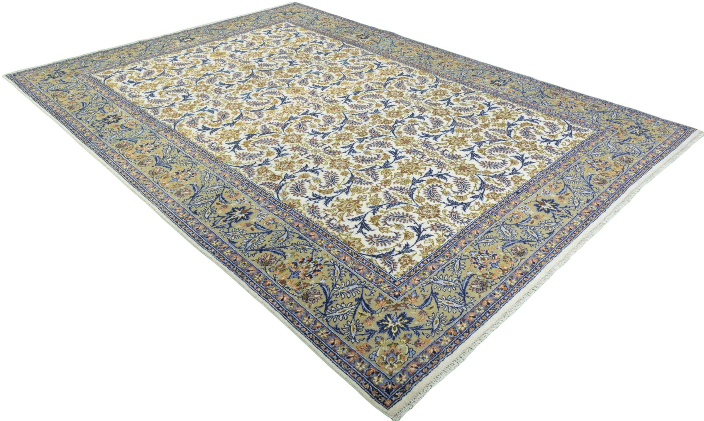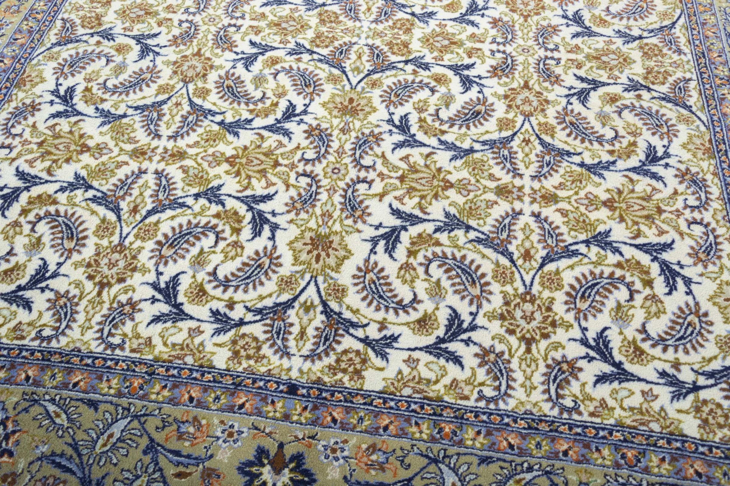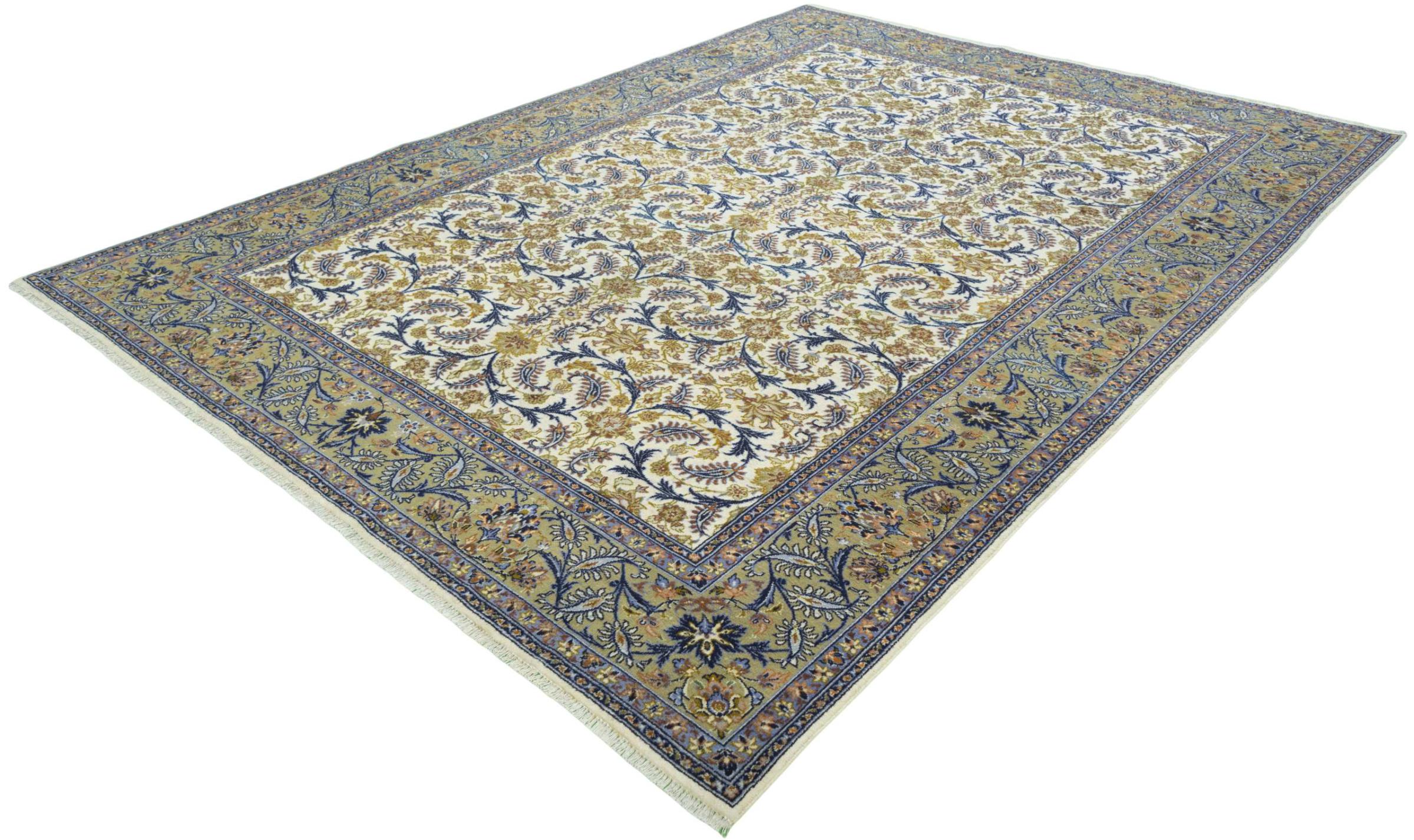 This carpet from Kashan (Keshan) is held in its very traditional and typical Persian design with beautiful ornaments. Kashan rugs are highly popular due to their exceptionally elegant design. These carpets originate from Kashan, a city on the ancient Silk Road. This carpet has been knotted by hand from high grade sheep wool and is going to be an one-of-a-kind highlight in your home.