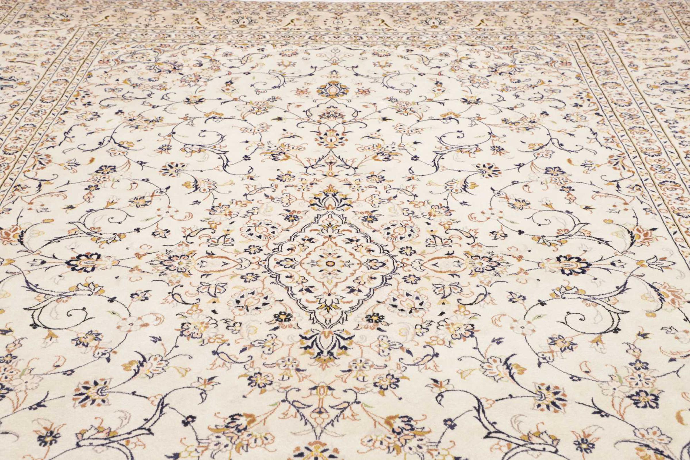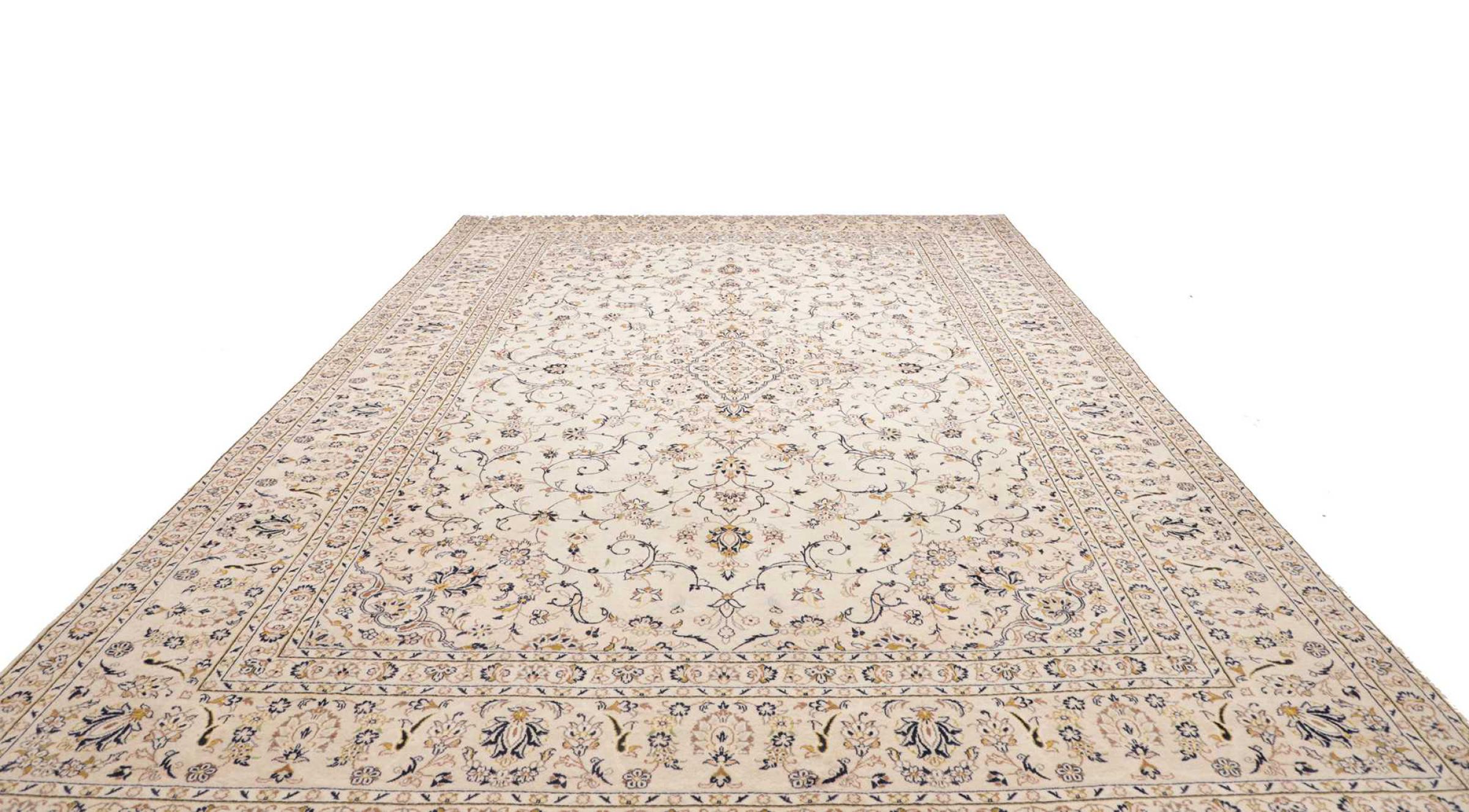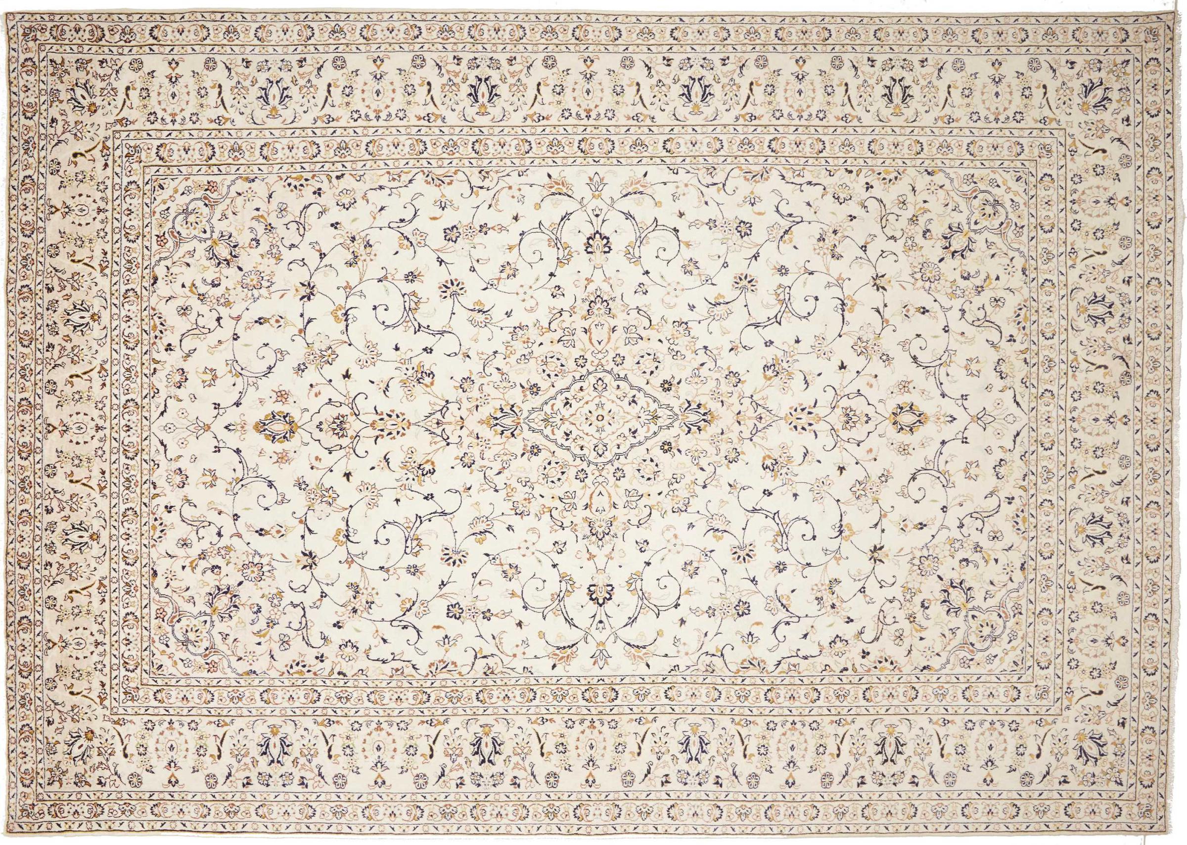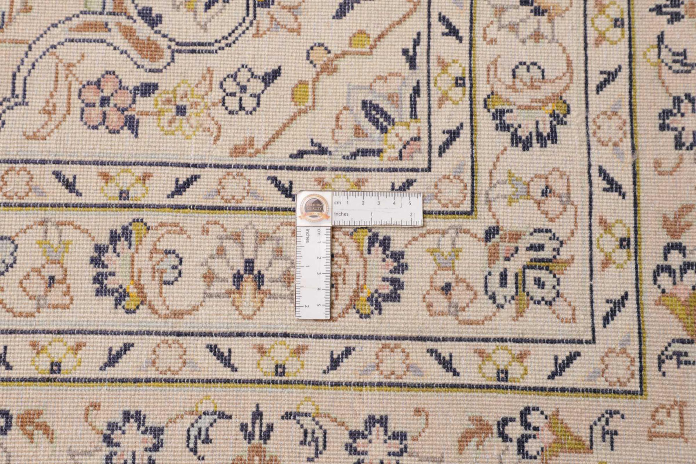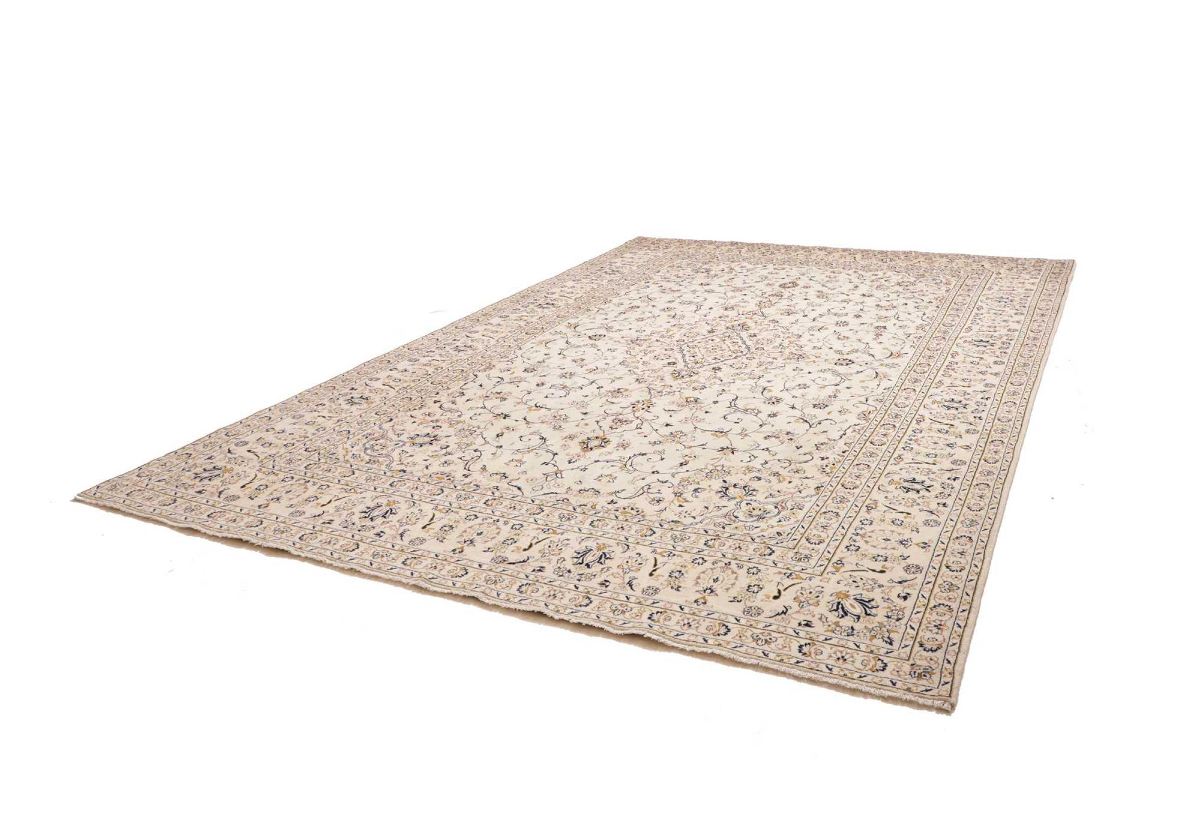 This carpet from Kashan (Keshan) is held in its very traditional and typical Persian design with beautiful ornaments. Kashan rugs are highly popular due to their exceptionally elegant design. These carpets originate from Kashan, a city on the ancient Silk Road. This carpet has been knotted by hand from high grade sheep wool and is going to be an one-of-a-kind highlight in your home.