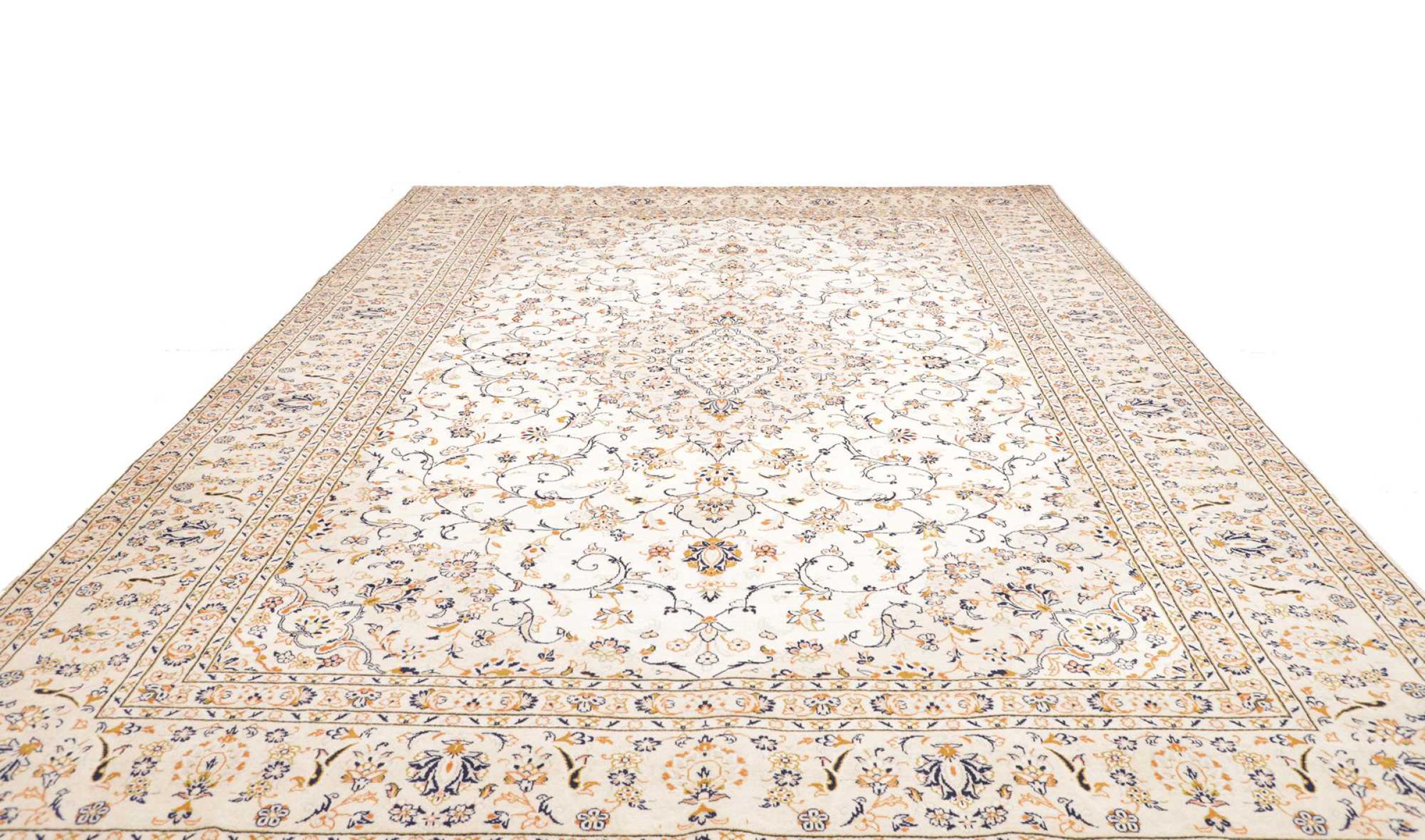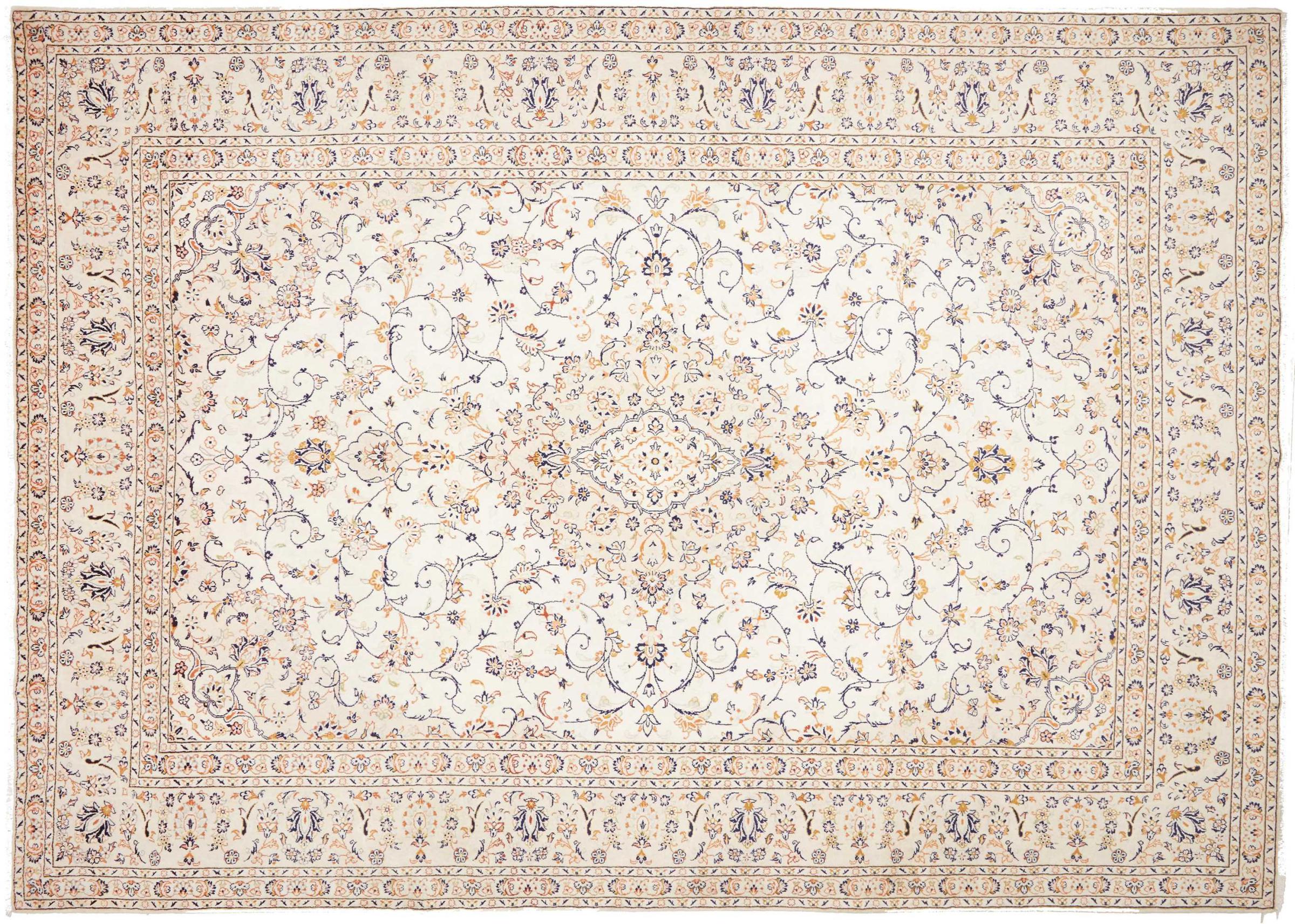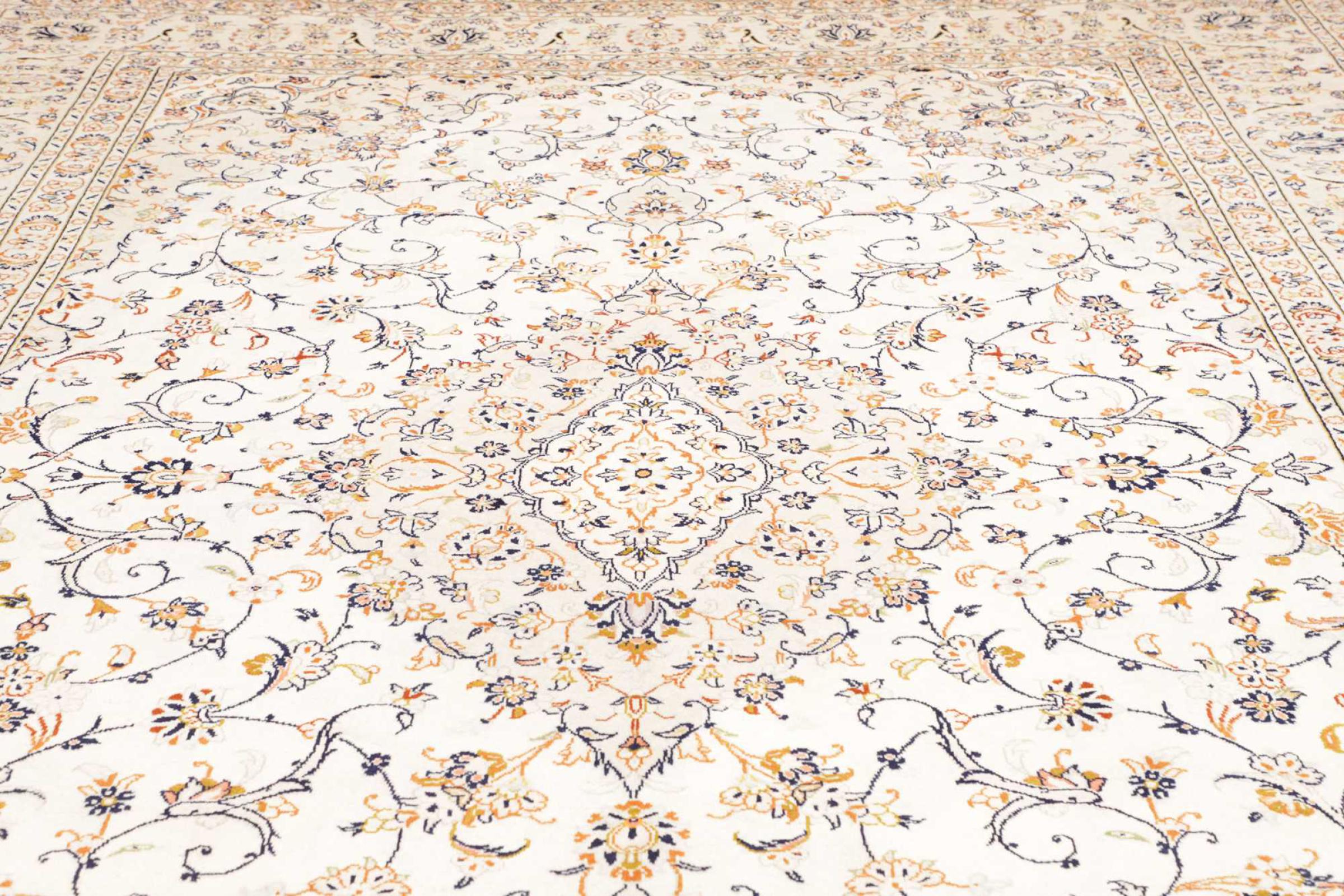 Hand knotted rugs from the city of Kashan (Keshan) are known worldwide. Not only do these Persian rugs have a very popular design, but their quality is undisputedly one of the best. In the Persian Empire the city was considered one of the most important trading places along the famous Silk Road. Kashan rugs usually have a central medallion, floral ornaments and a red background. They are made of high-quality sheep's wool and vegetable dyes.