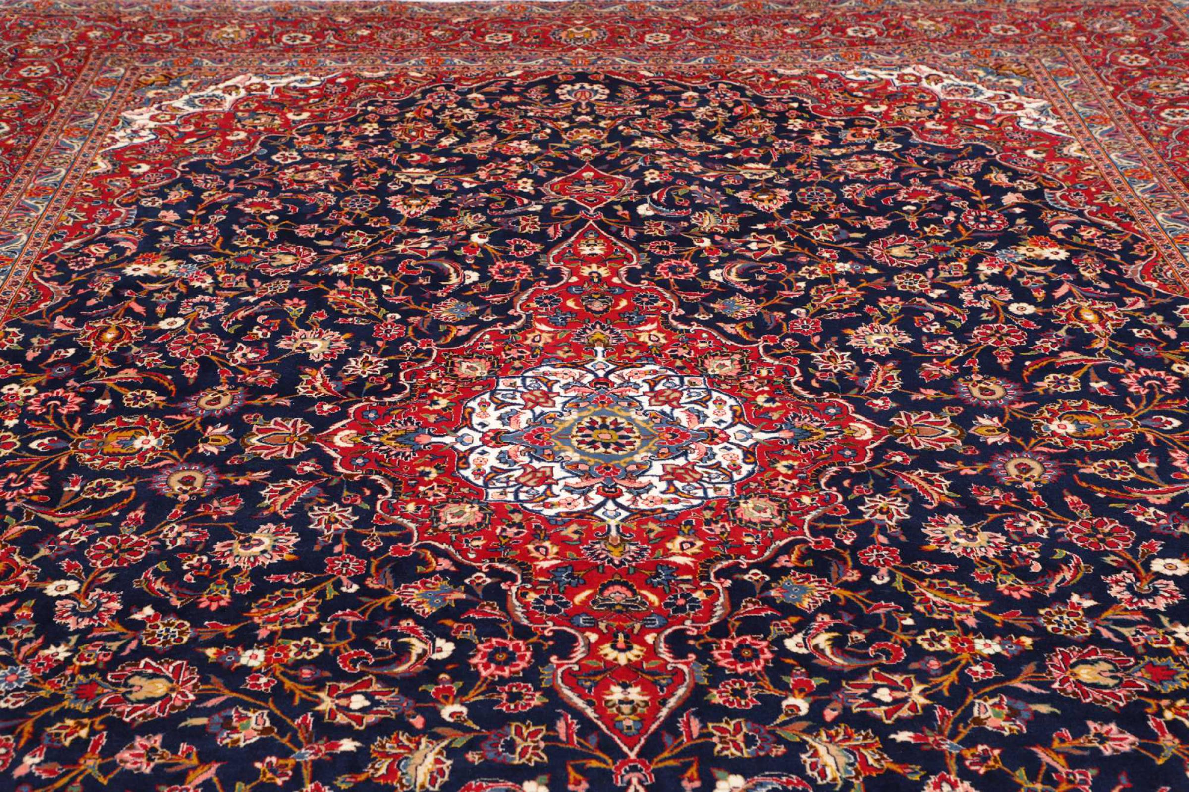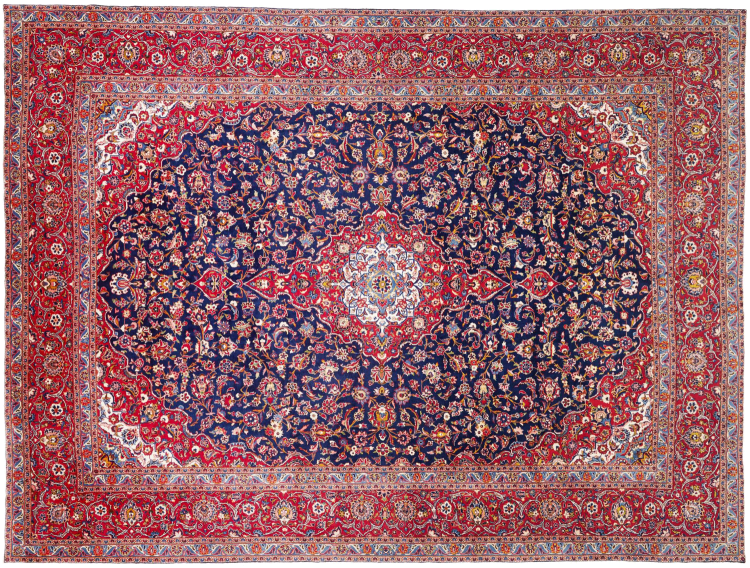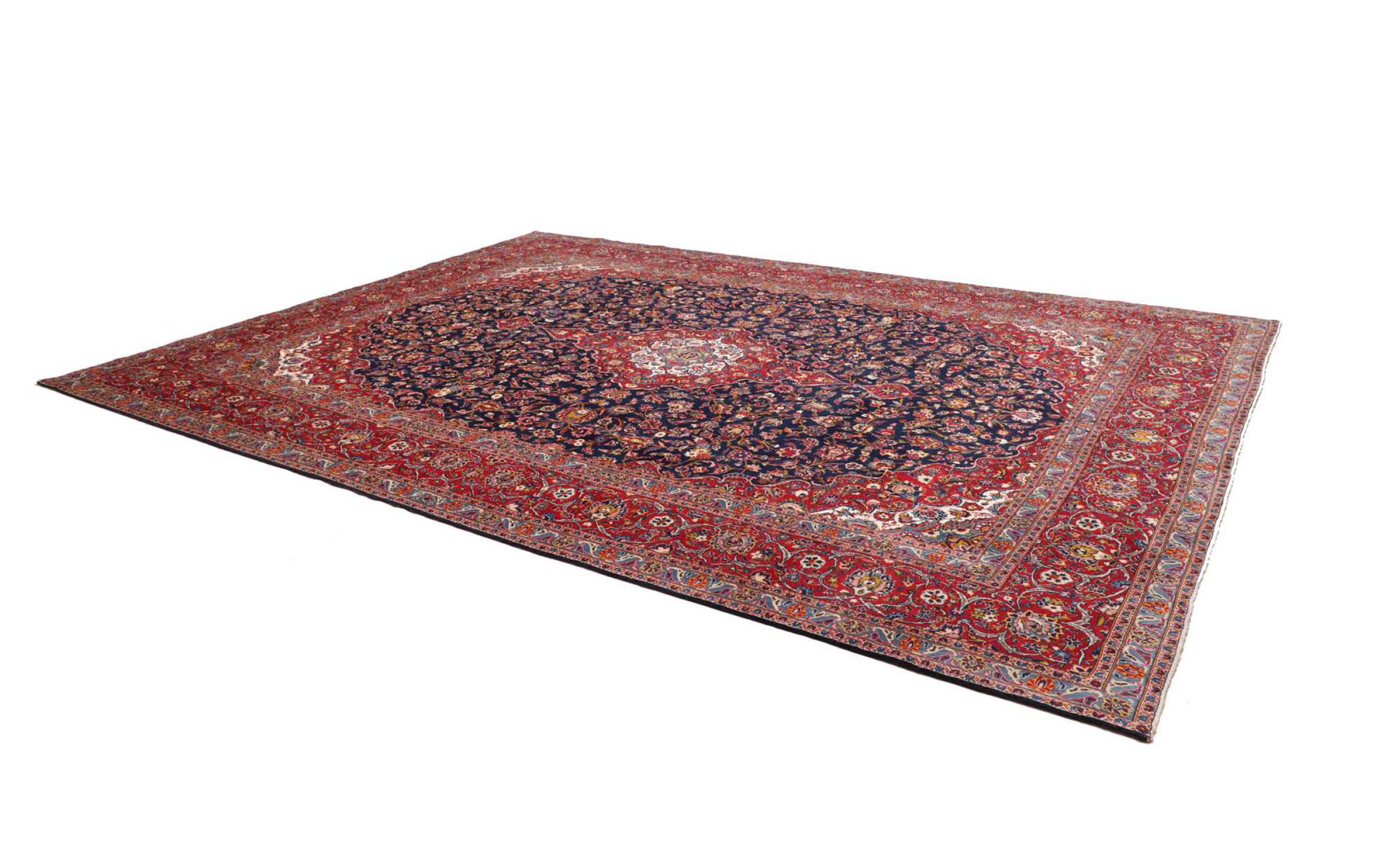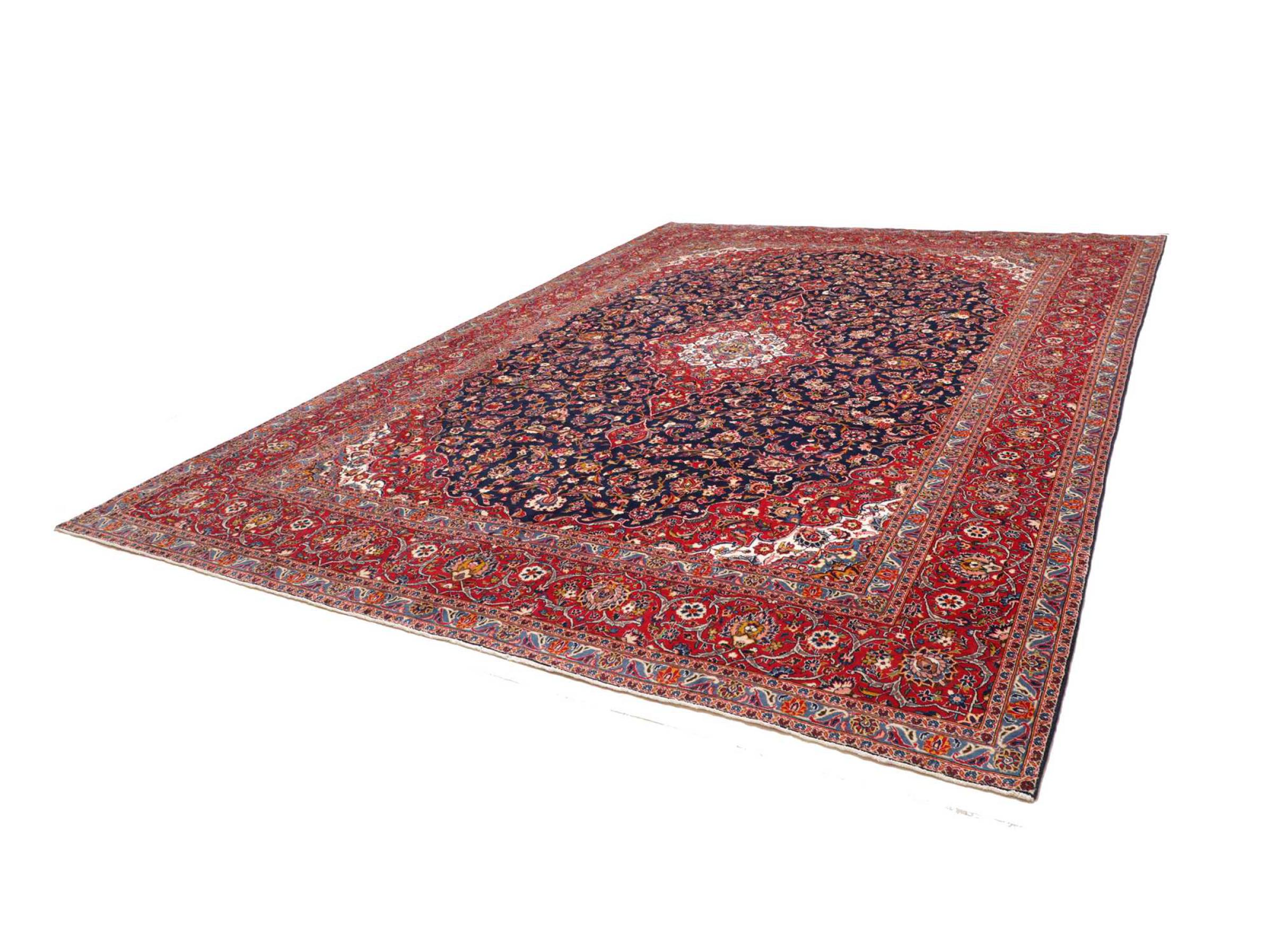Hand knotted rugs from the city of Kashan (Keshan) are known worldwide. Not only do these Persian rugs have a very popular design, but their quality is undisputedly one of the best. In the Persian Empire the city was considered one of the most important trading places along the famous Silk Road. Kashan rugs usually have a central medallion, floral ornaments and a red background. They are made of high-quality sheep's wool and vegetable dyes.