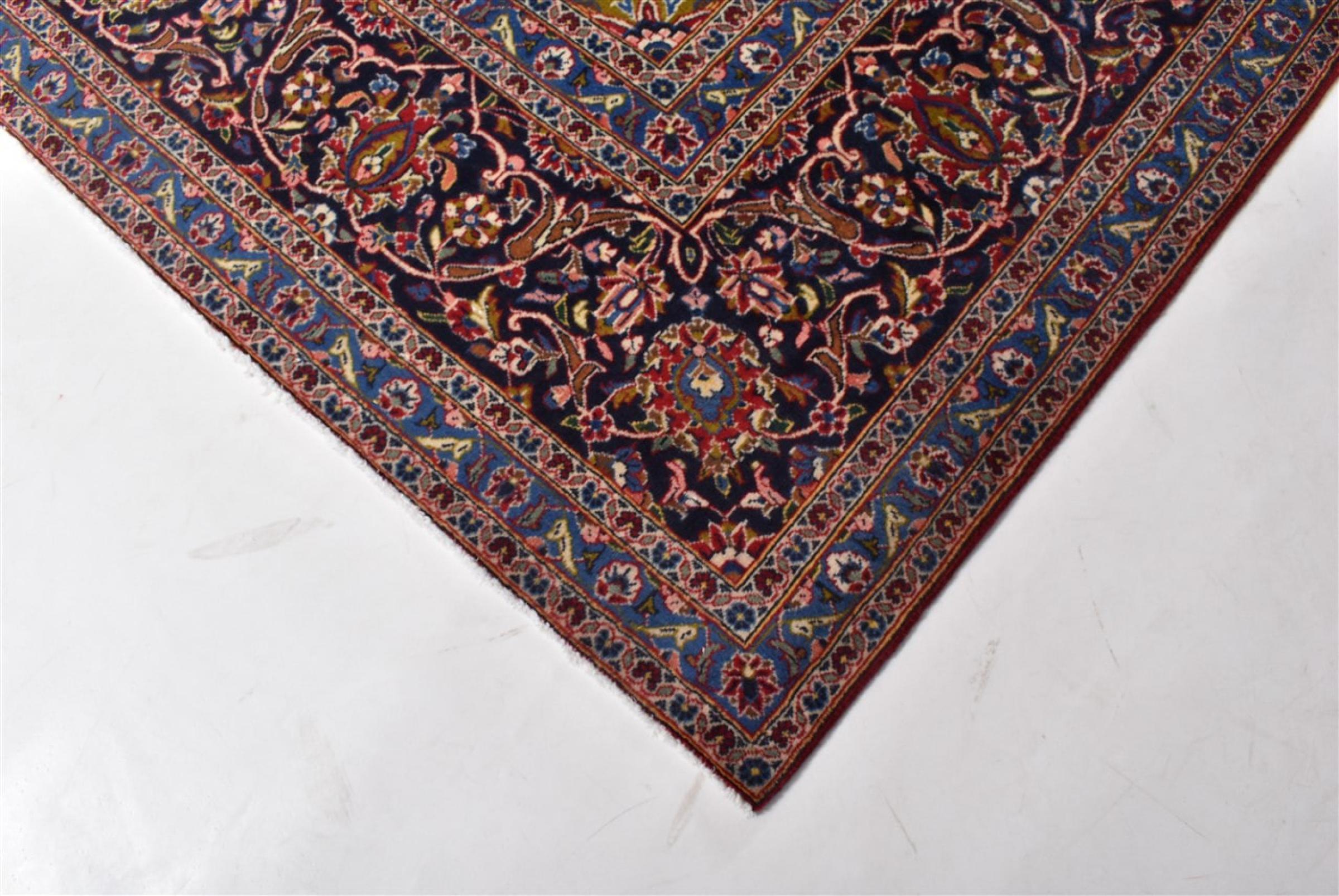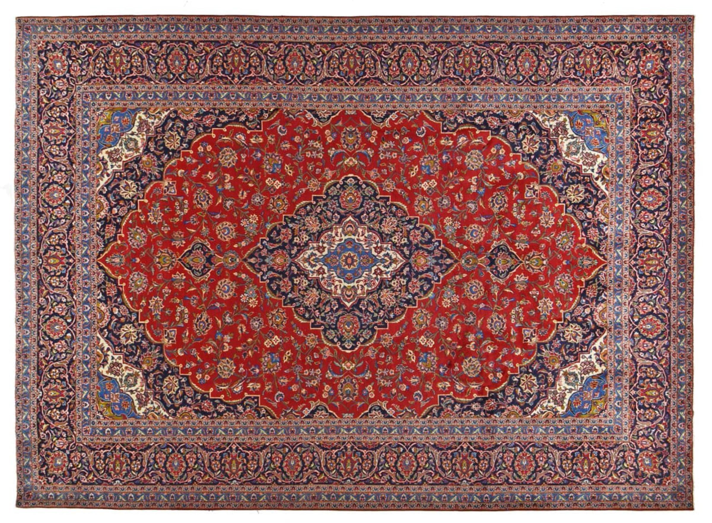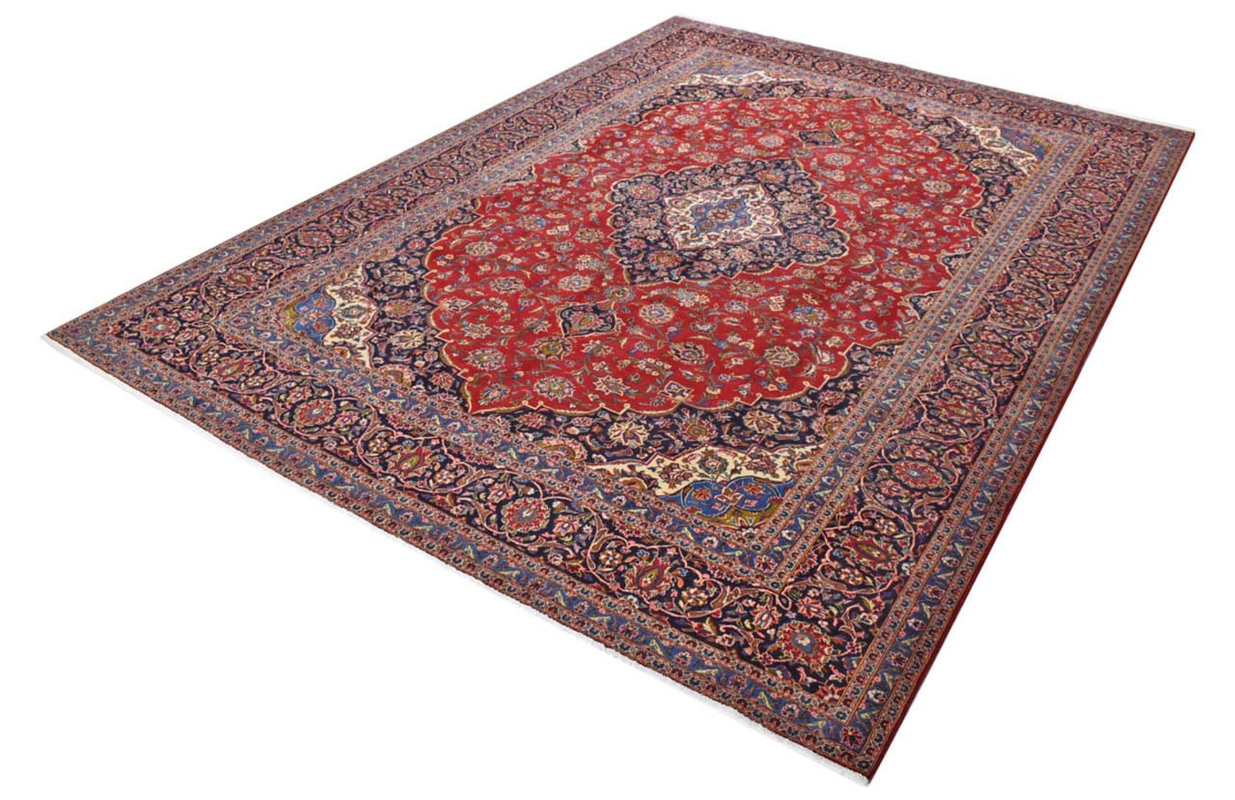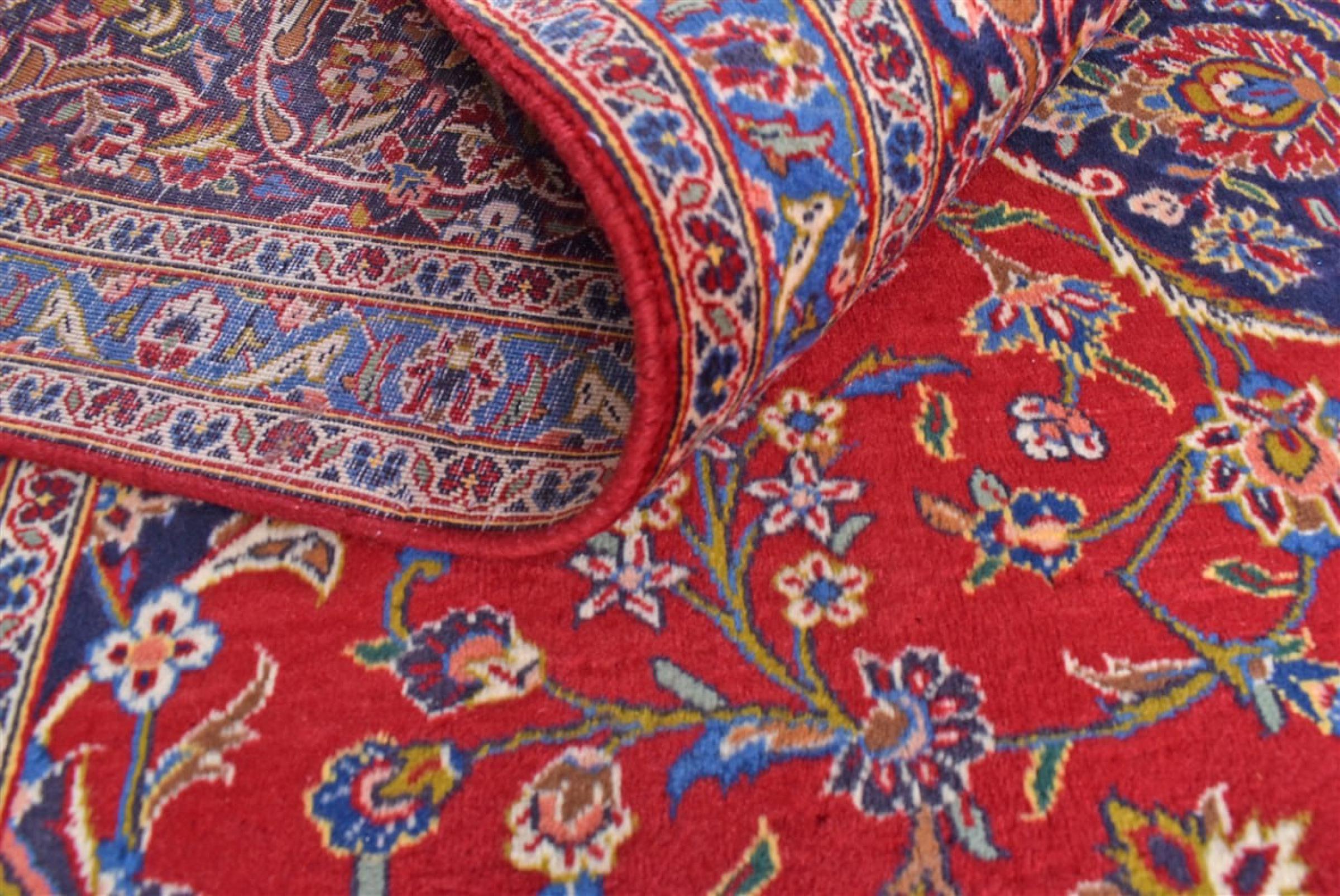 Hand knotted rugs from the city of Kashan (Keshan) are known worldwide. Not only do these Persian rugs have a very popular design, but their quality is undisputedly one of the best. In the Persian Empire the city was considered one of the most important trading places along the famous Silk Road. Kashan rugs usually have a central medallion, floral ornaments and a red background. They are made of high-quality sheep's wool and vegetable dyes.