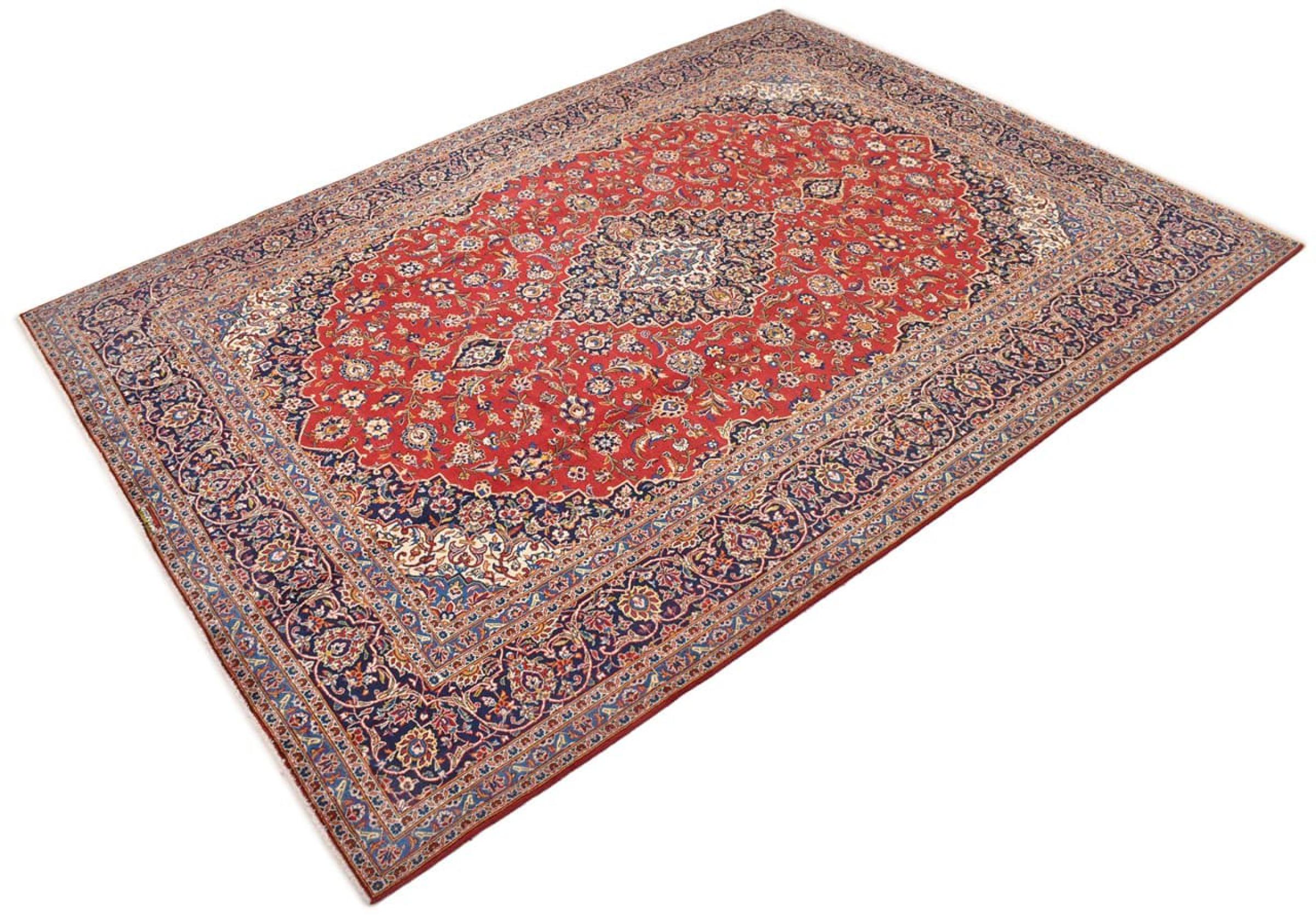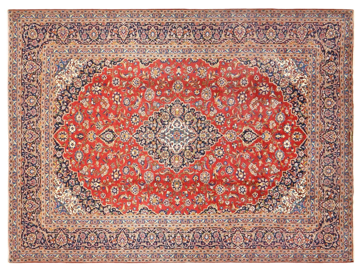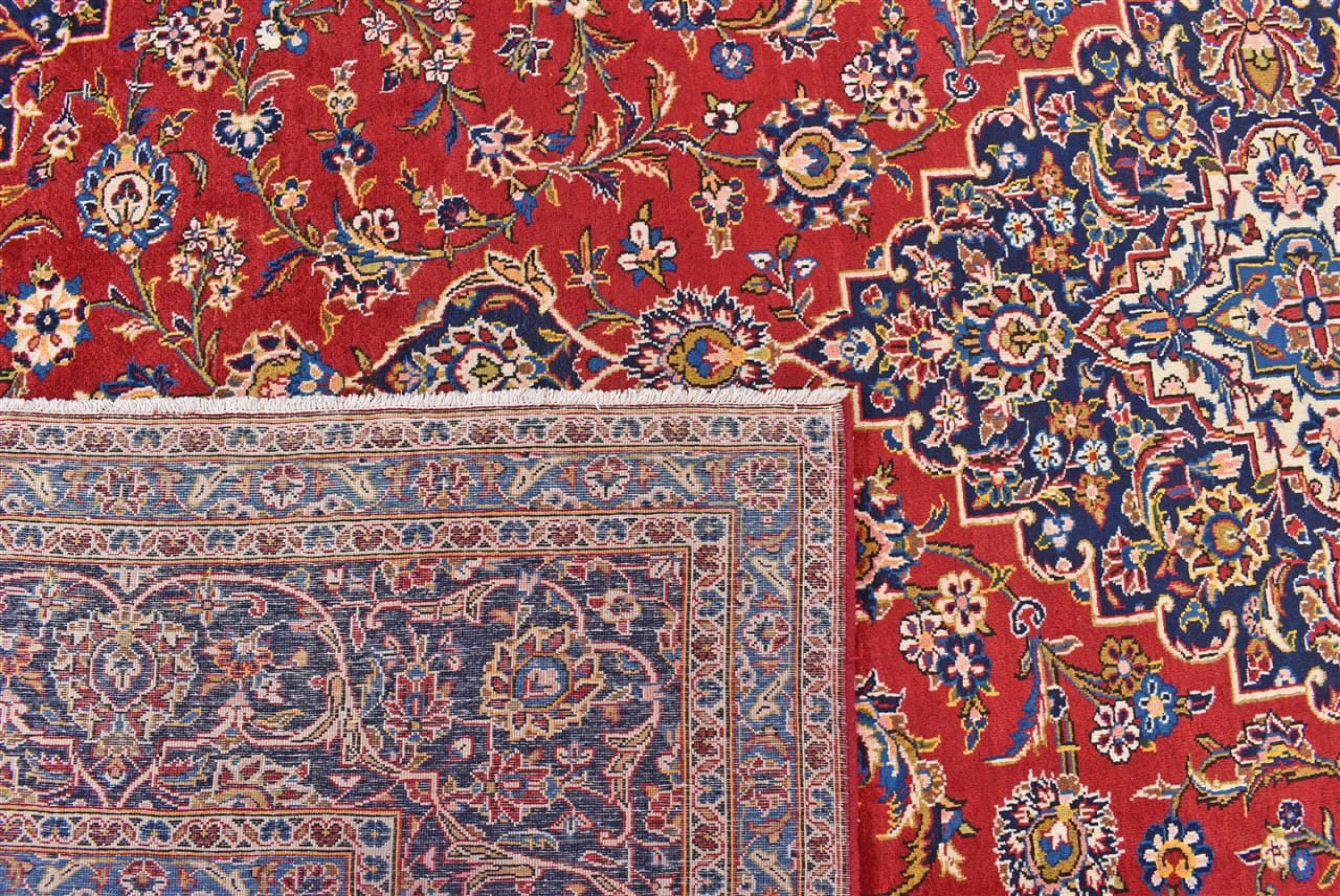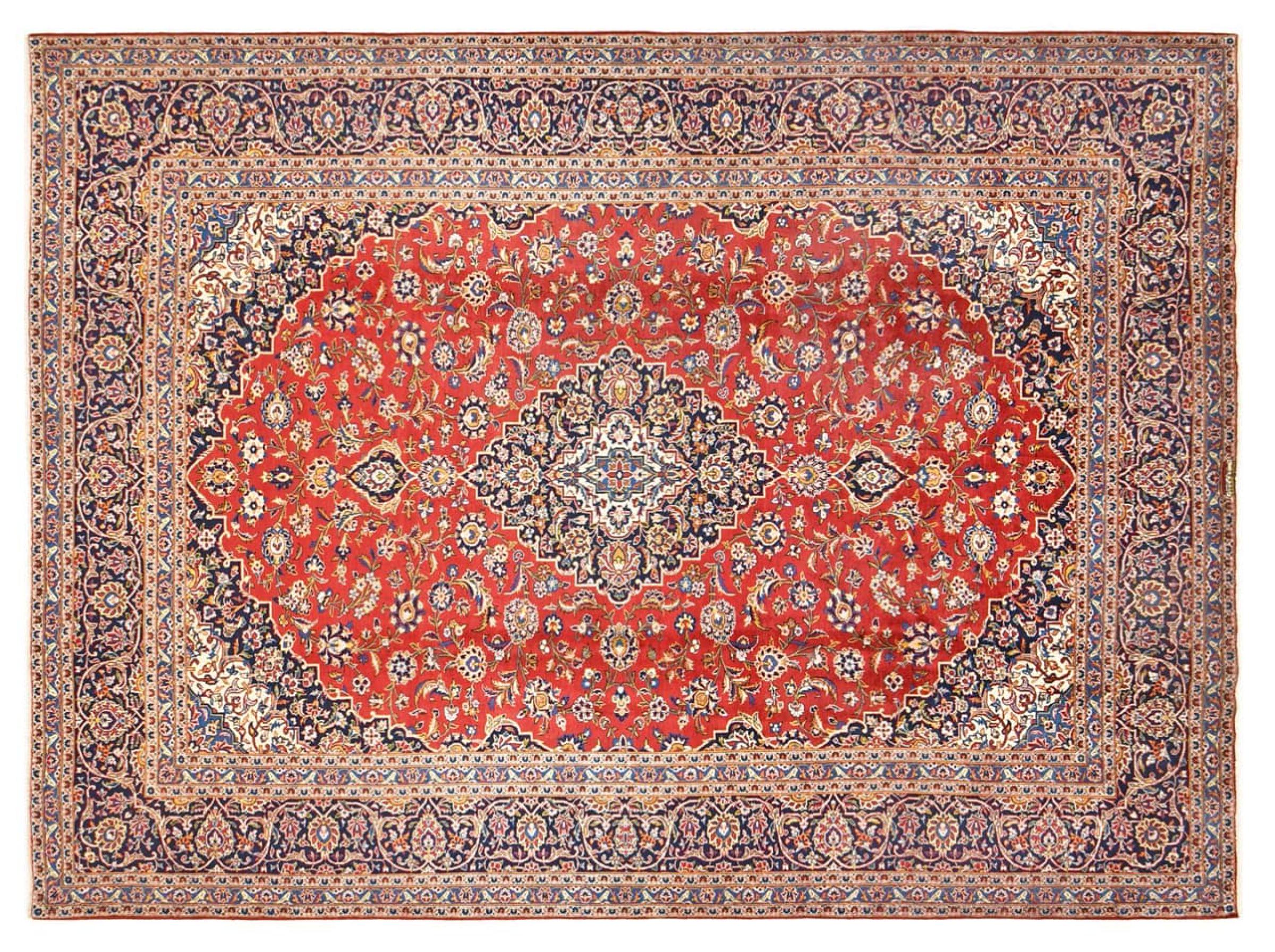 Hand knotted rugs from the city of Kashan (Keshan) are known worldwide. Not only do these Persian rugs have a very popular design, but their quality is undisputedly one of the best. In the Persian Empire the city was considered one of the most important trading places along the famous Silk Road. Kashan rugs usually have a central medallion, floral ornaments and a red background. They are made of high-quality sheep's wool and vegetable dyes.