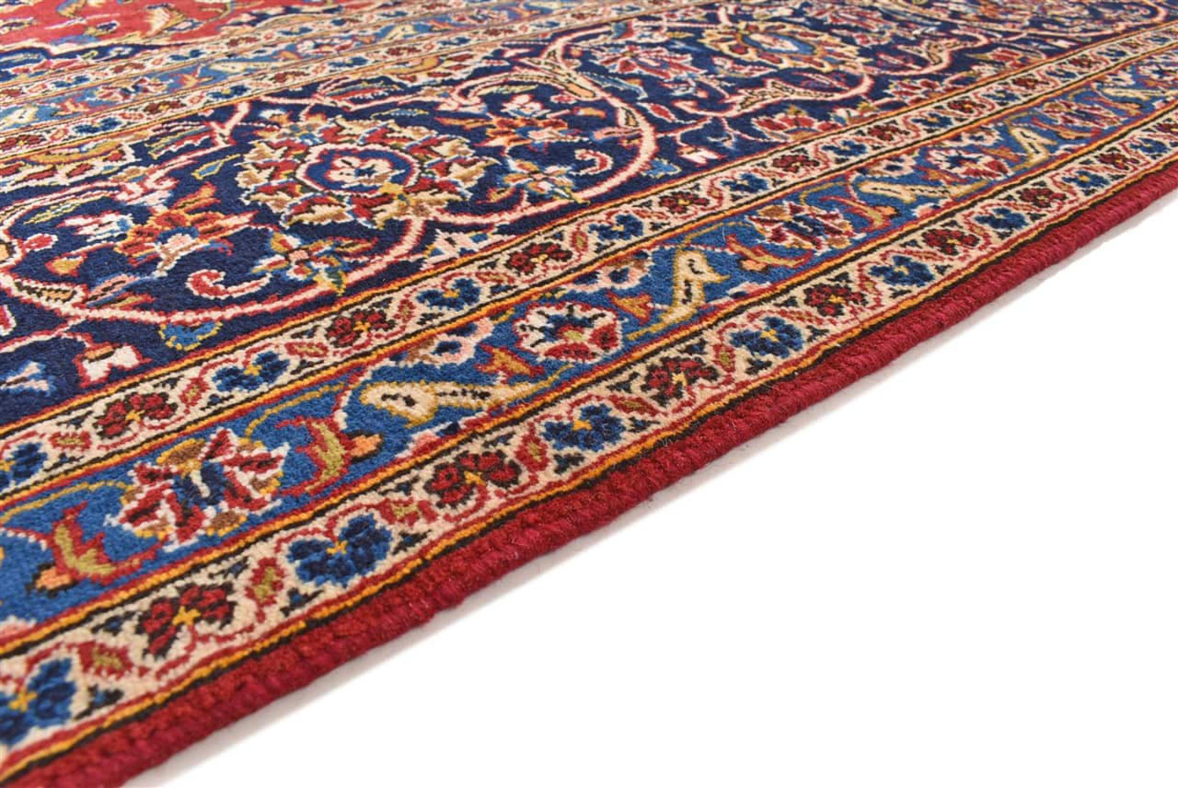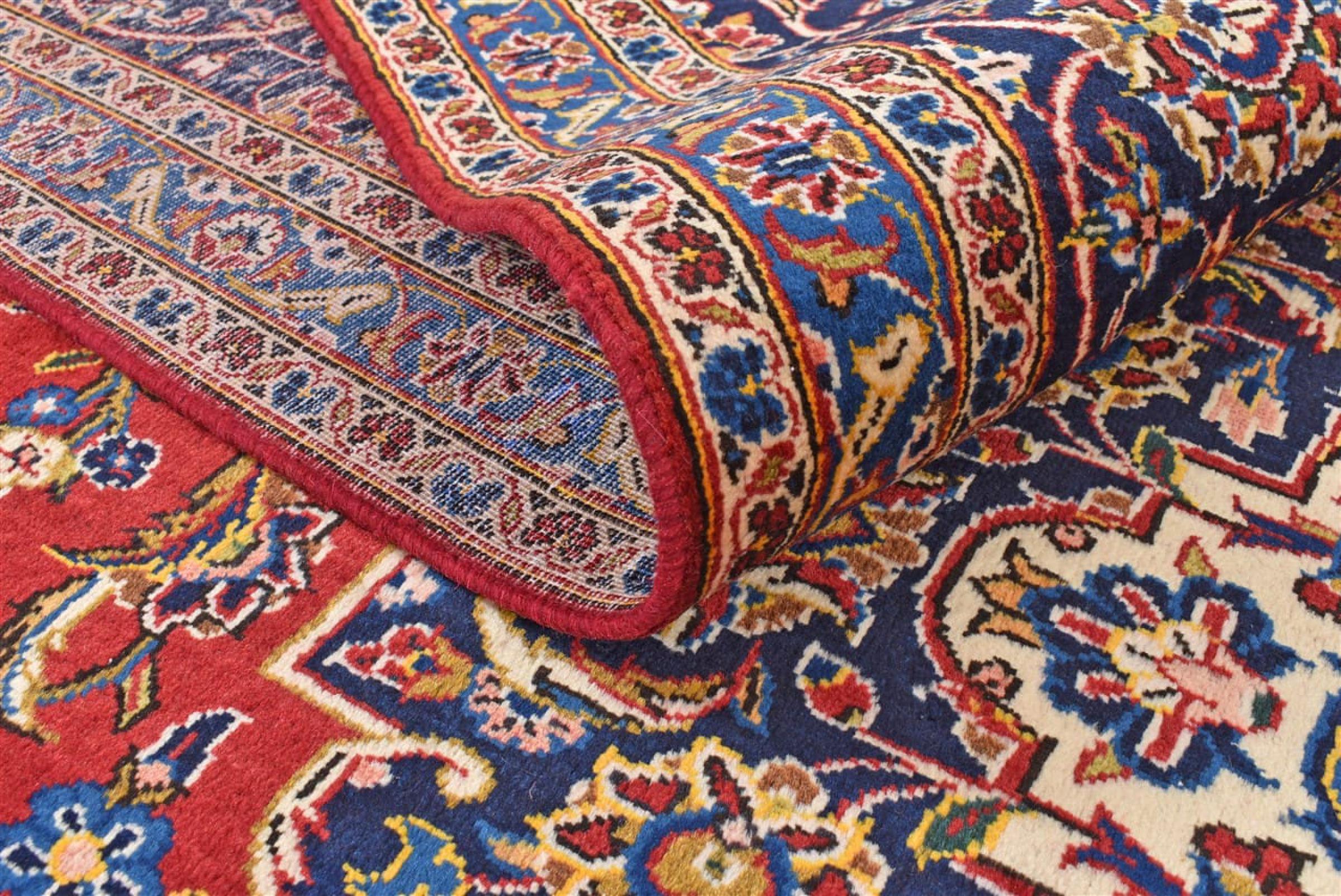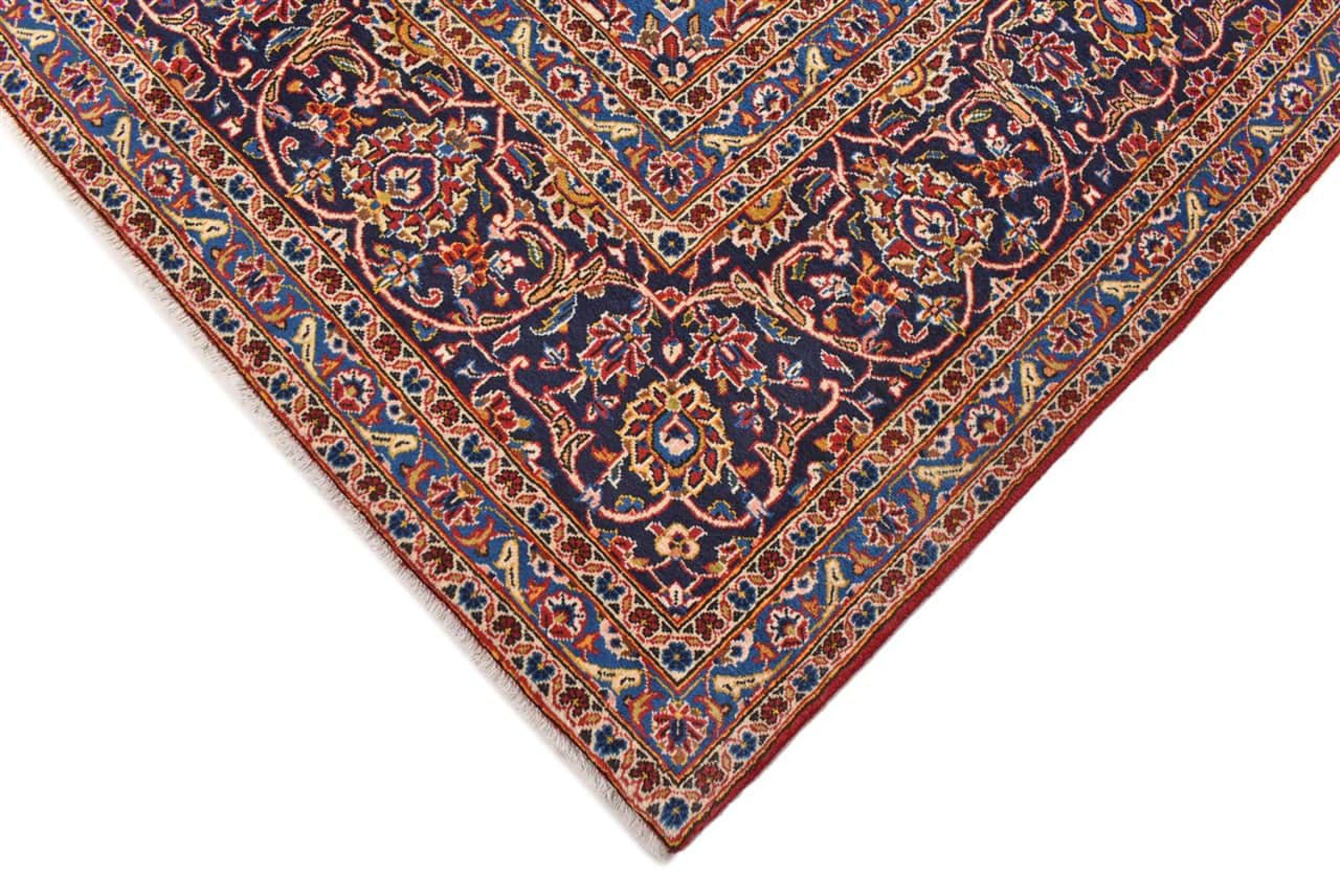 Hand knotted rugs from the city of Kashan (Keshan) are known worldwide. Not only do these Persian rugs have a very popular design, but their quality is undisputedly one of the best. In the Persian Empire the city was considered one of the most important trading places along the famous Silk Road. Kashan rugs usually have a central medallion, floral ornaments and a red background. They are made of high-quality sheep's wool and vegetable dyes.