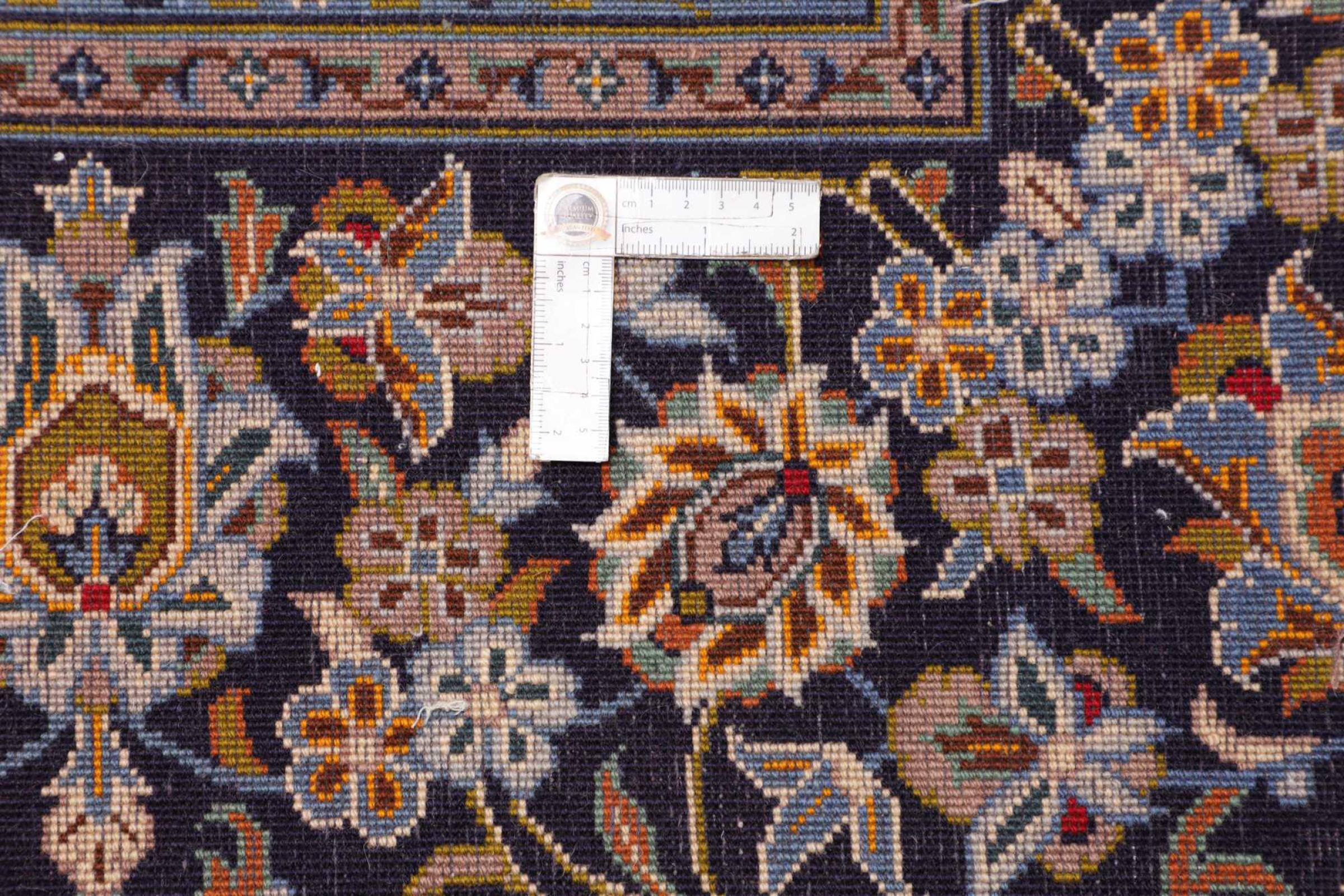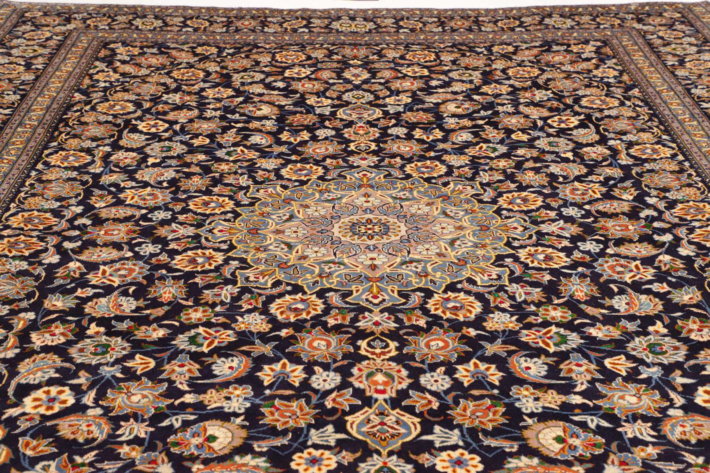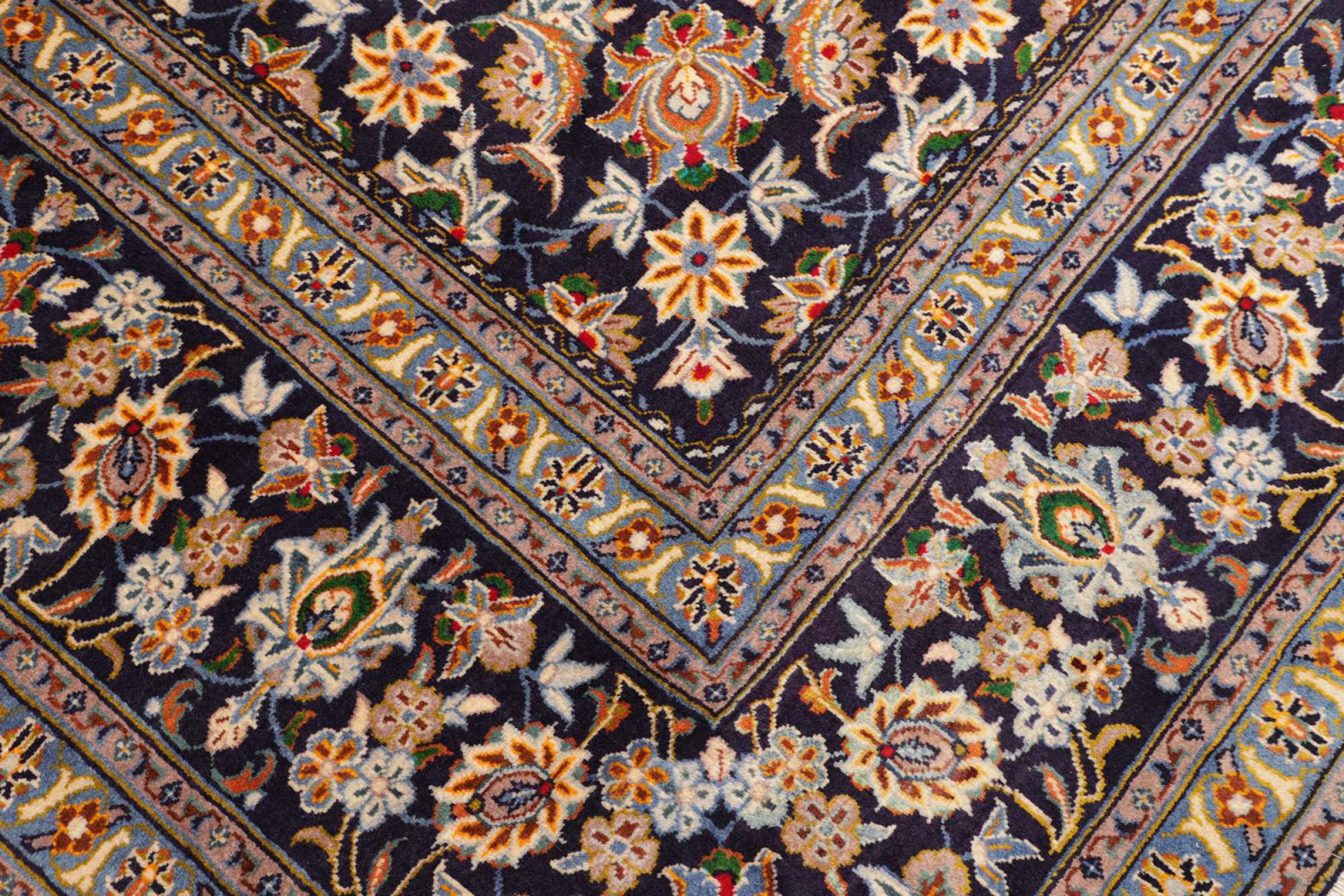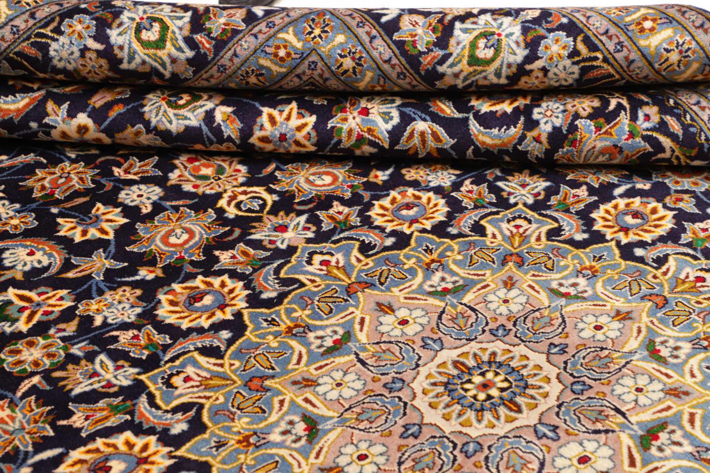 This carpet from Kashan (Keshan) is held in its very traditional and typical Persian design with beautiful ornaments. Kashan rugs are highly popular due to their exceptionally elegant design. These carpets originate from Kashan, a city on the ancient Silk Road. This carpet has been knotted by hand from high grade sheep wool and is going to be an one-of-a-kind highlight in your home.