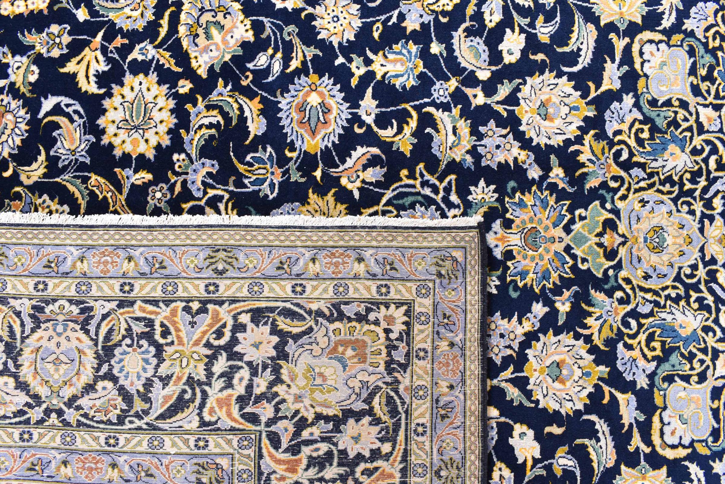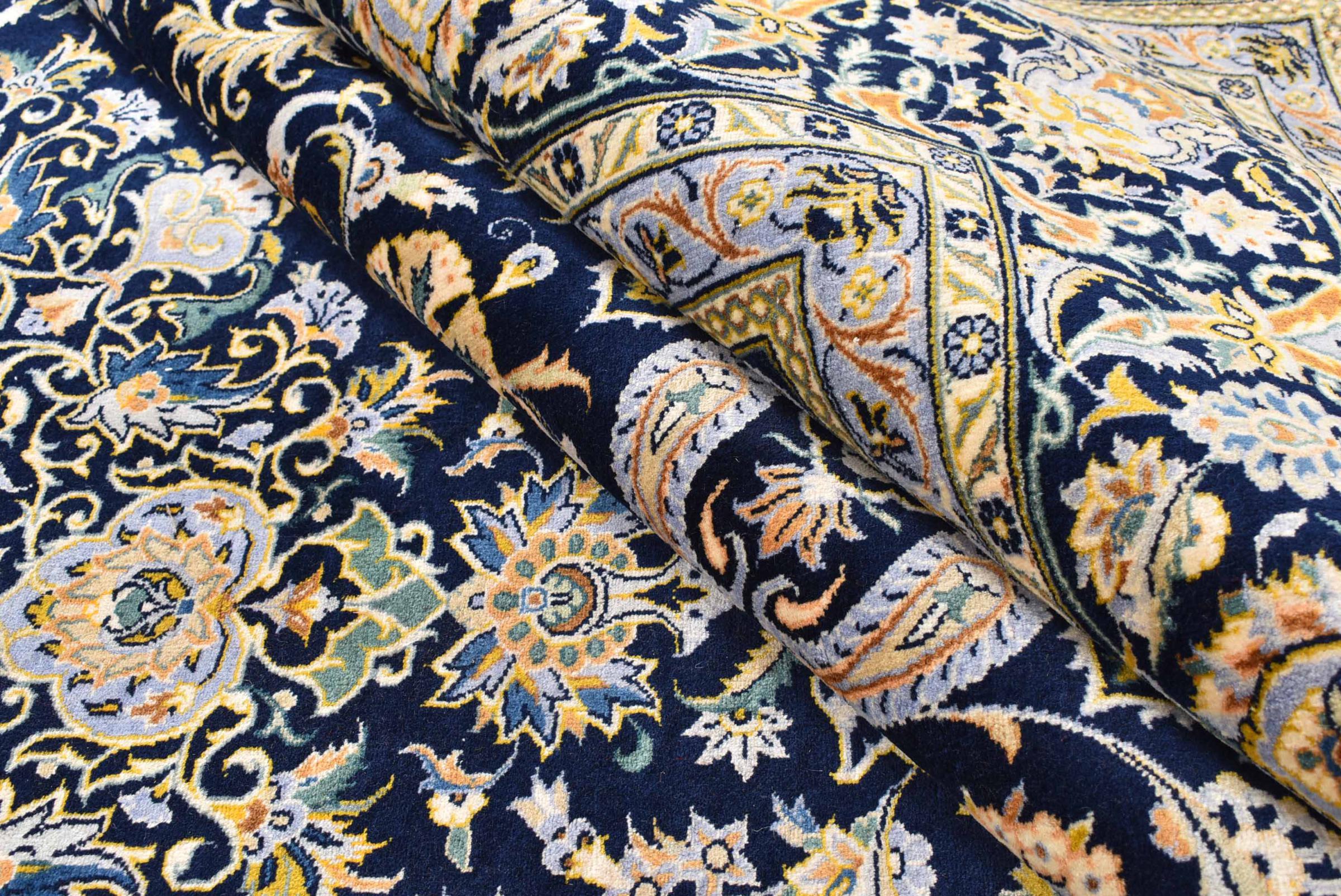 Hand knotted rugs from the city of Kashan (Keshan) are known worldwide. Not only do these Persian rugs have a very popular design, but their quality is undisputedly one of the best. In the Persian Empire the city was considered one of the most important trading places along the famous Silk Road. Kashan rugs usually have a central medallion, floral ornaments and a red background. They are made of high-quality sheep's wool and vegetable dyes.