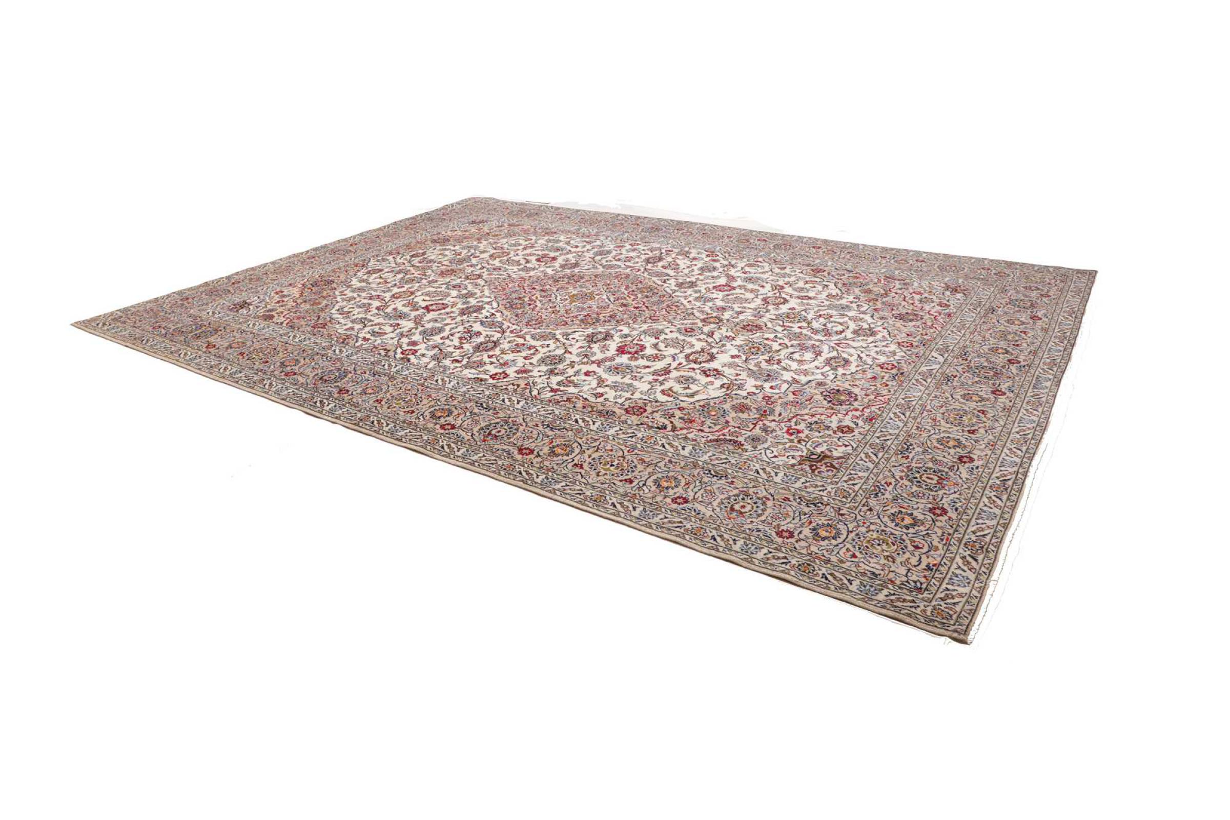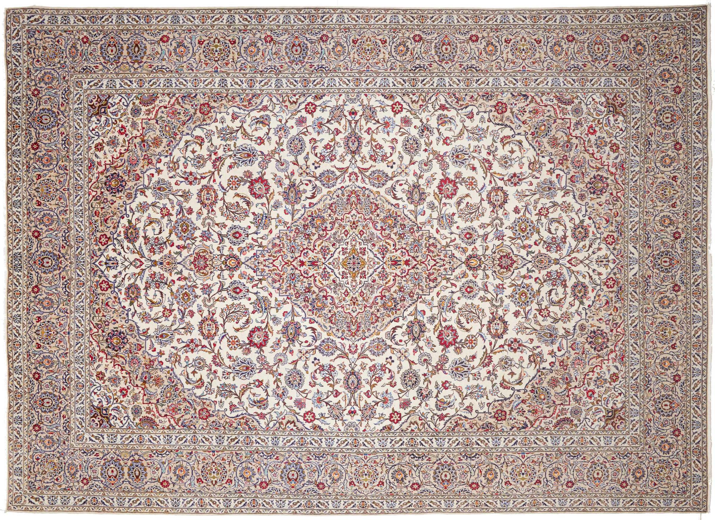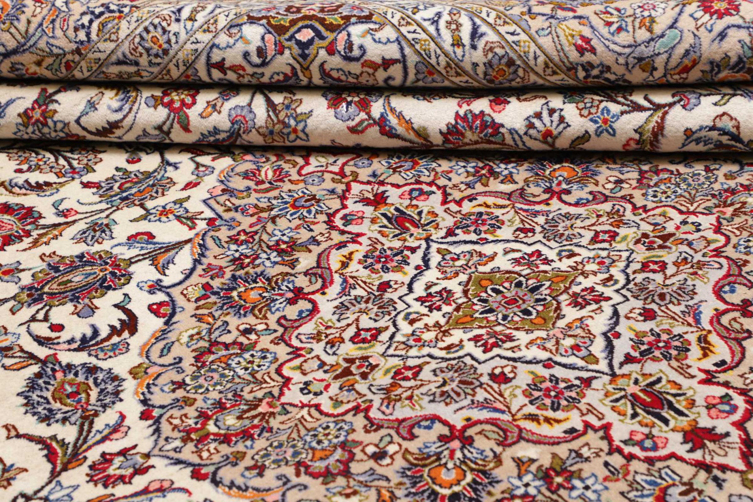 Hand knotted rugs from the city of Kashan (Keshan) are known worldwide. Not only do these Persian rugs have a very popular design, but their quality is undisputedly one of the best. In the Persian Empire the city was considered one of the most important trading places along the famous Silk Road. Kashan rugs usually have a central medallion, floral ornaments and a red background. They are made of high-quality sheep's wool and vegetable dyes.