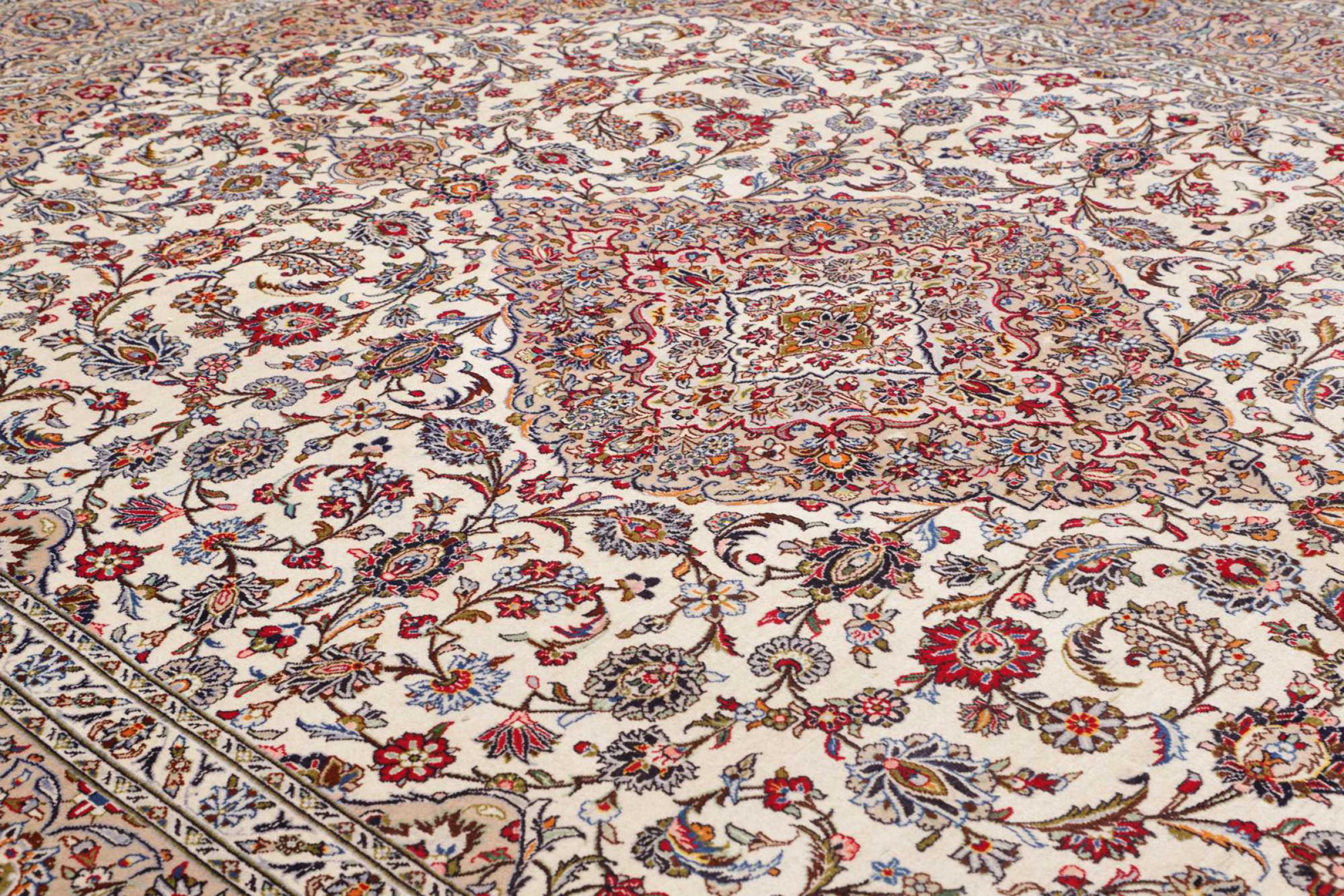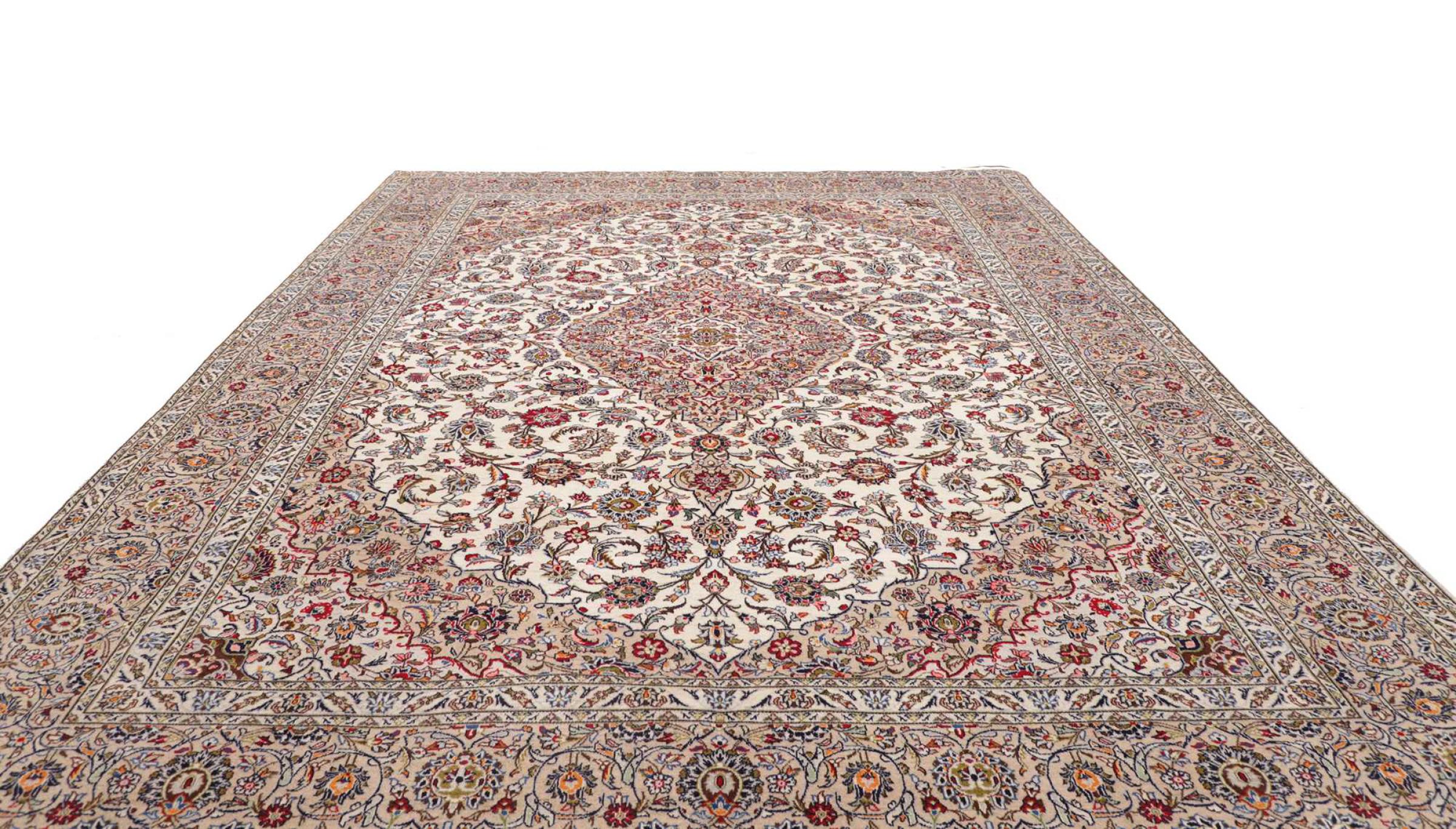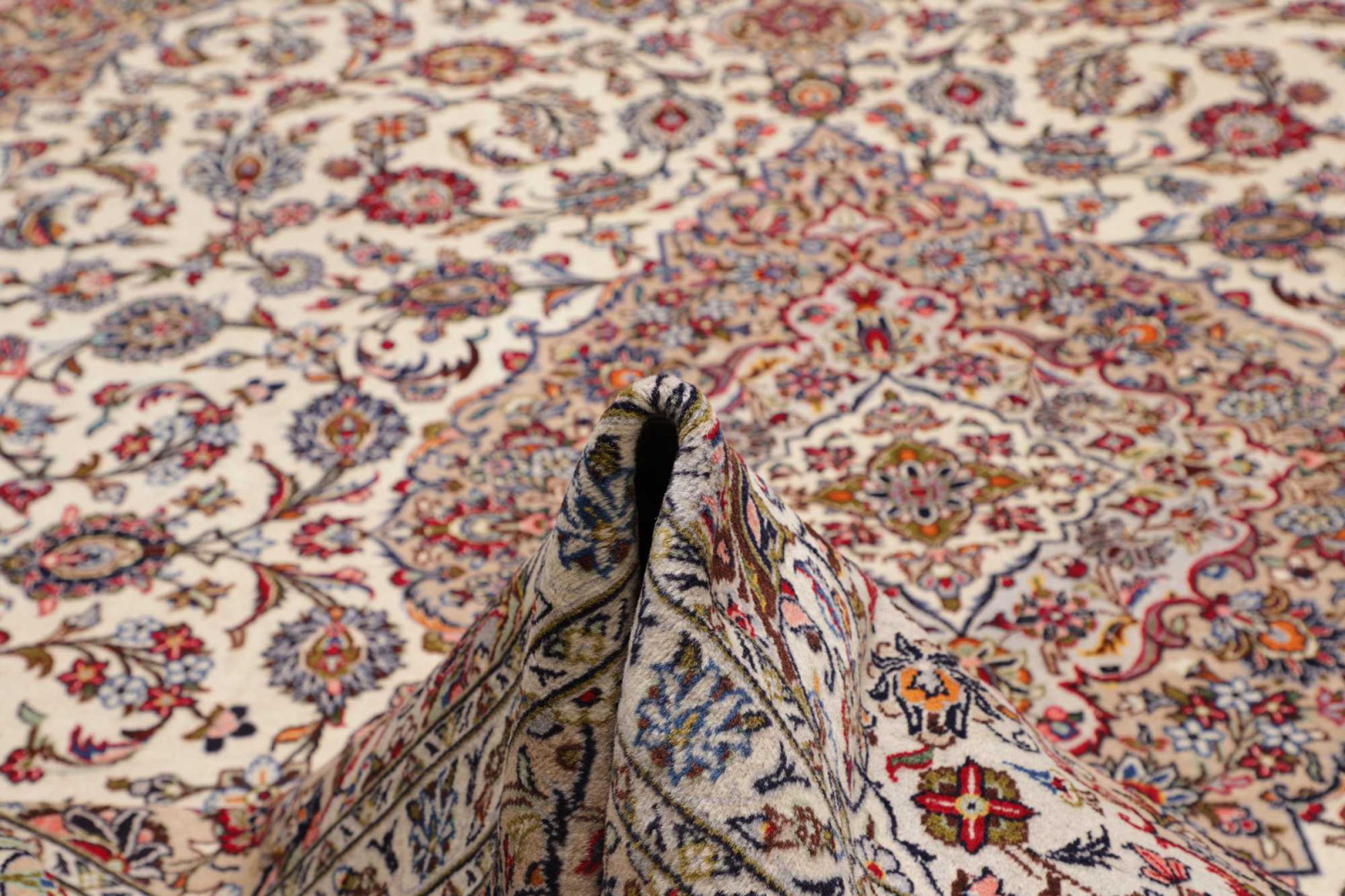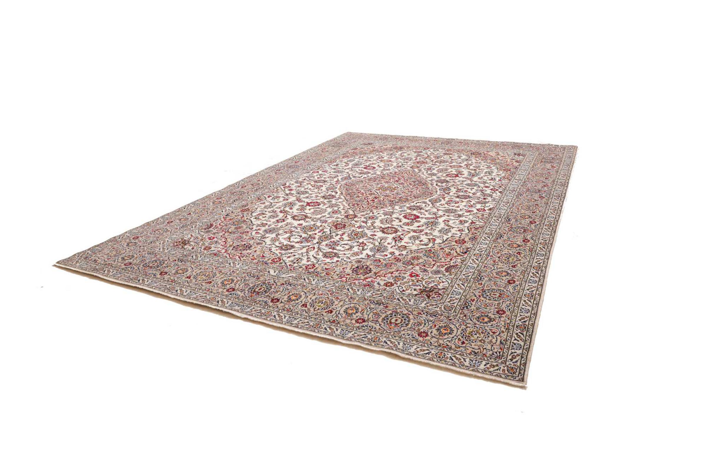 Hand knotted rugs from the city of Kashan (Keshan) are known worldwide. Not only do these Persian rugs have a very popular design, but their quality is undisputedly one of the best. In the Persian Empire the city was considered one of the most important trading places along the famous Silk Road. Kashan rugs usually have a central medallion, floral ornaments and a red background. They are made of high-quality sheep's wool and vegetable dyes.