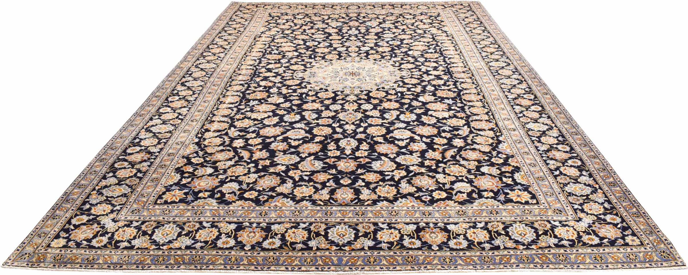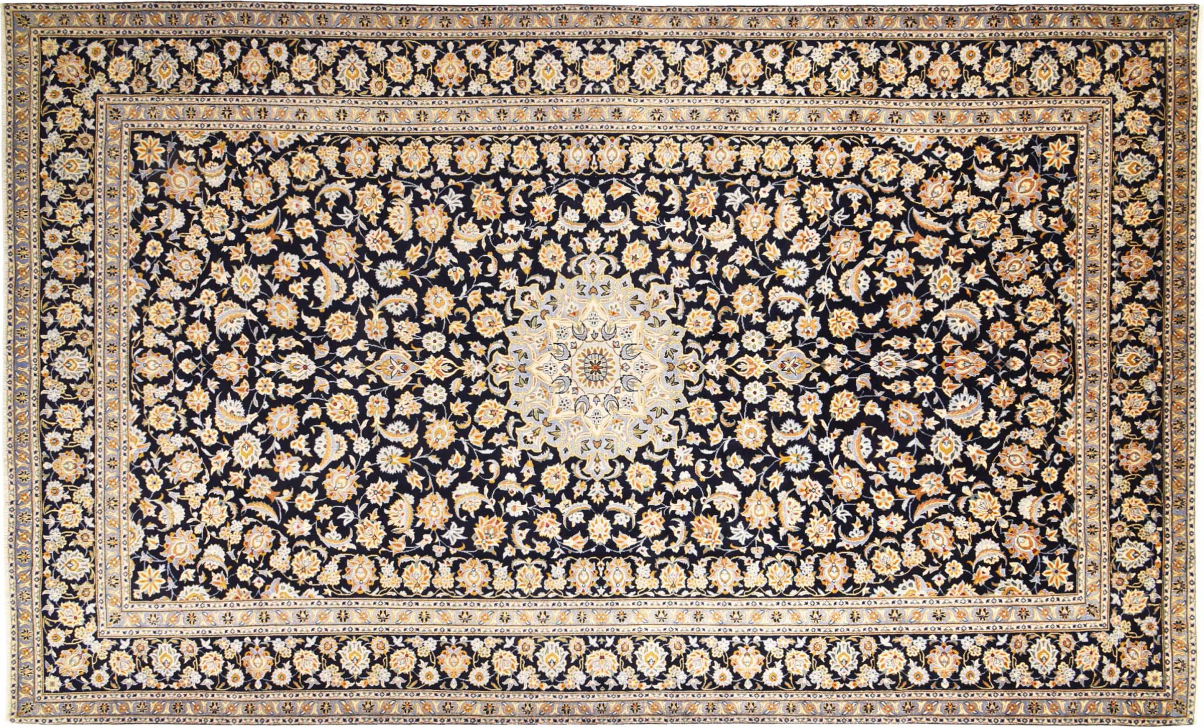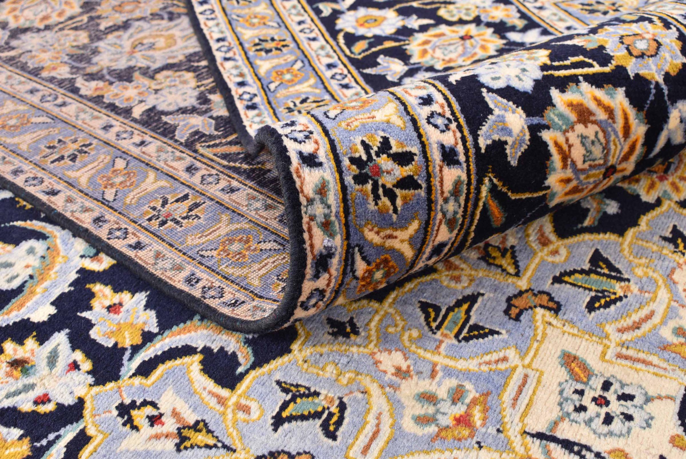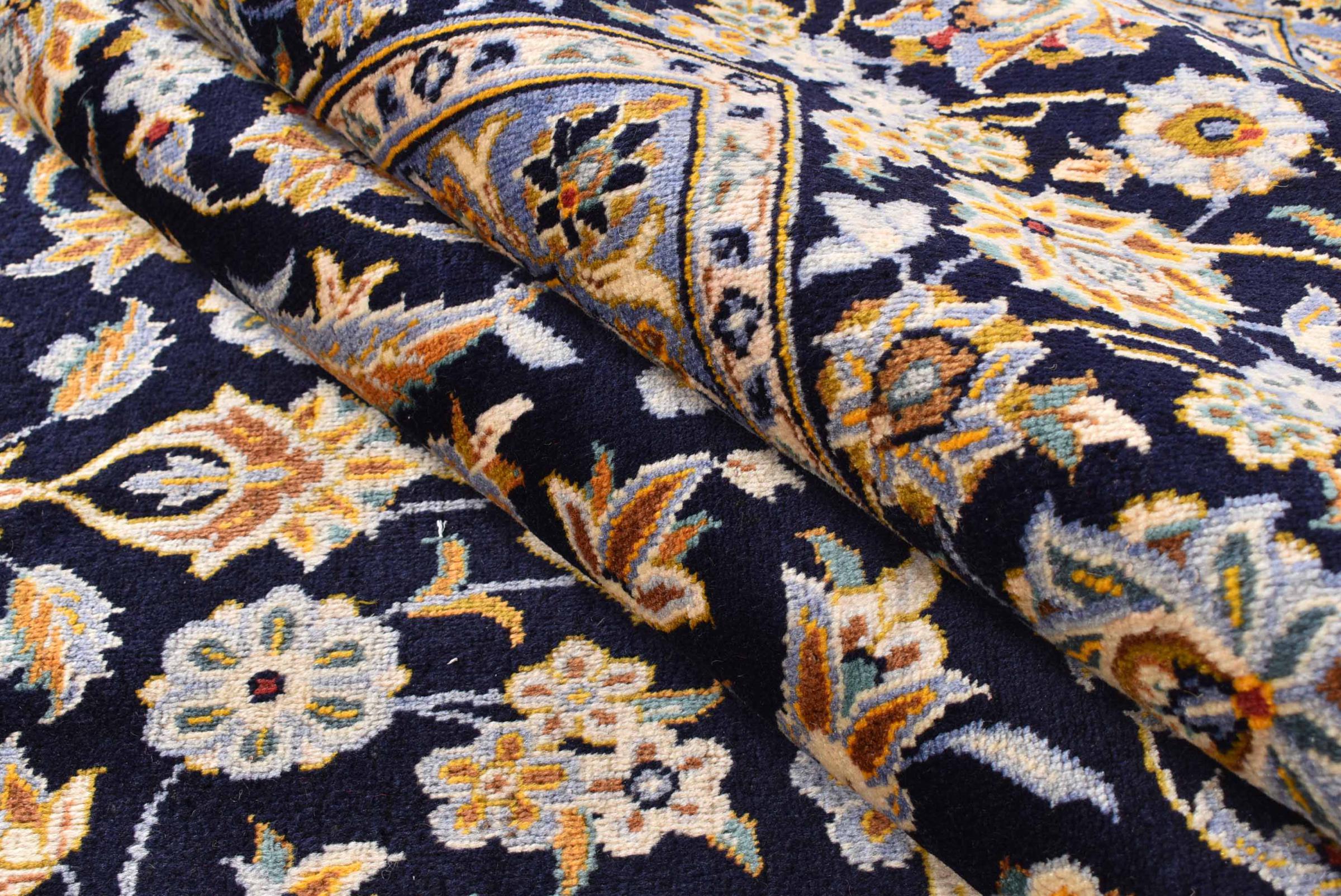 Hand knotted rugs from the city of Kashan (Keshan) are known worldwide. Not only do these Persian rugs have a very popular design, but their quality is undisputedly one of the best. In the Persian Empire the city was considered one of the most important trading places along the famous Silk Road. Kashan rugs usually have a central medallion, floral ornaments and a red background. They are made of high-quality sheep's wool and vegetable dyes.